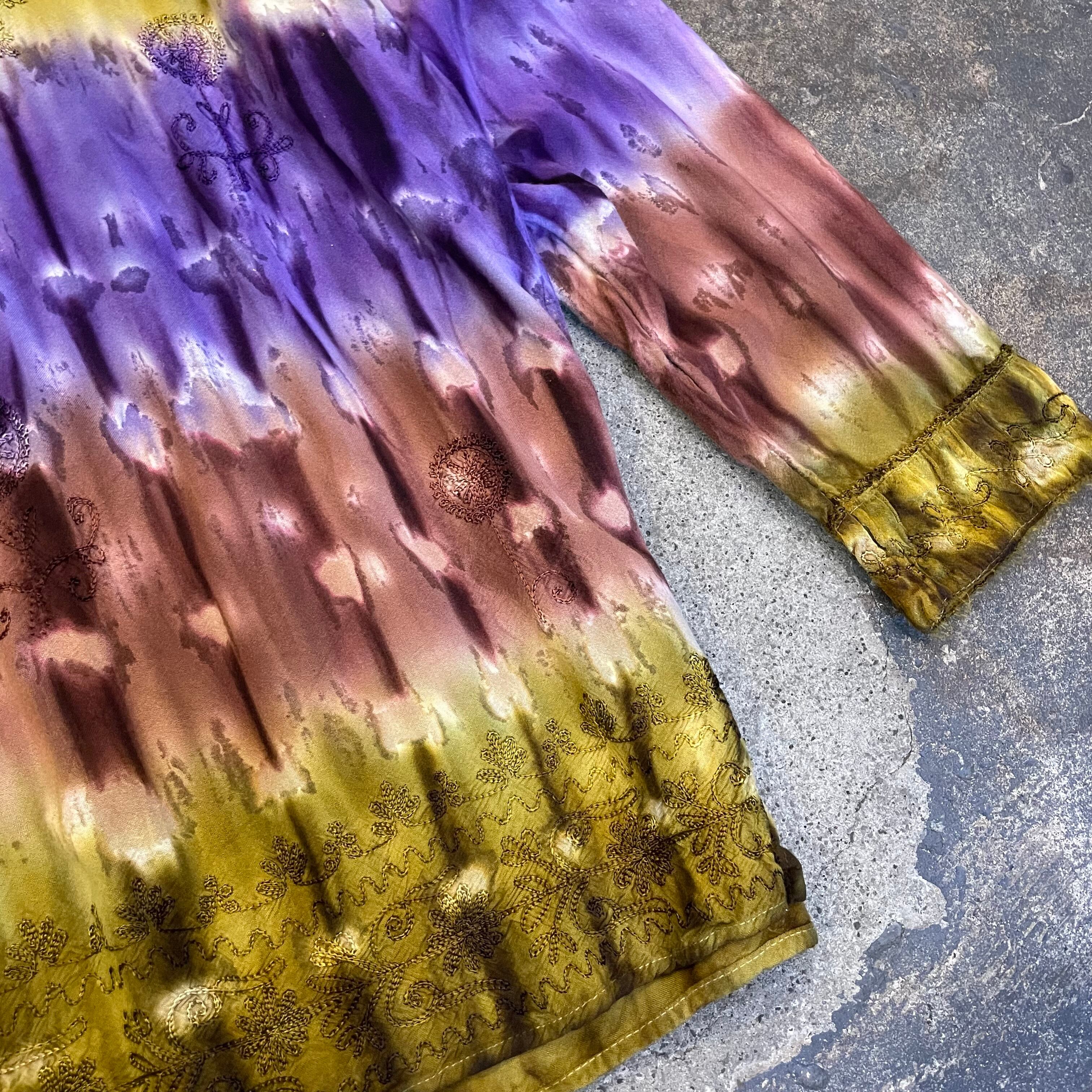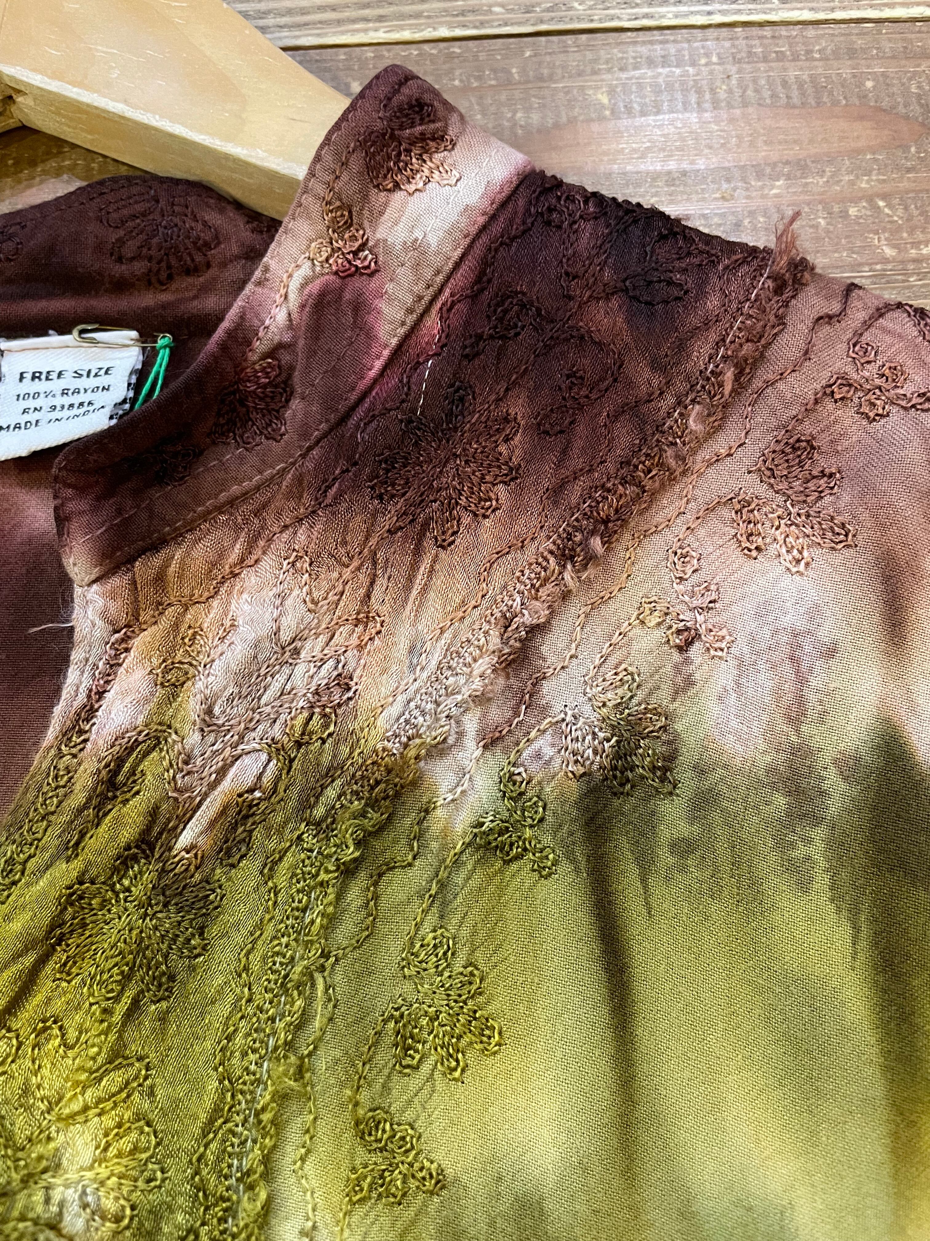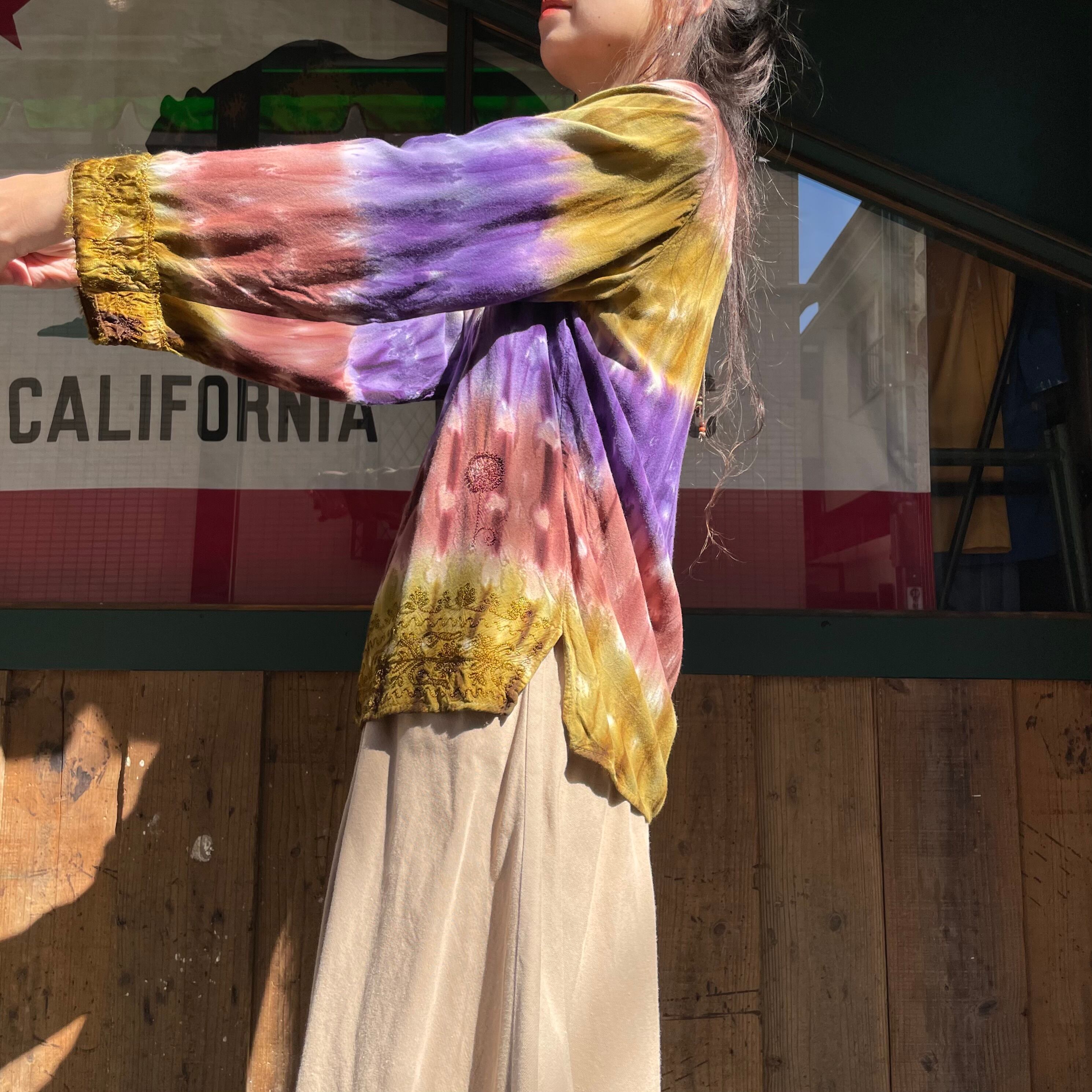 刺繍ごと染めてあり、刺繍の主張が少ないところも大人っぽくてカッコ良いですし、ボーダーのような個性的な染めも雰囲気があって素敵ですね。