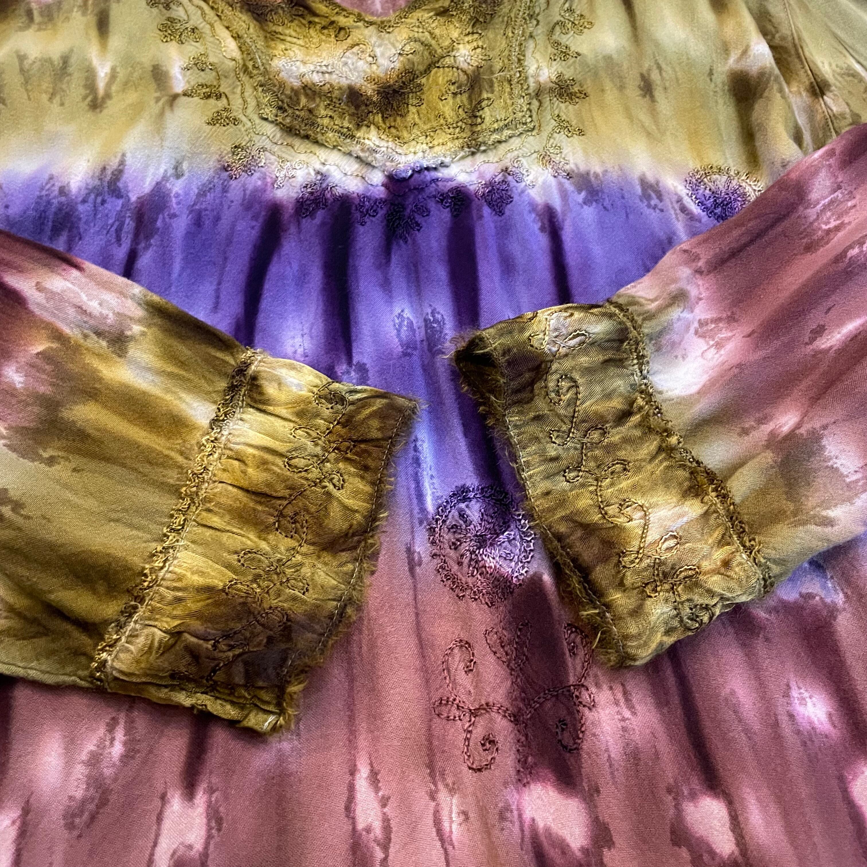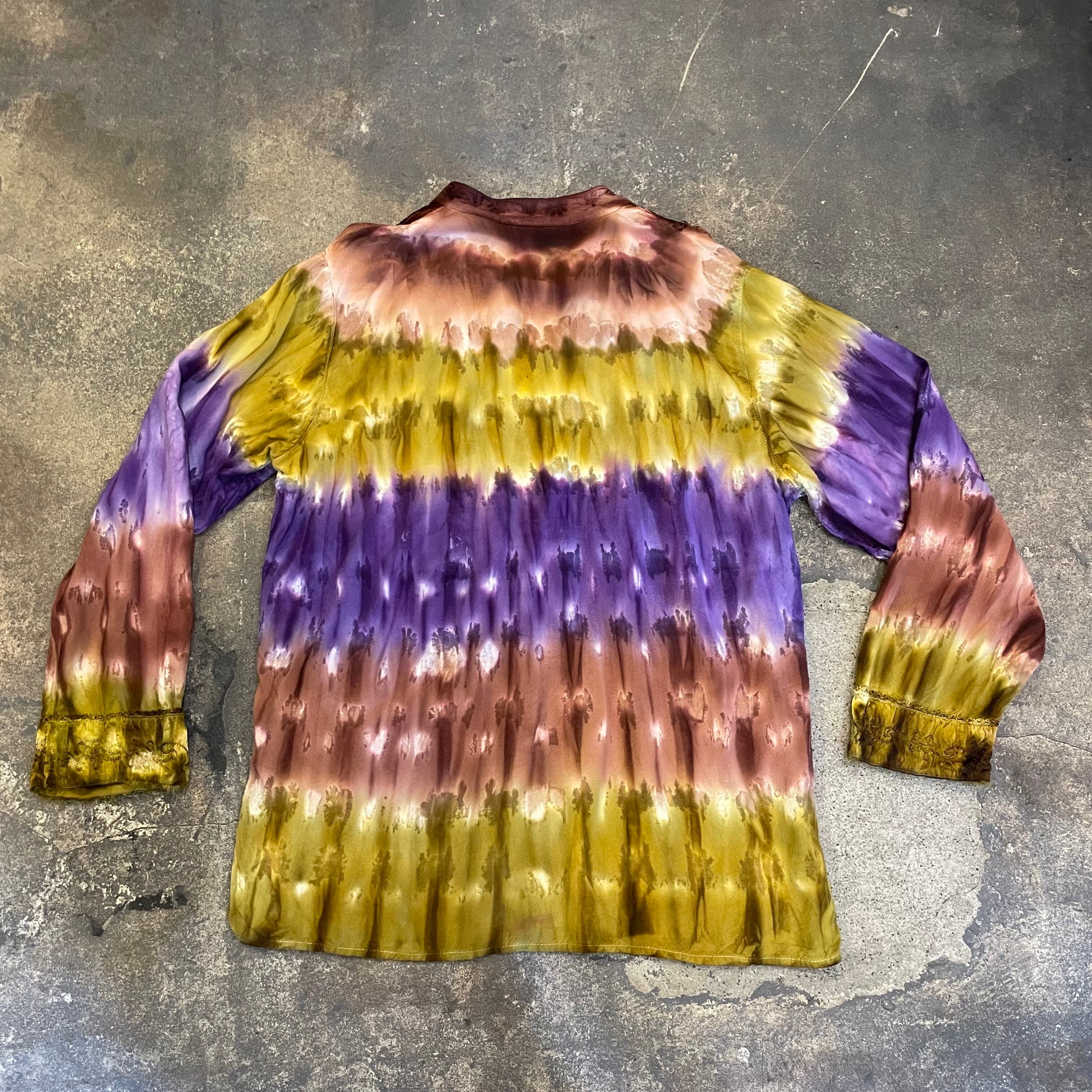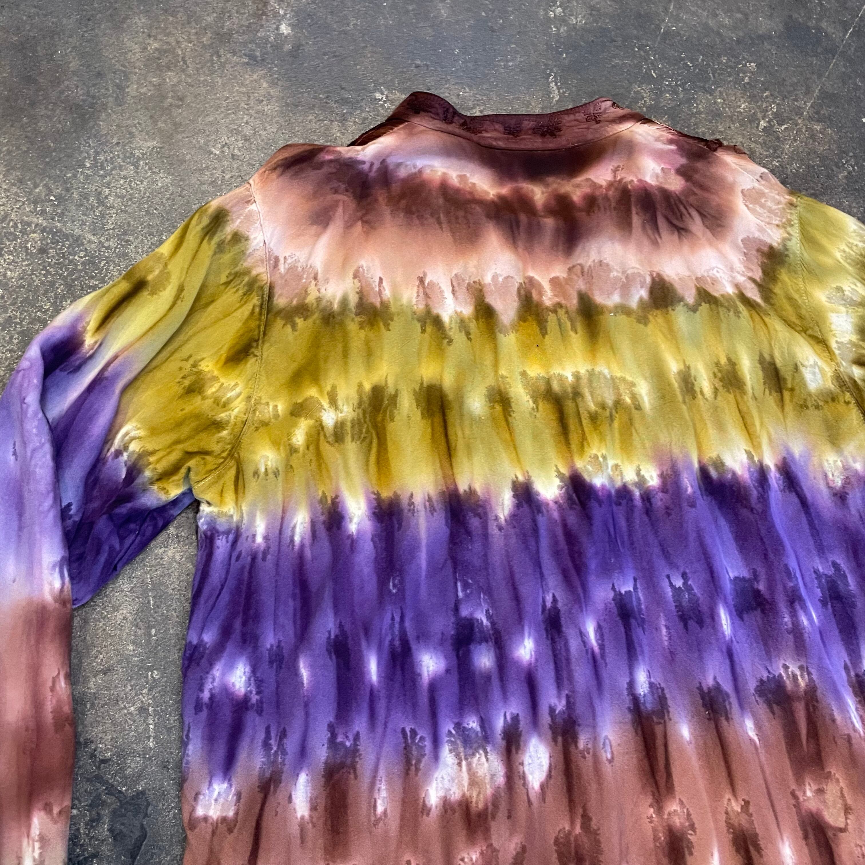 刺繍ごと染めてあり、刺繍の主張が少ないところも大人っぽくてカッコ良いですし、ボーダーのような個性的な染めも雰囲気があって素敵ですね。