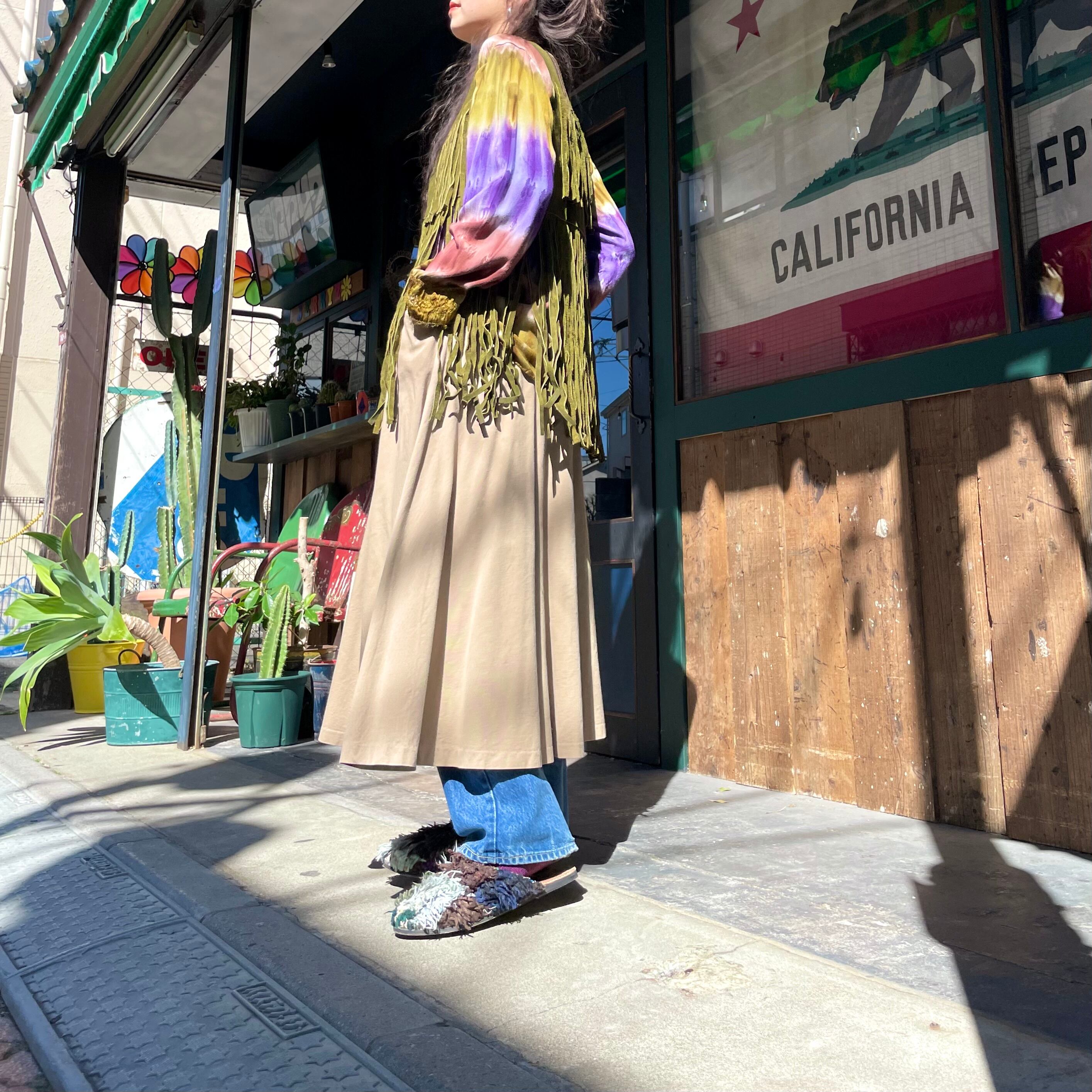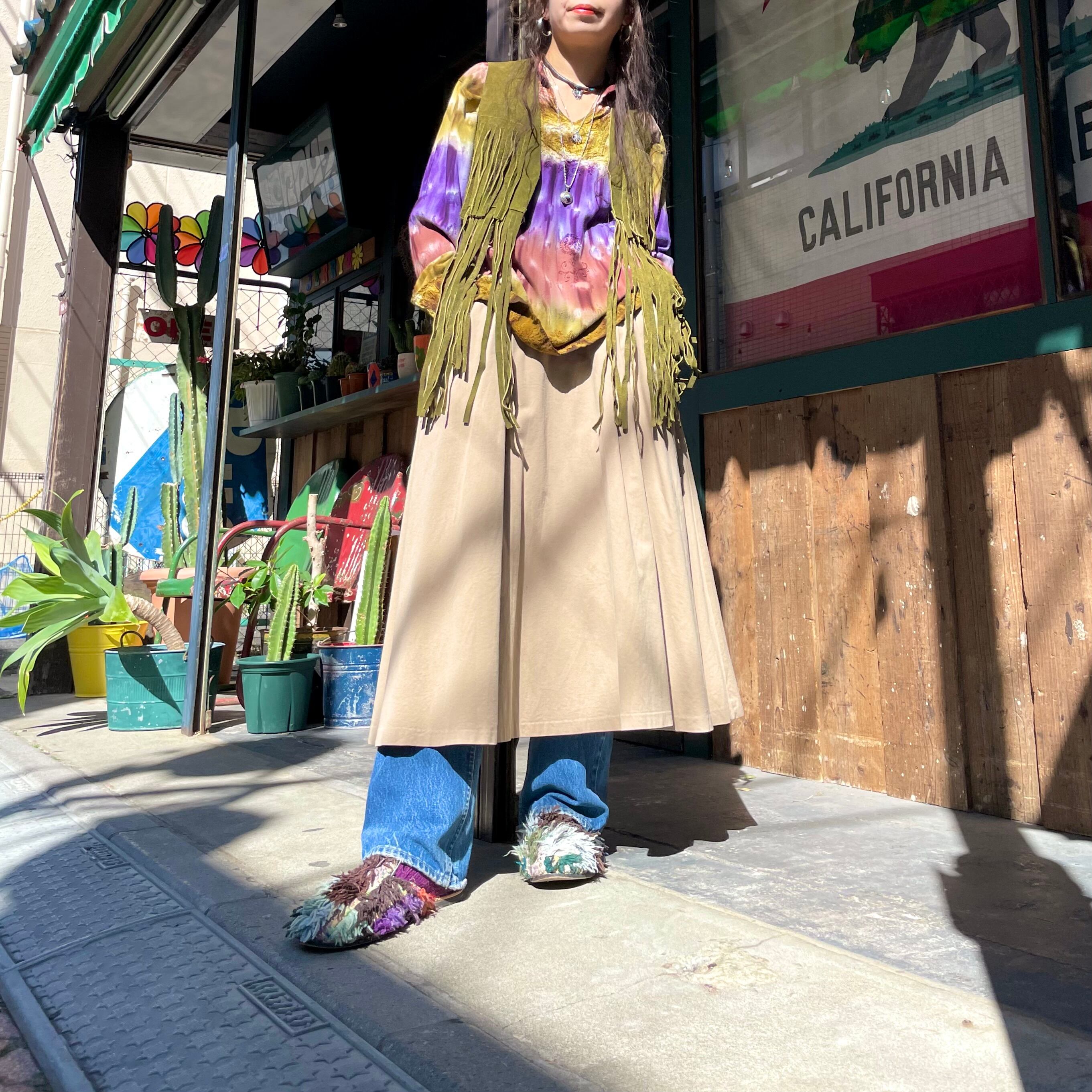 明るいベージュのシンプルでシルエットがきれいなスカートです。