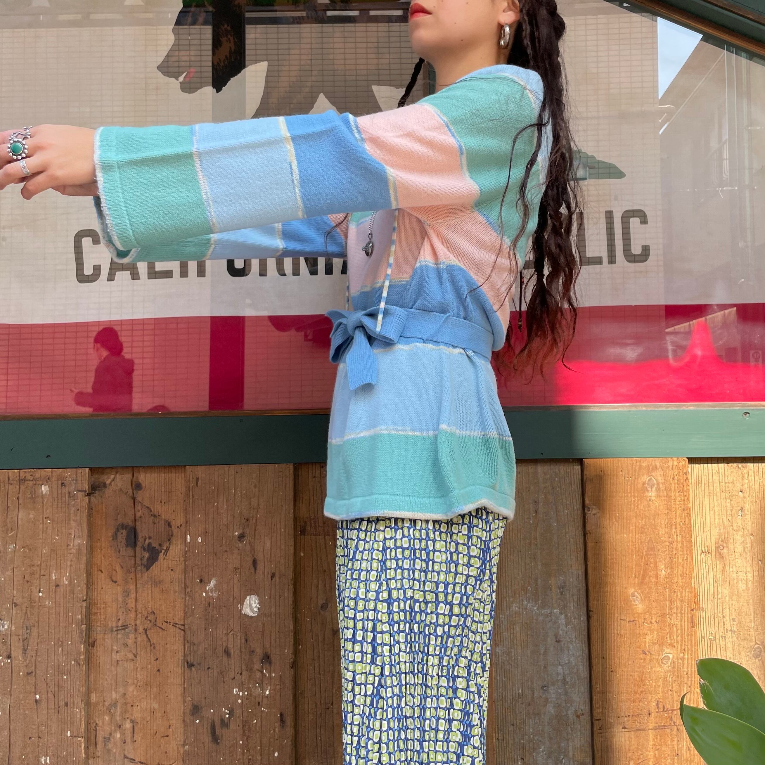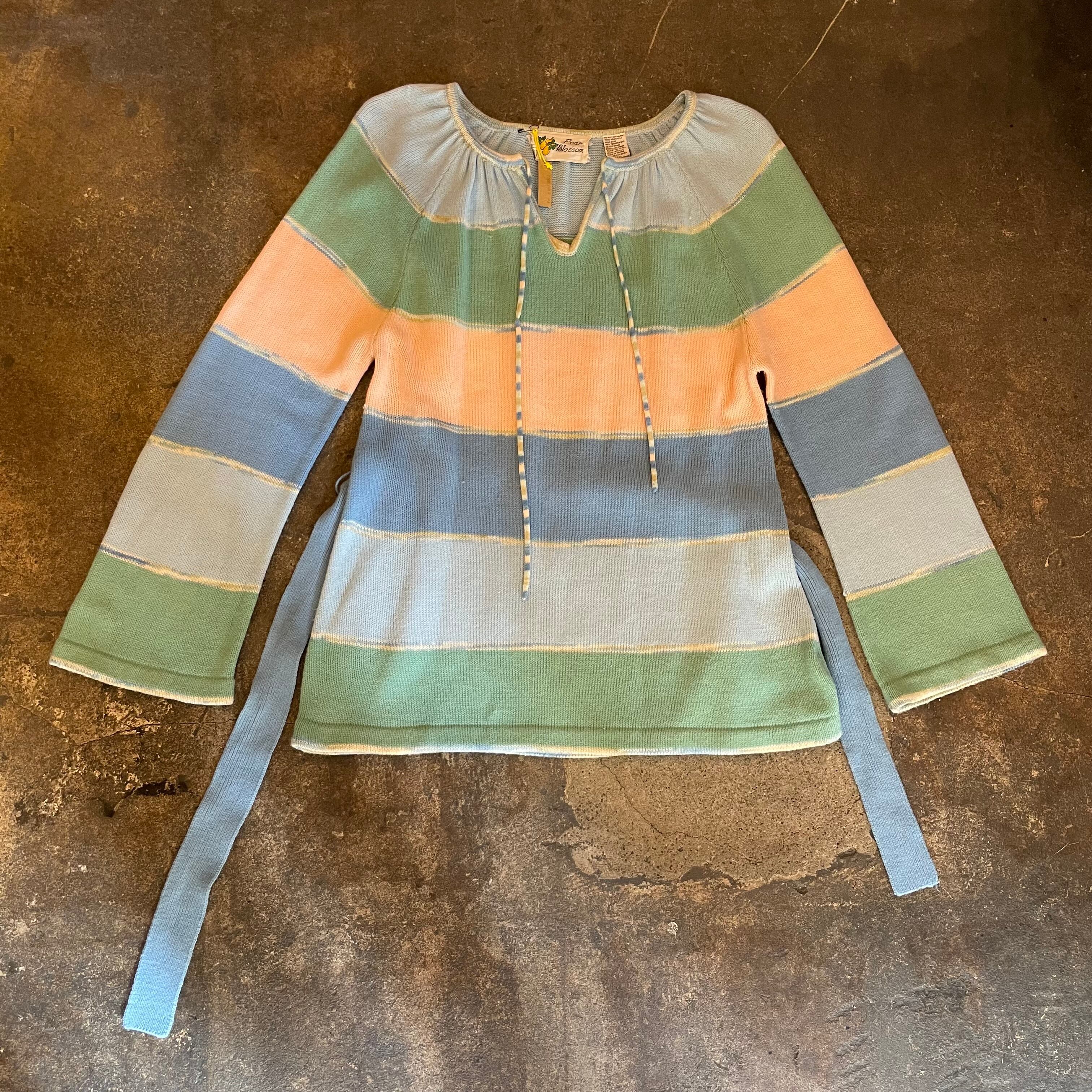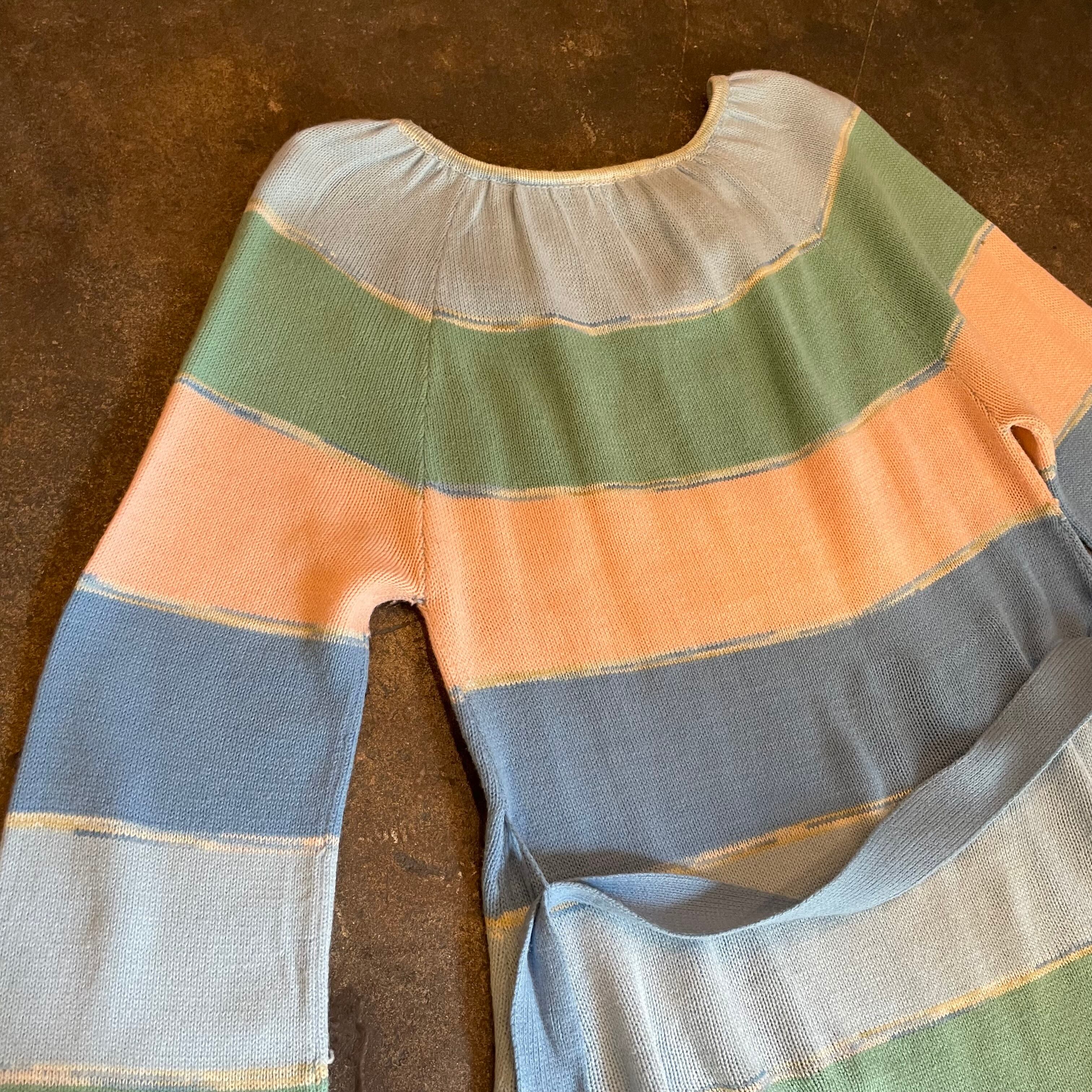 パステルカラーの太いボーダーがかわいいニットチュニックです。