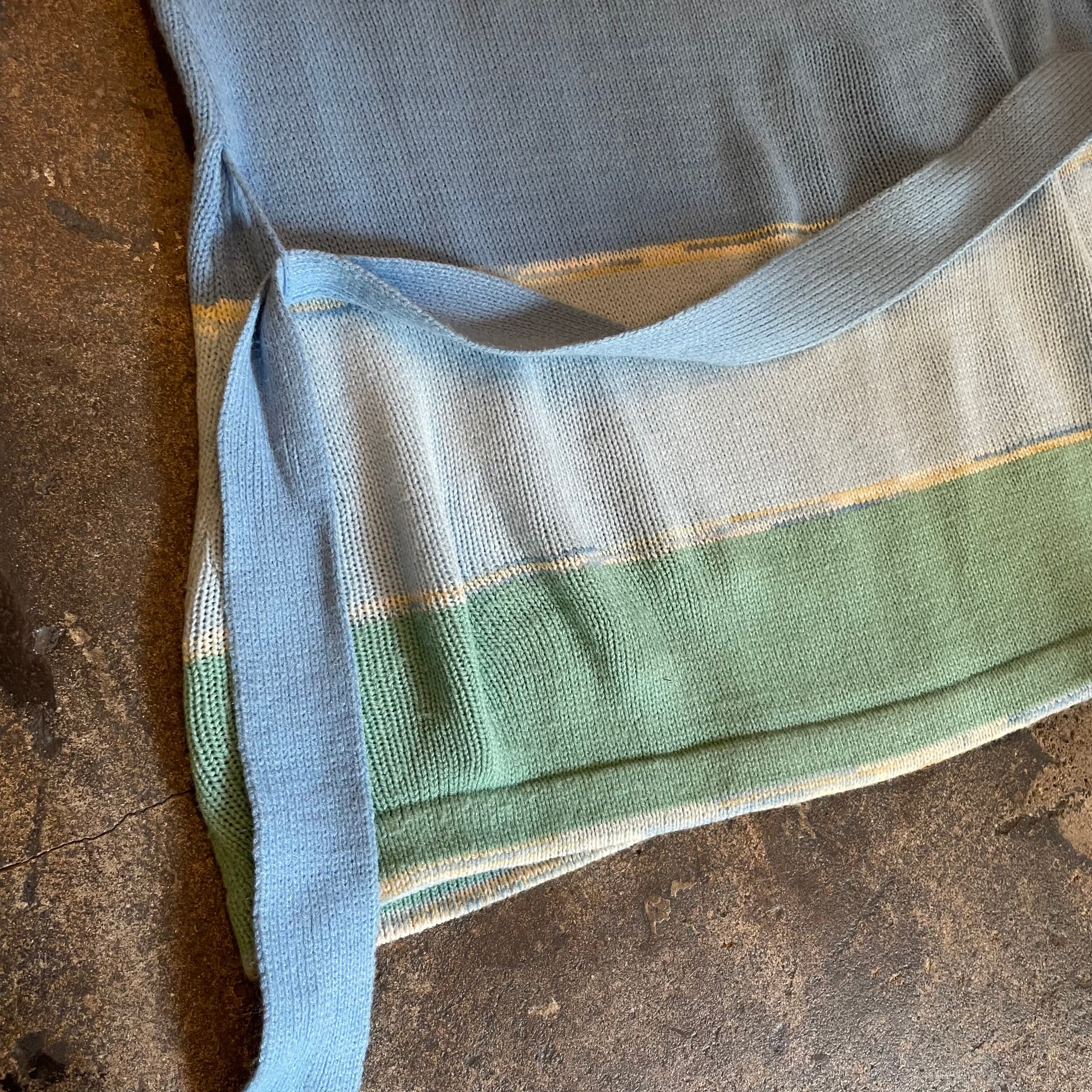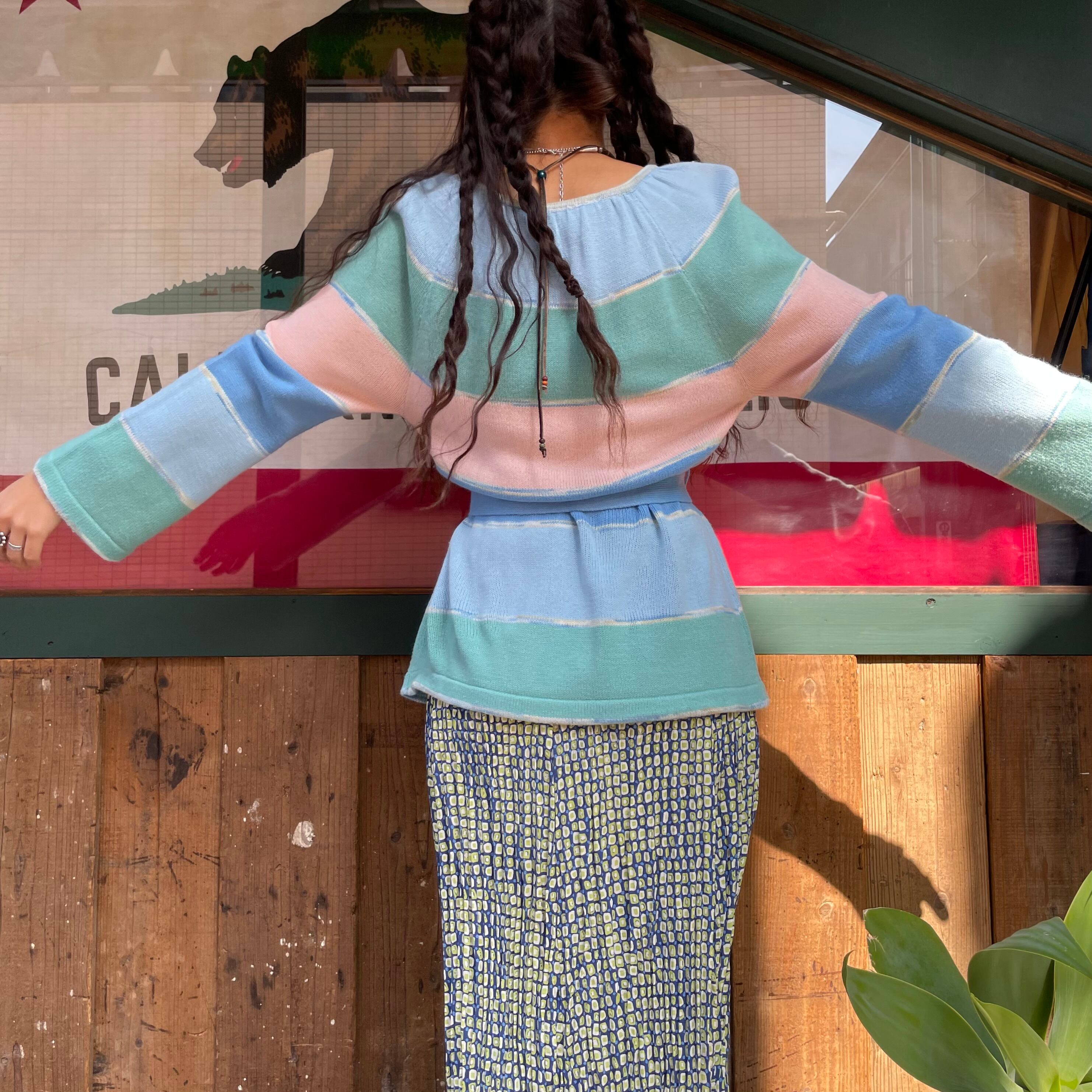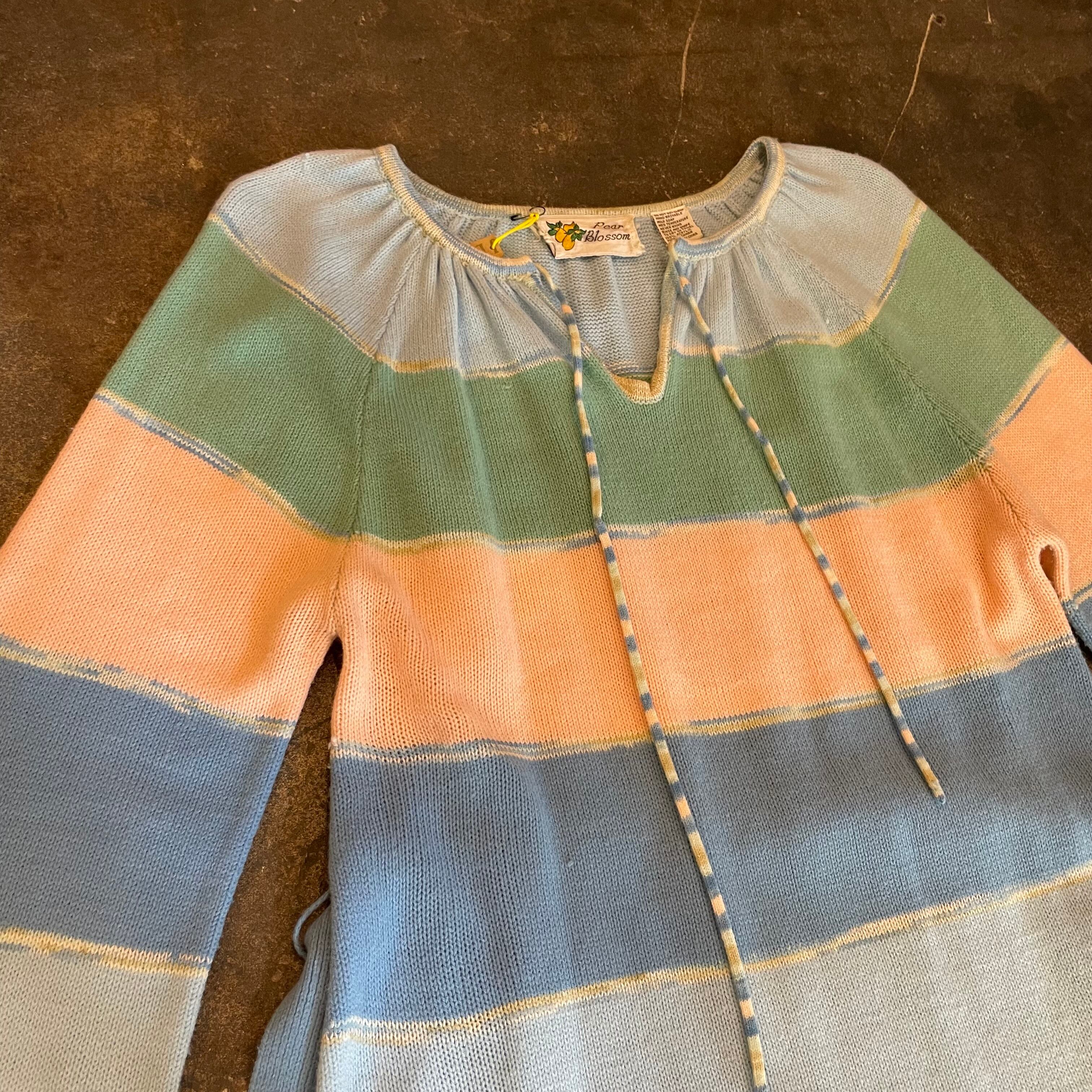 パステルカラーの太いボーダーがかわいいニットチュニックです。