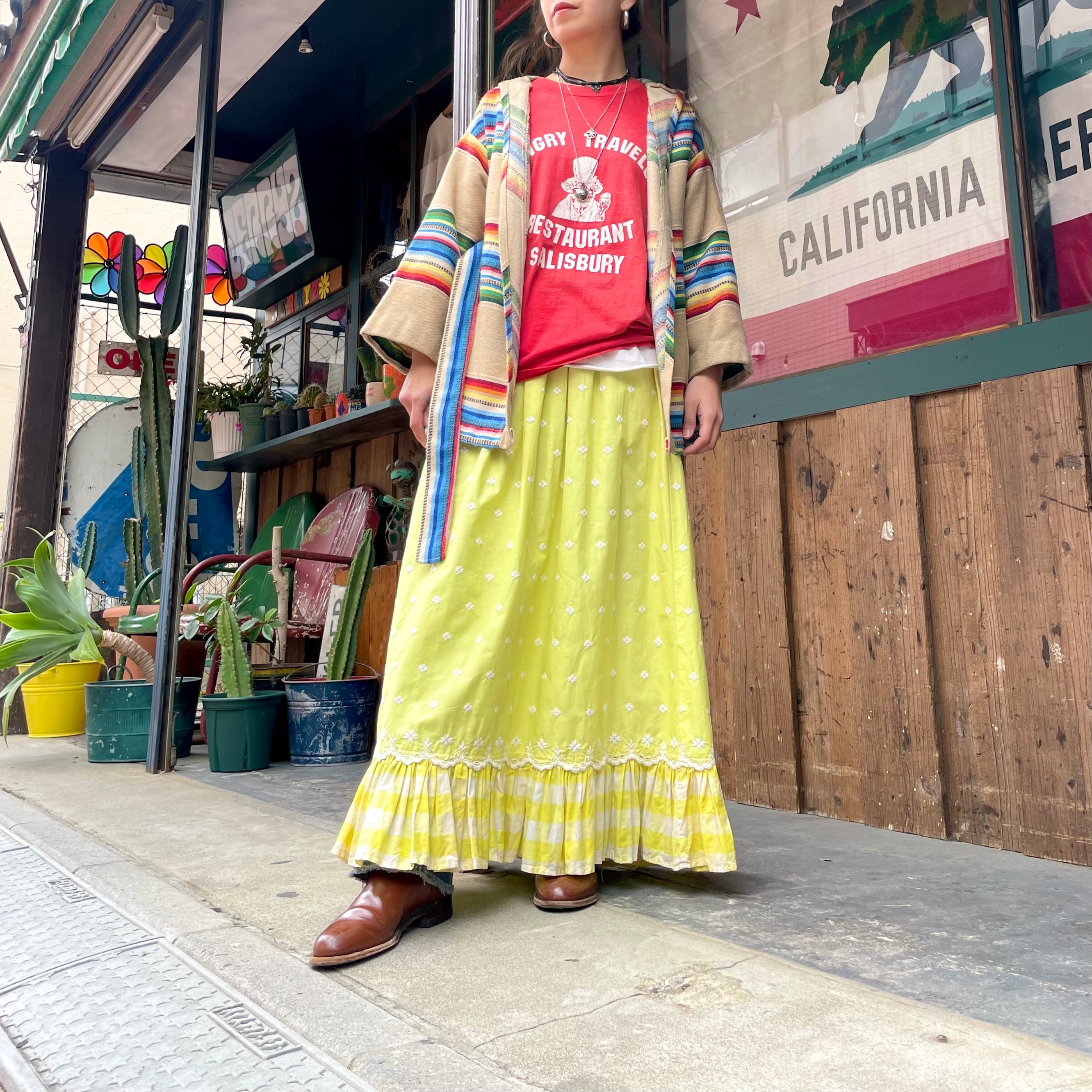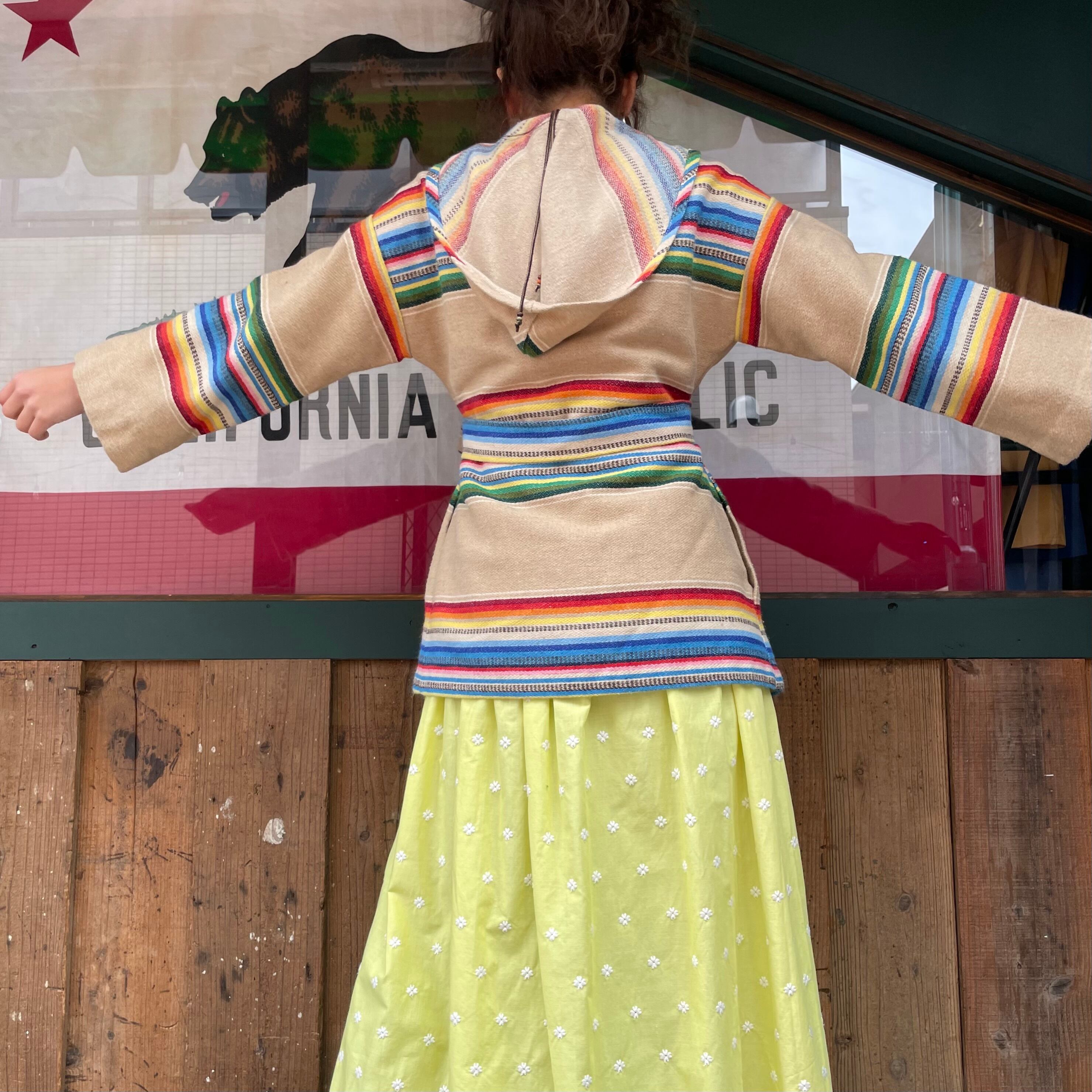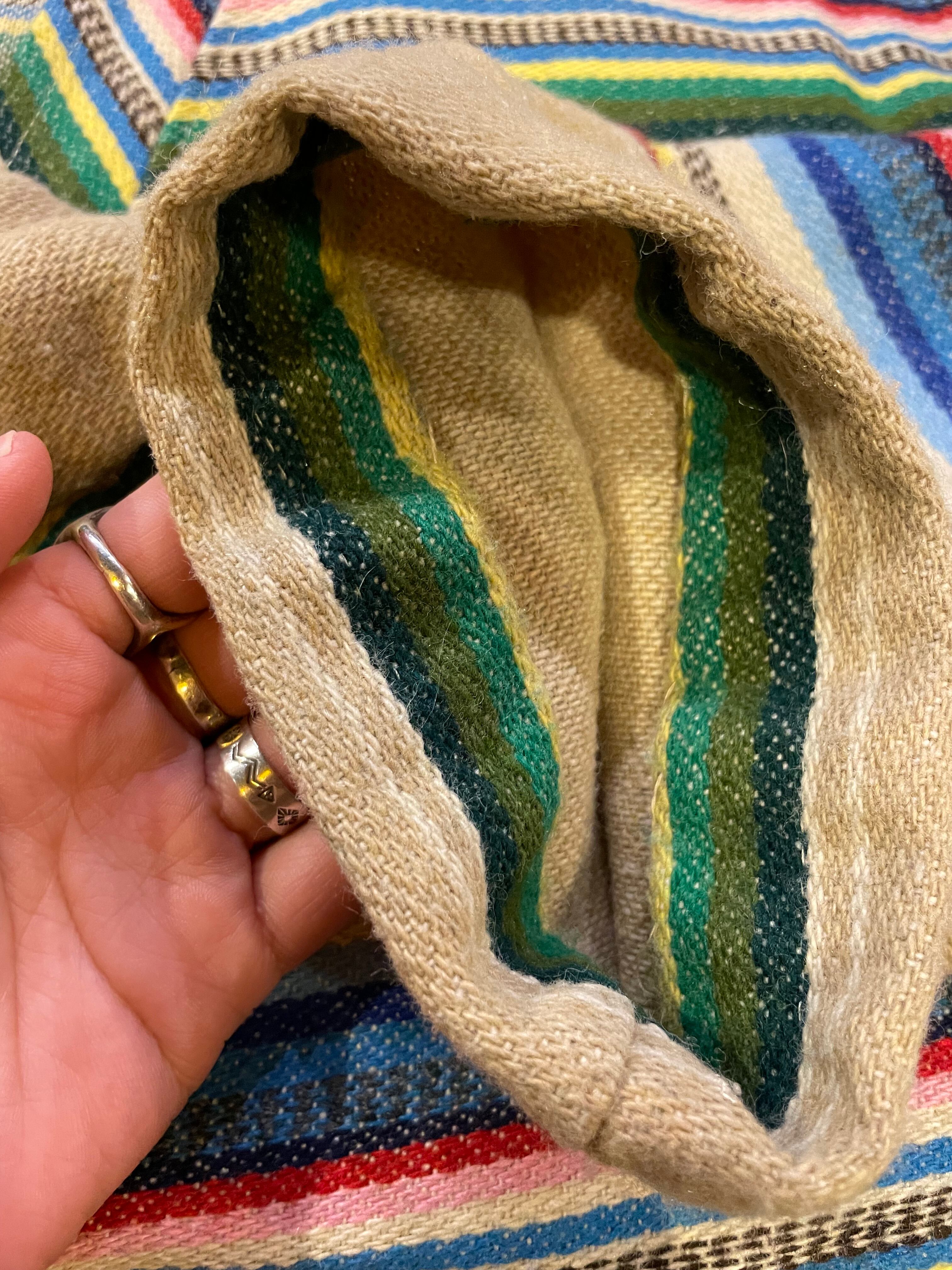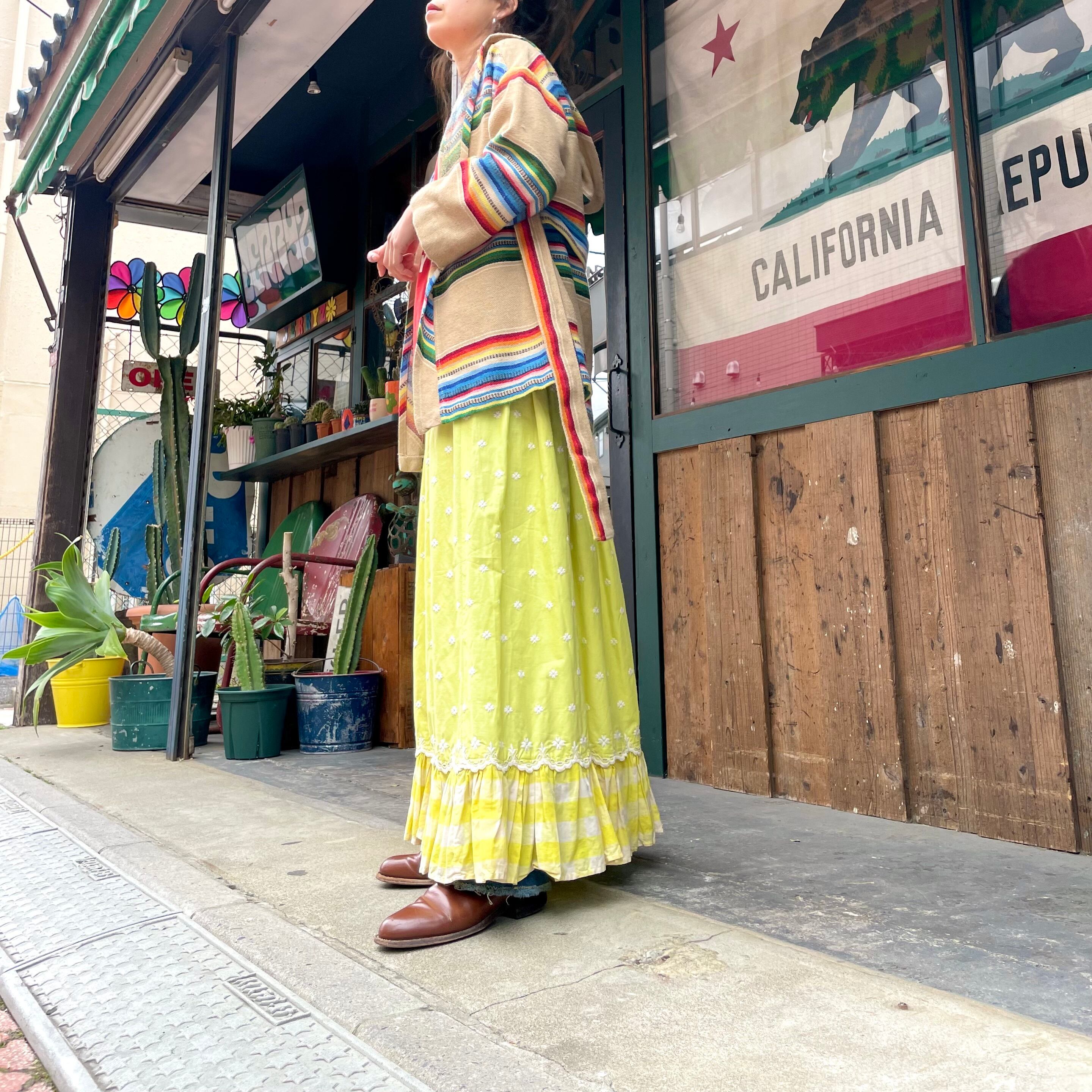 メキシカンラグのような模様がかわいいジャケットです。ベージュにカラフルなラインが映えていて派手すぎないですし春らしい一着です。