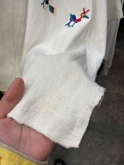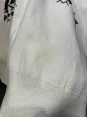 黄色いシミ多数、他にも薄い色移りや小さいシミ等写真に写りきっていない箇所もございます。