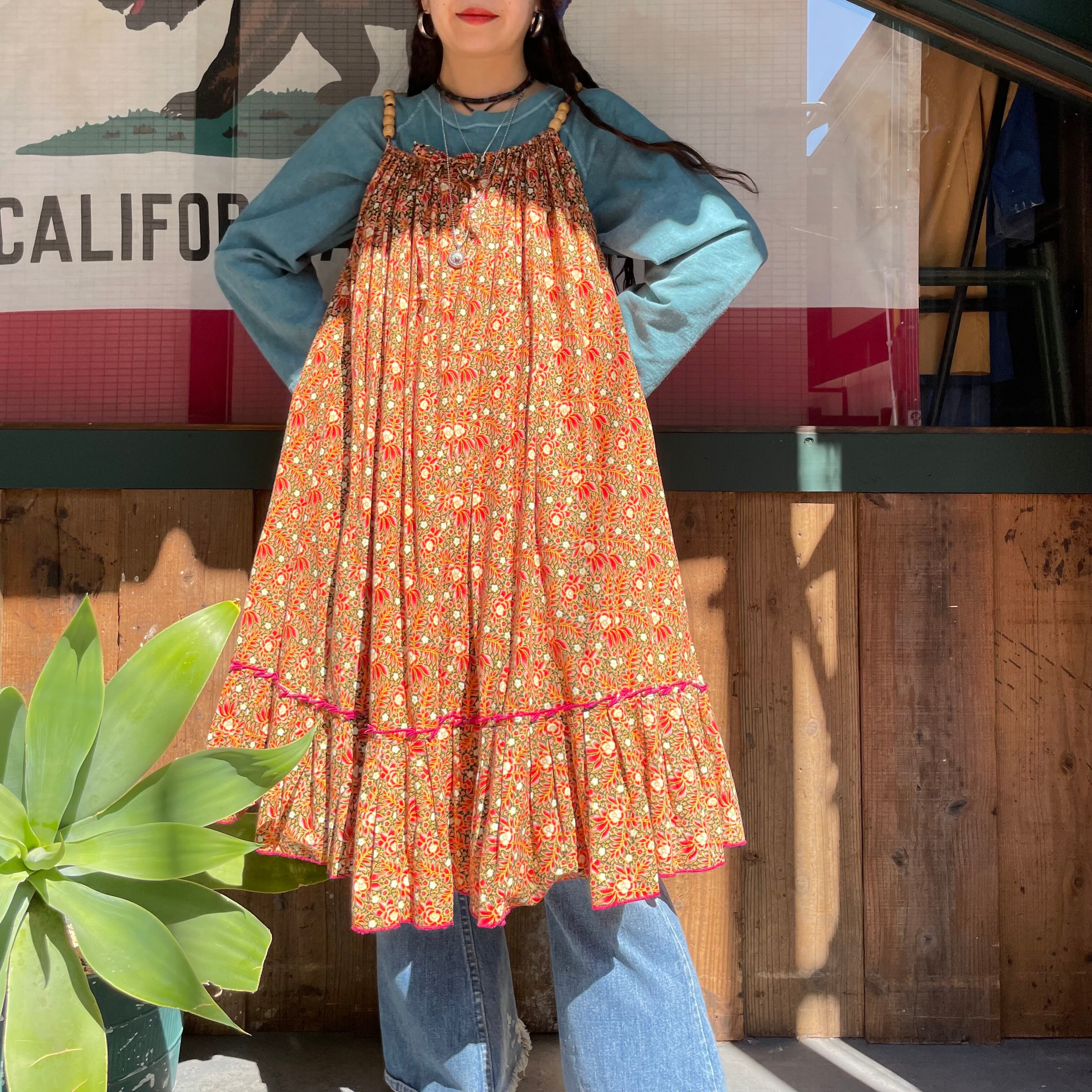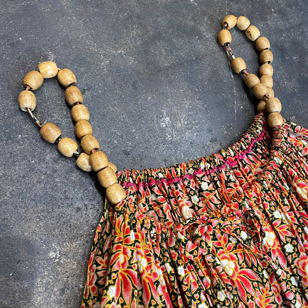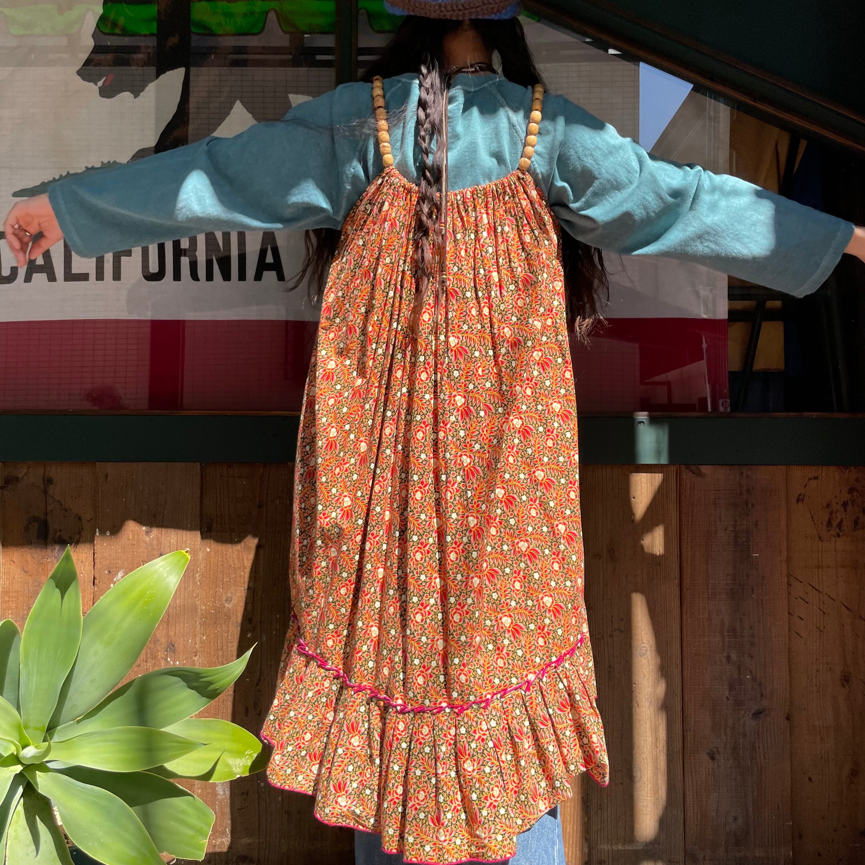肩のストラップ部分のウッドビーズがポイントになっているキャミソールワンピースです。