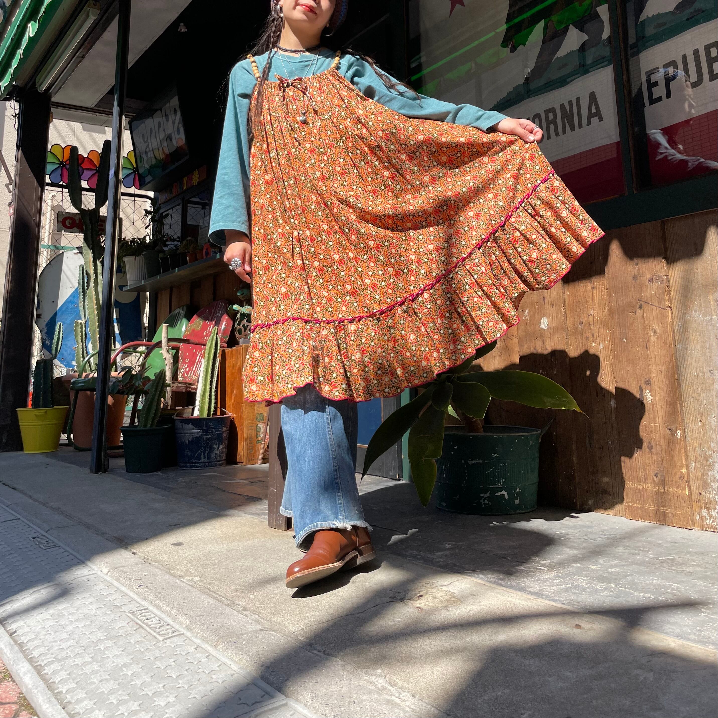 大人っぽい花柄ですがハッピーな雰囲気もありますし、布のボリューム感ときれいに広がるシルエットが良いですね。