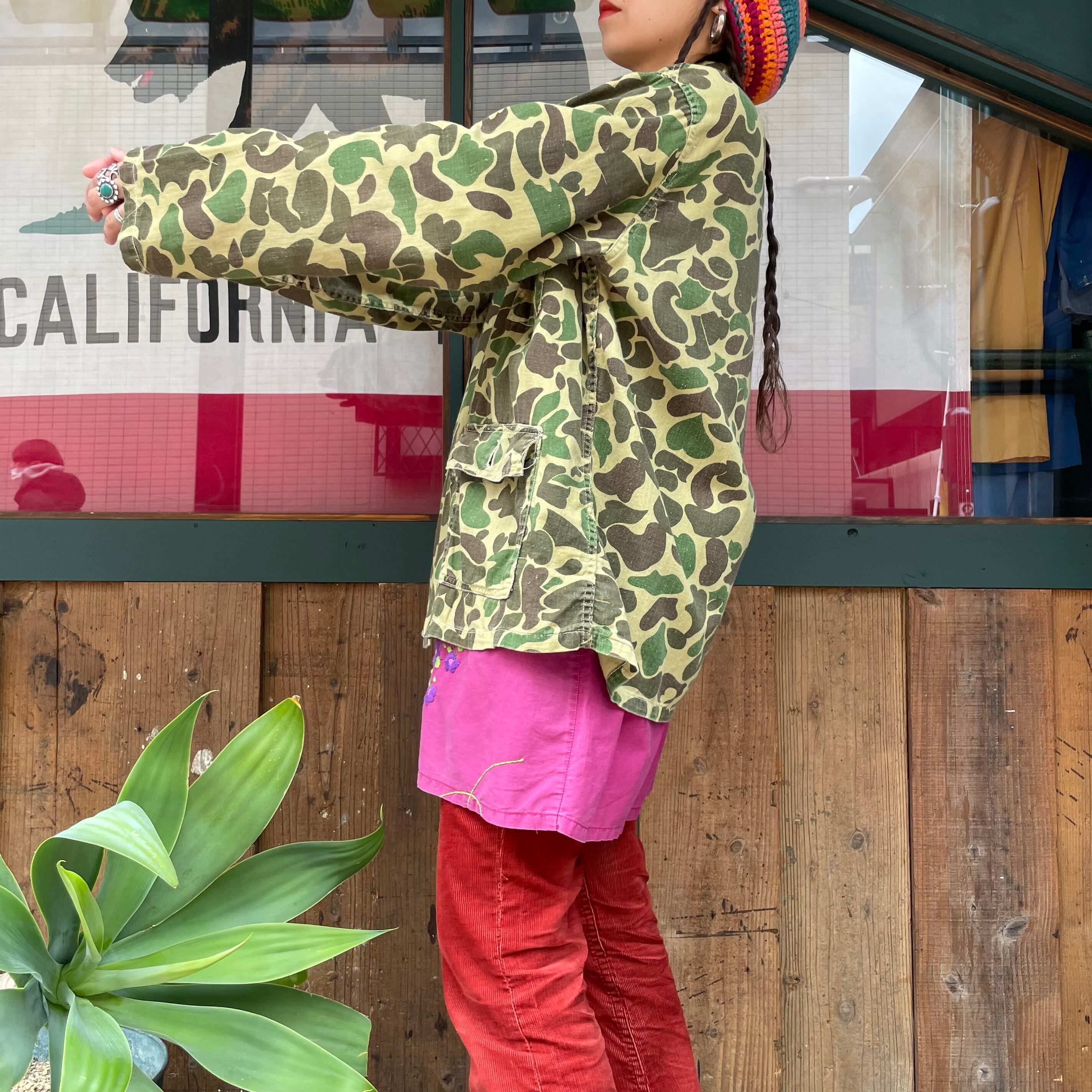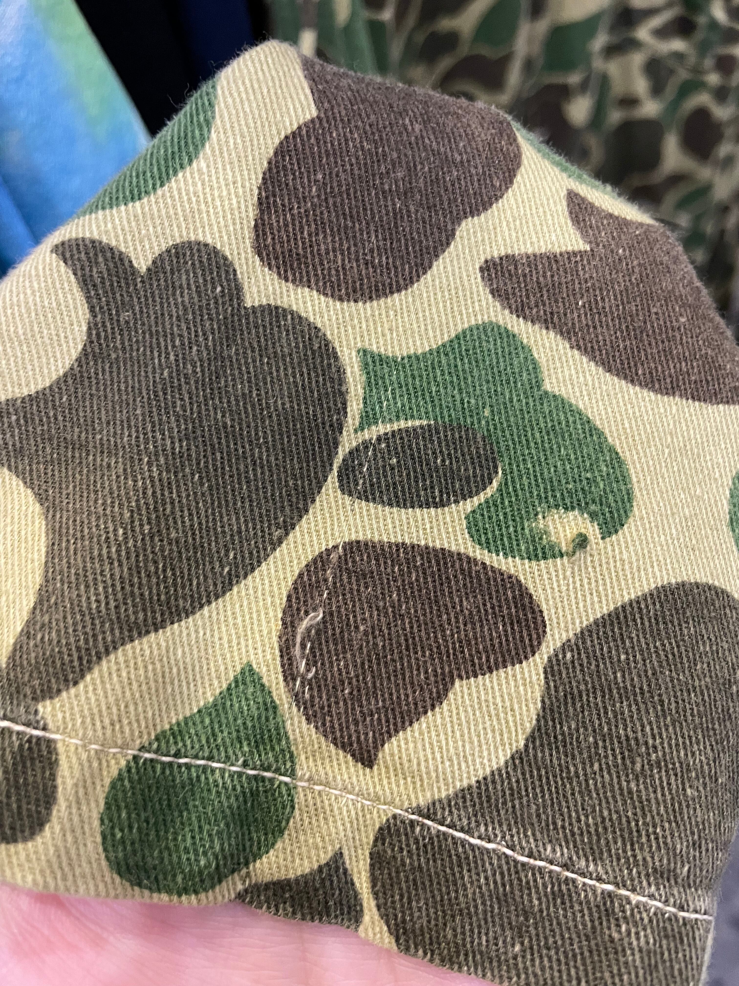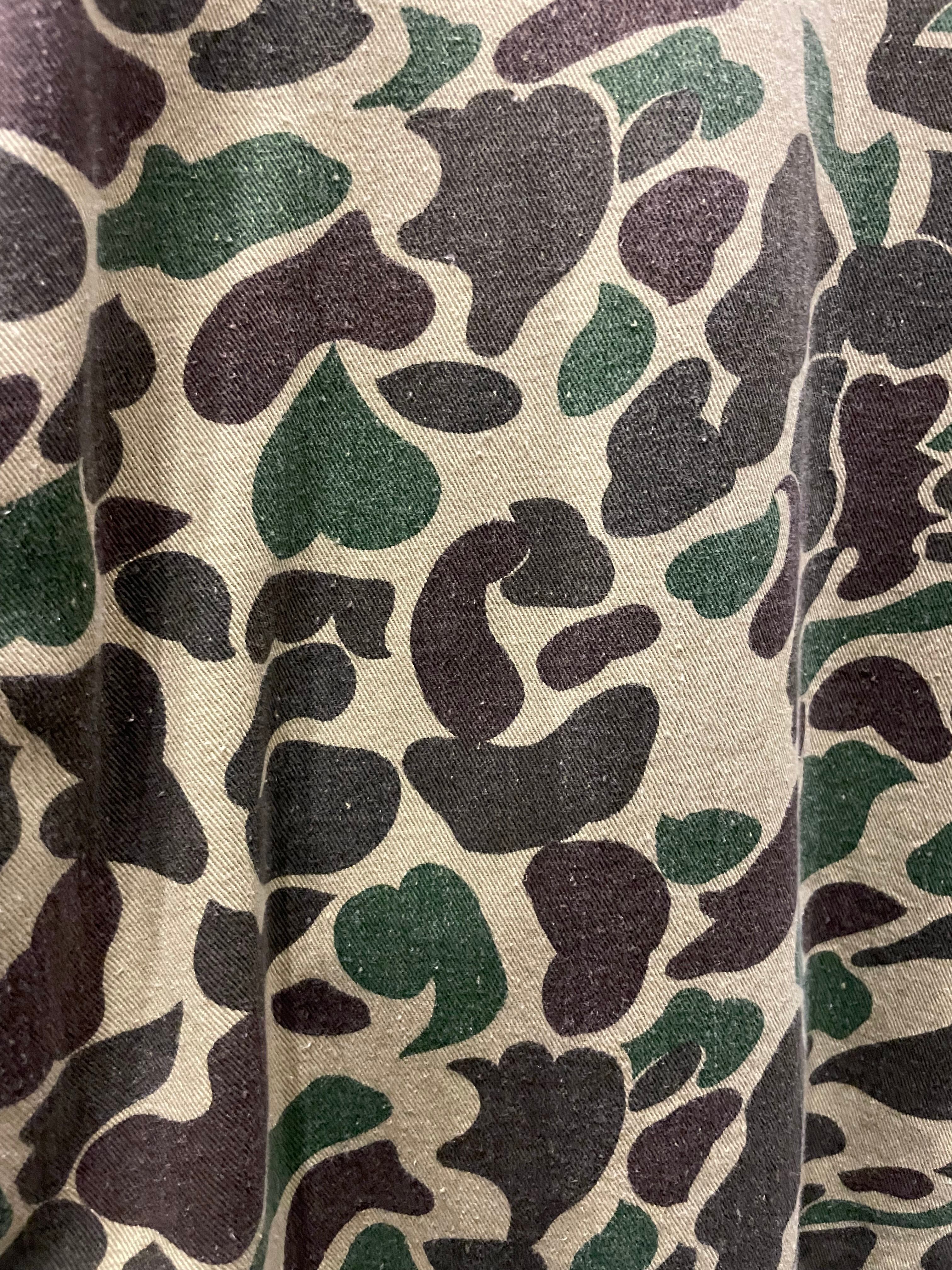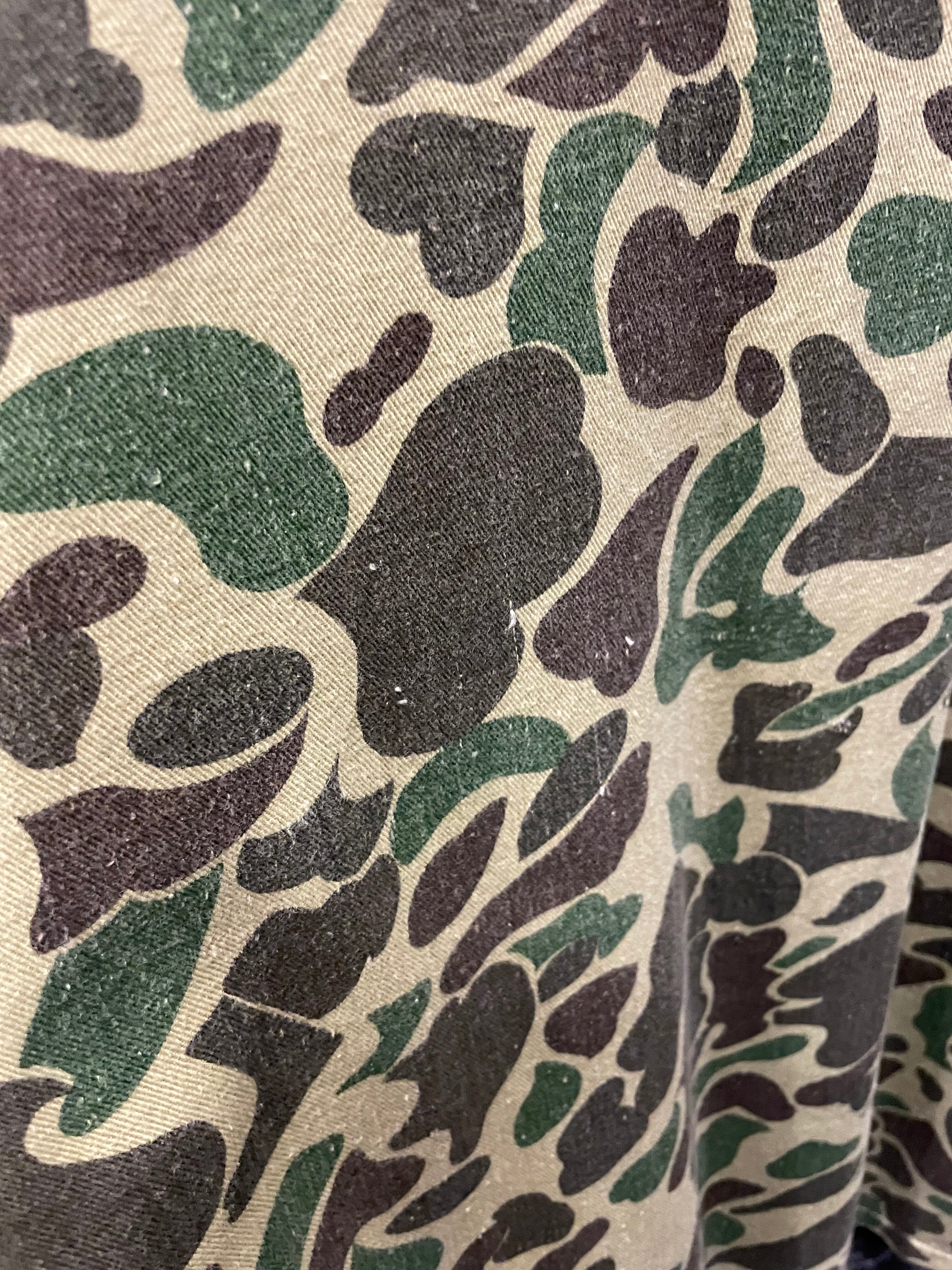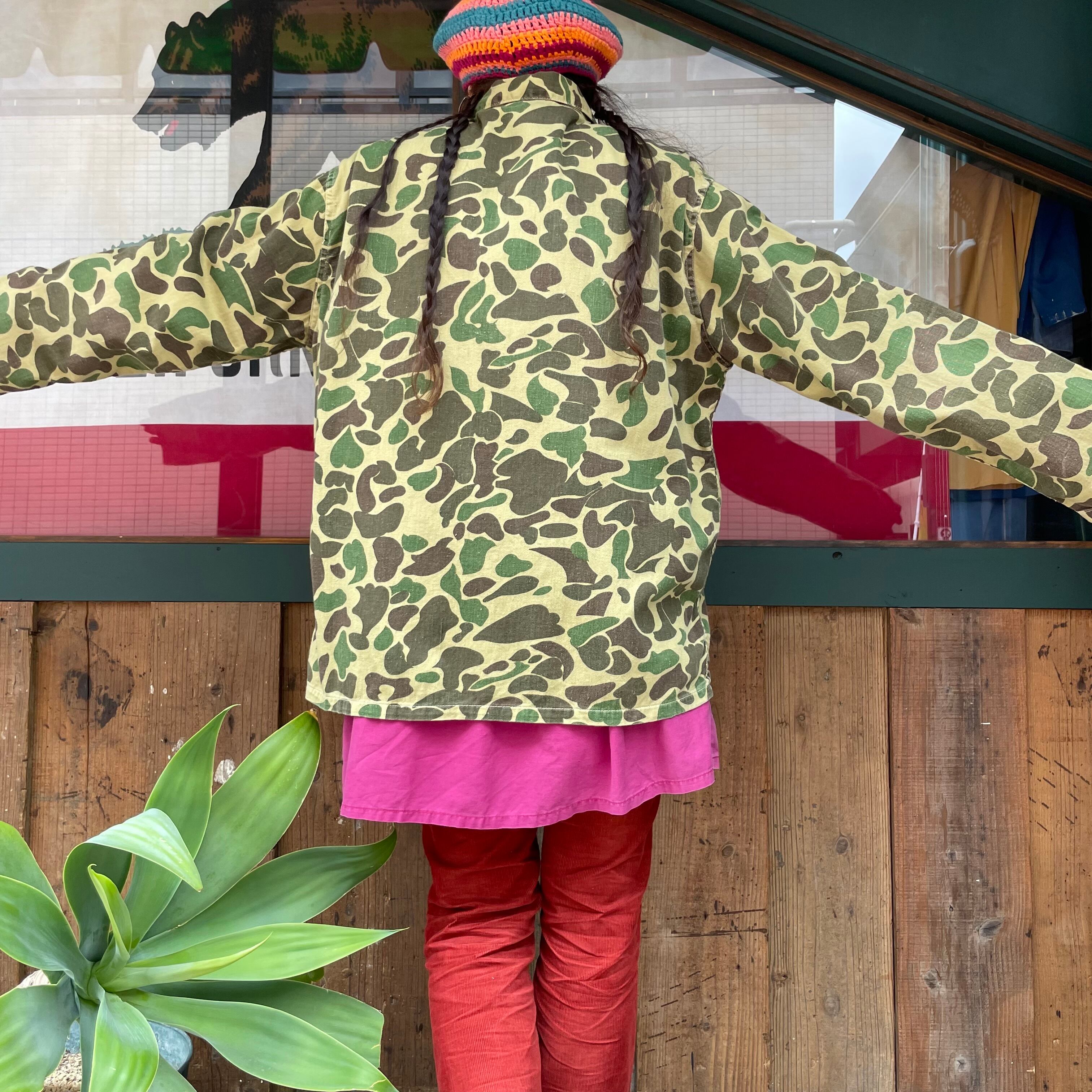 ダックハンターカモ柄が良い雰囲気のジャケットです。薄手の素材で柔らかくて気軽に羽織れて良い感じですね。