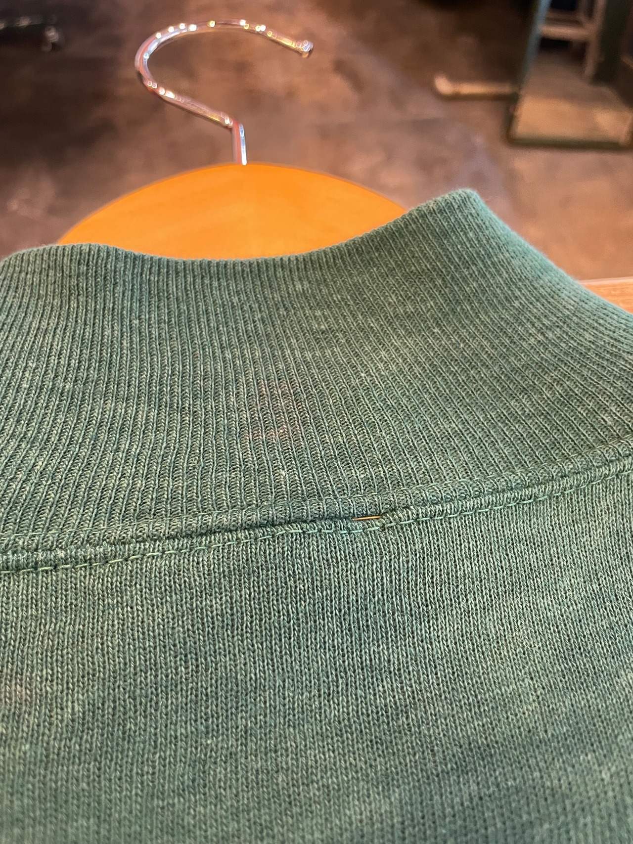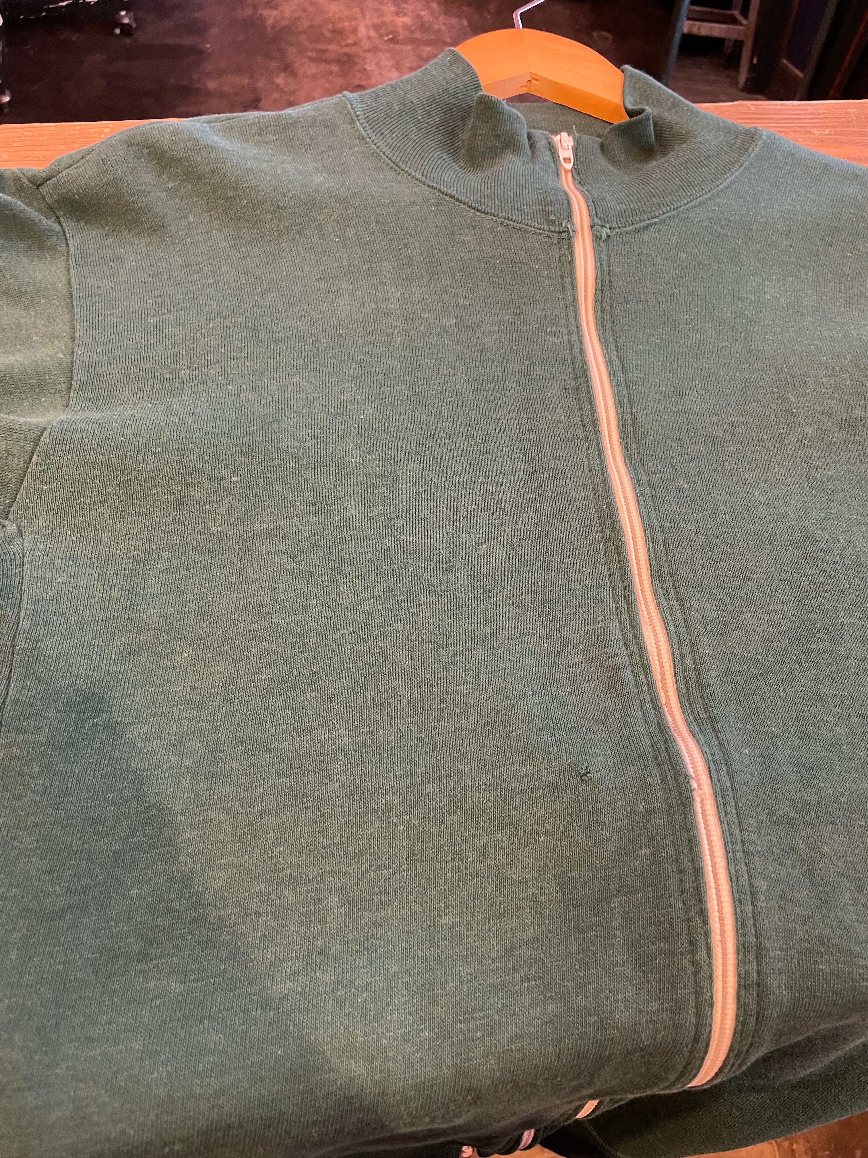 深い緑色がとても良い雰囲気の70年代USA製チャンピオンのジップアップスウェットです。