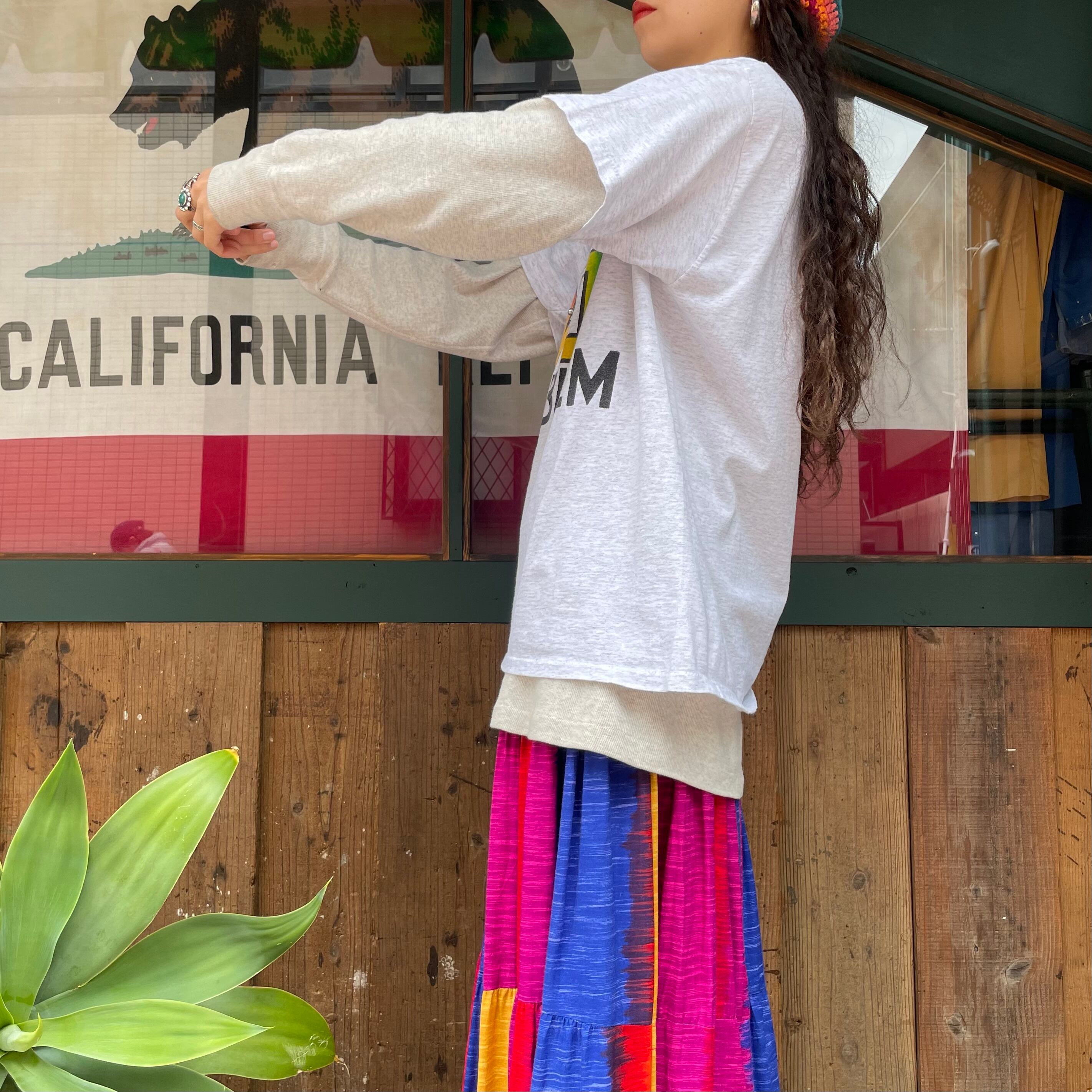 グレー地にラスタカラーのメッセージがとても良い感じのTシャツです。