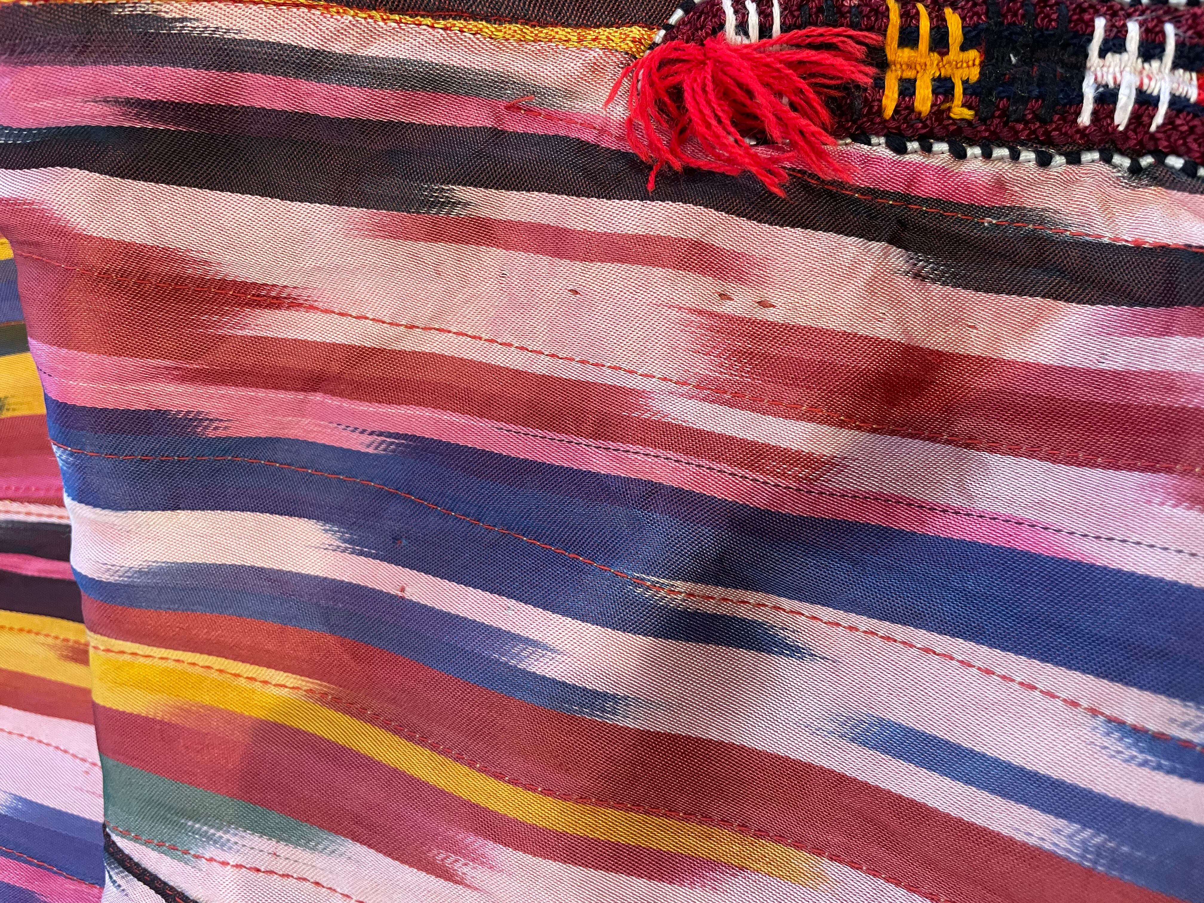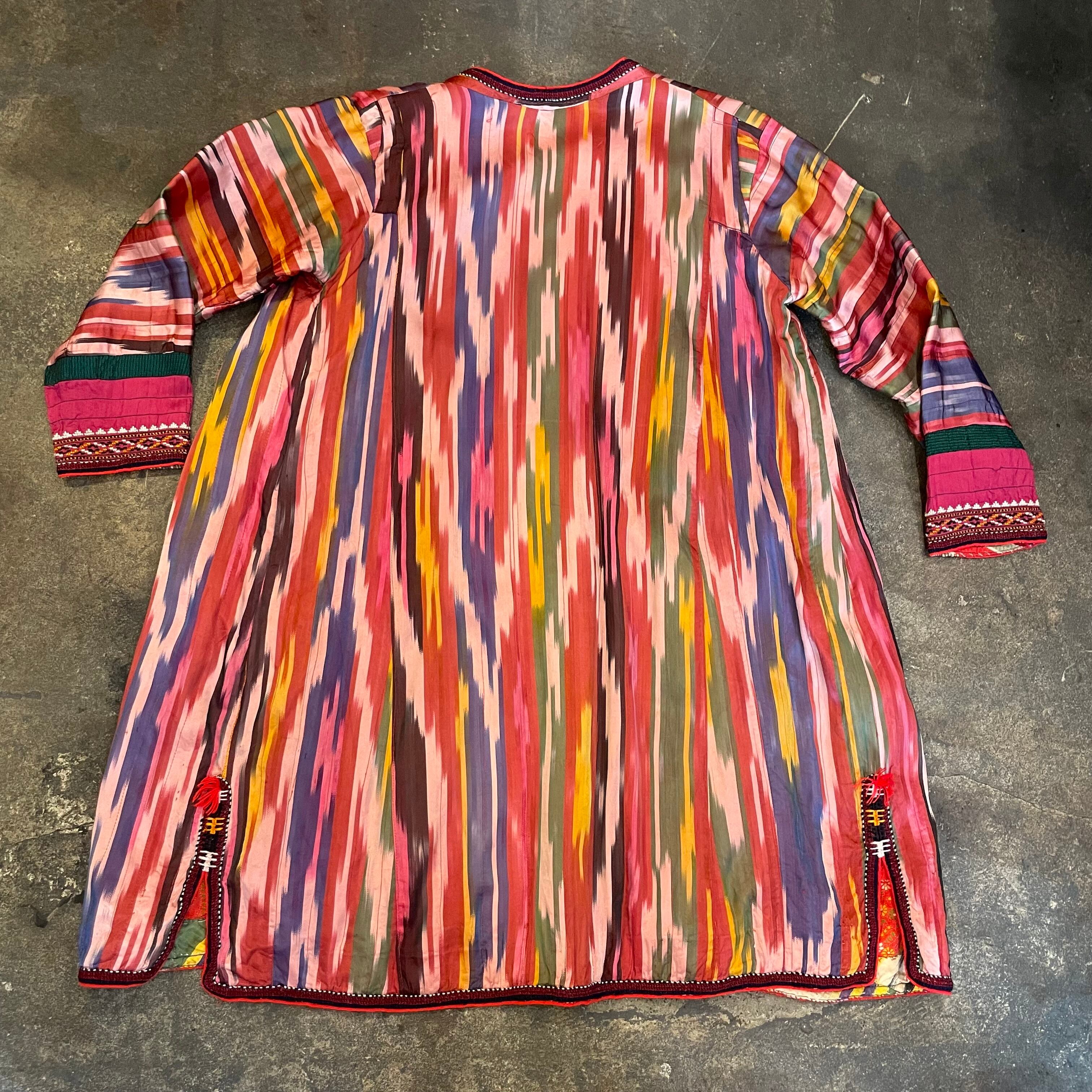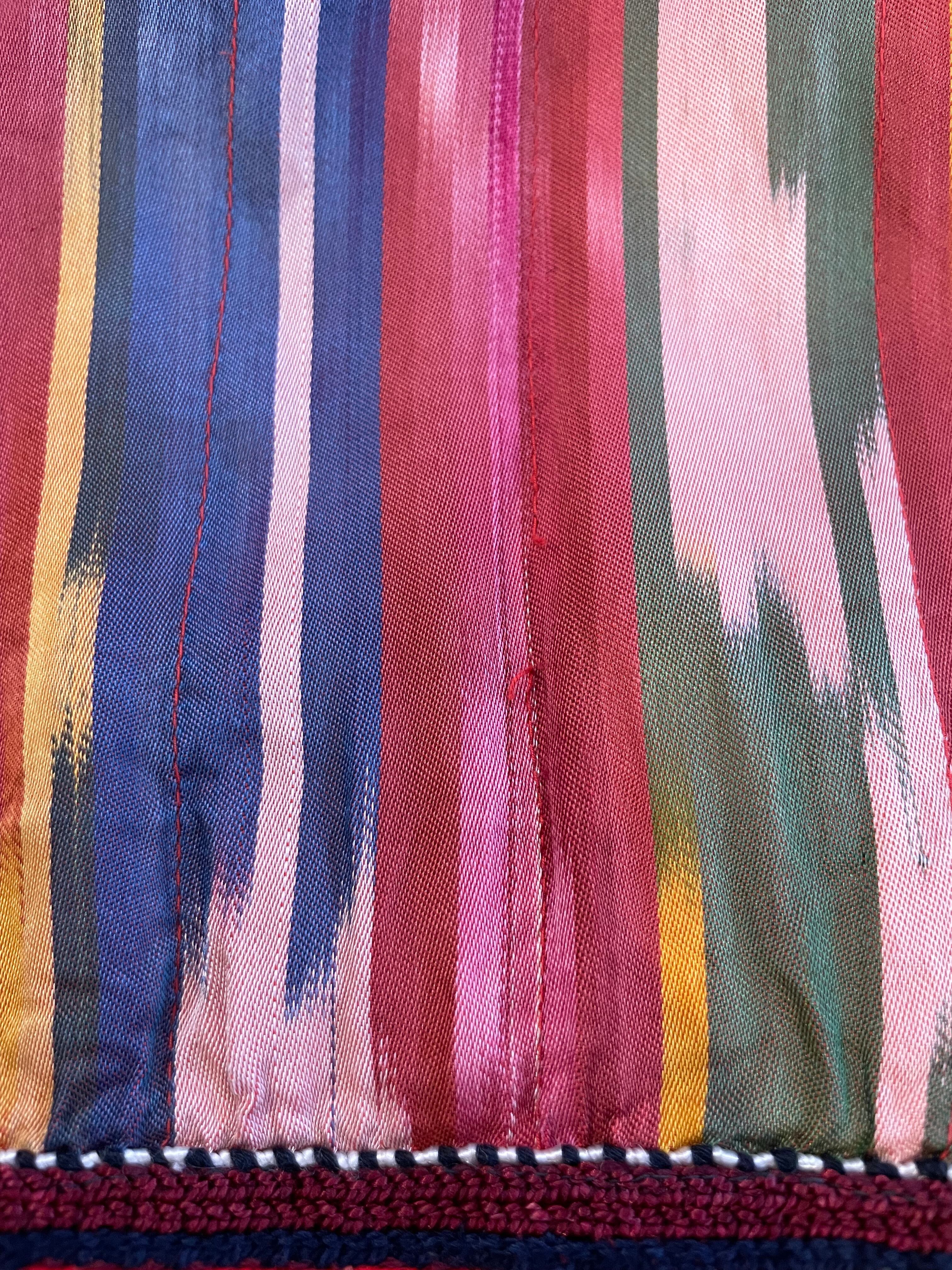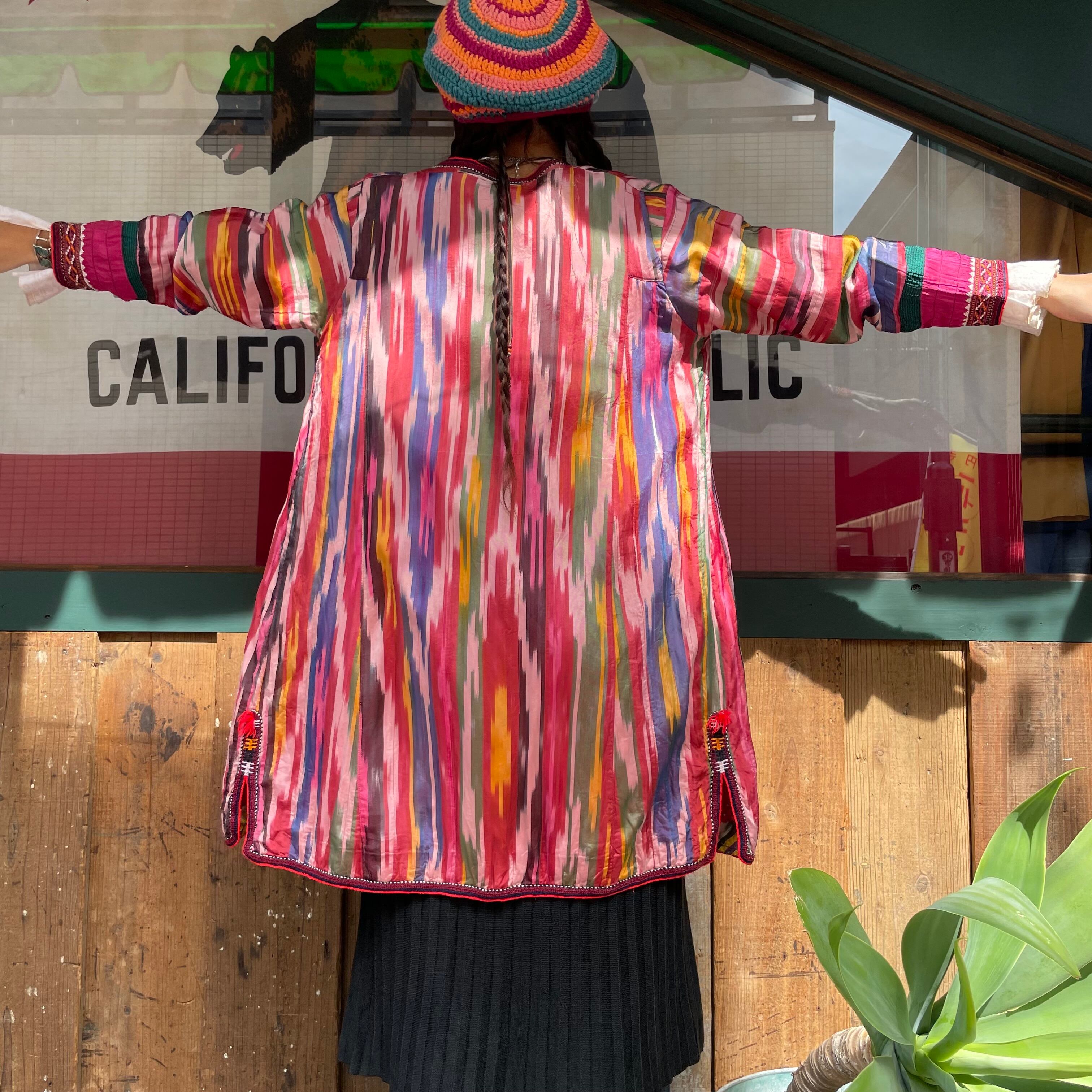 グアテマラっぽい色味や模様で裏地はレトロな花柄で、手縫いを織り交ぜたハンドメイドの感じが雰囲気があって素敵ですね。シンプルなワンピースに羽織ったり、プリントTシャツとデニムでラフに羽織ったりしてもかわいいですし、大きな花柄など柄物と合わせてサイケデリックなコーディネートにも良さそうですし、ボーダーやストライプやビビットカラーのアイテムと合わせたり、いろいろお楽しみ頂けると思います!