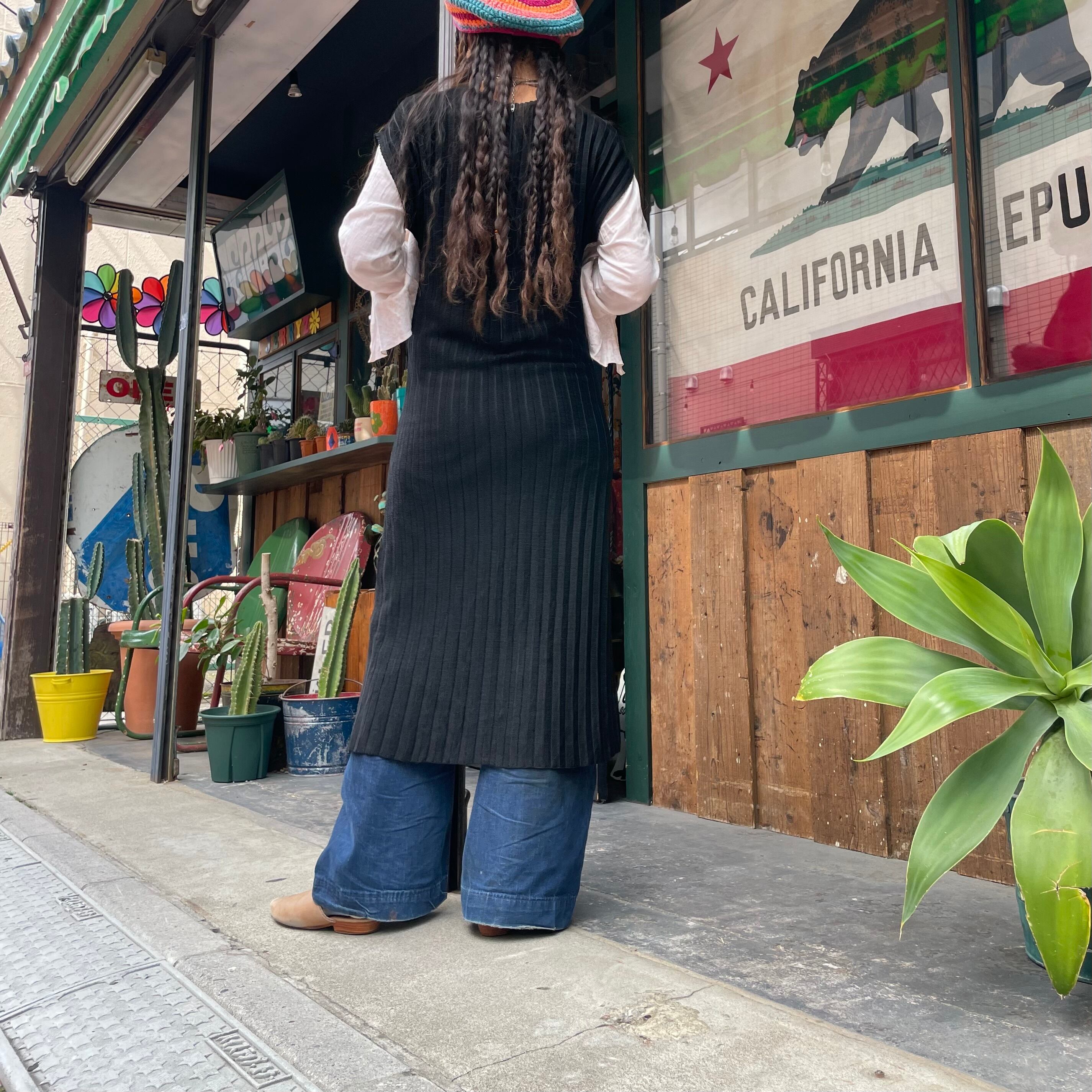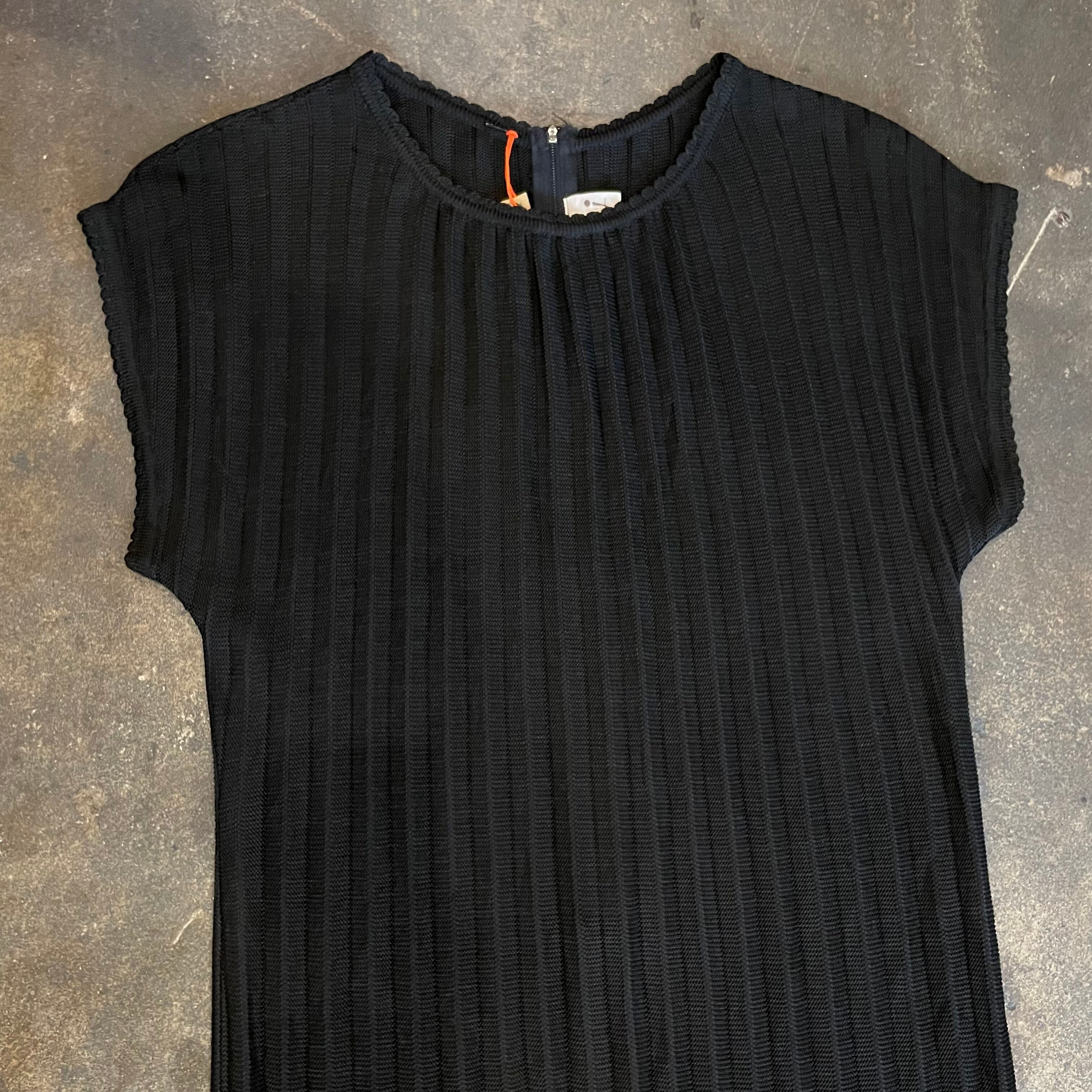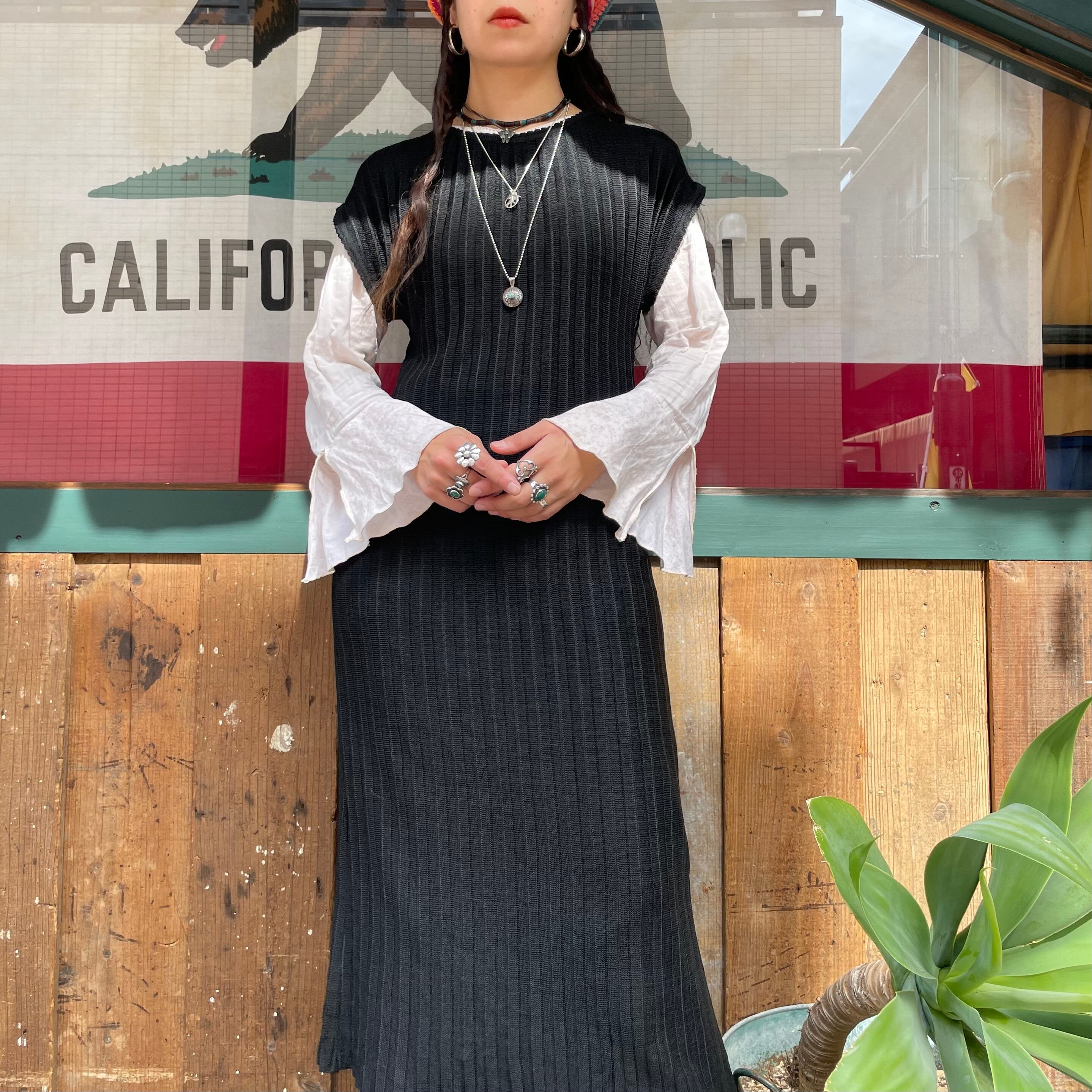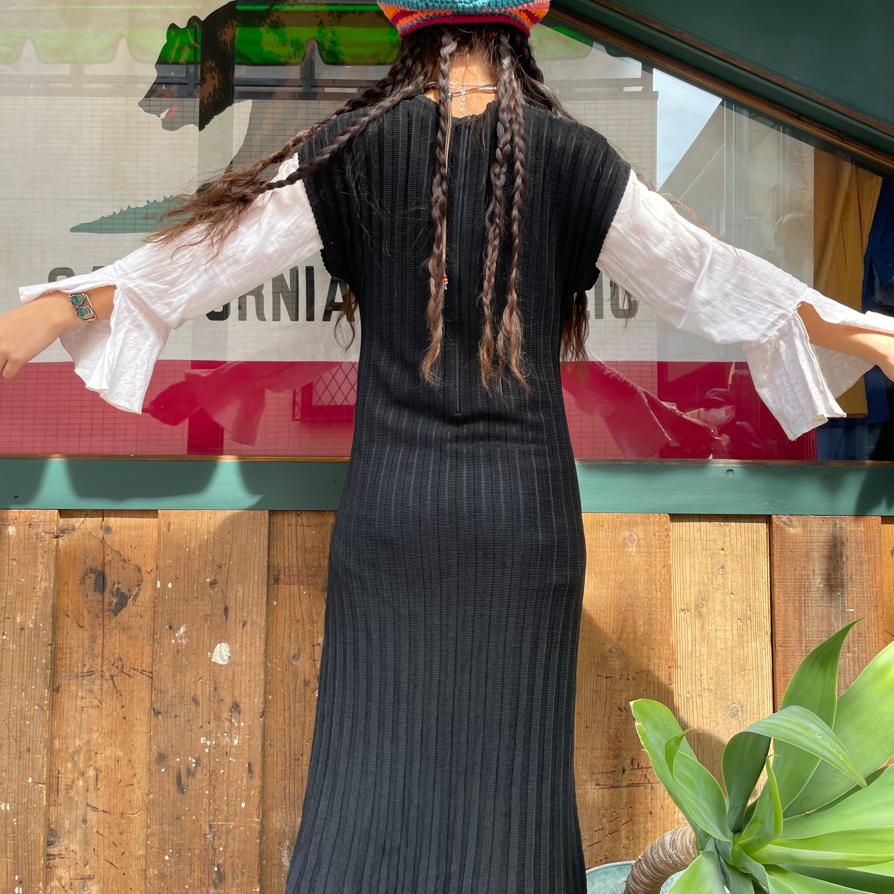 真っ黒でシンプルながら細かいディテールが素敵なニットワンピースです。
