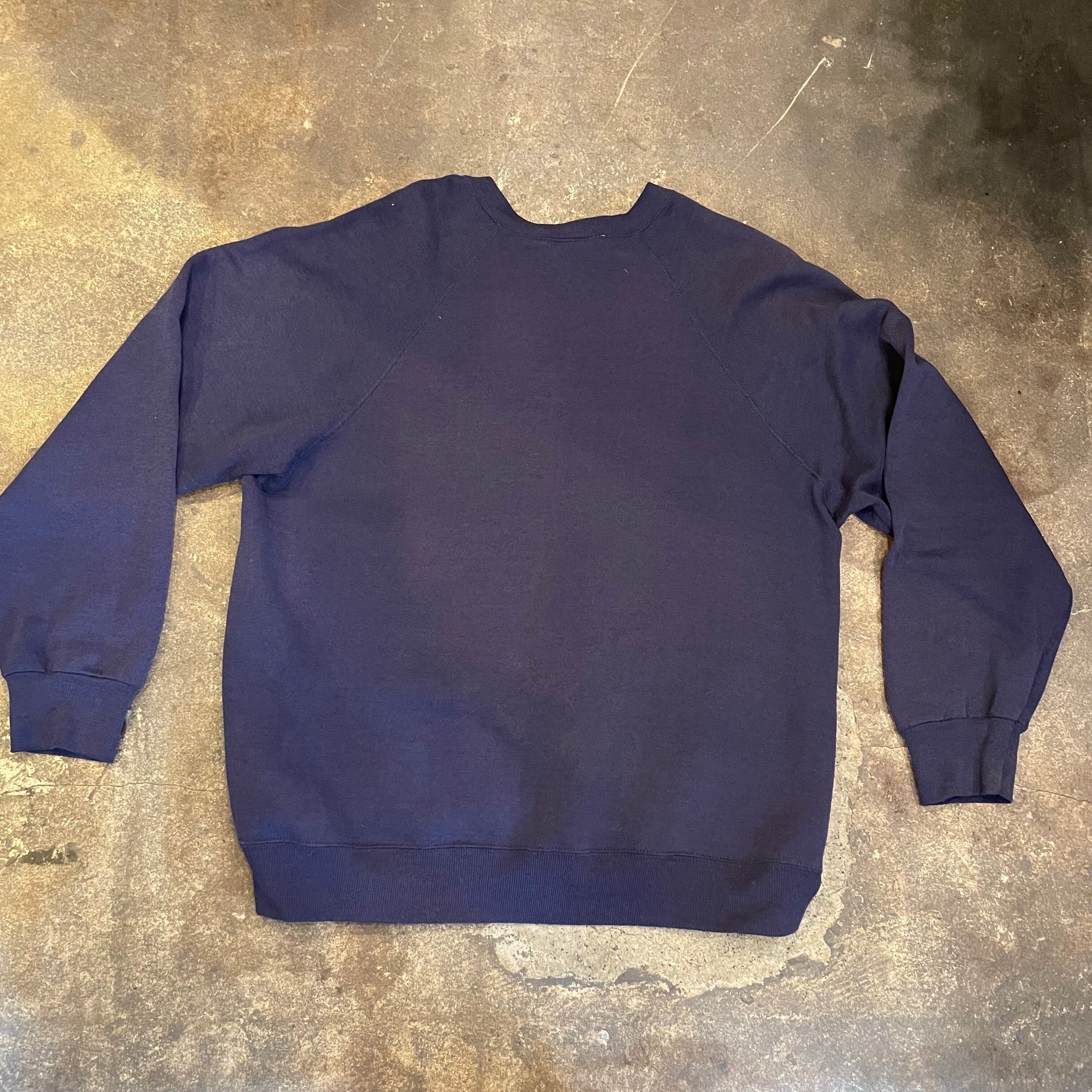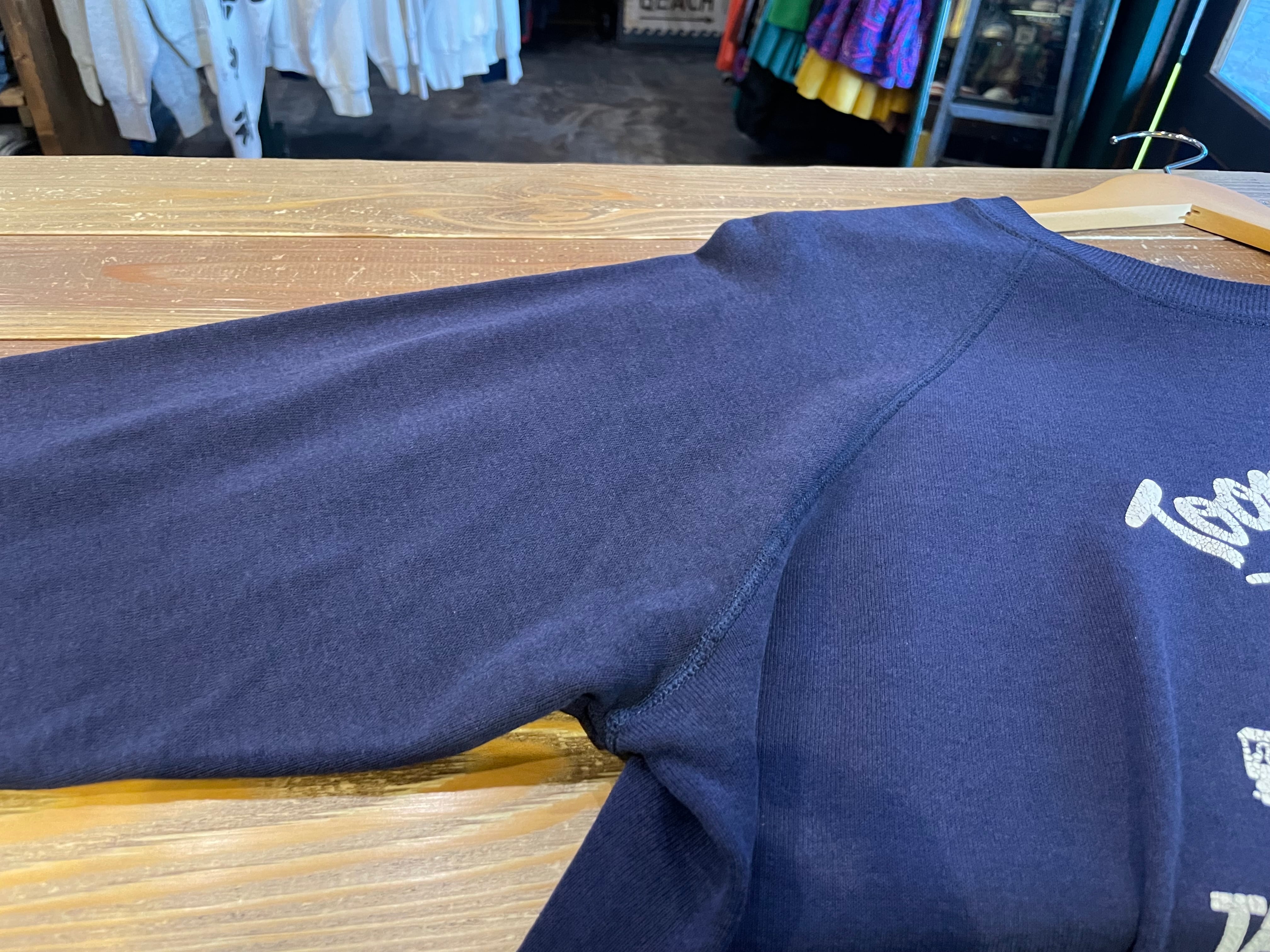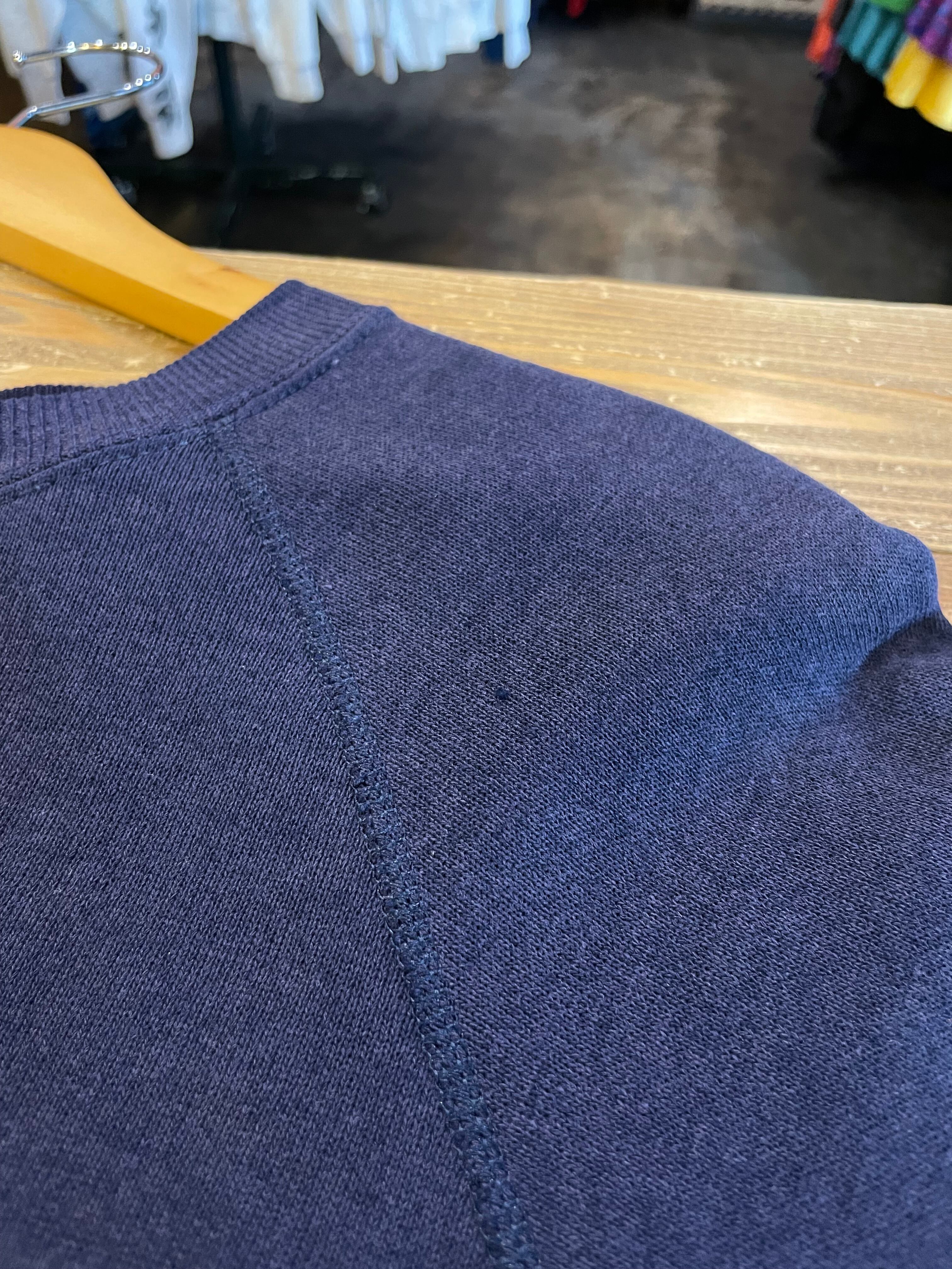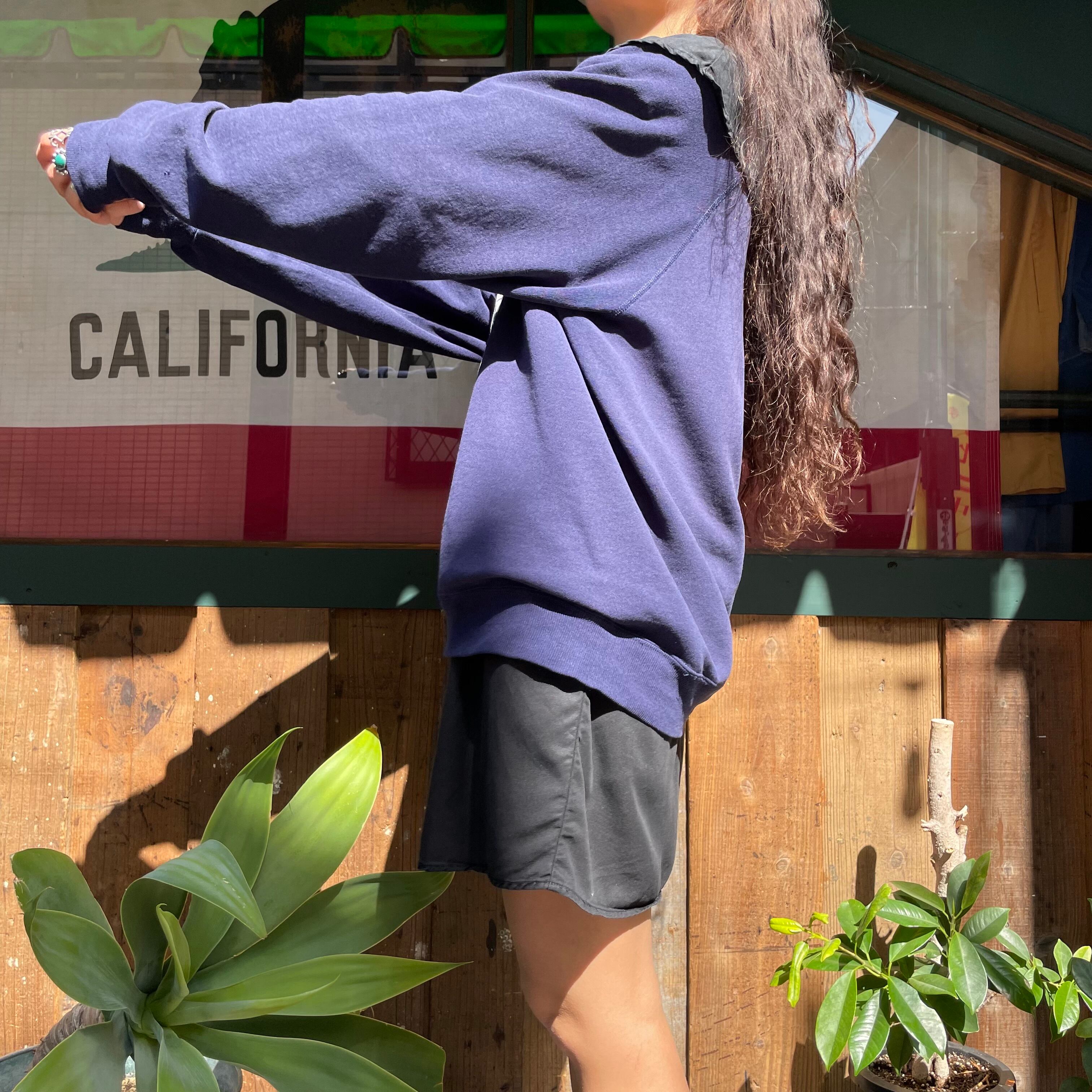 ネイビーに白のプリントがシンプルですが映えていてかわいい80年代頃USA製のスウェットです。