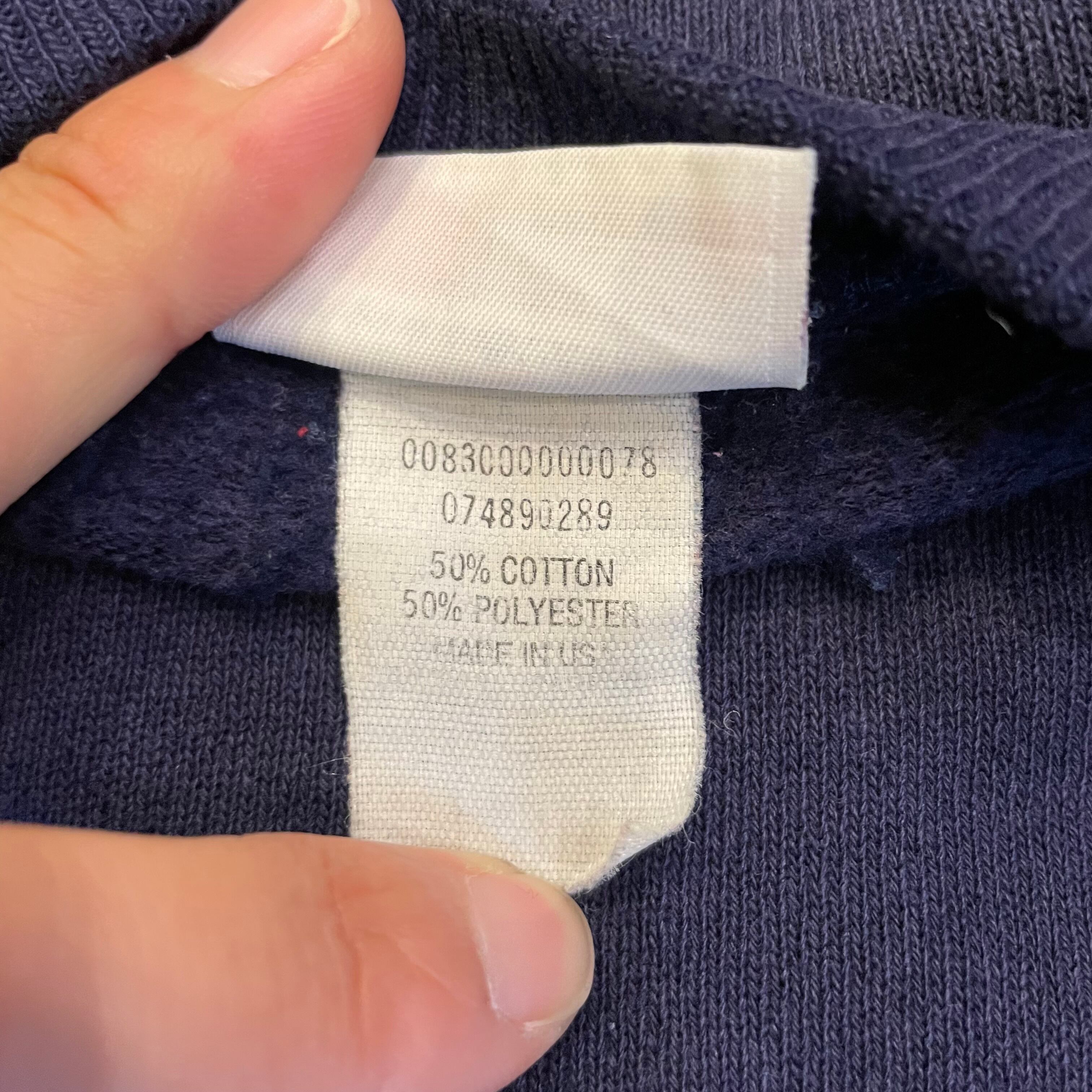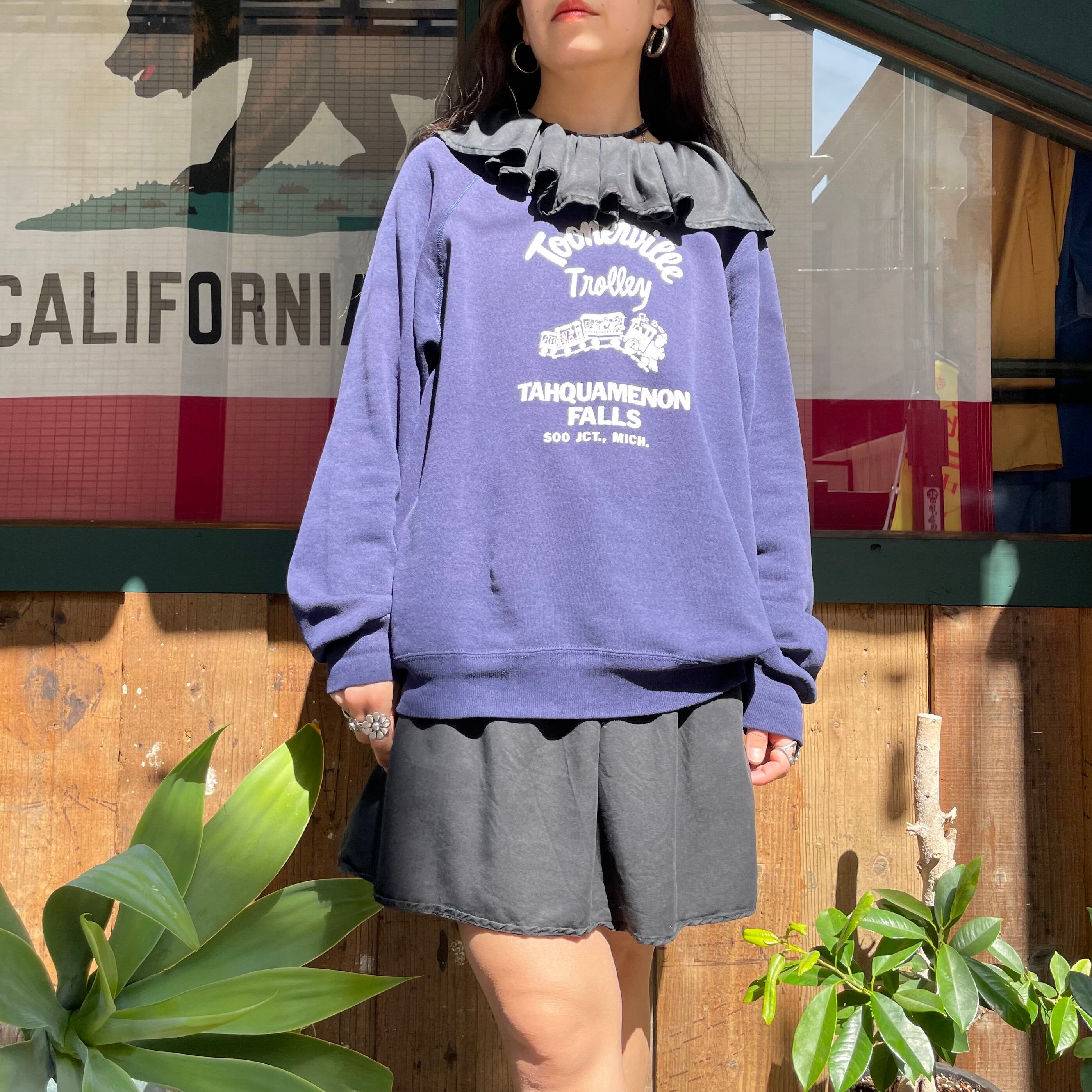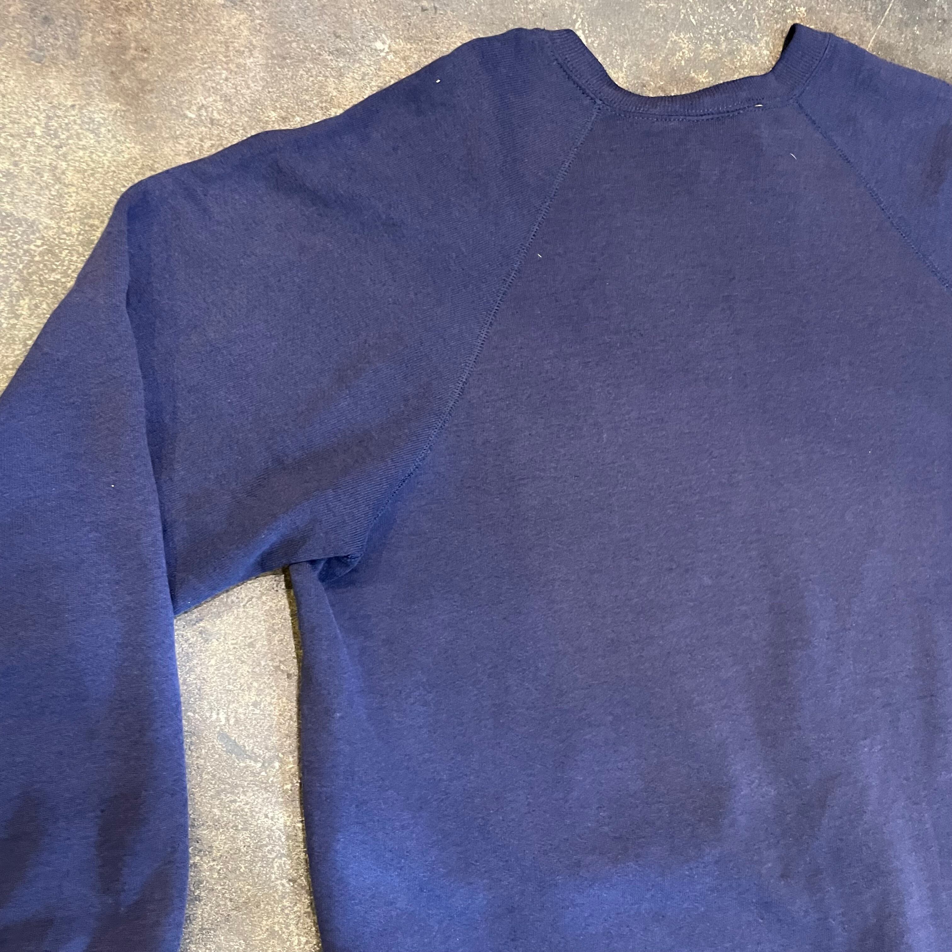 ネイビーに白のプリントがシンプルですが映えていてかわいい80年代頃USA製のスウェットです。