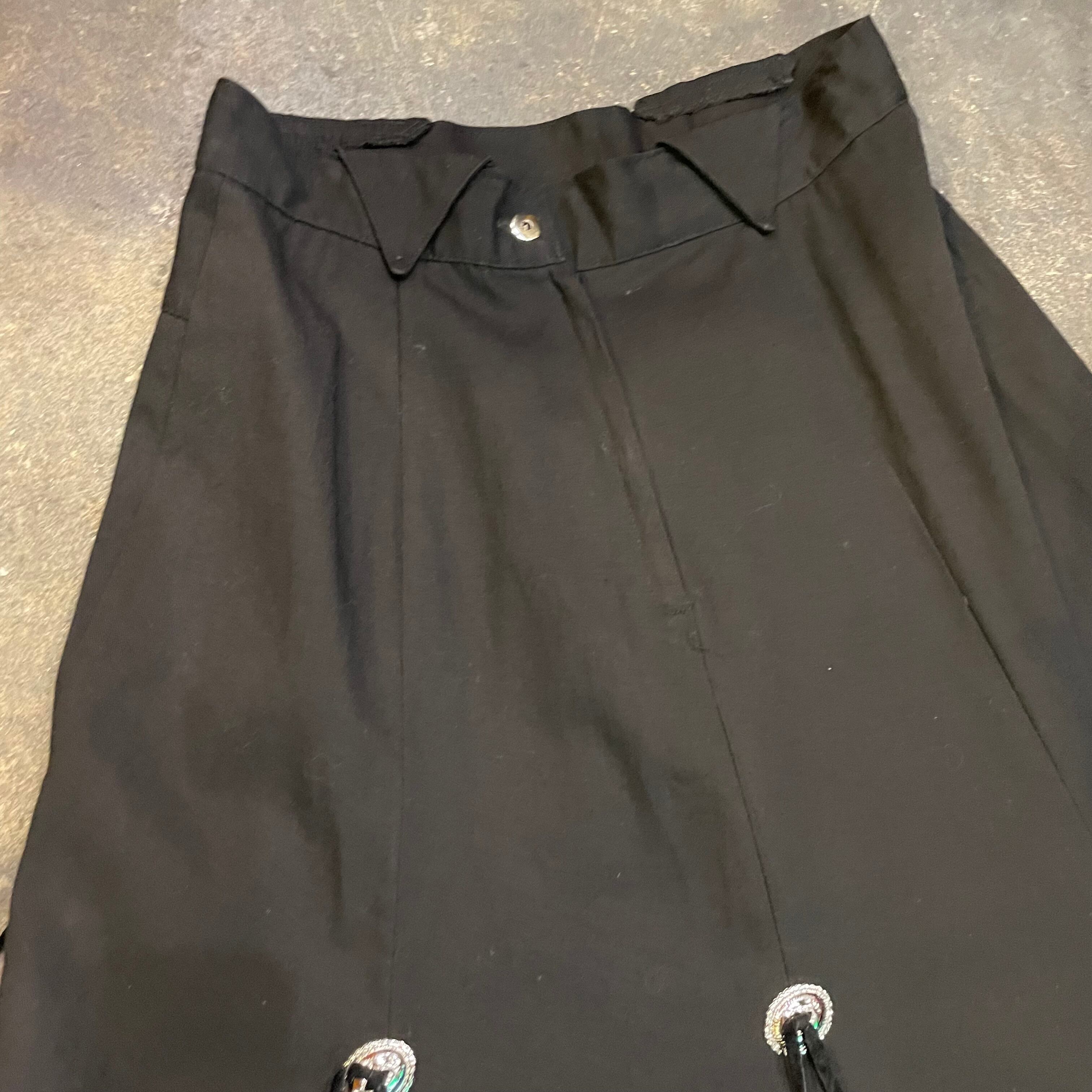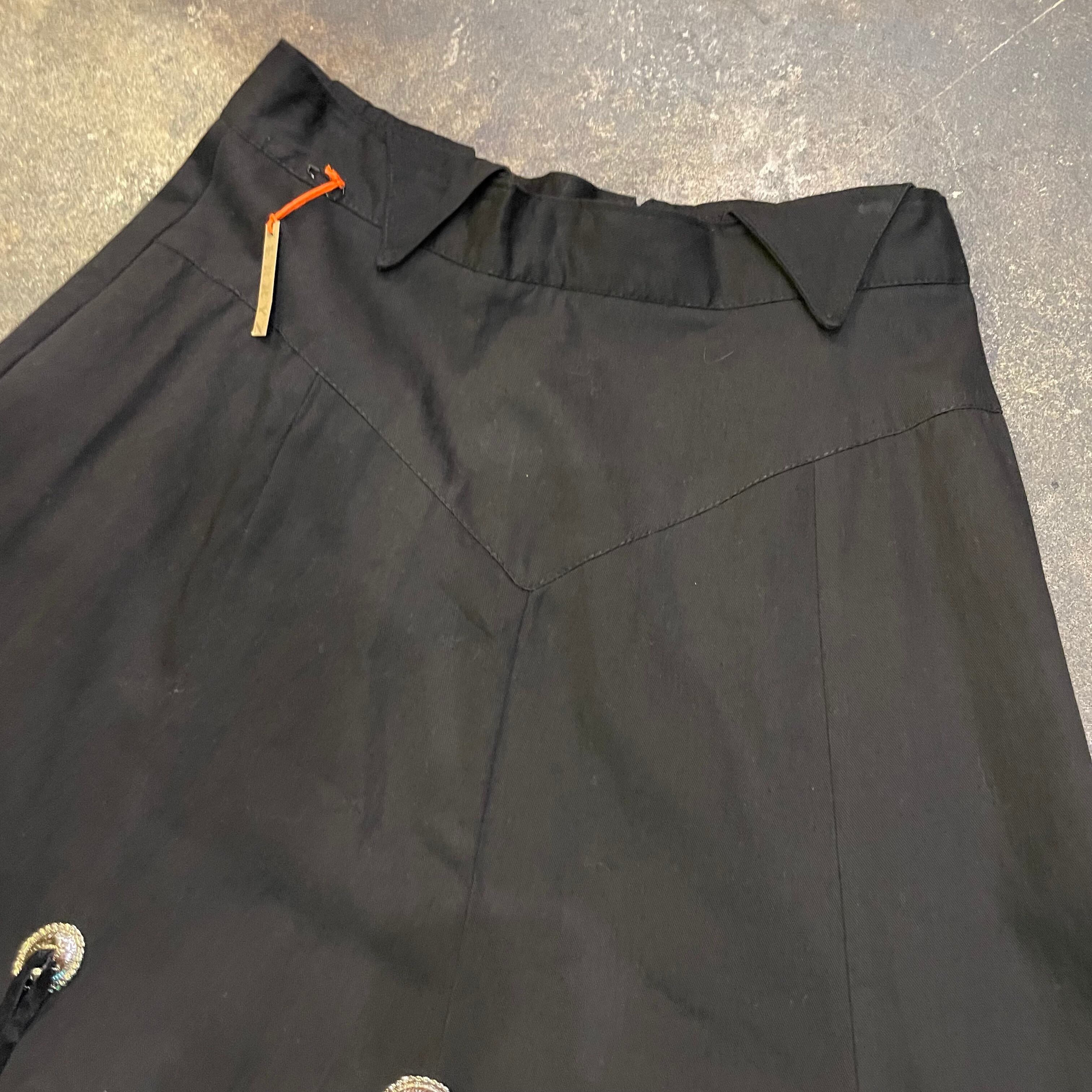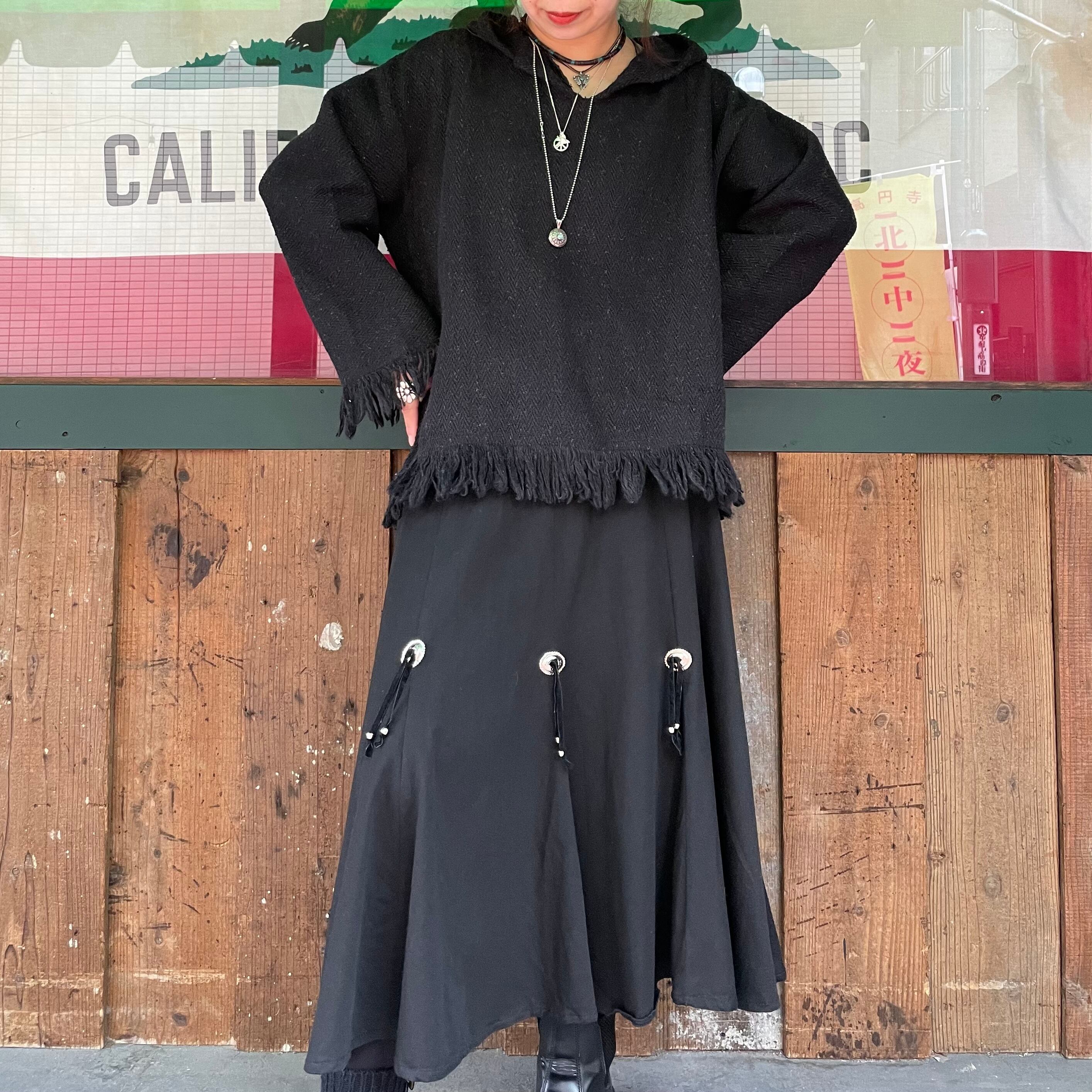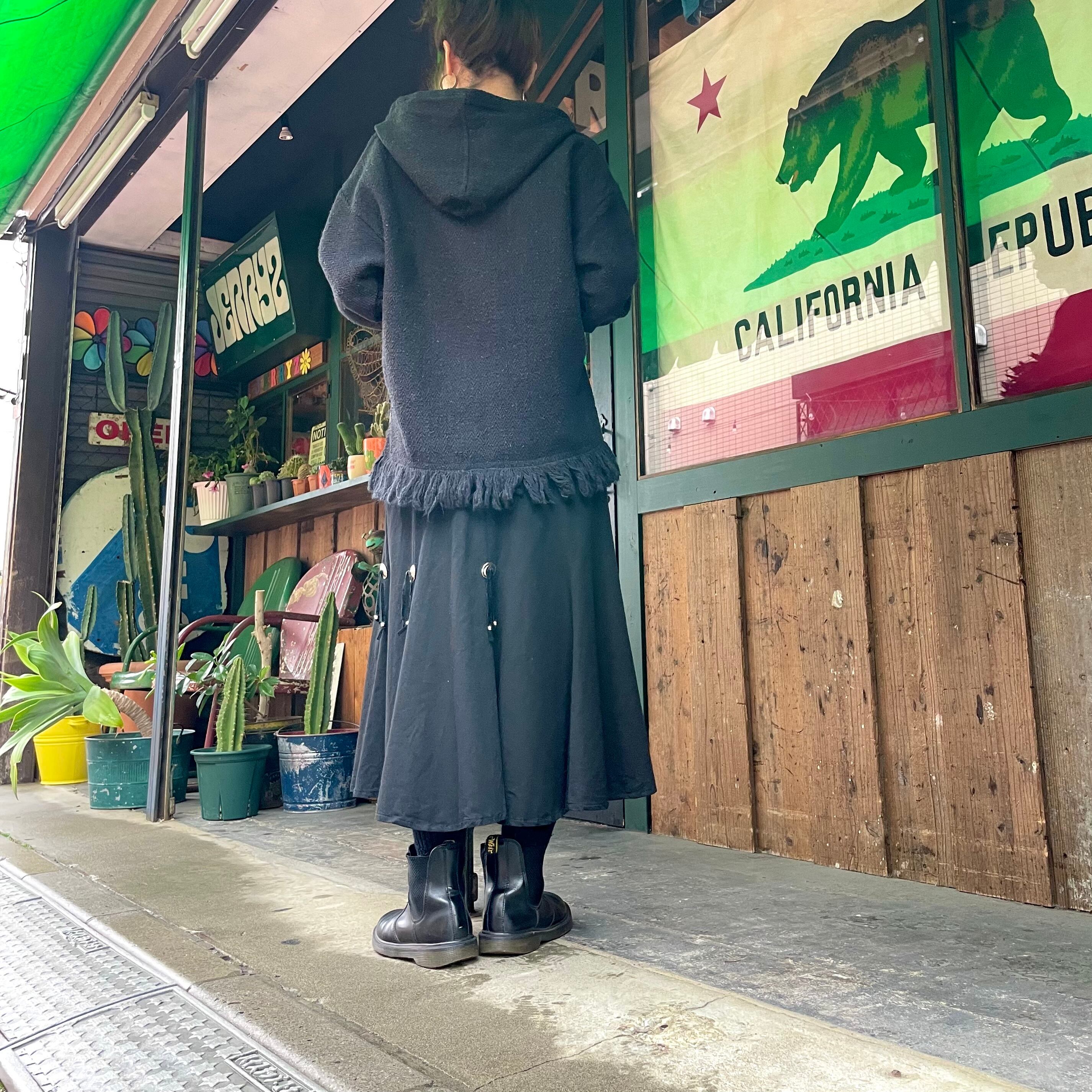 真っ黒のフレアスカートにコンチョとベロアリボンがかわいいスカートです。