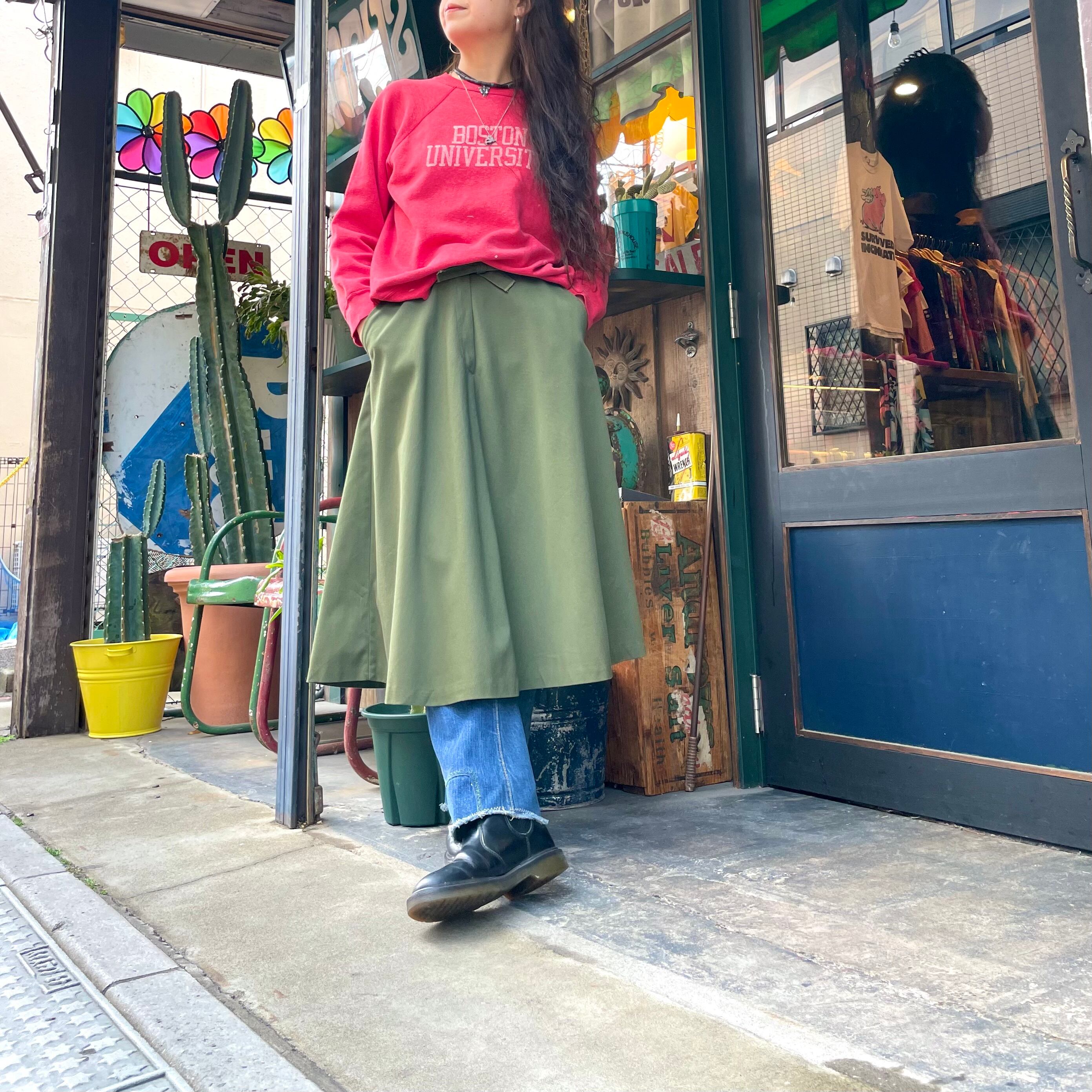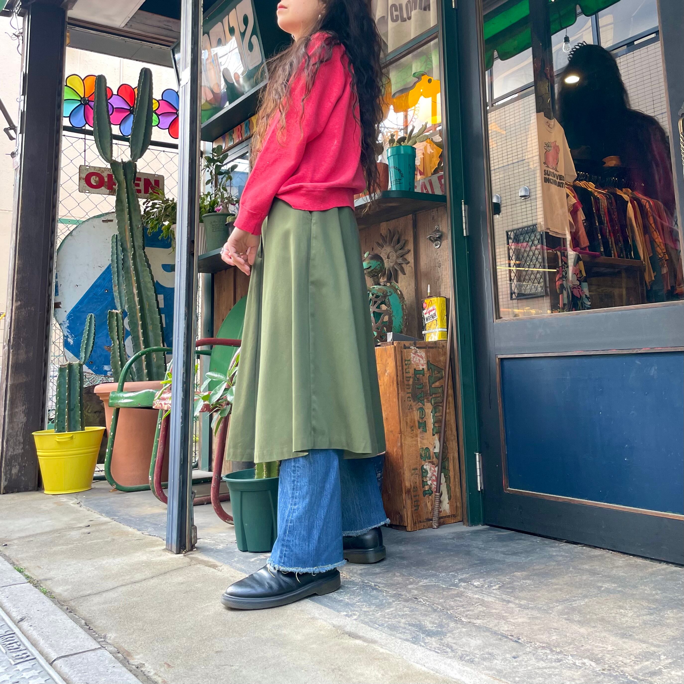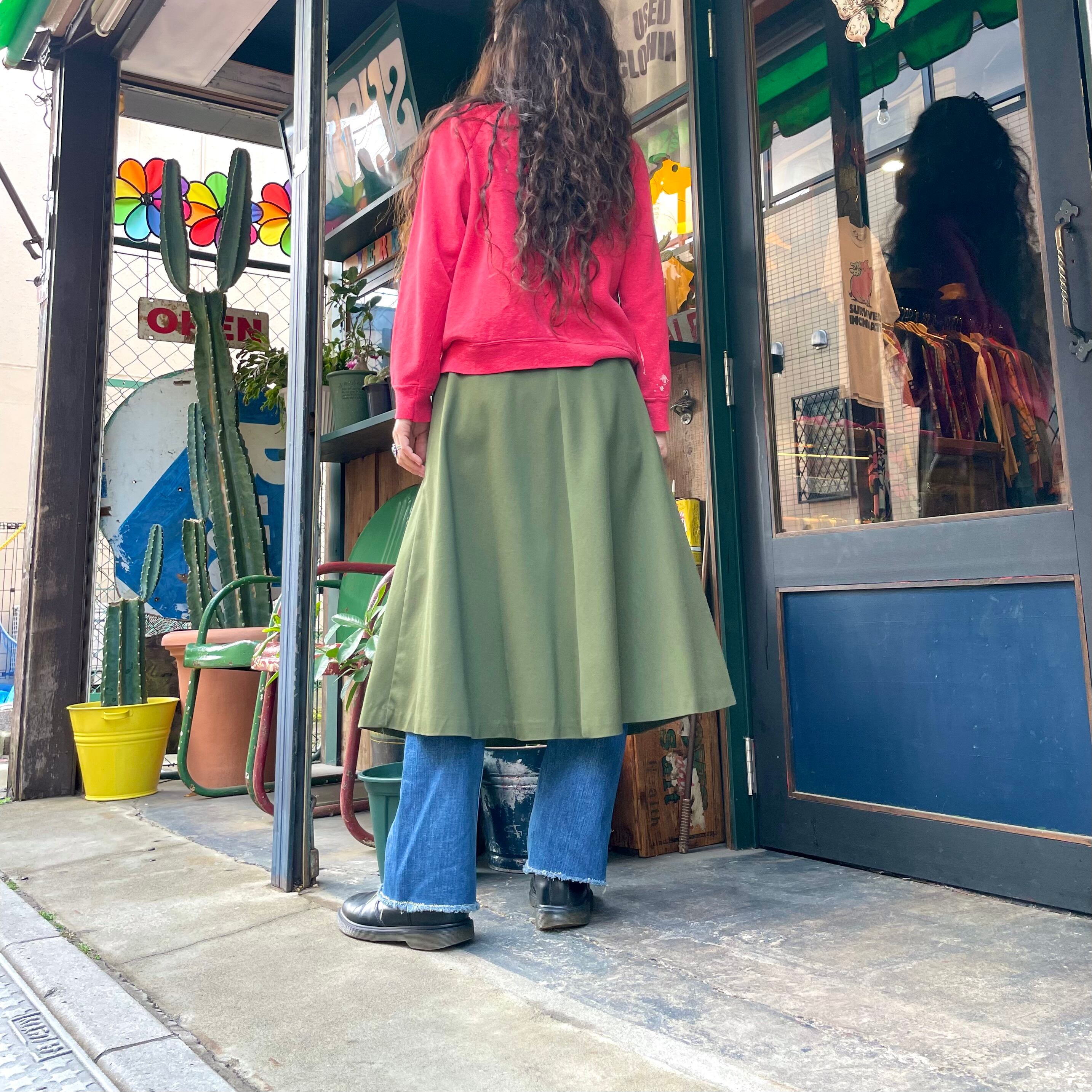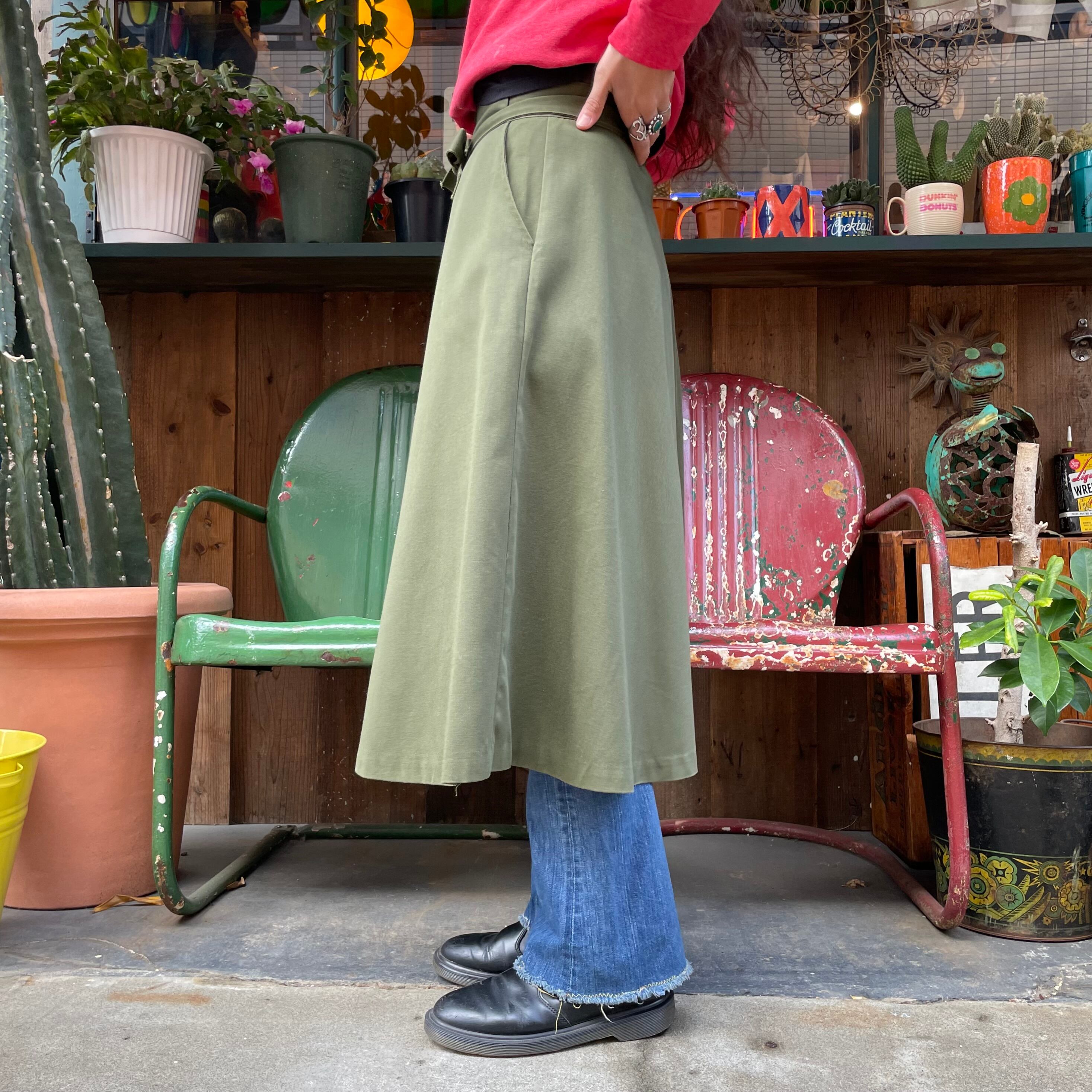 きれいなフレアのシルエットが素敵な巻きスカート風のスカートです。