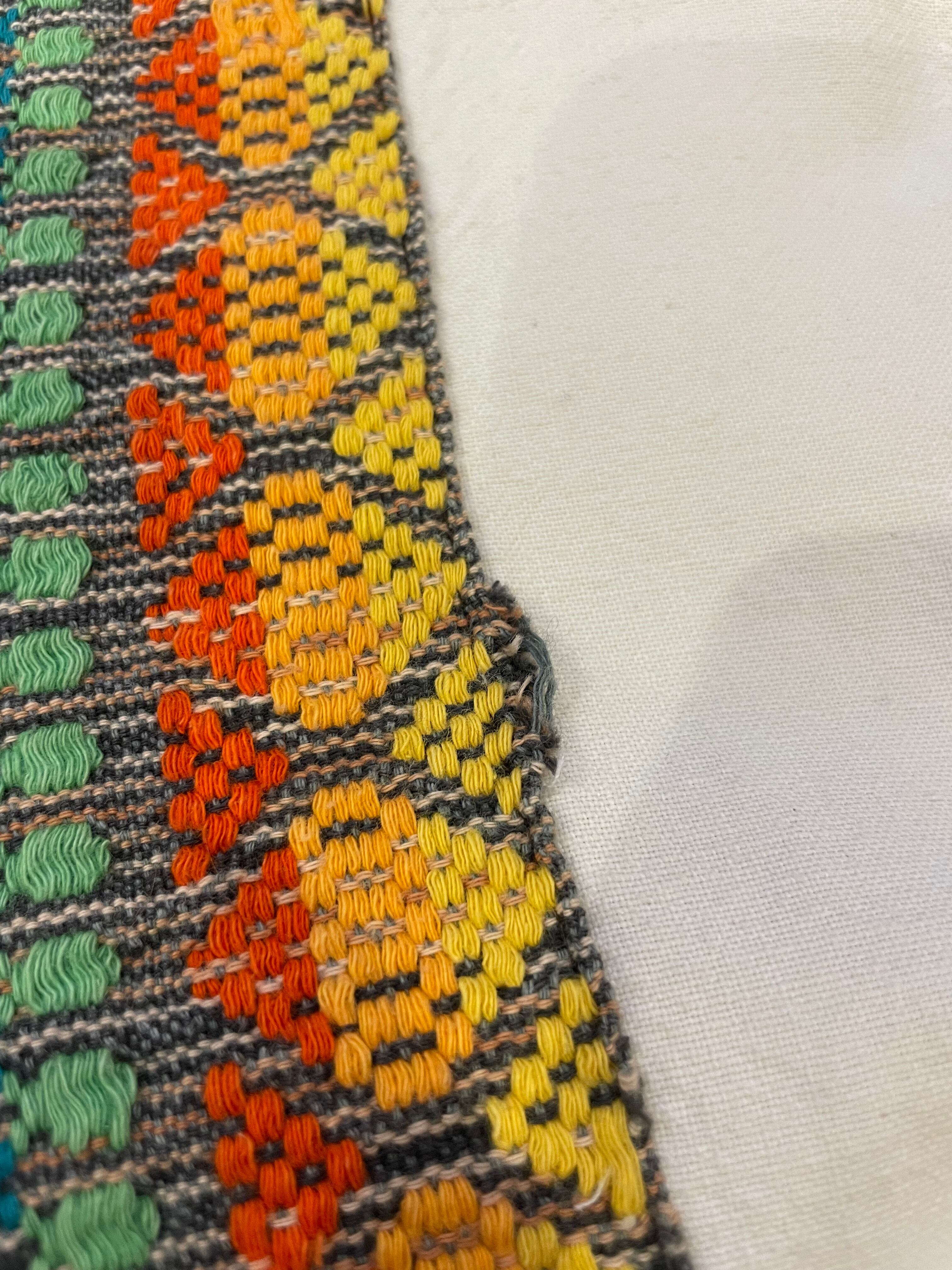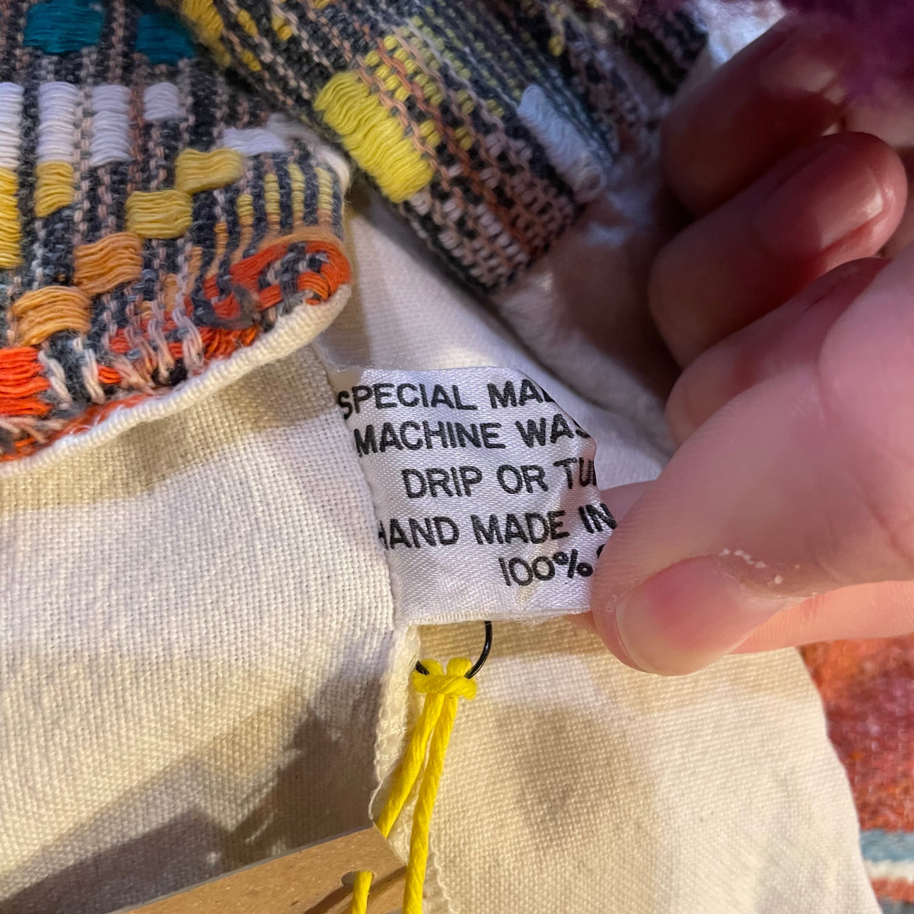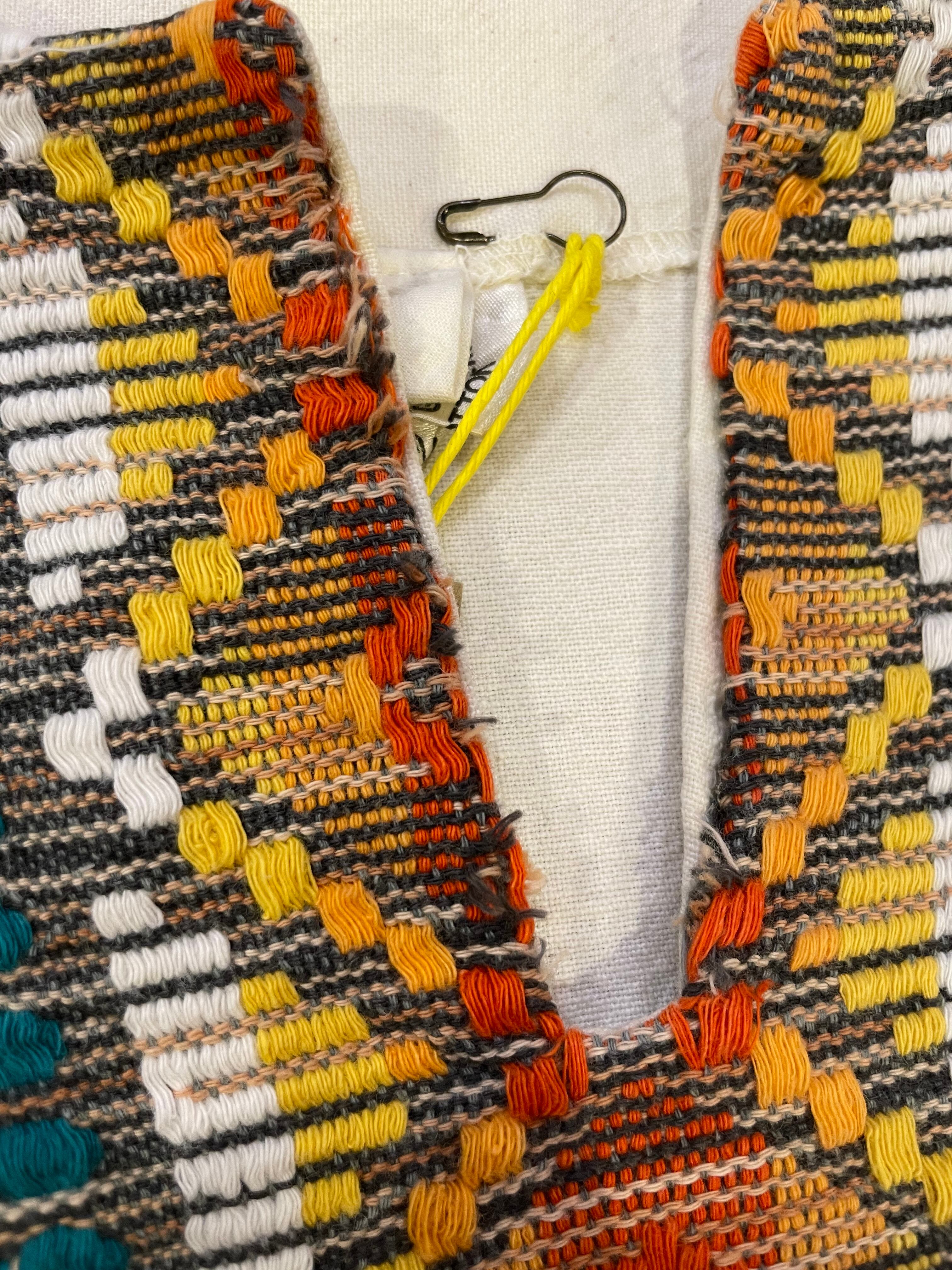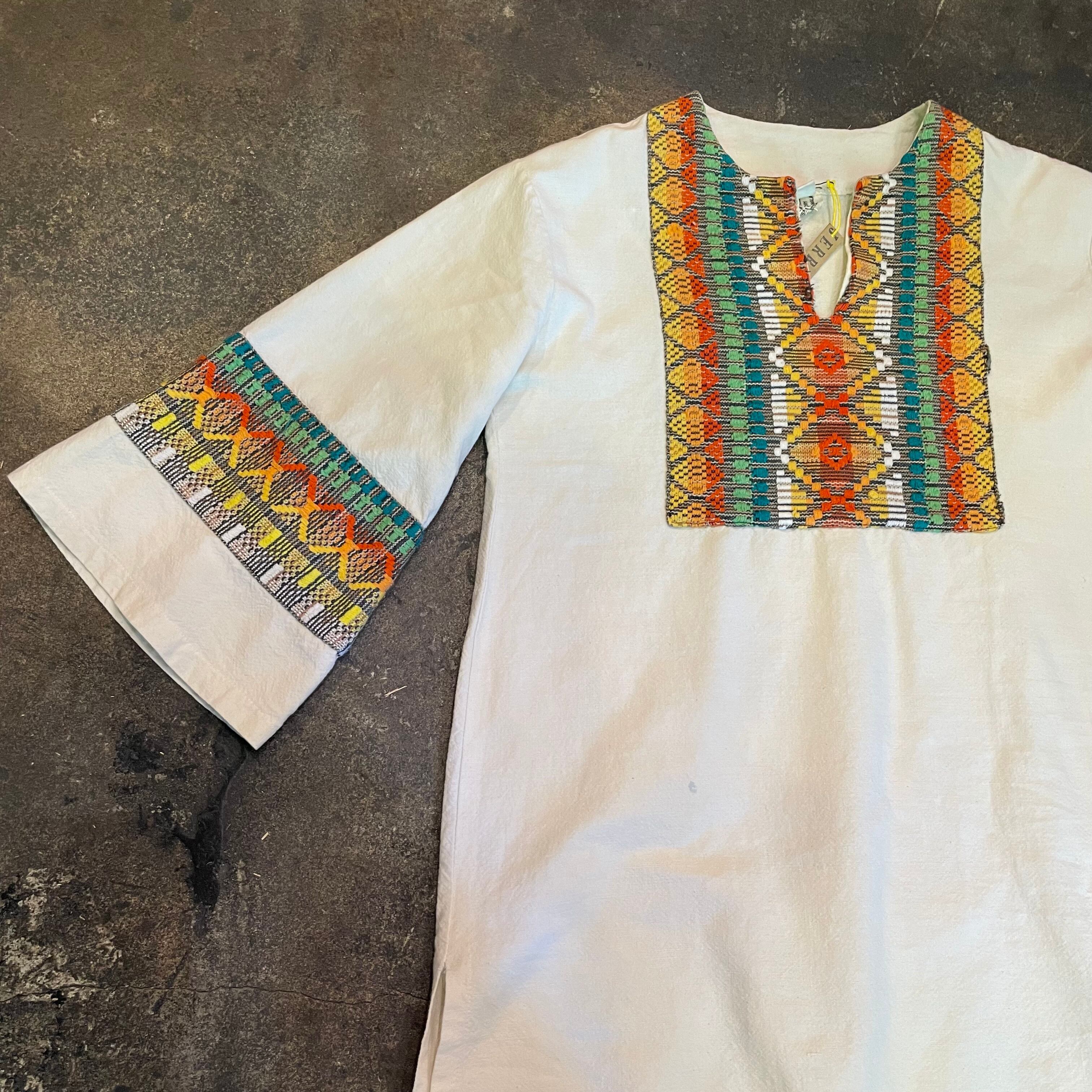 手織りの模様と色味が素敵なグアテマラのトップスです。7部袖でフレアスリーブなところもかわいいですね。コットン素材ですので真夏にも涼しく着られそうですし、中にラグランTシャツを重ねてチラ見せさせてもかわいいと思います。