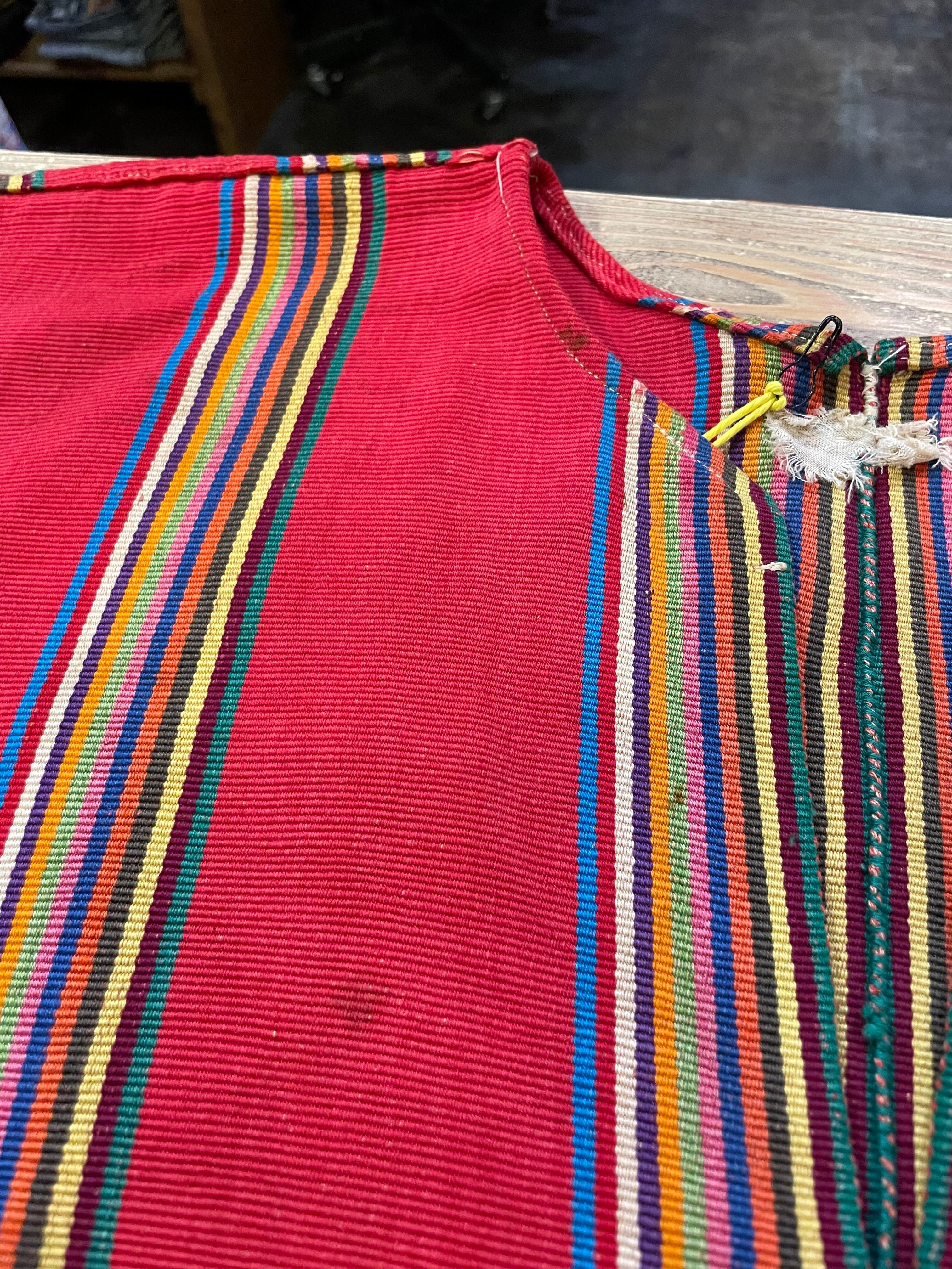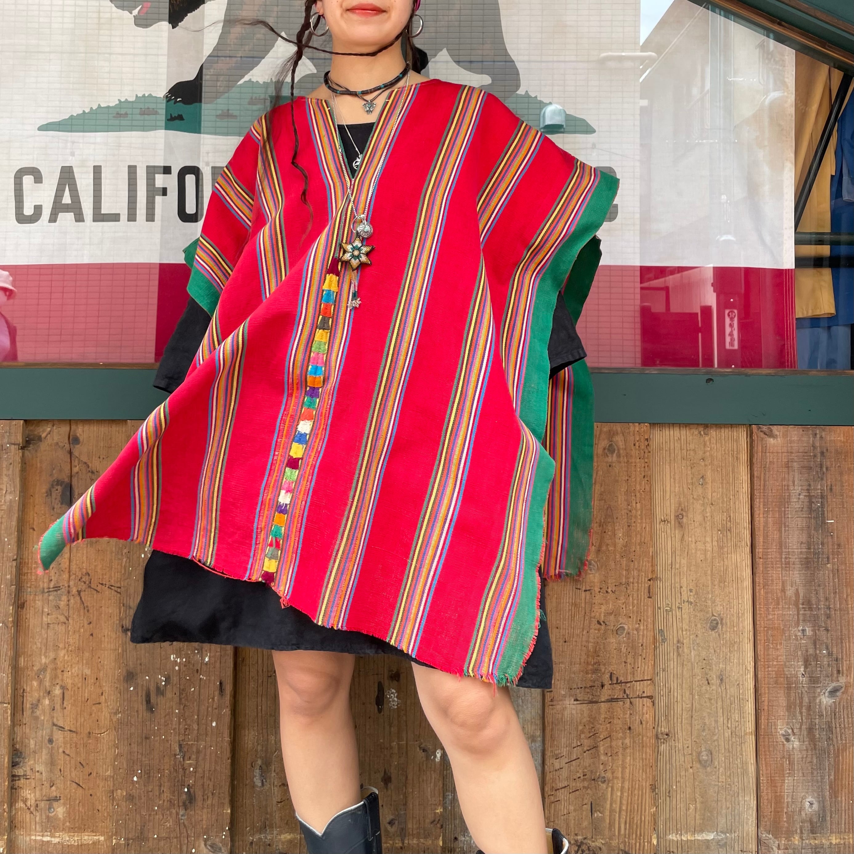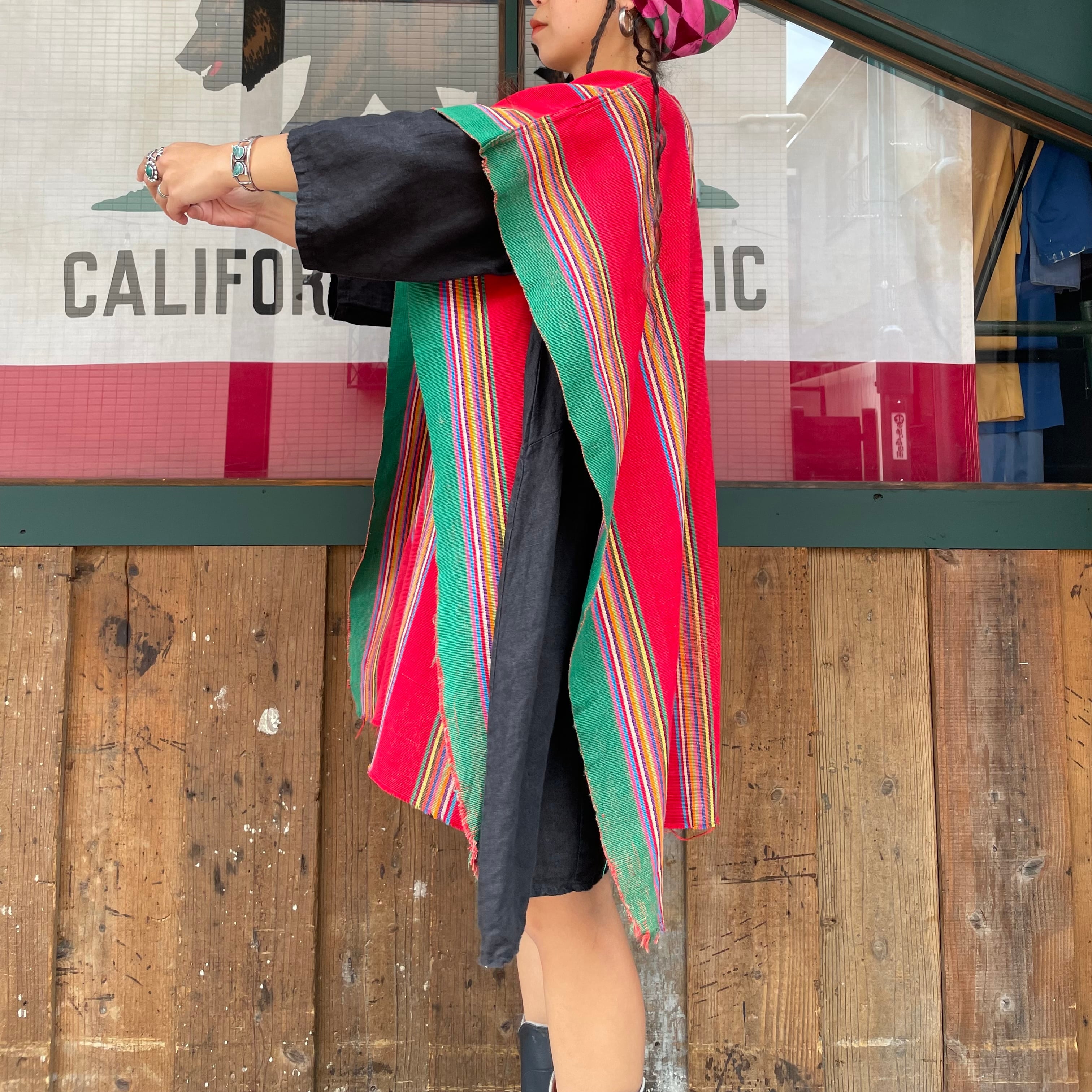 古い質感でとてもオーラのある手織りの生地感に手刺繍が施してありとても素敵なポンチョです。