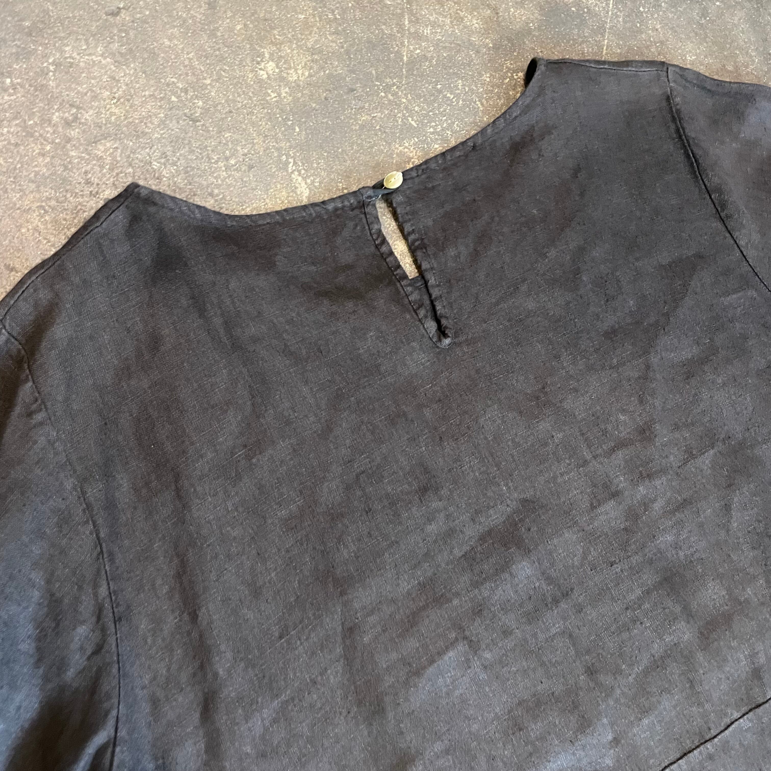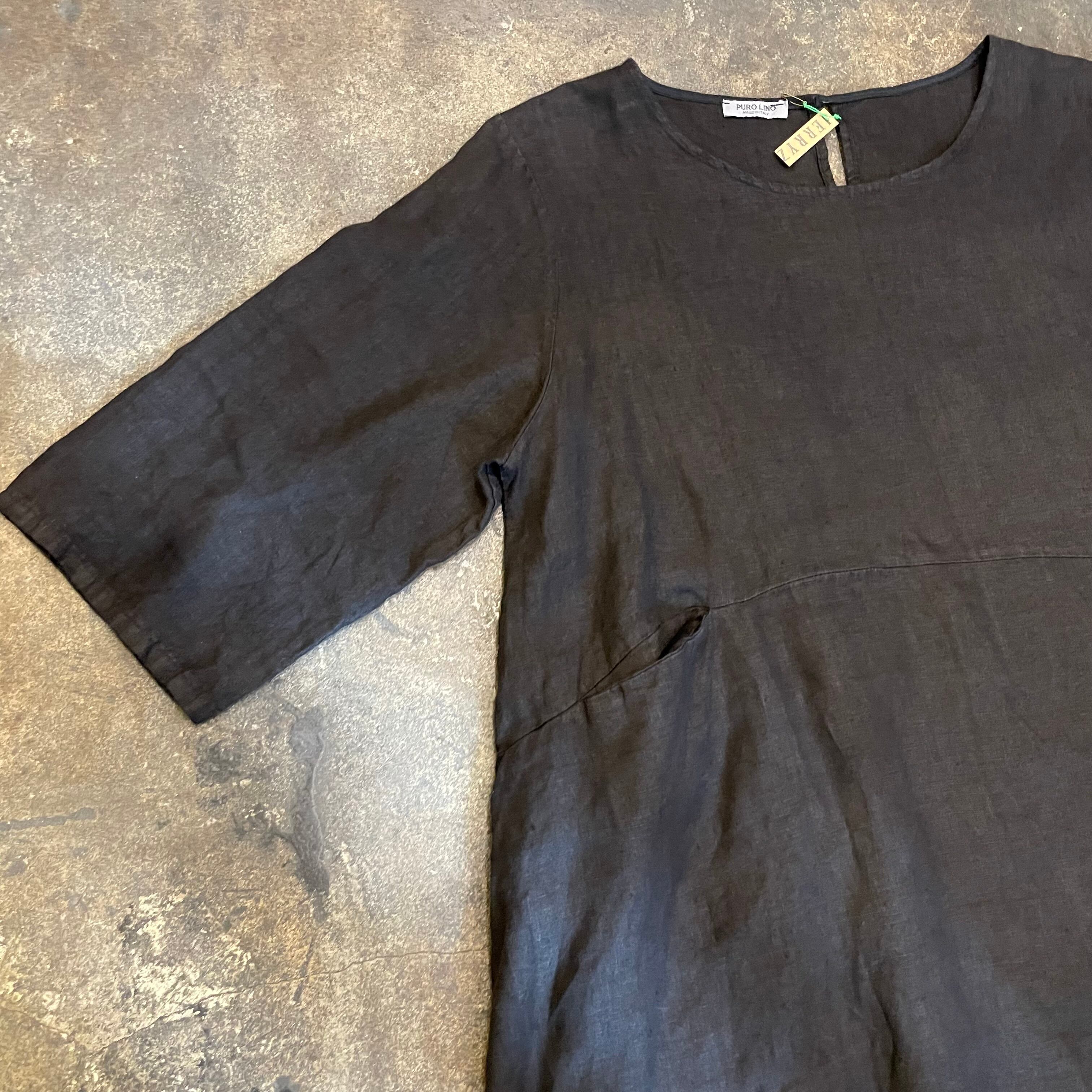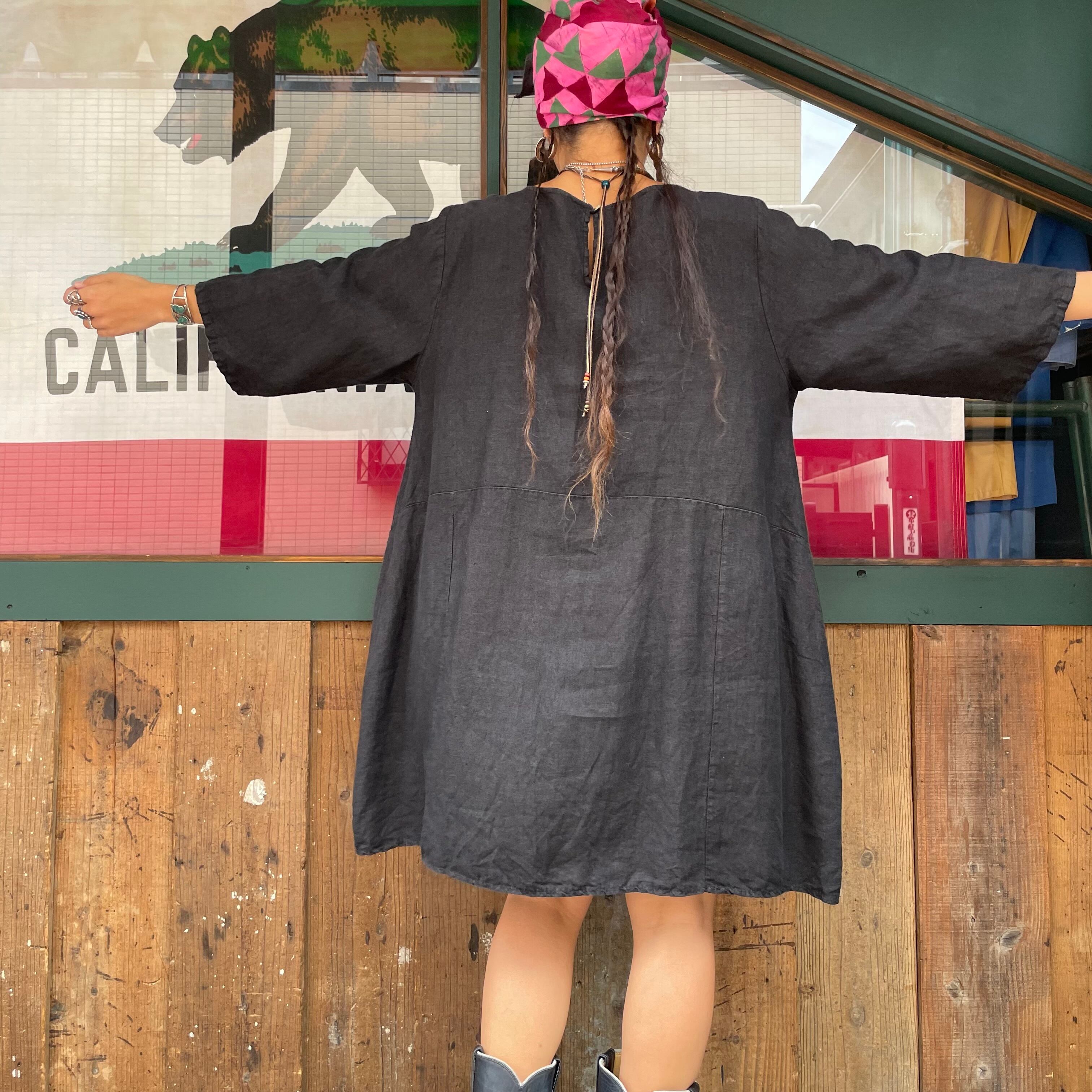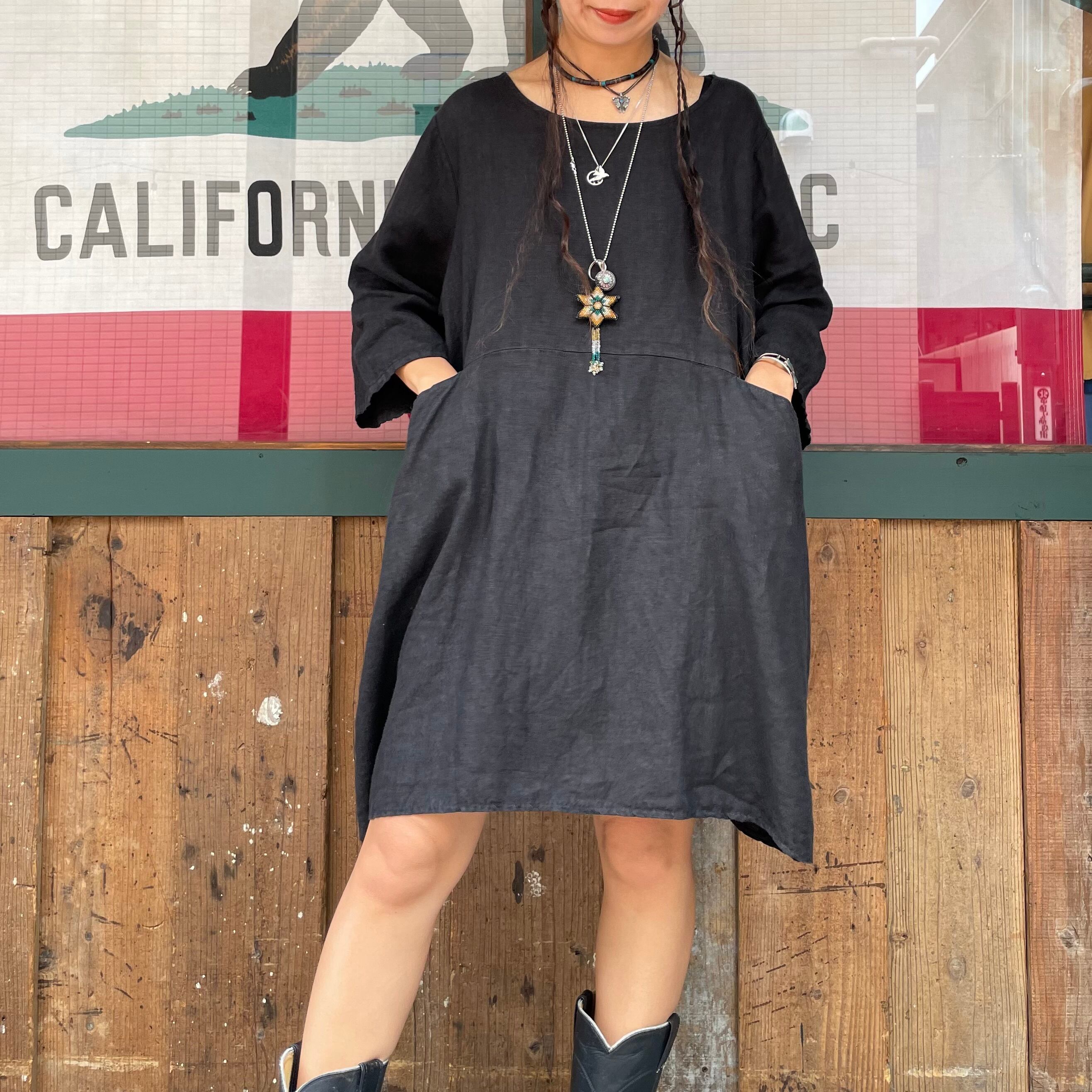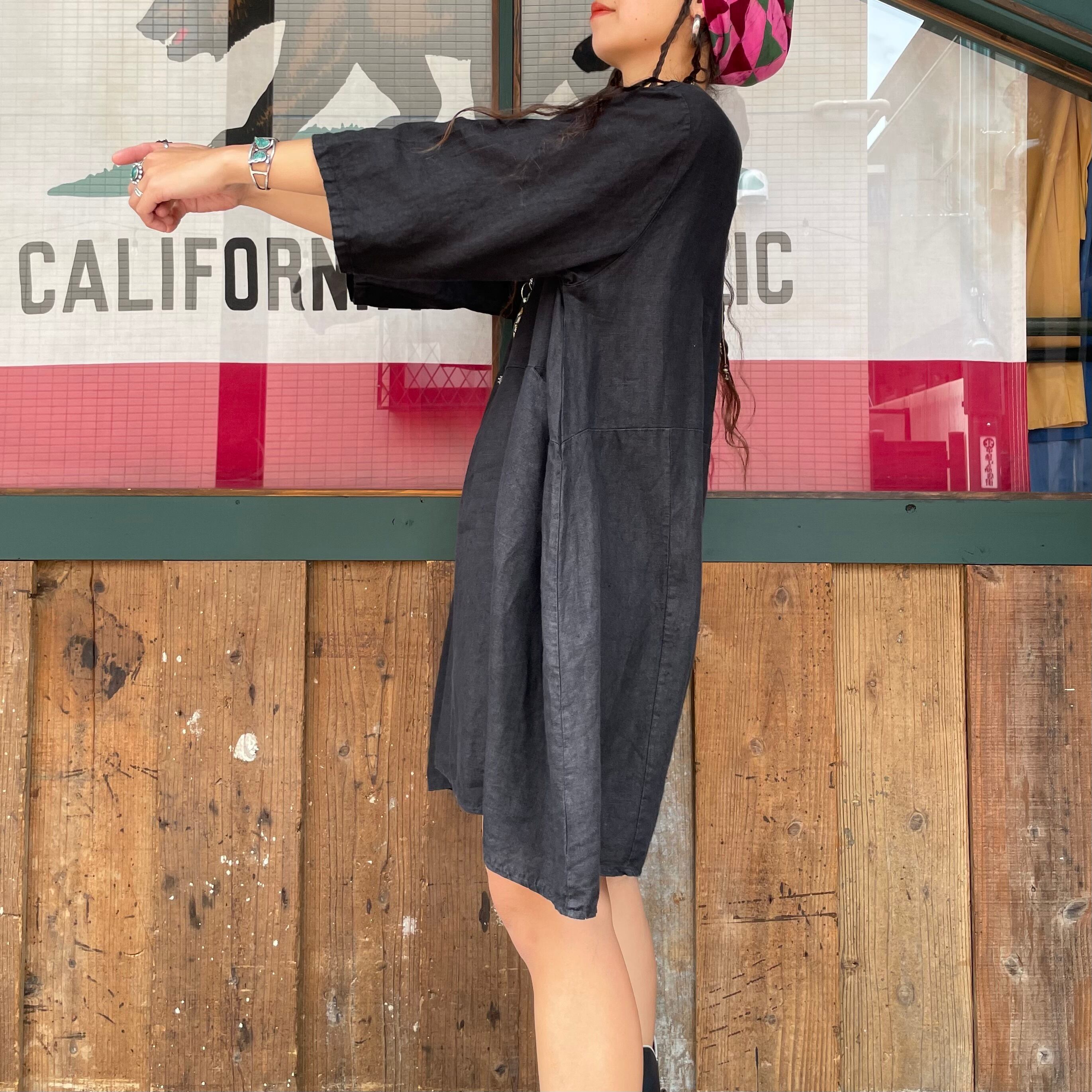 真っ黒シンプルなデザインのリネン素材のワンピースです。
