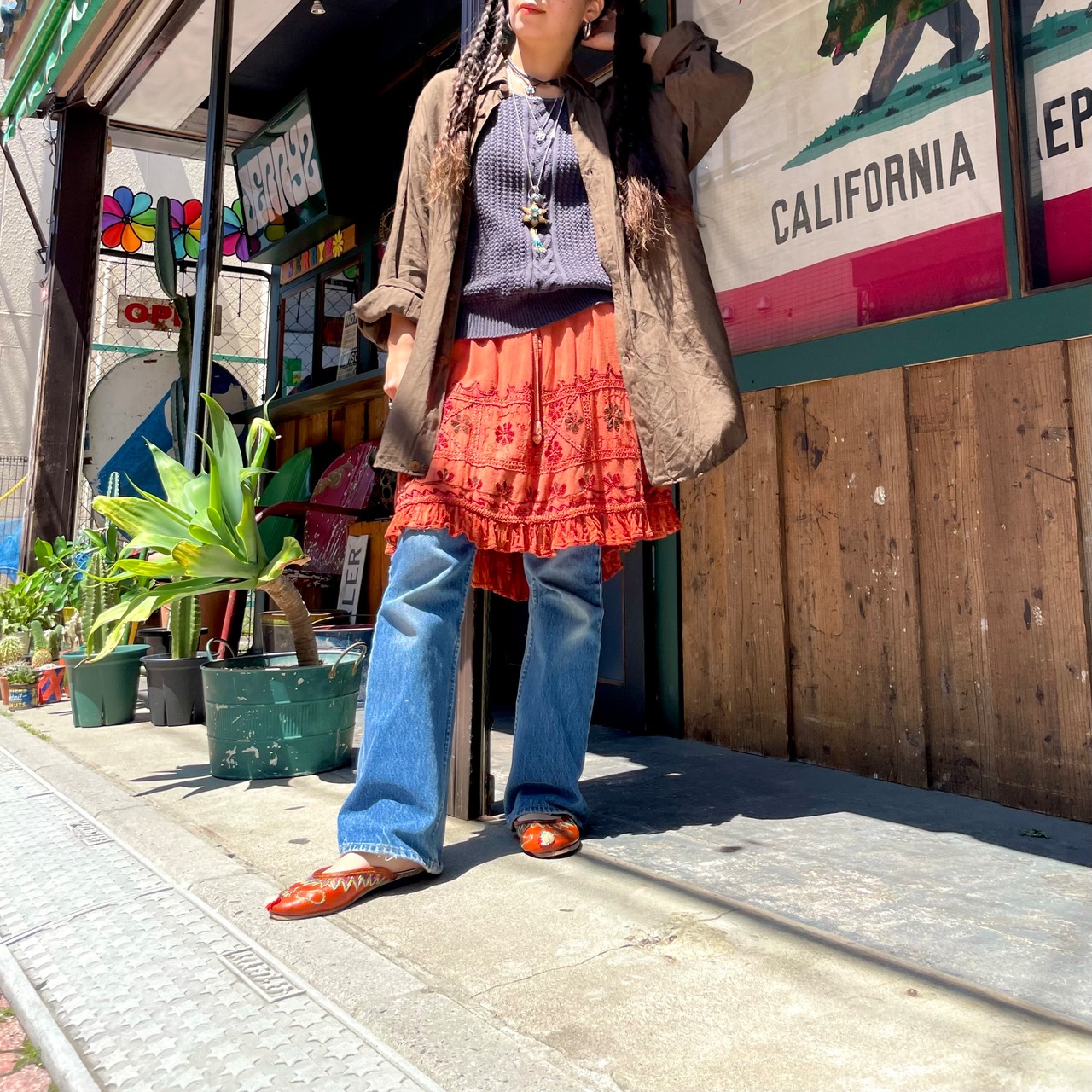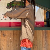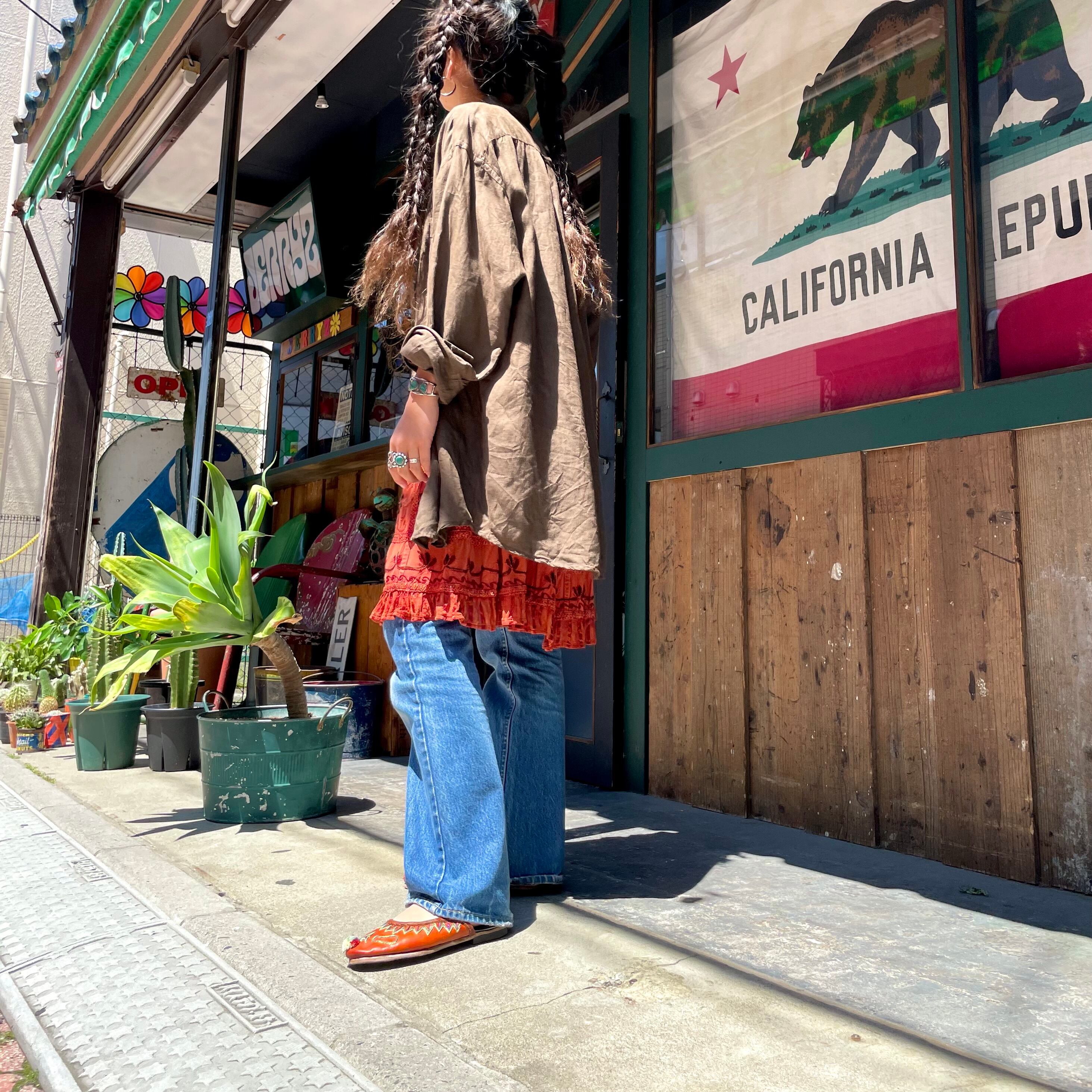 ゆったりしたサイズ感とかなり長めの丈感がゆるくて良い雰囲気です。全部閉めてショートパンツを合わせてミニワンピースのように着るのも良いですね!