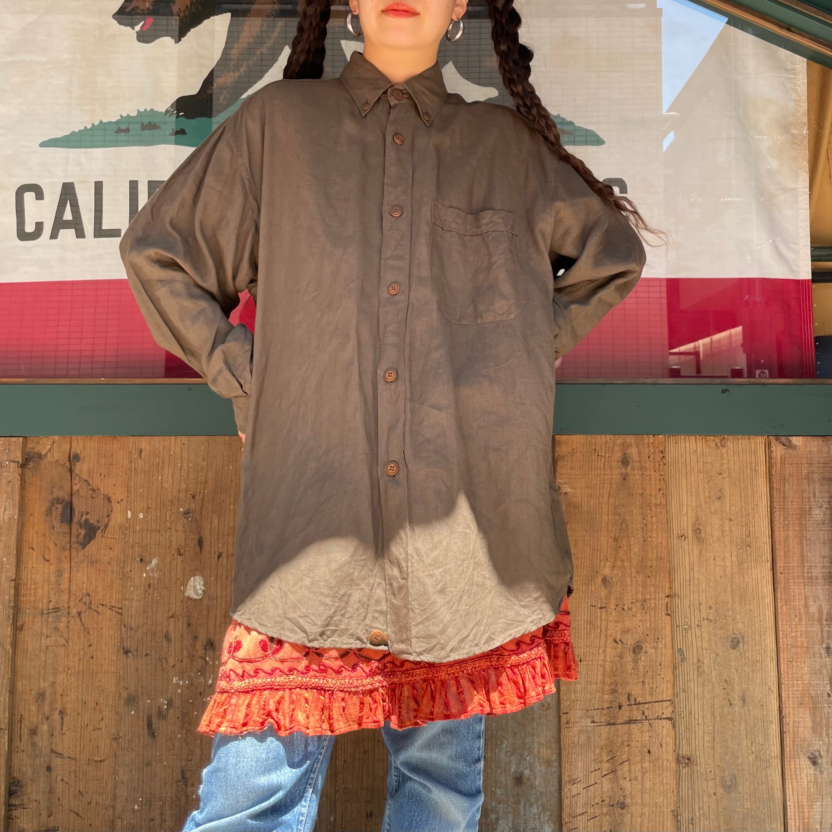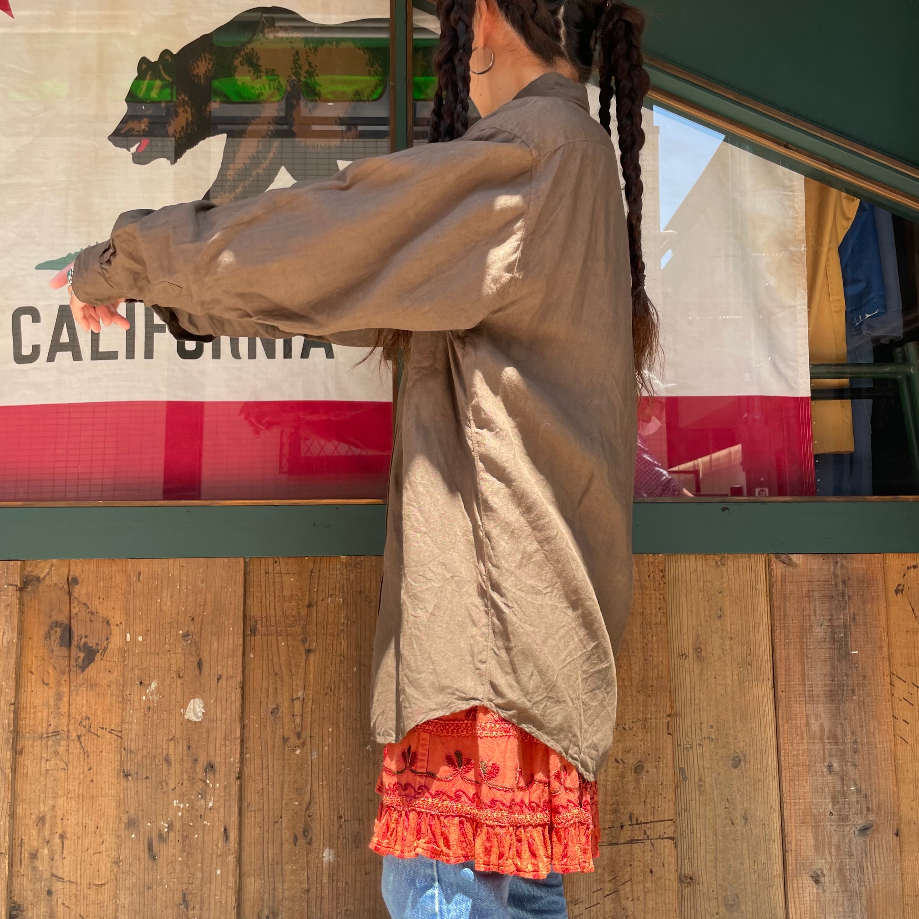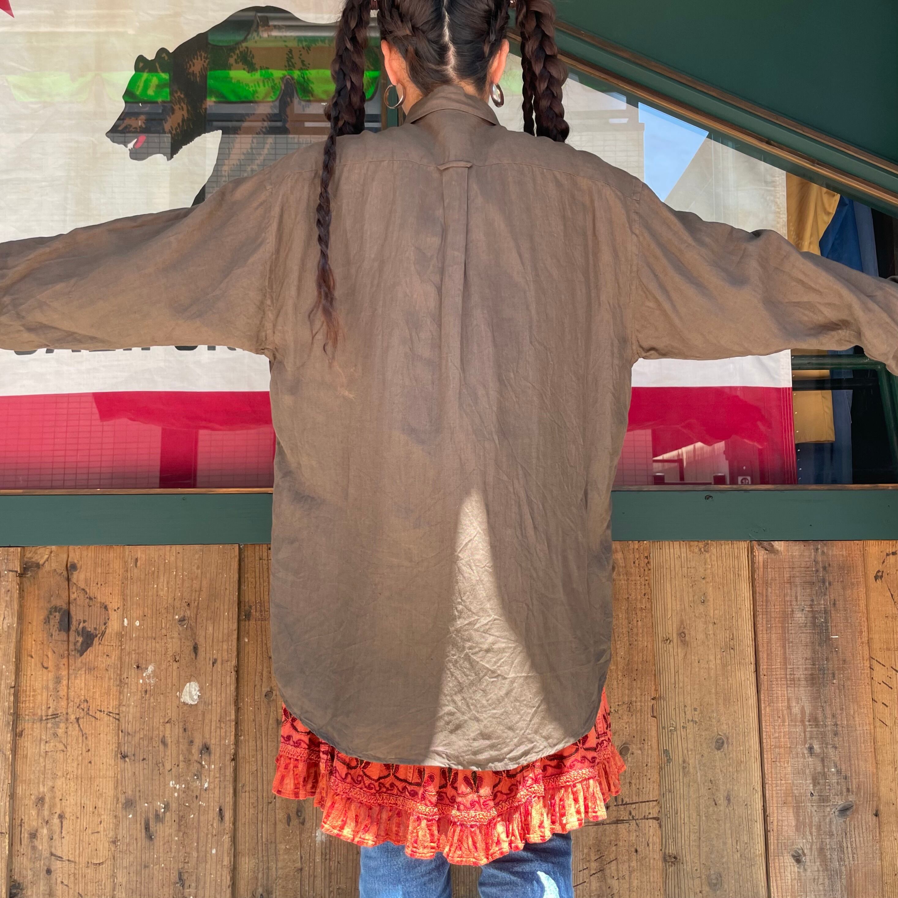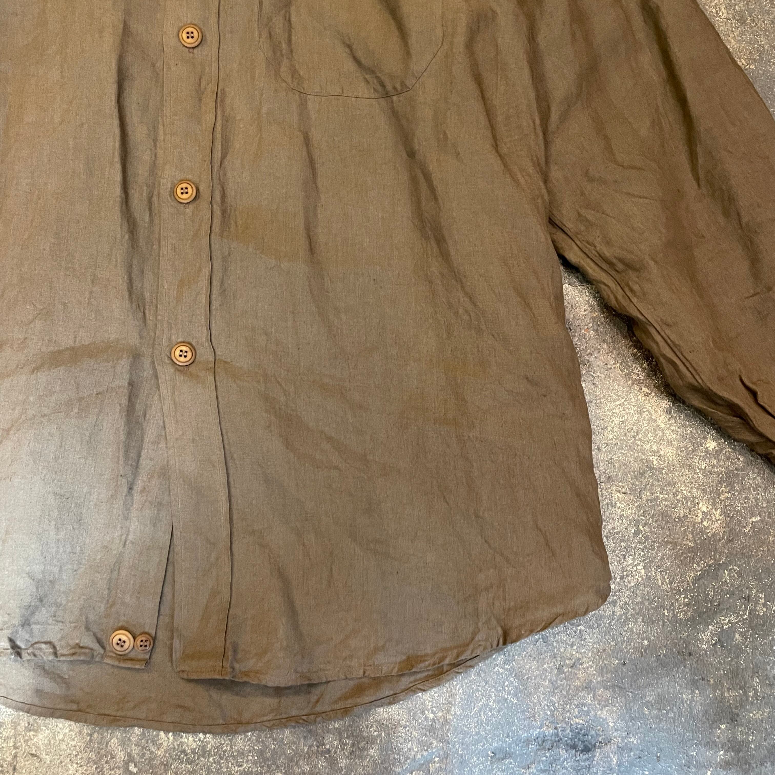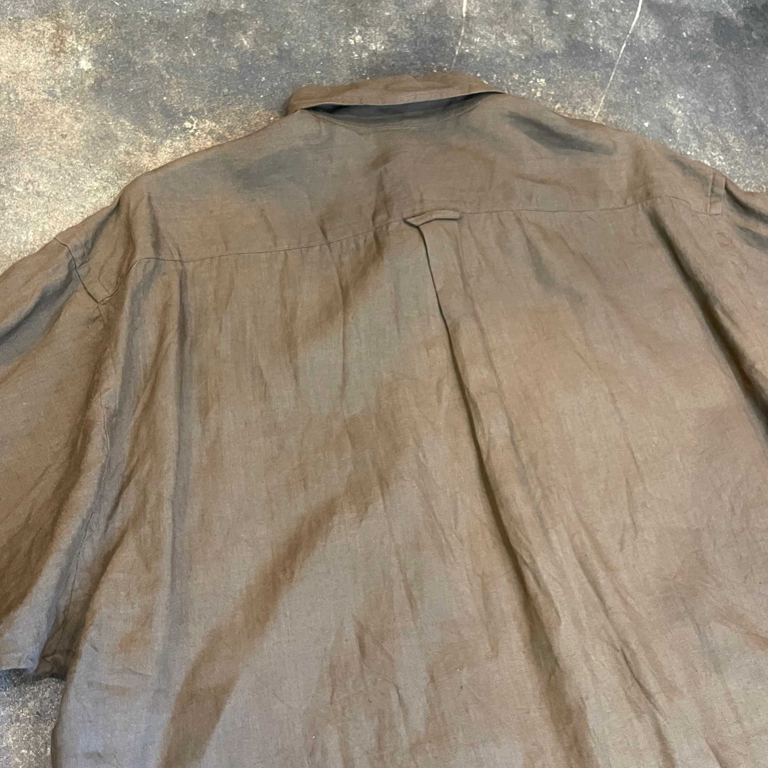 焦茶色のようなチャコールのような絶妙な色味が渋くて素敵なリネン素材のシャツです。