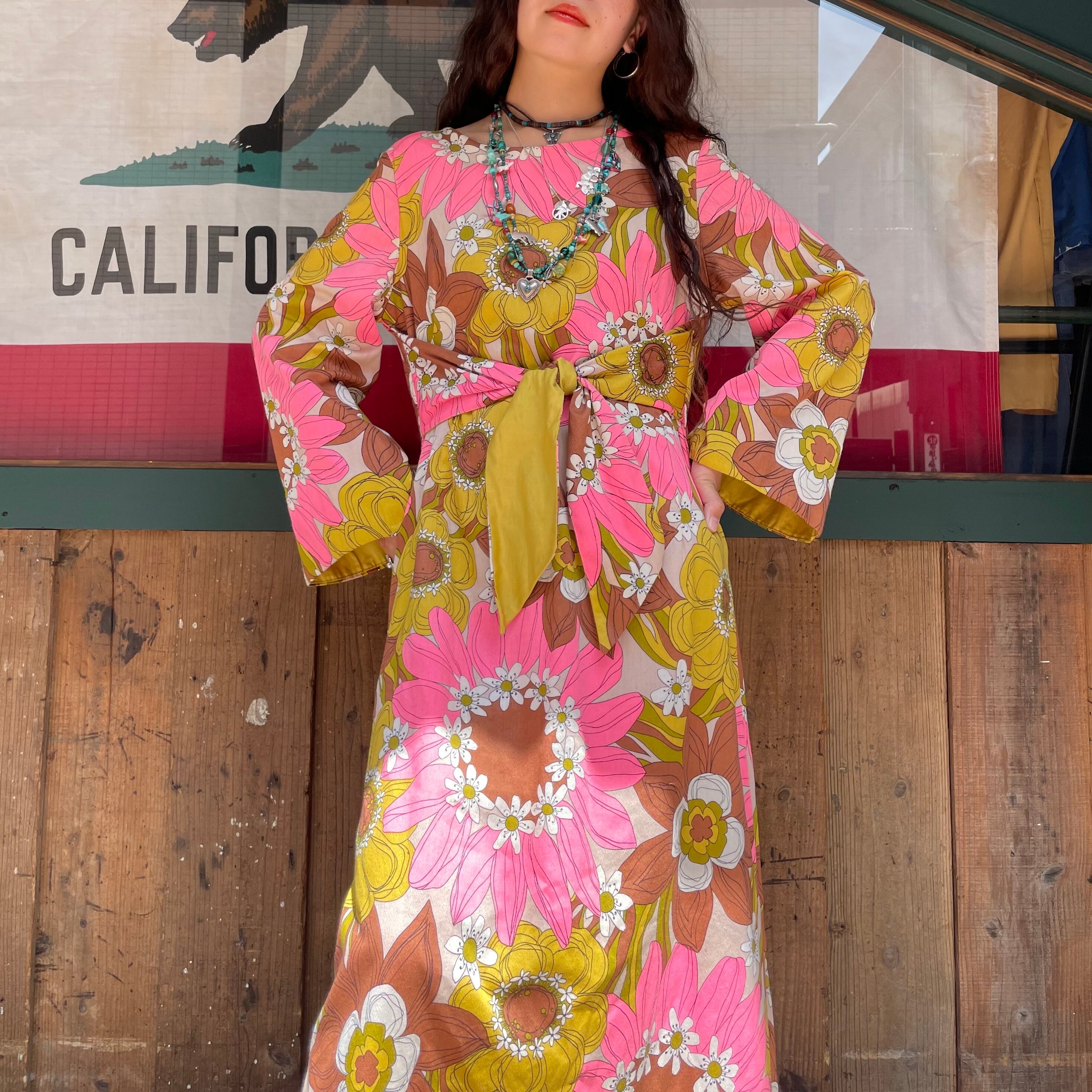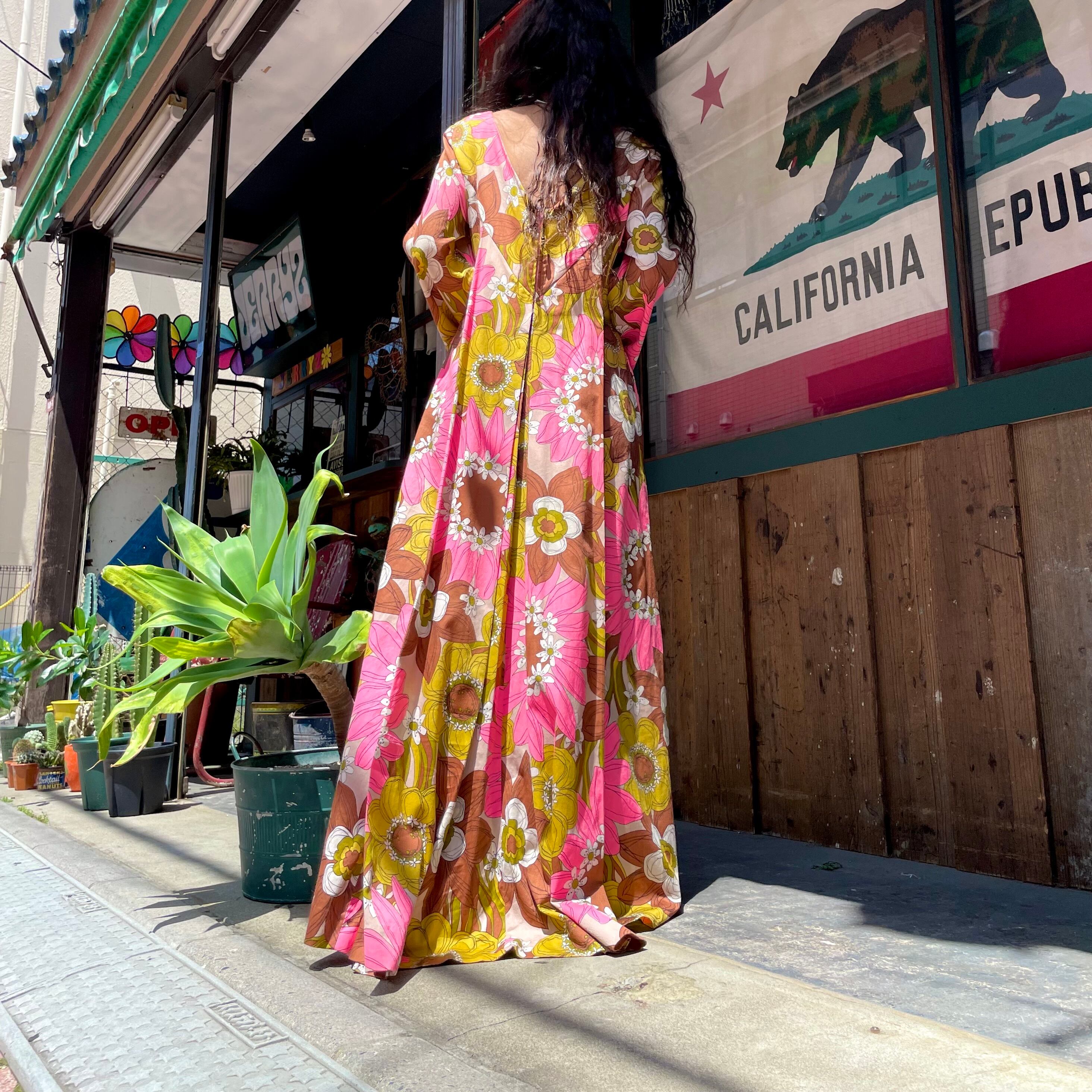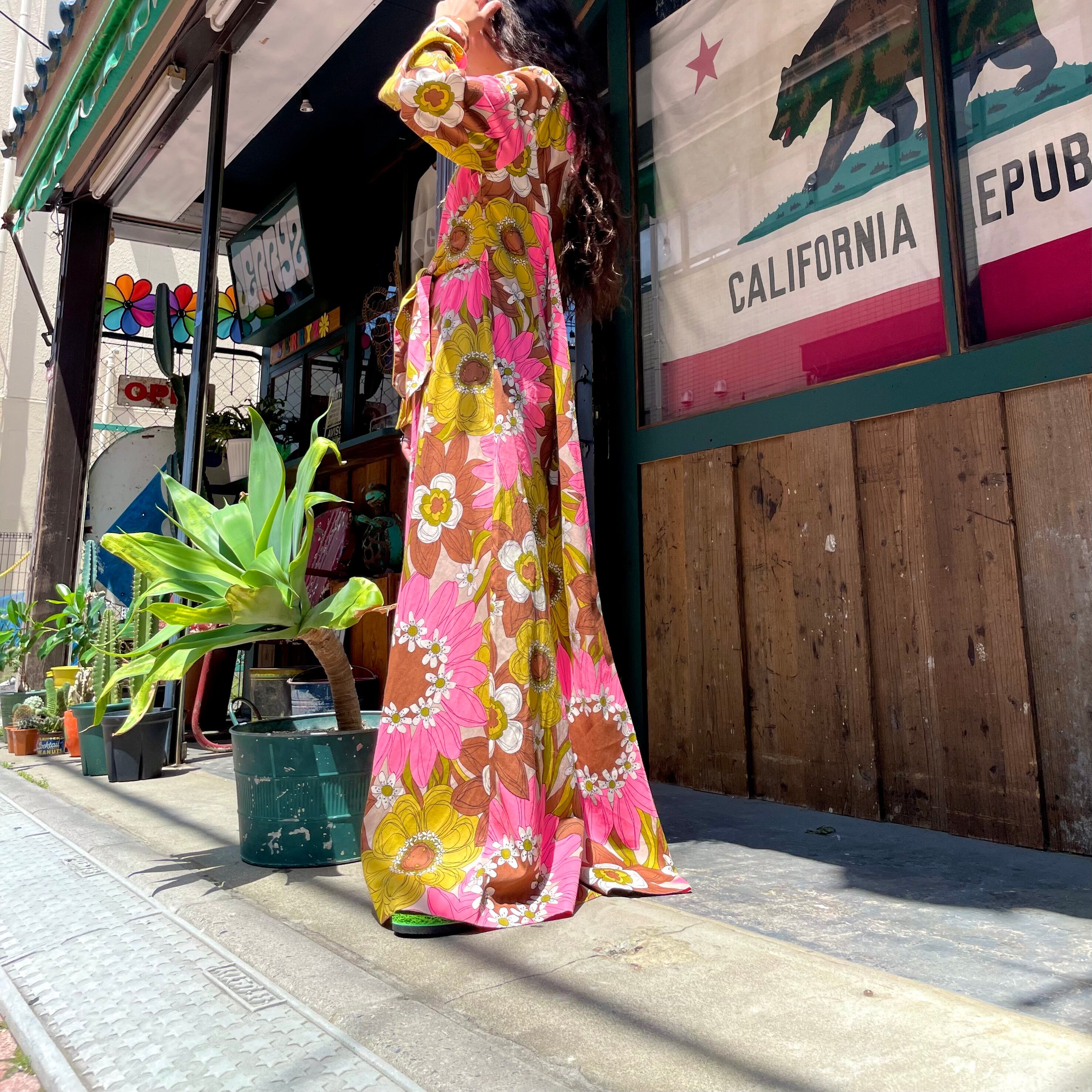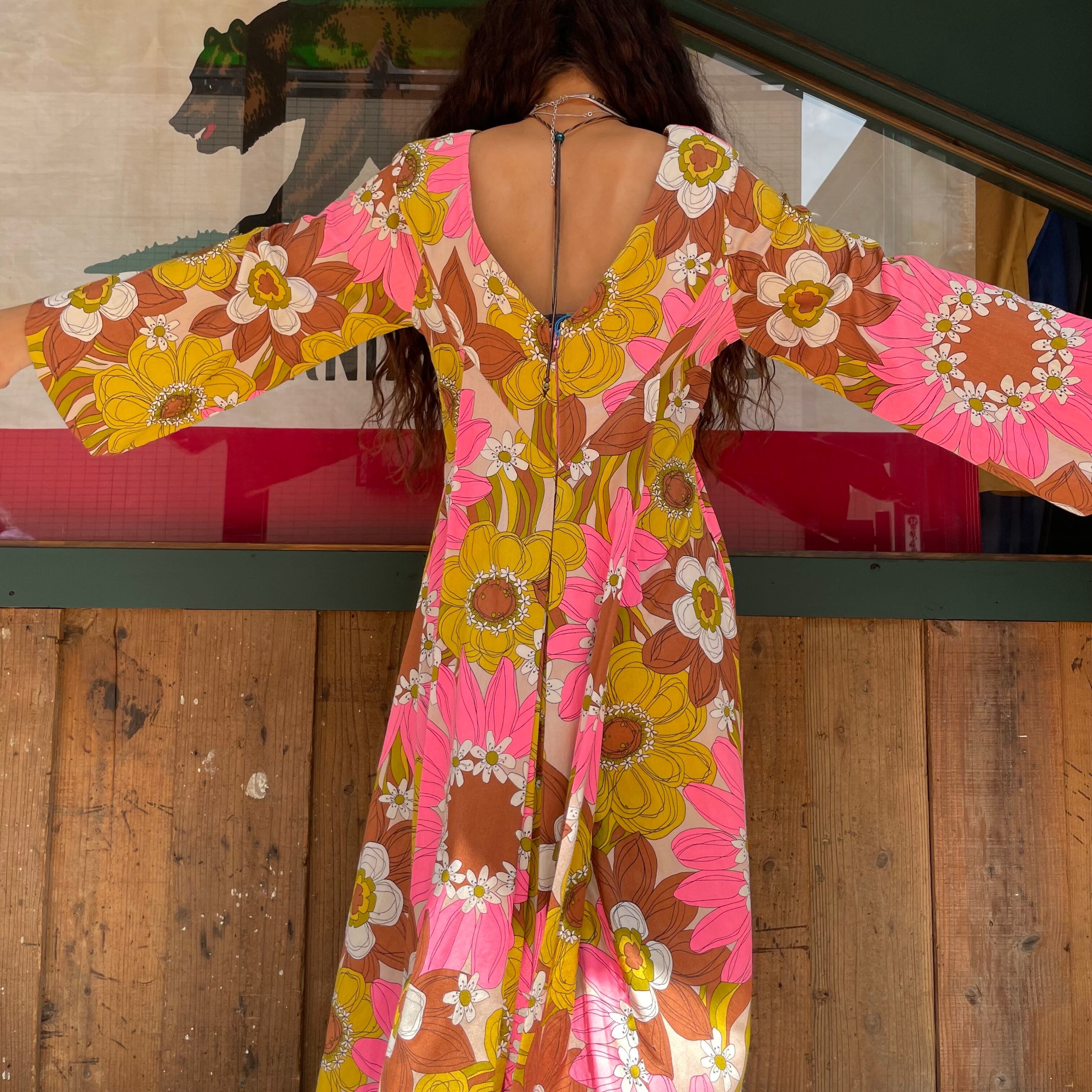 70's hawaiian longsleeve dress
