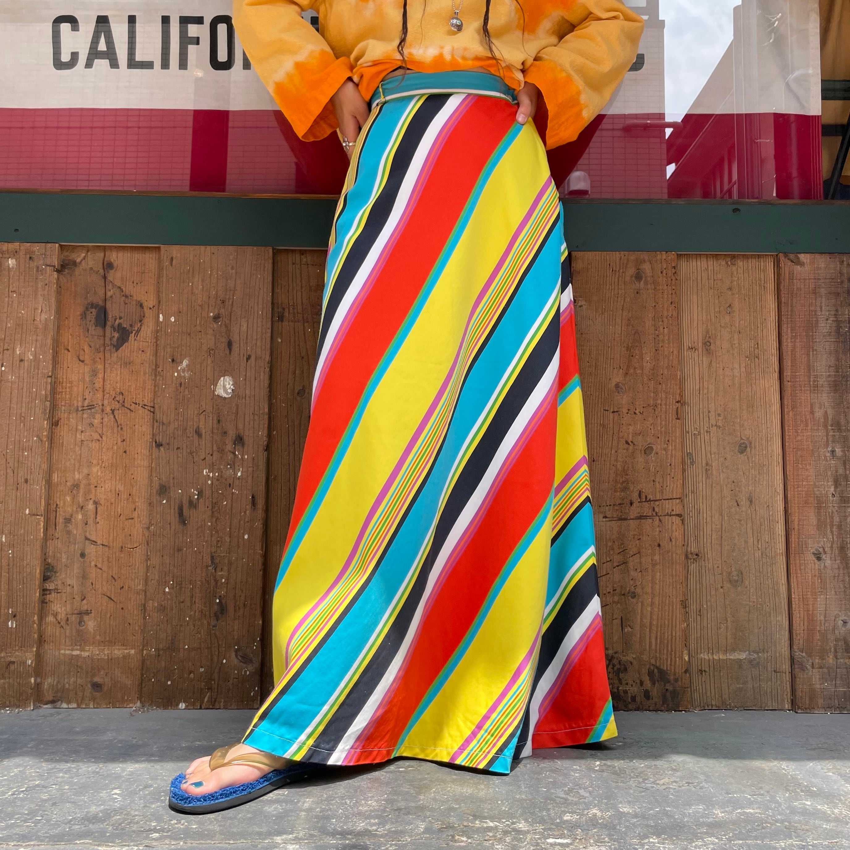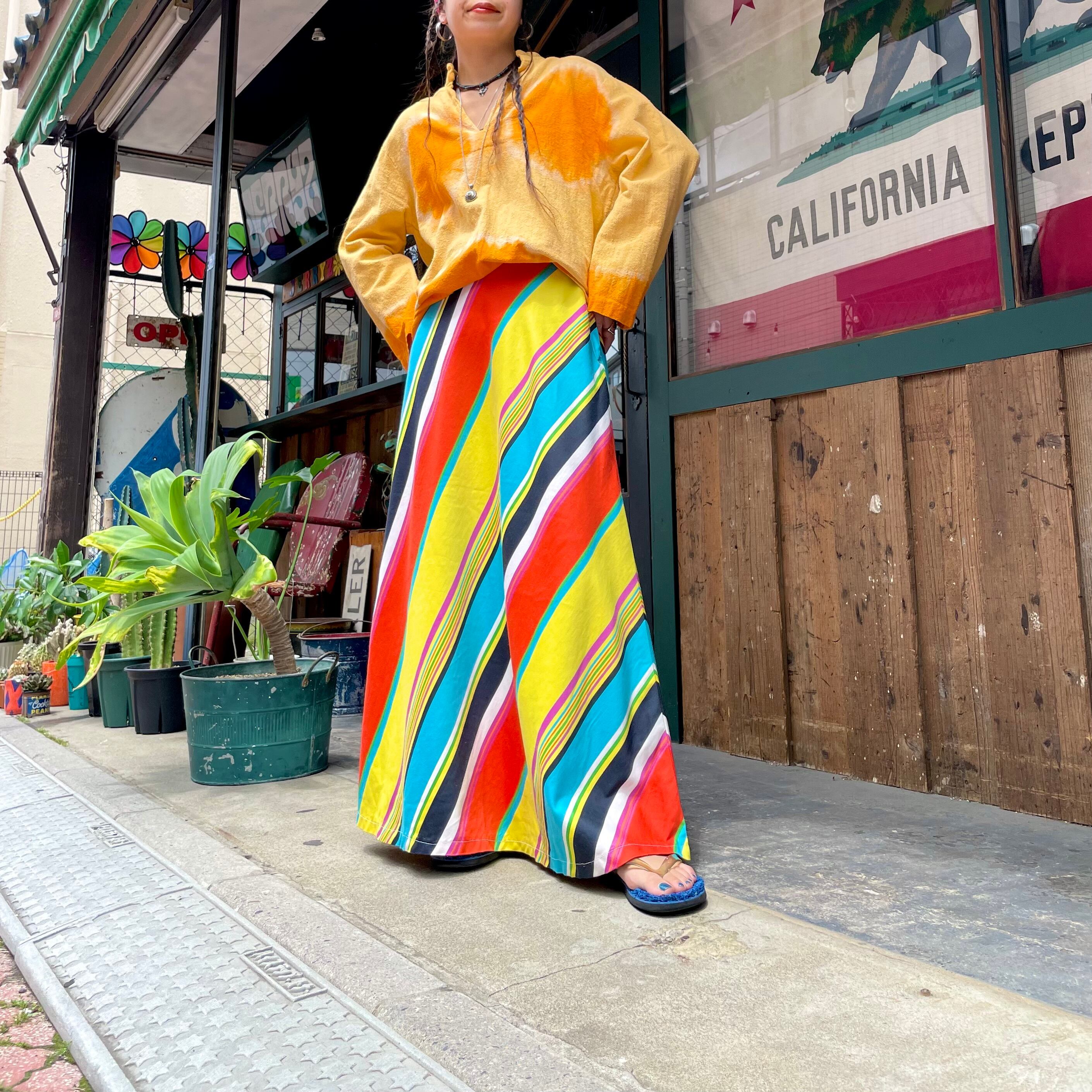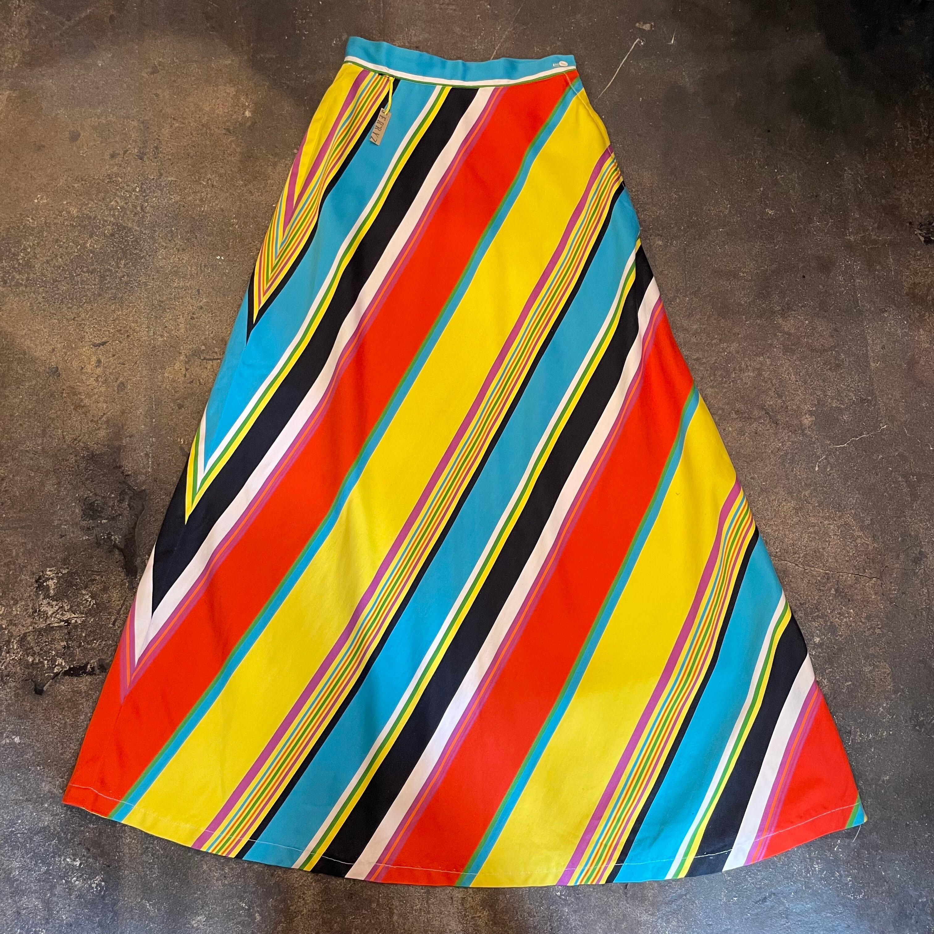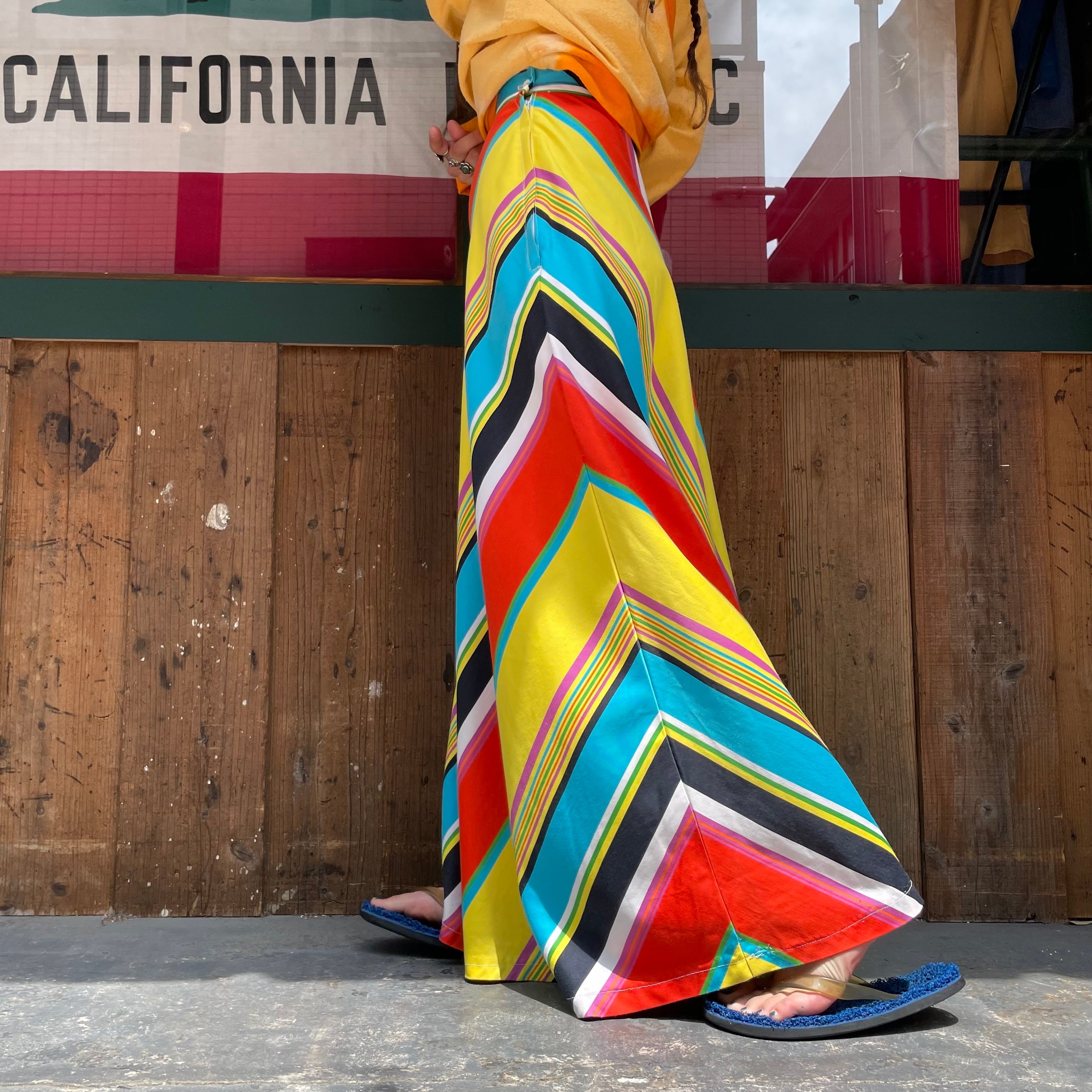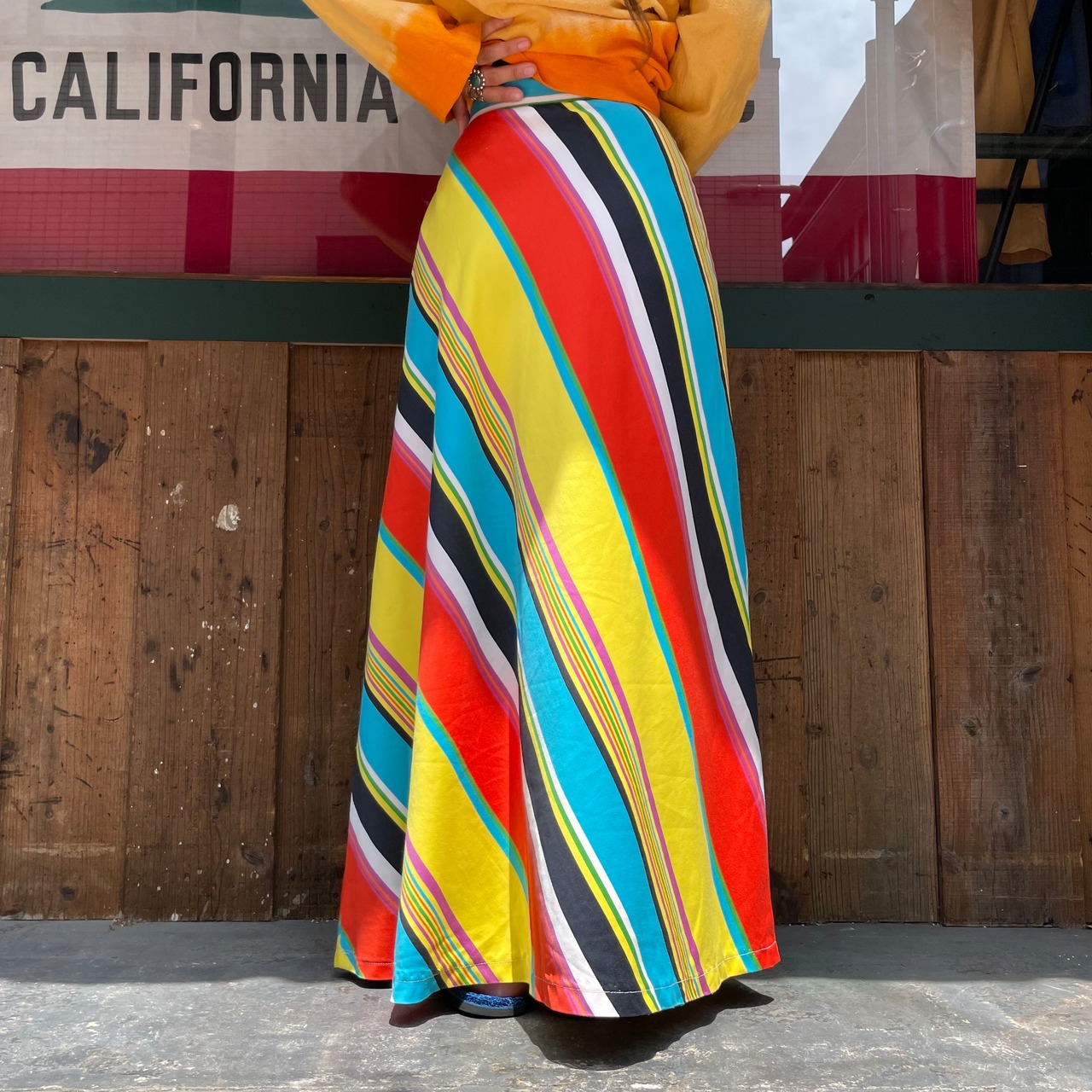 パキッとした色使いがとてもかっこいい70年代頃のロングスカートです。