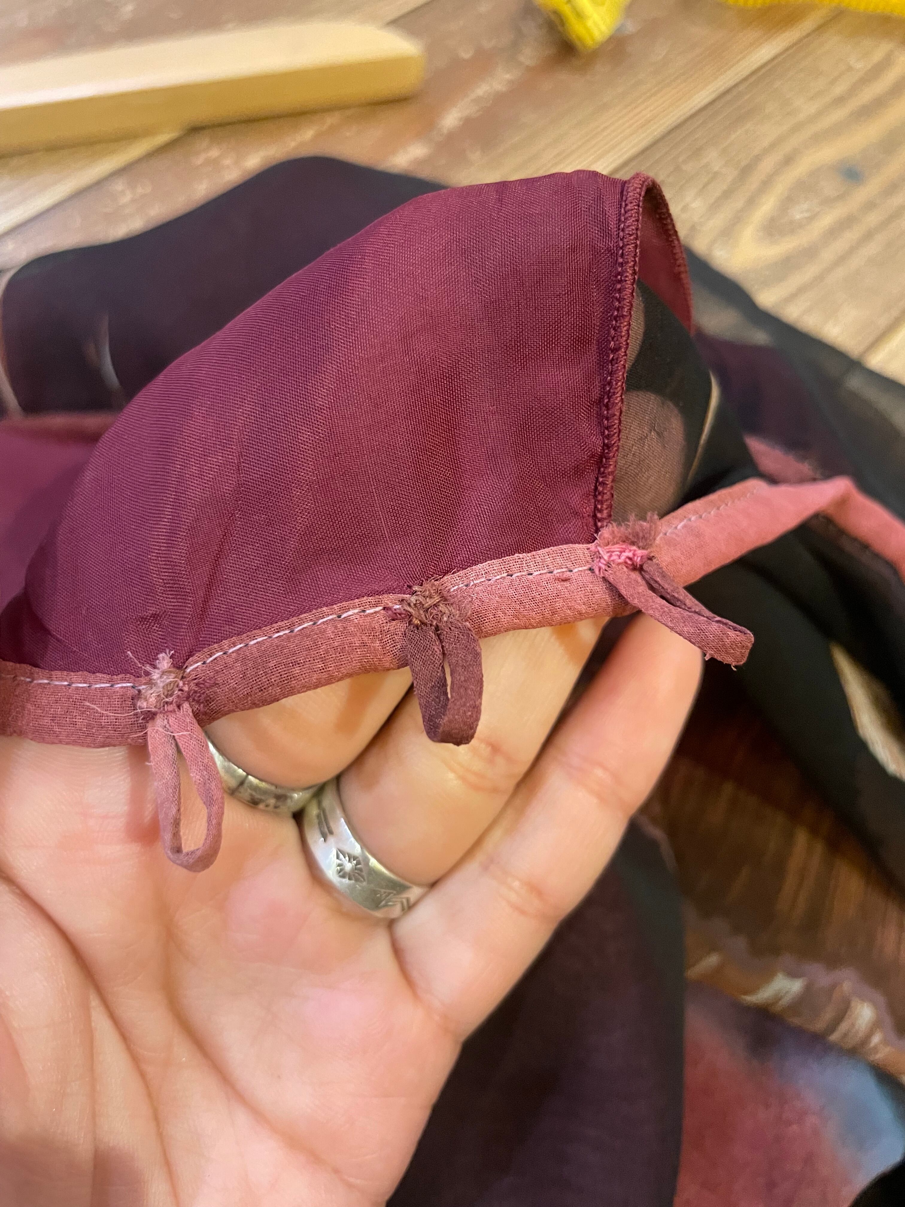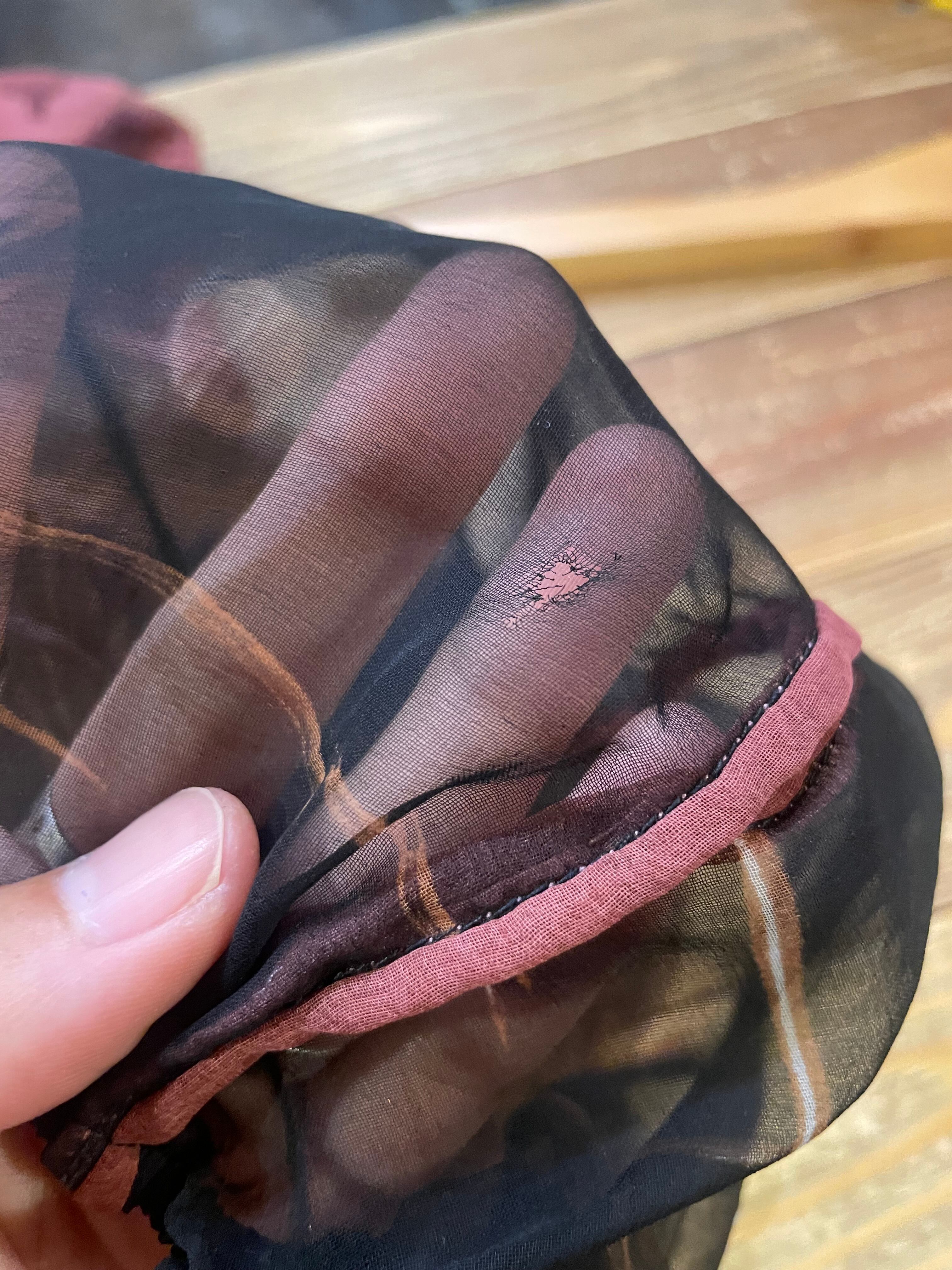 袖はパイピングの部分を前の持ち主が縫い合わせていますが、元々パカっと腕の見える袖だったようです。
