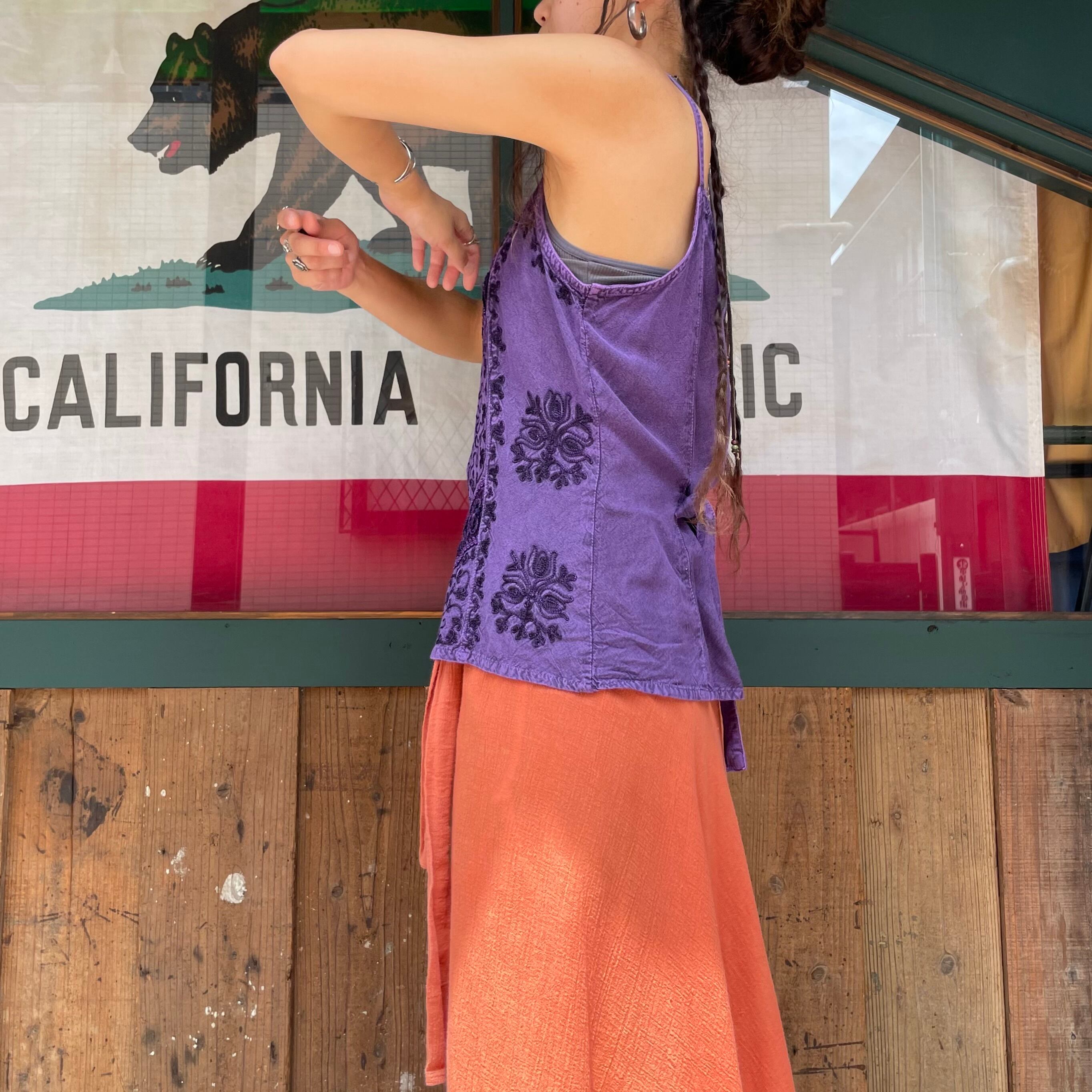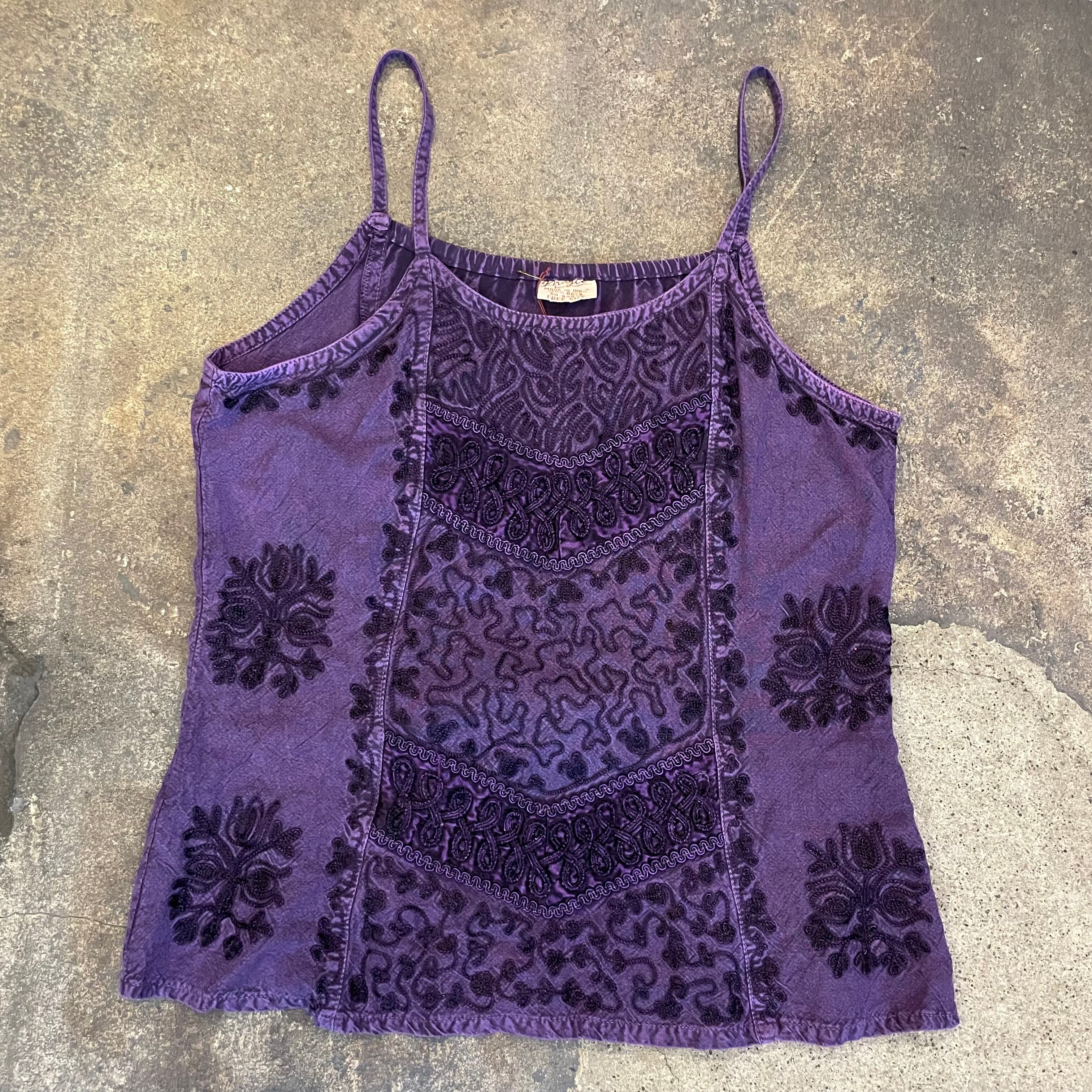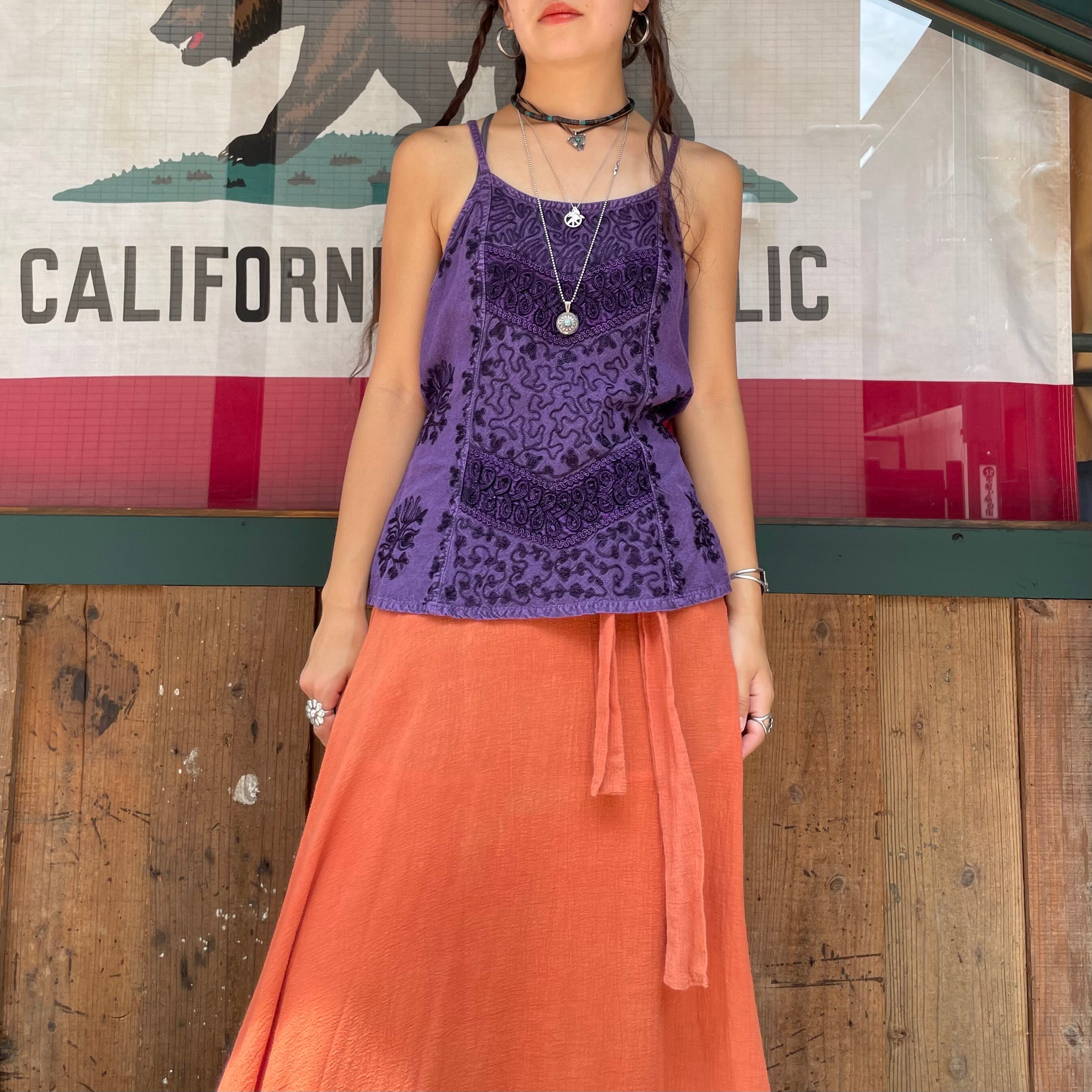 刺繍やコードの模様がかわいいインド製レーヨン素材のキャミソールです。