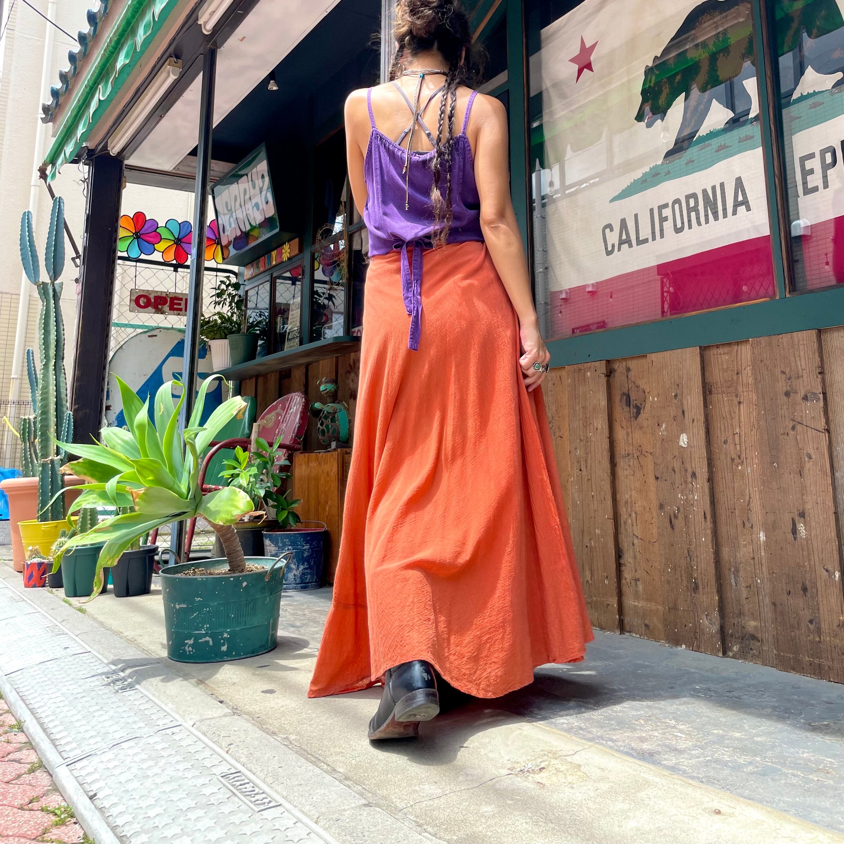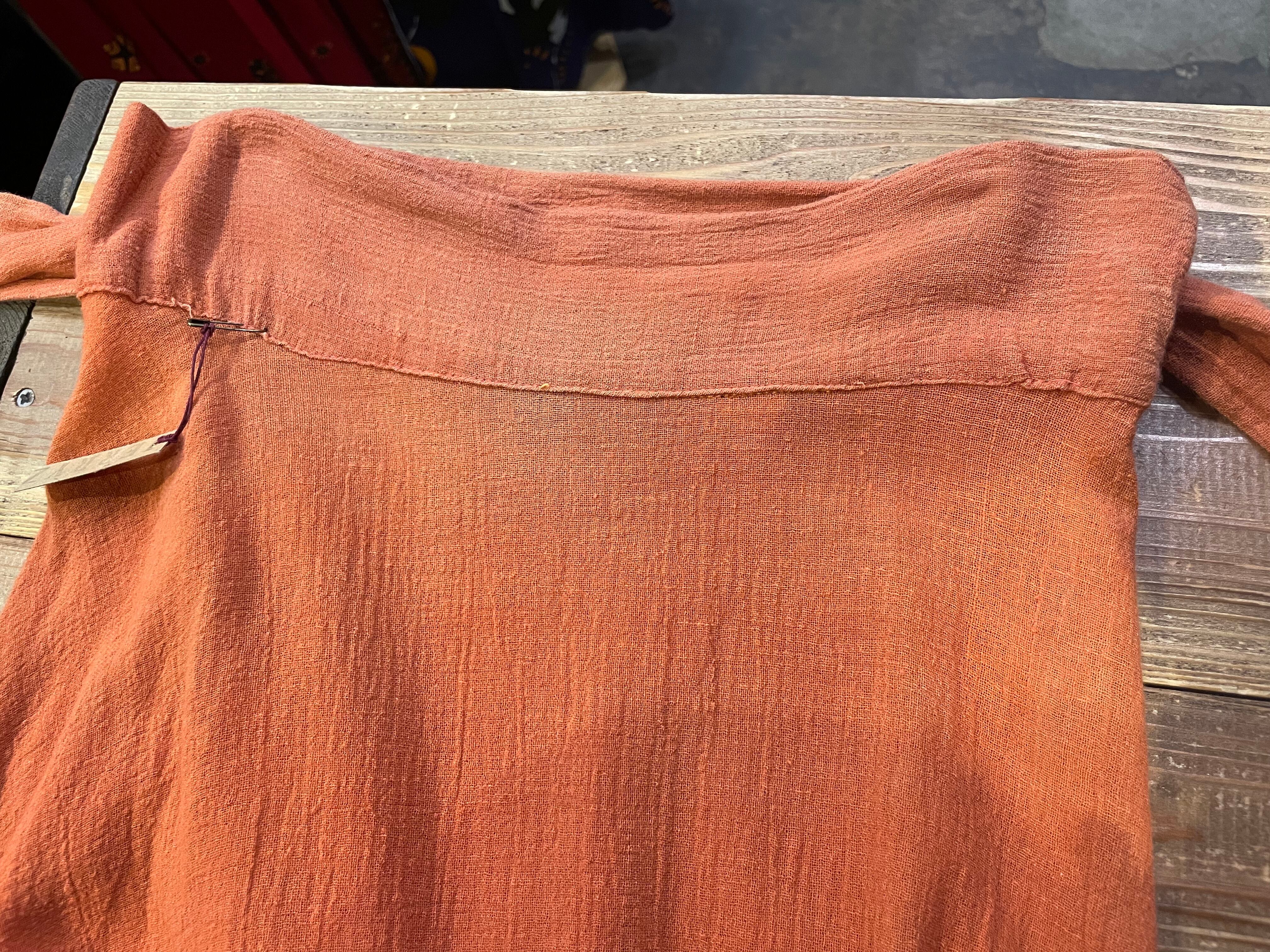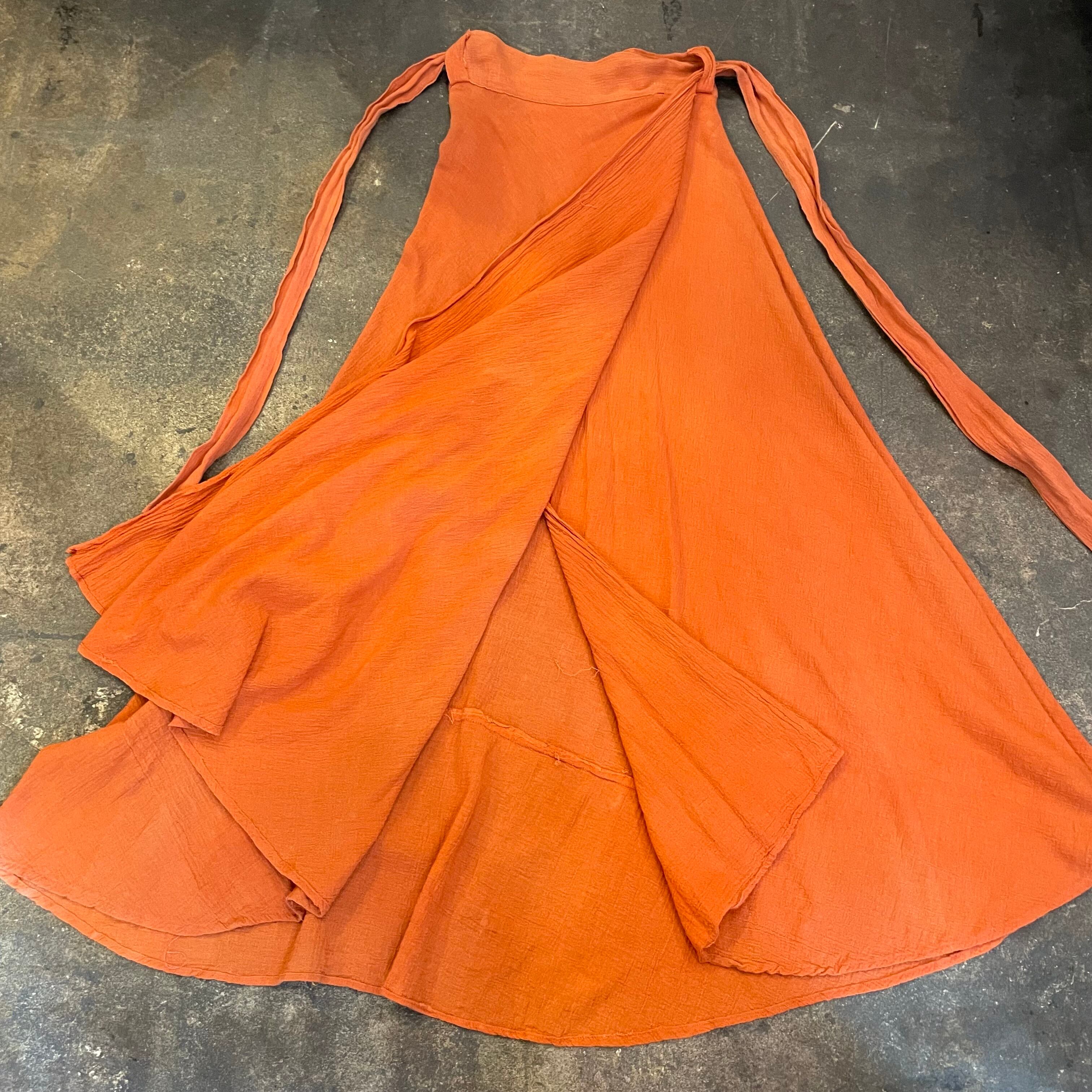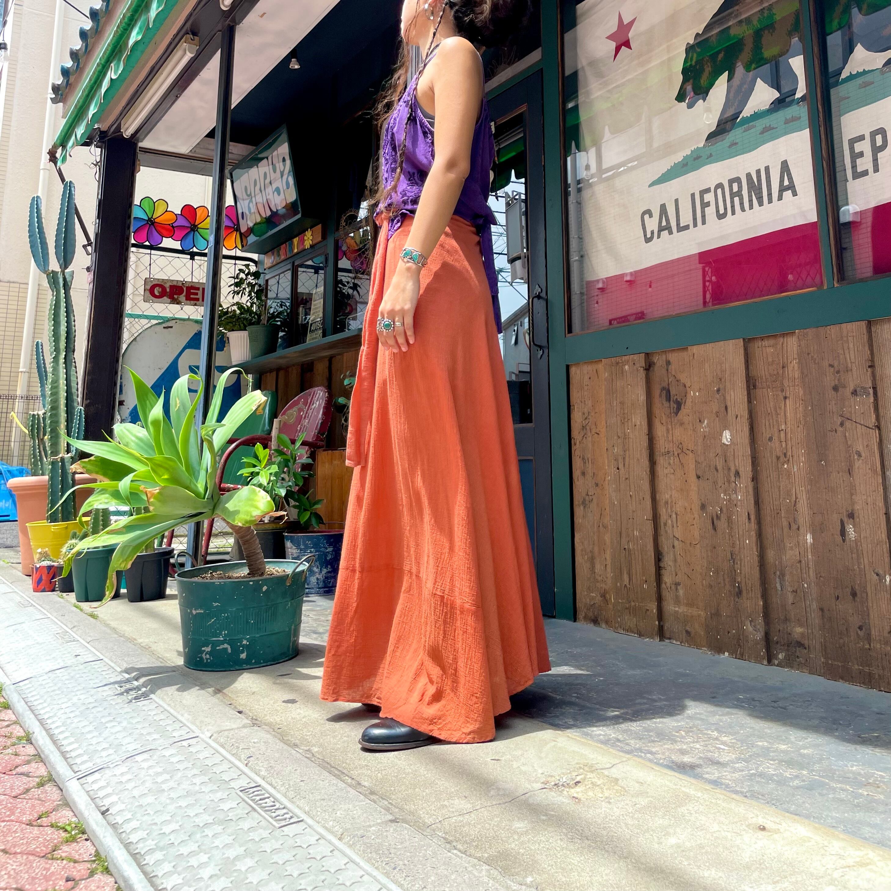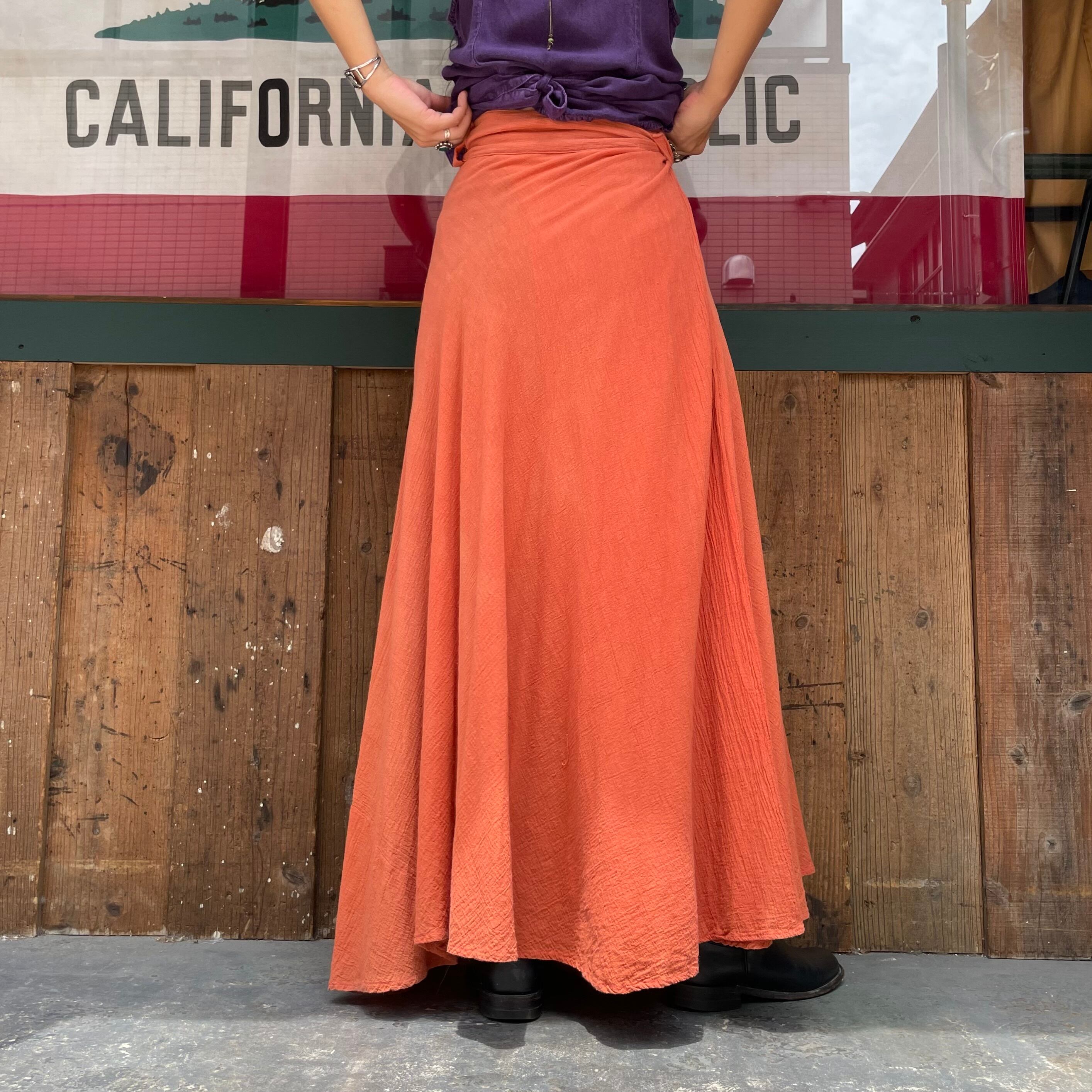 レンガっぽい、コーラル?赤みのある茶色?くすんだオレンジ?のような絶妙な色味がとても素敵な60〜70年代頃のインド製巻きスカートです。