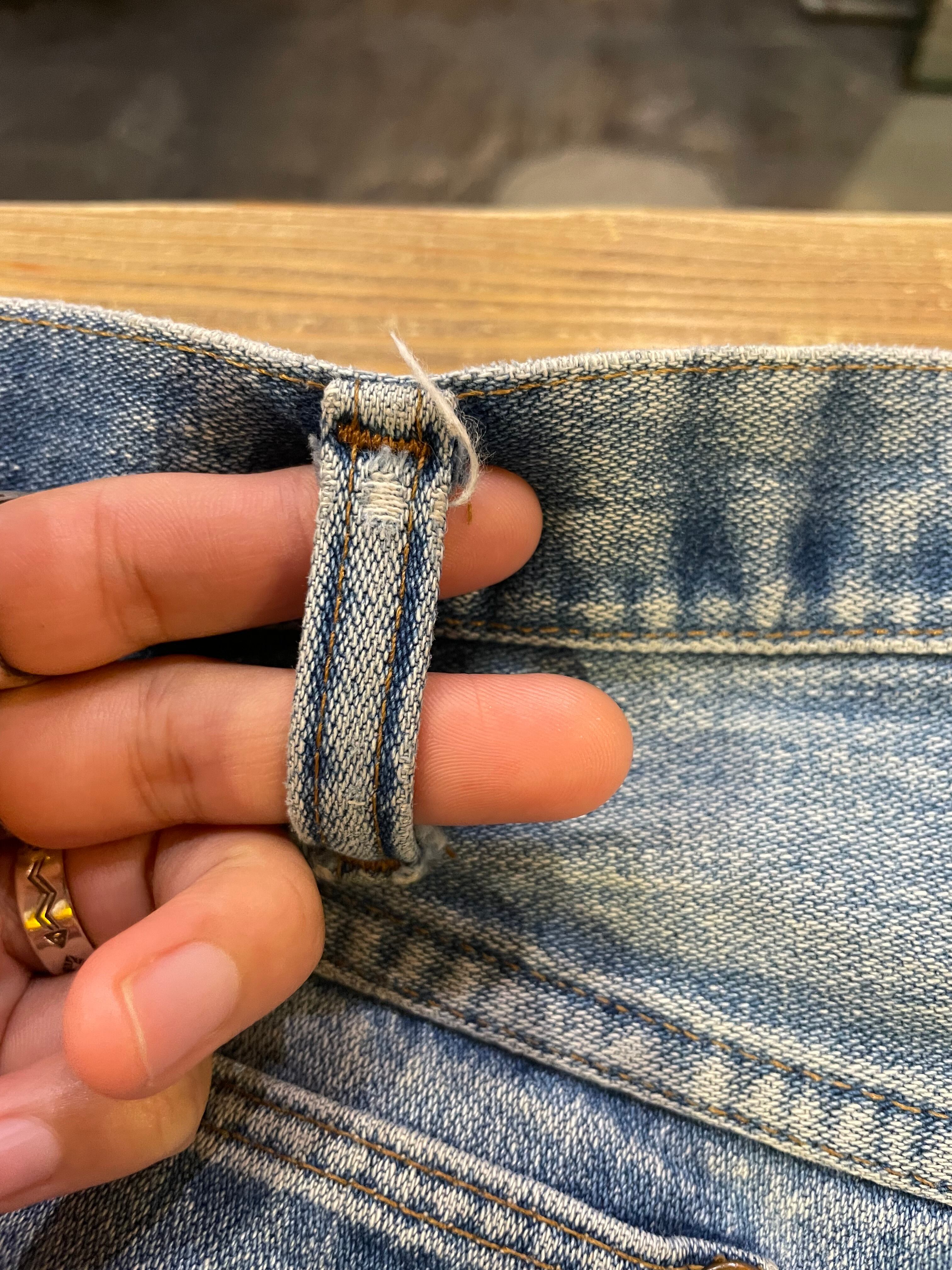 程よく色褪せしていたり、裾のほつれ感も雑な感じが良い雰囲気ですね。