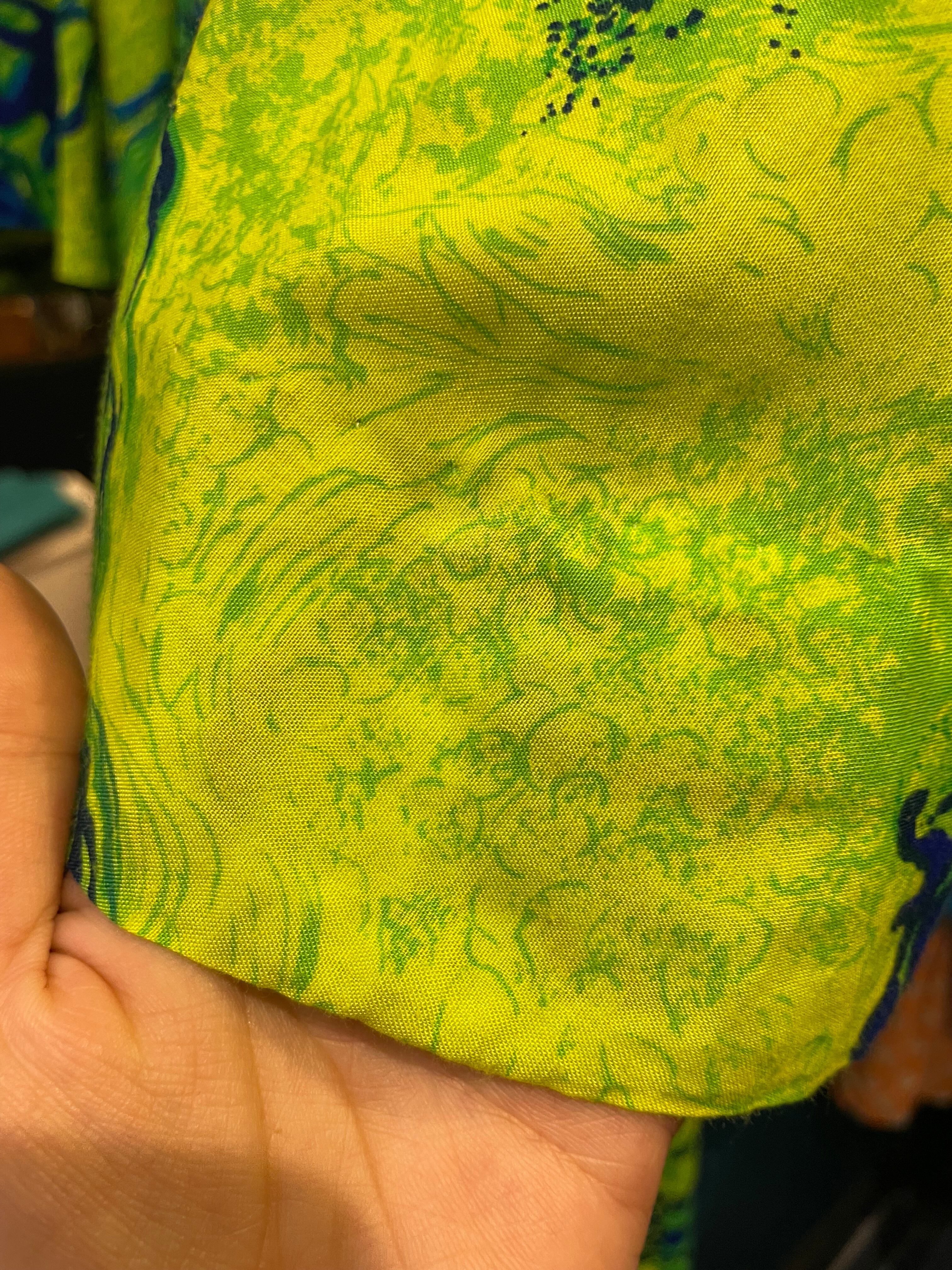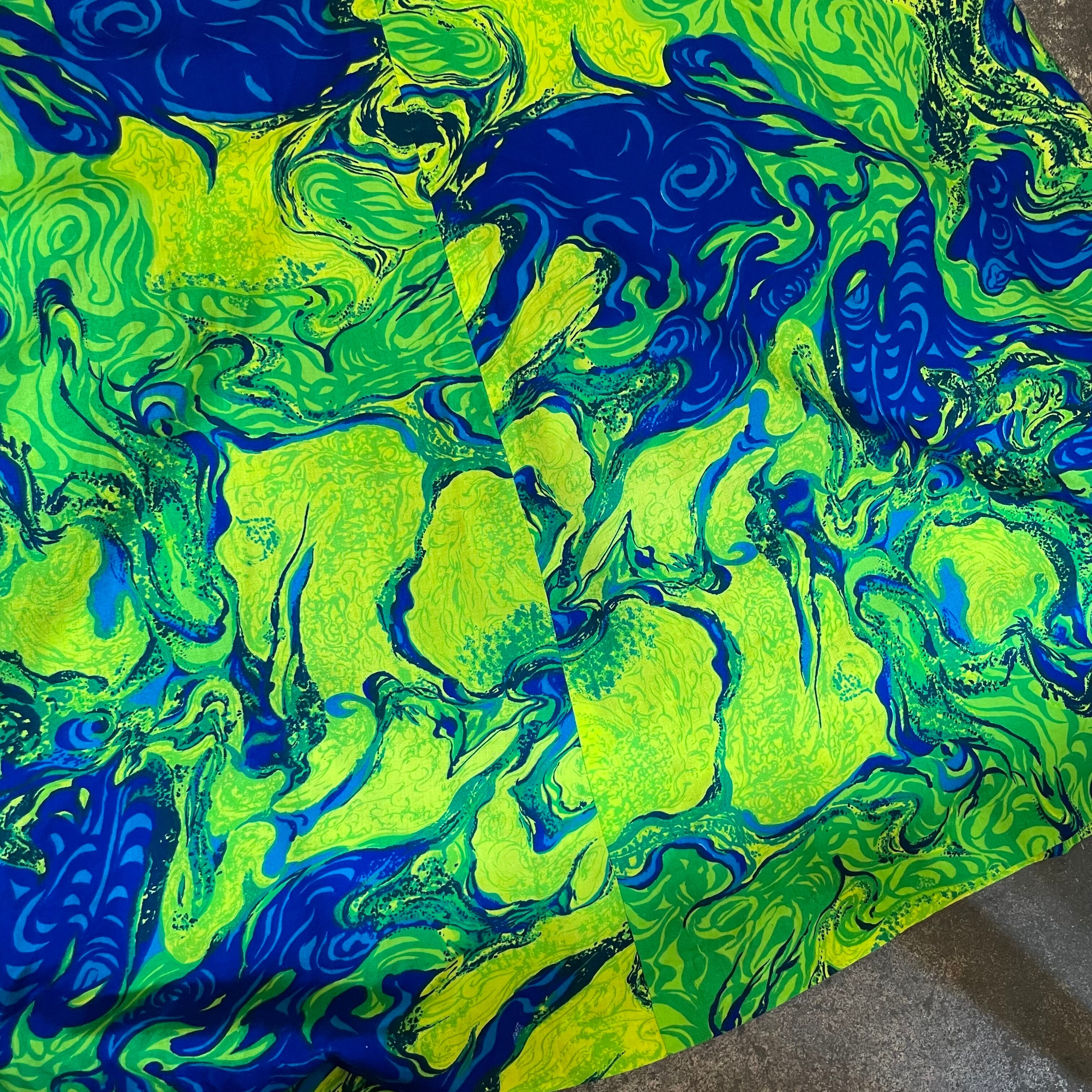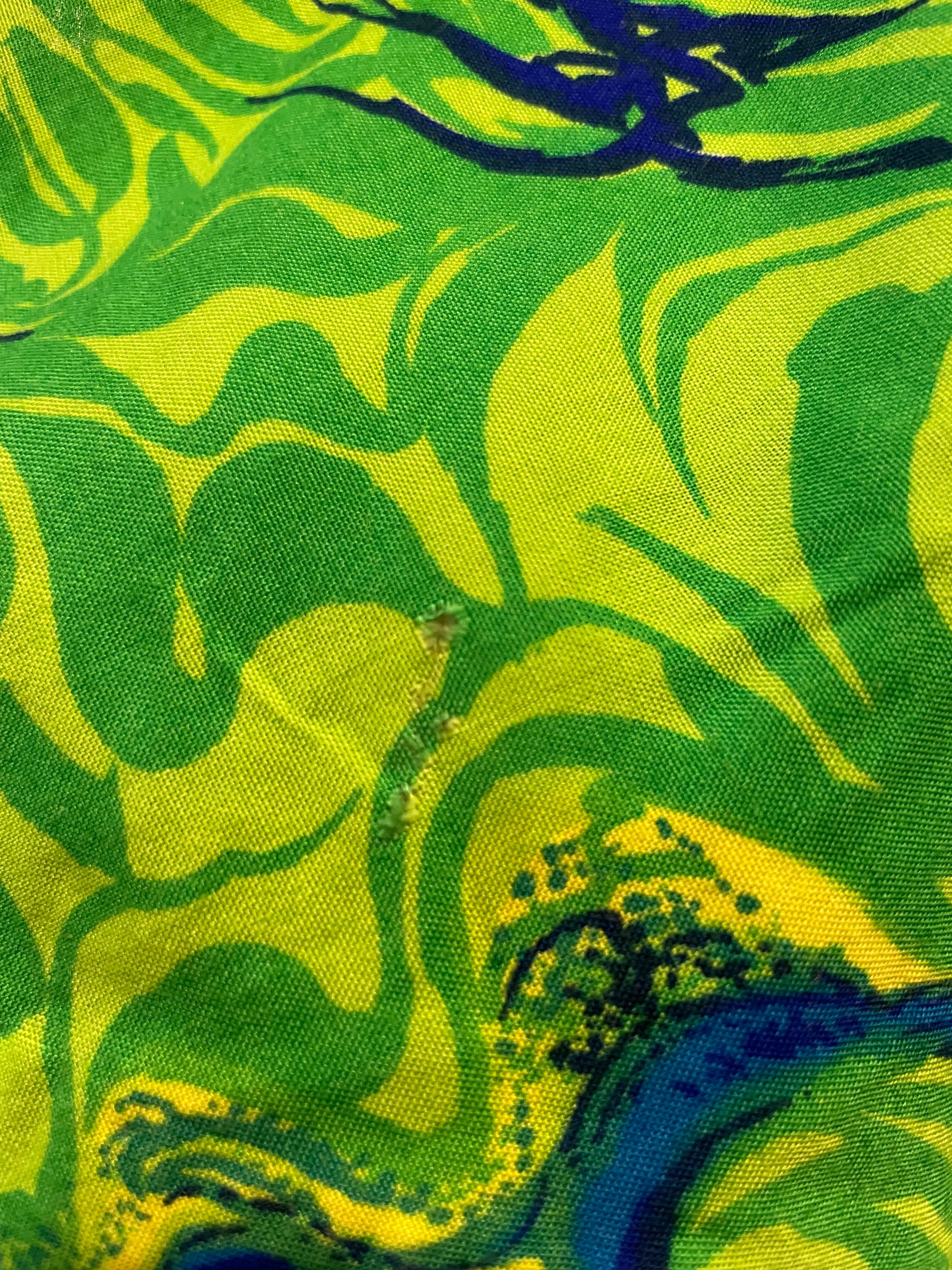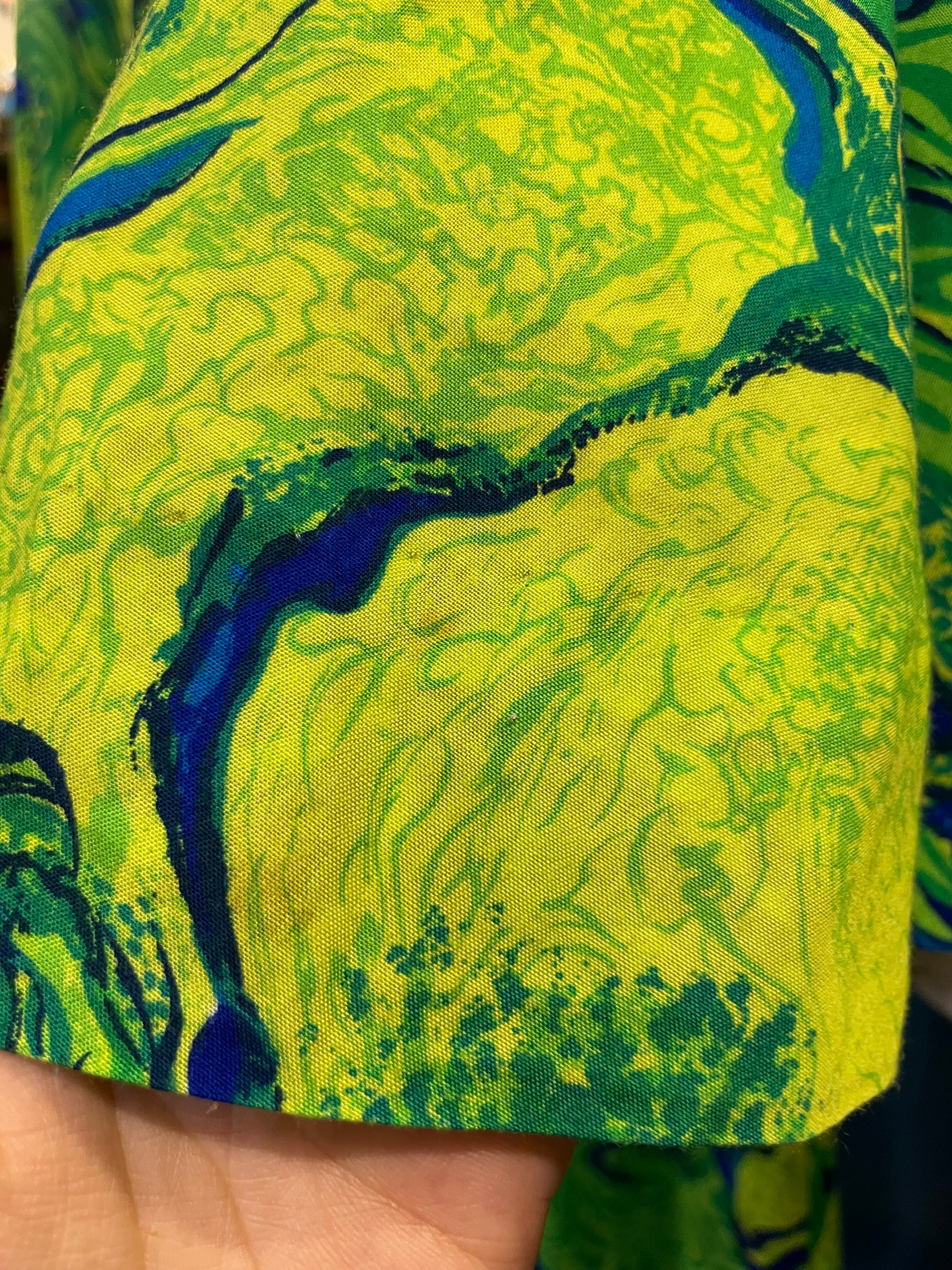 ほとばしるエネルギーを感じるような、サイケデリックなマーブル柄がとてもかっこいい60〜70年代頃のワンピースです。