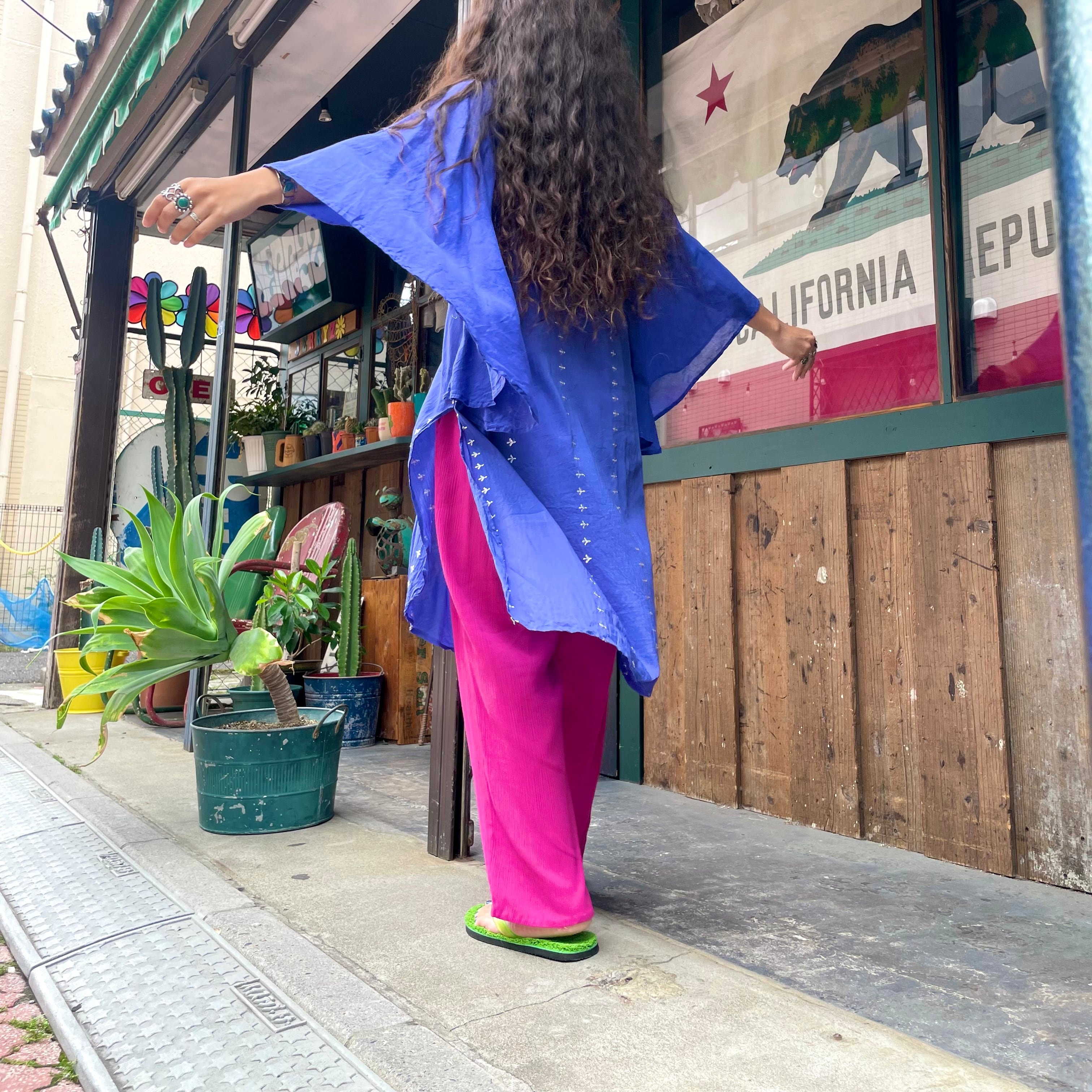 ロングスカートを合わせてエスニックな感じのスタイルも、ショートパンツを合わせて涼しげにも、バギーパンツのような存在感のあるパンツも合いそうですね!
