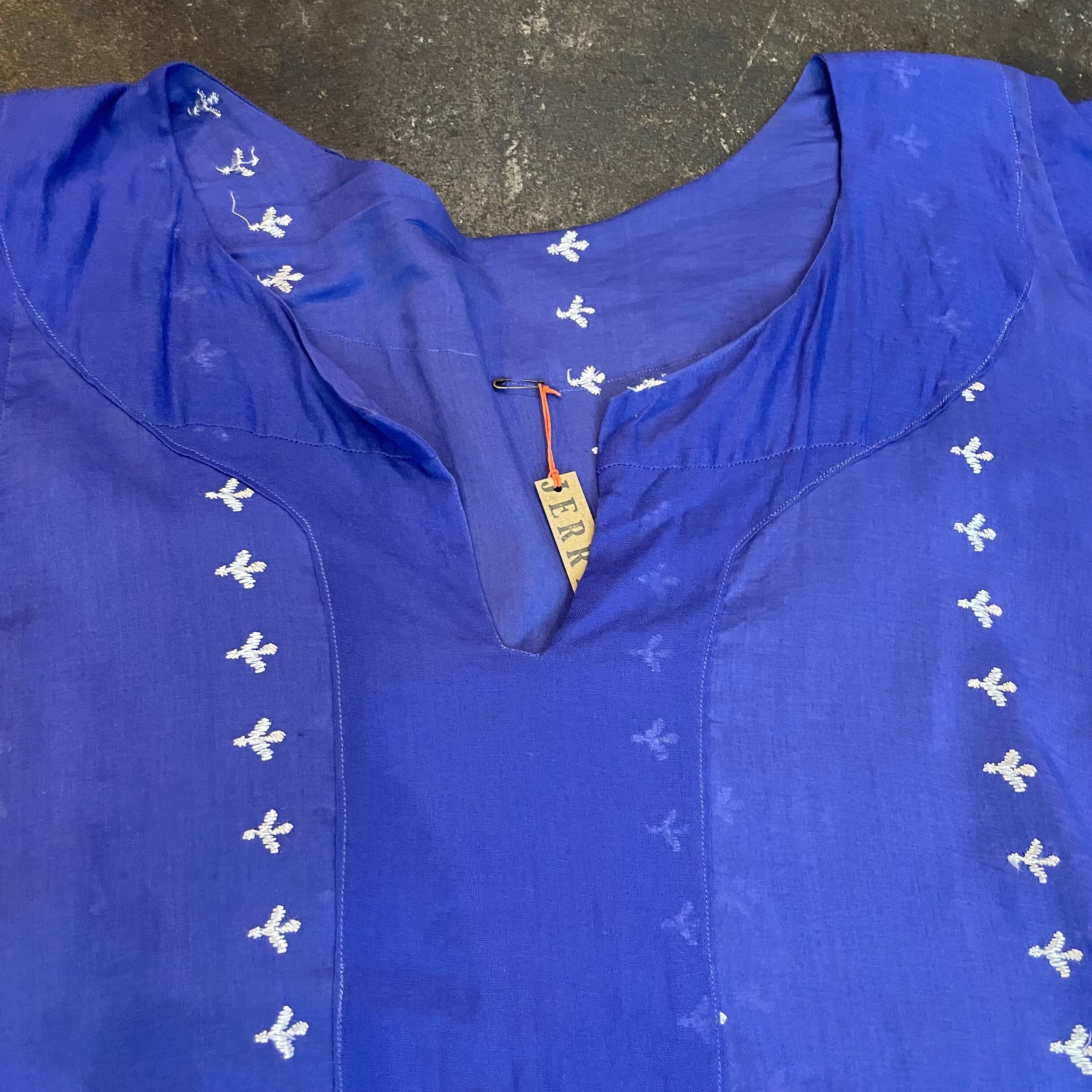 青みの強い紫色が大人っぽい印象で、サイドは深いスリットになっているのでいろんな重ね着を楽しめそうですね。