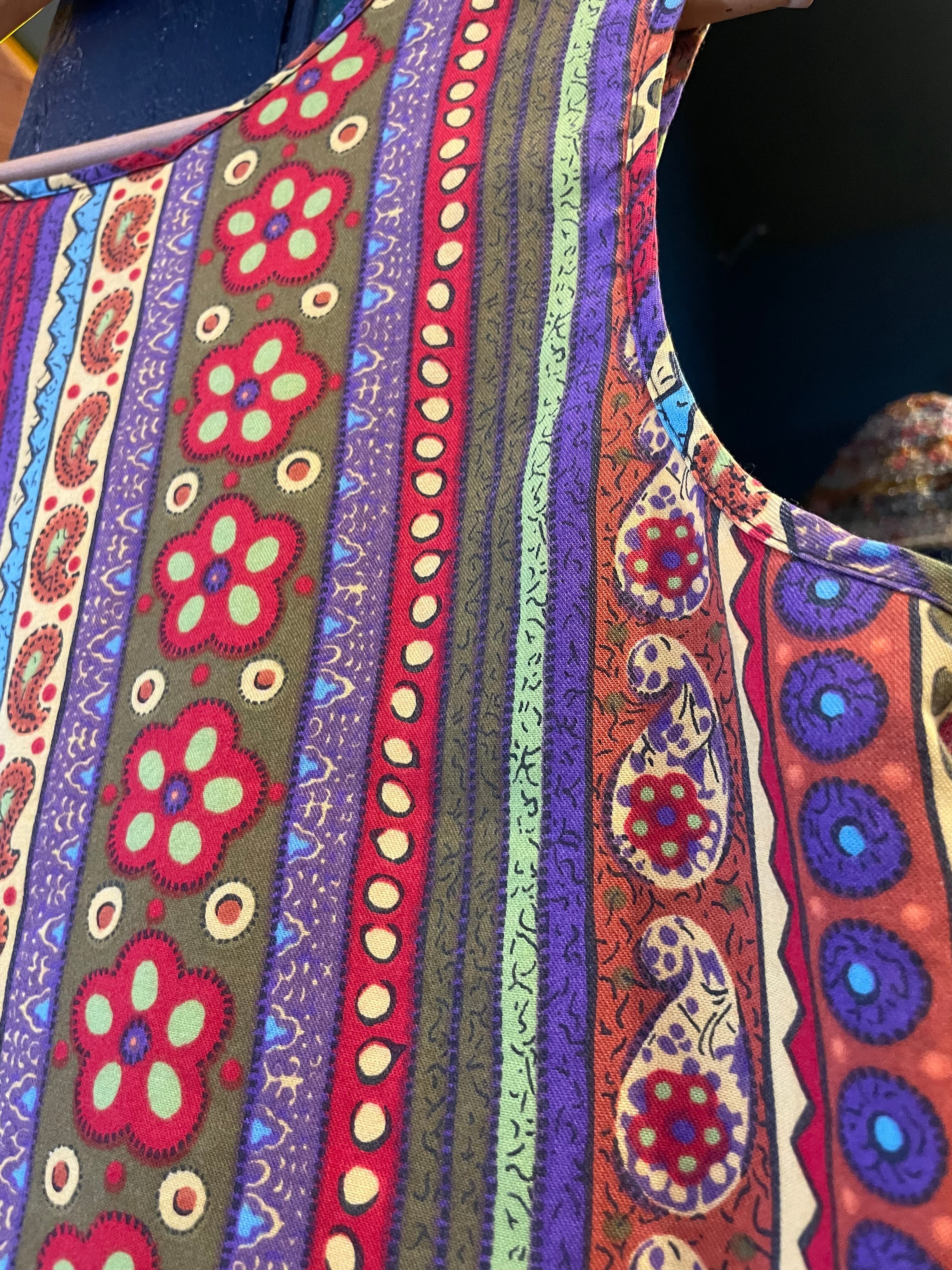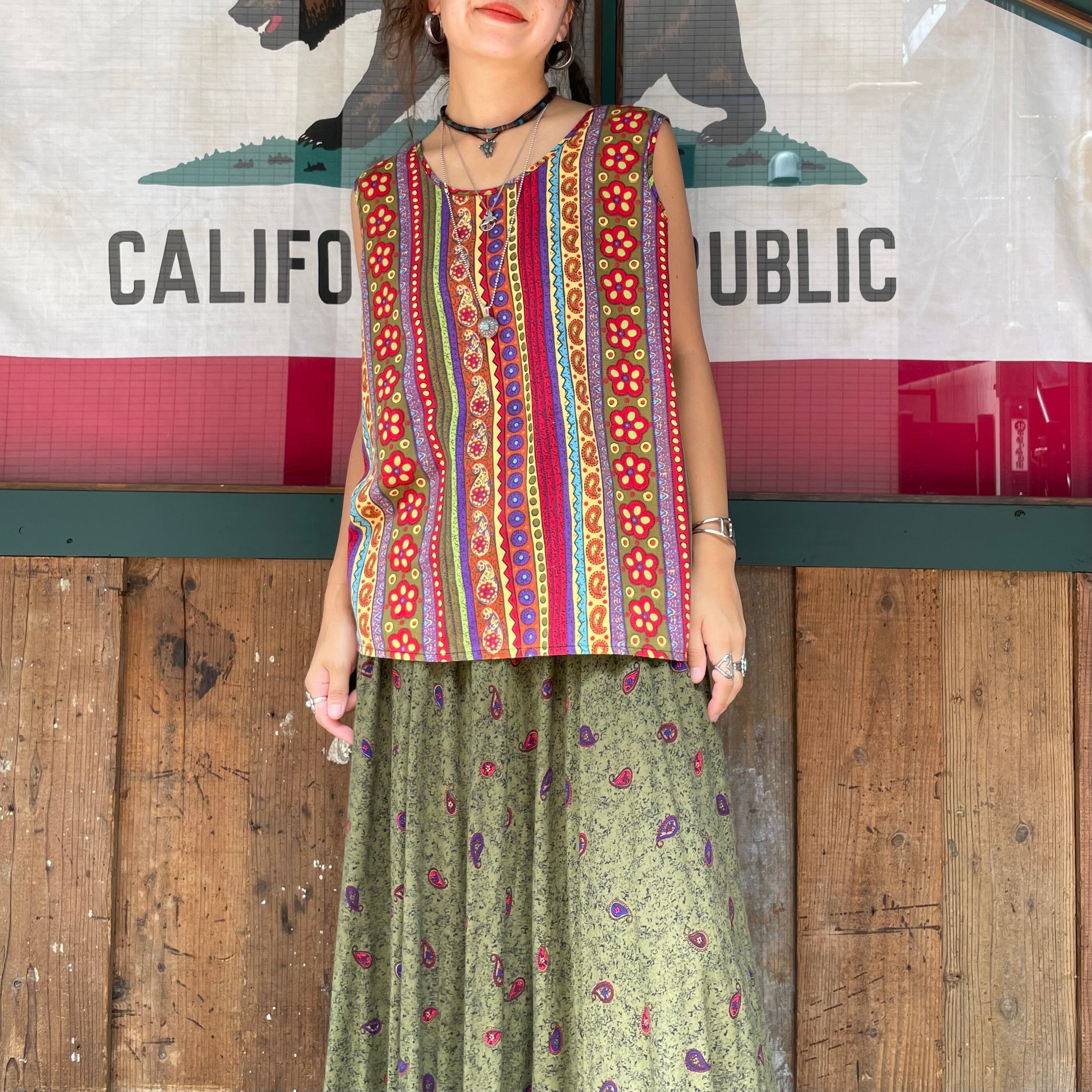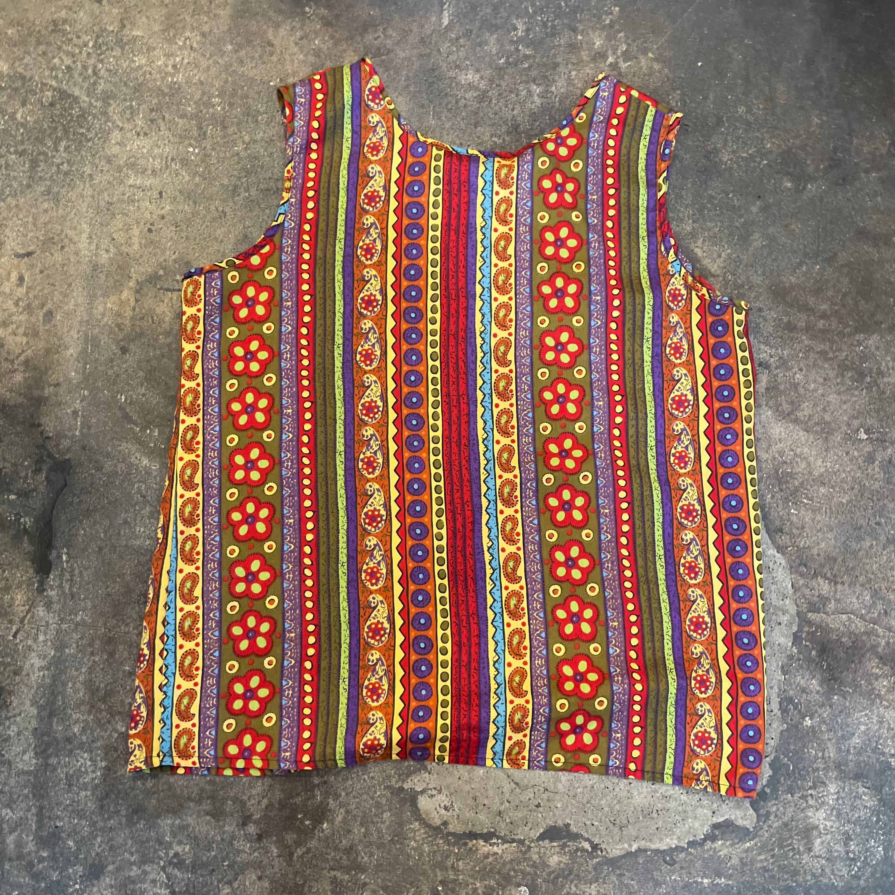 色合いと柄がエスニックでオリエンタルな雰囲気がとてもかわいいタンクトップです。