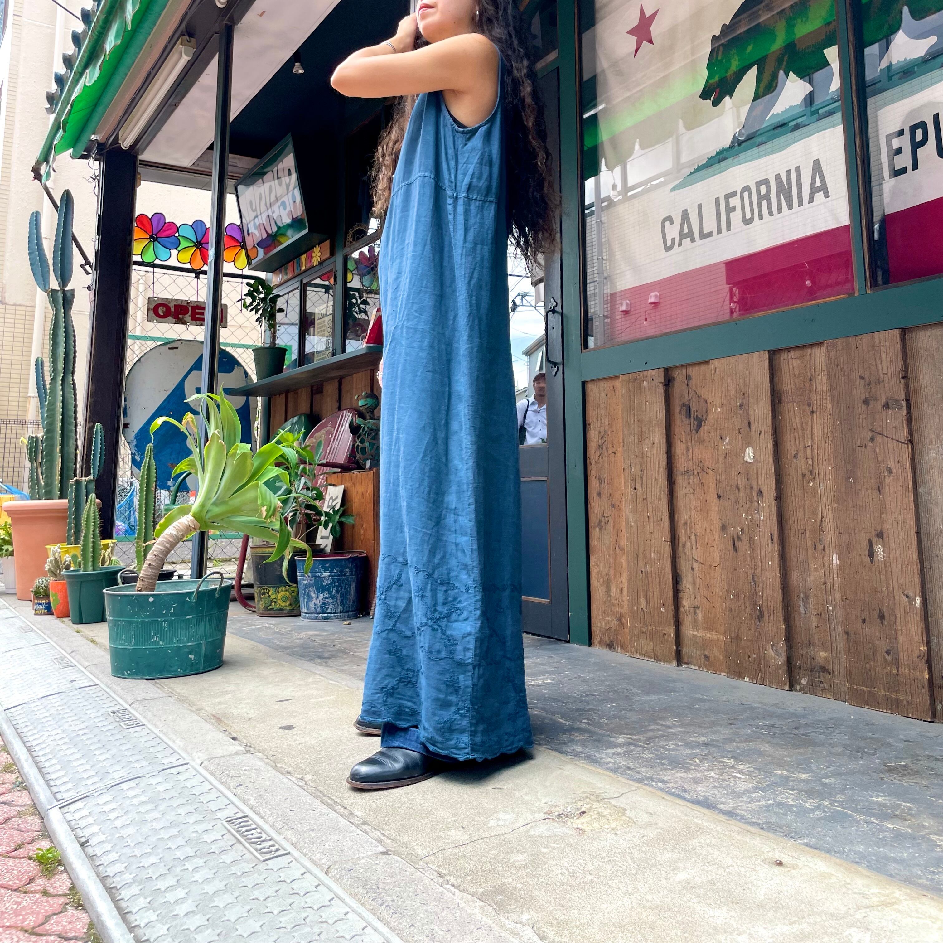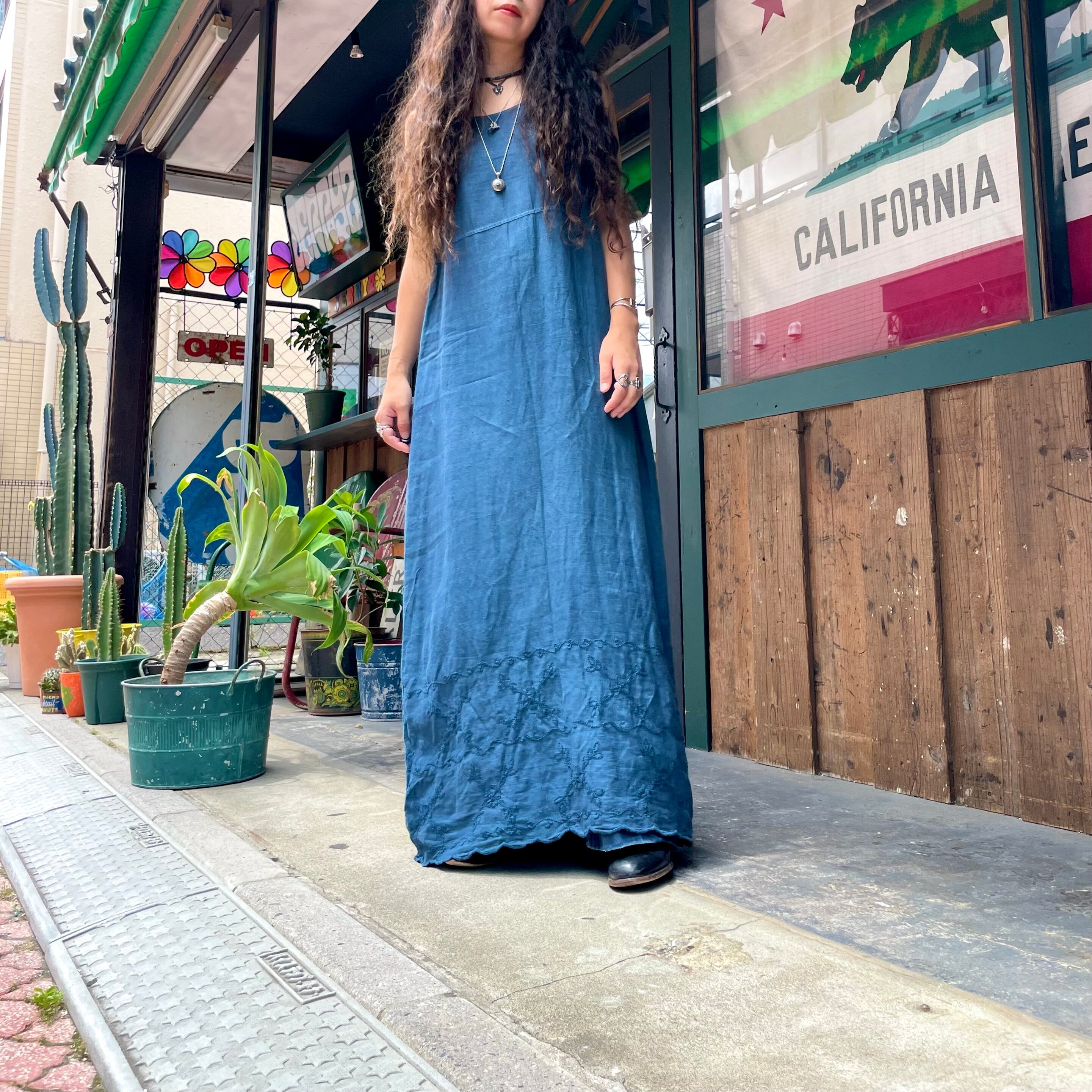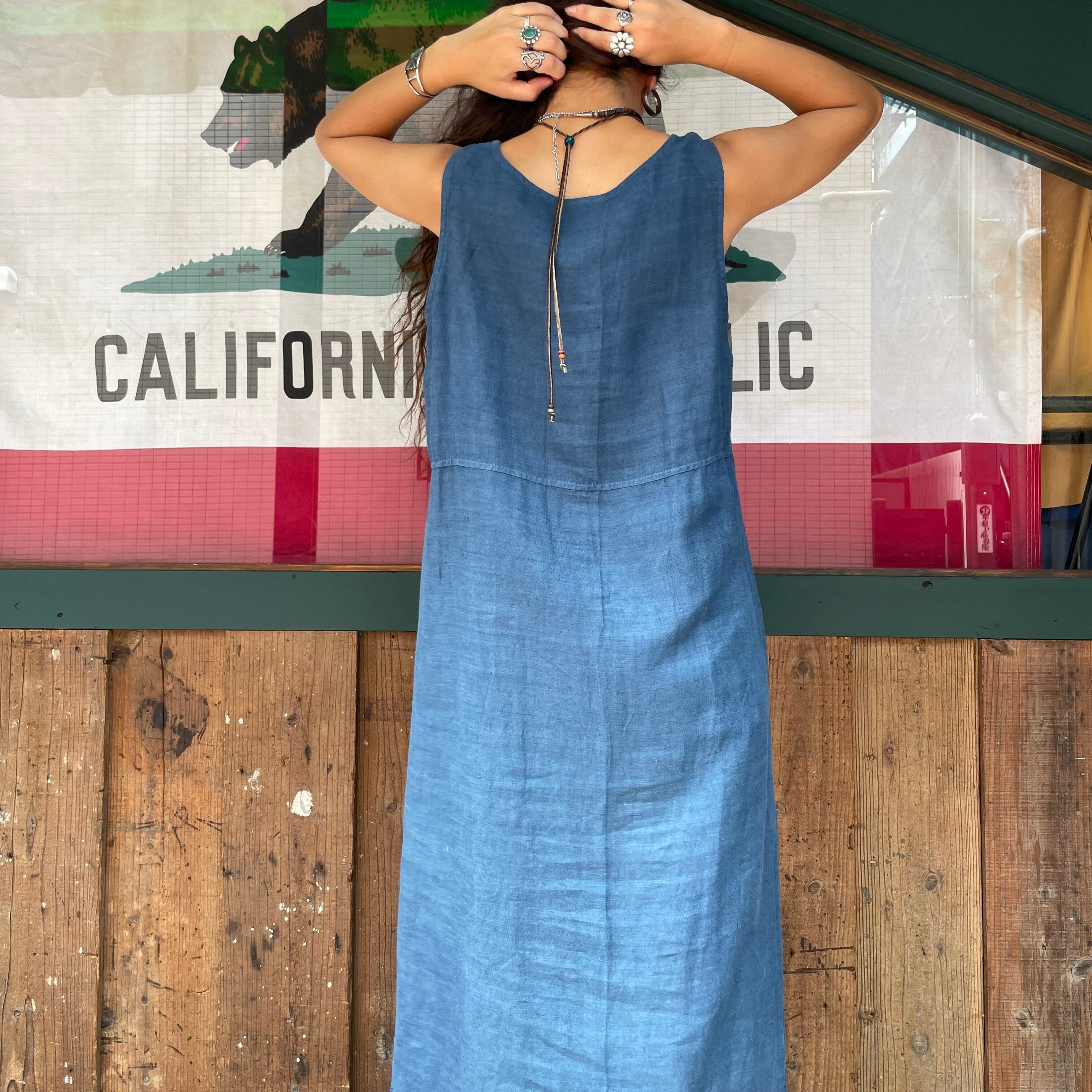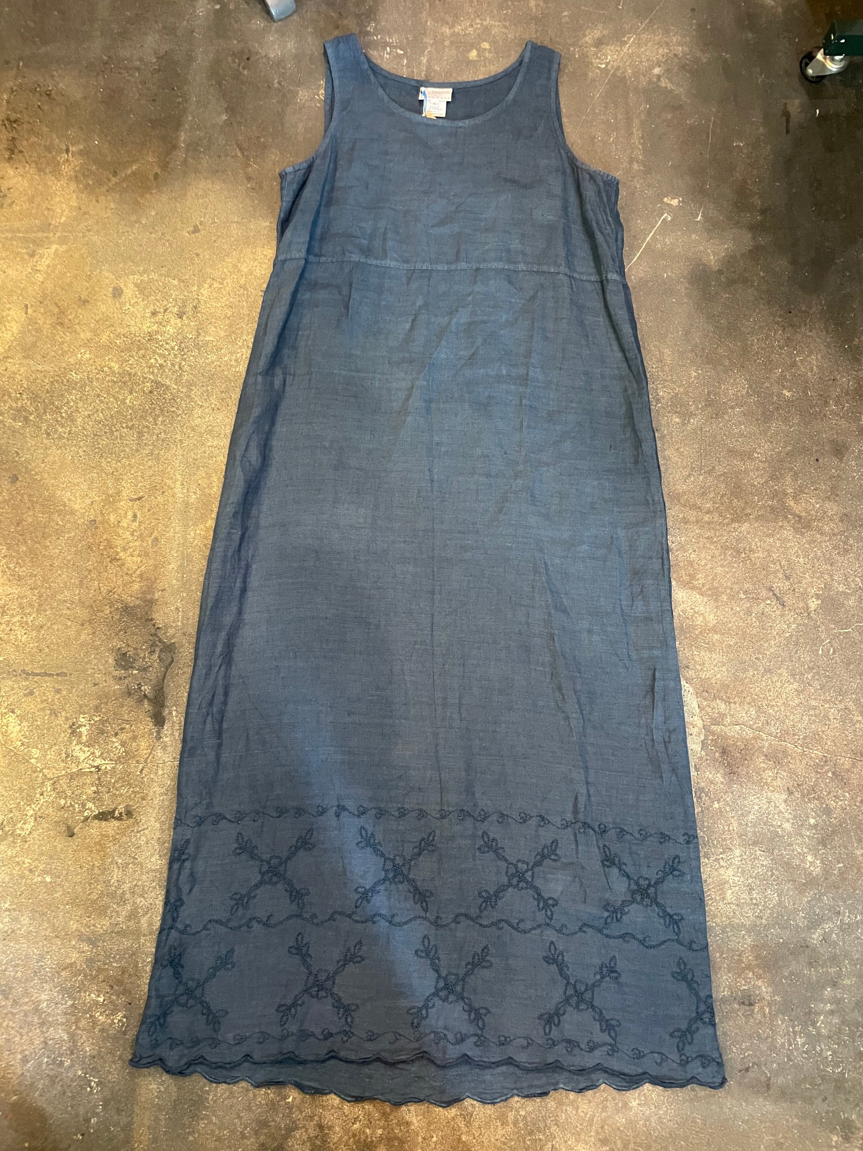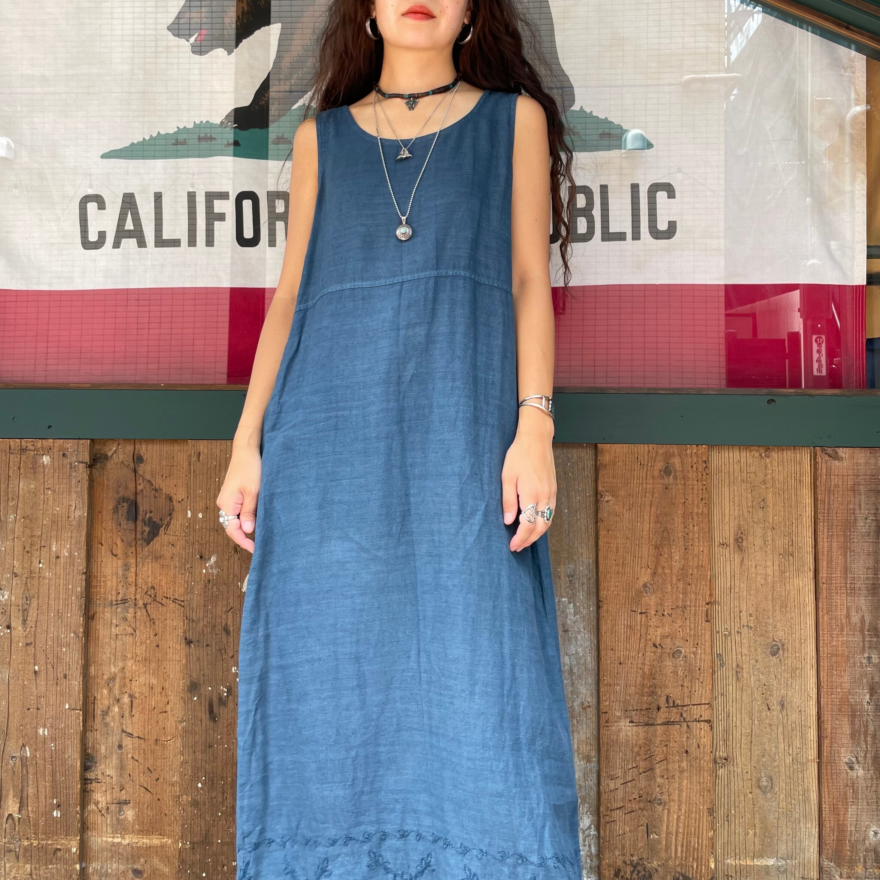 linen embroidery sleeveless dress