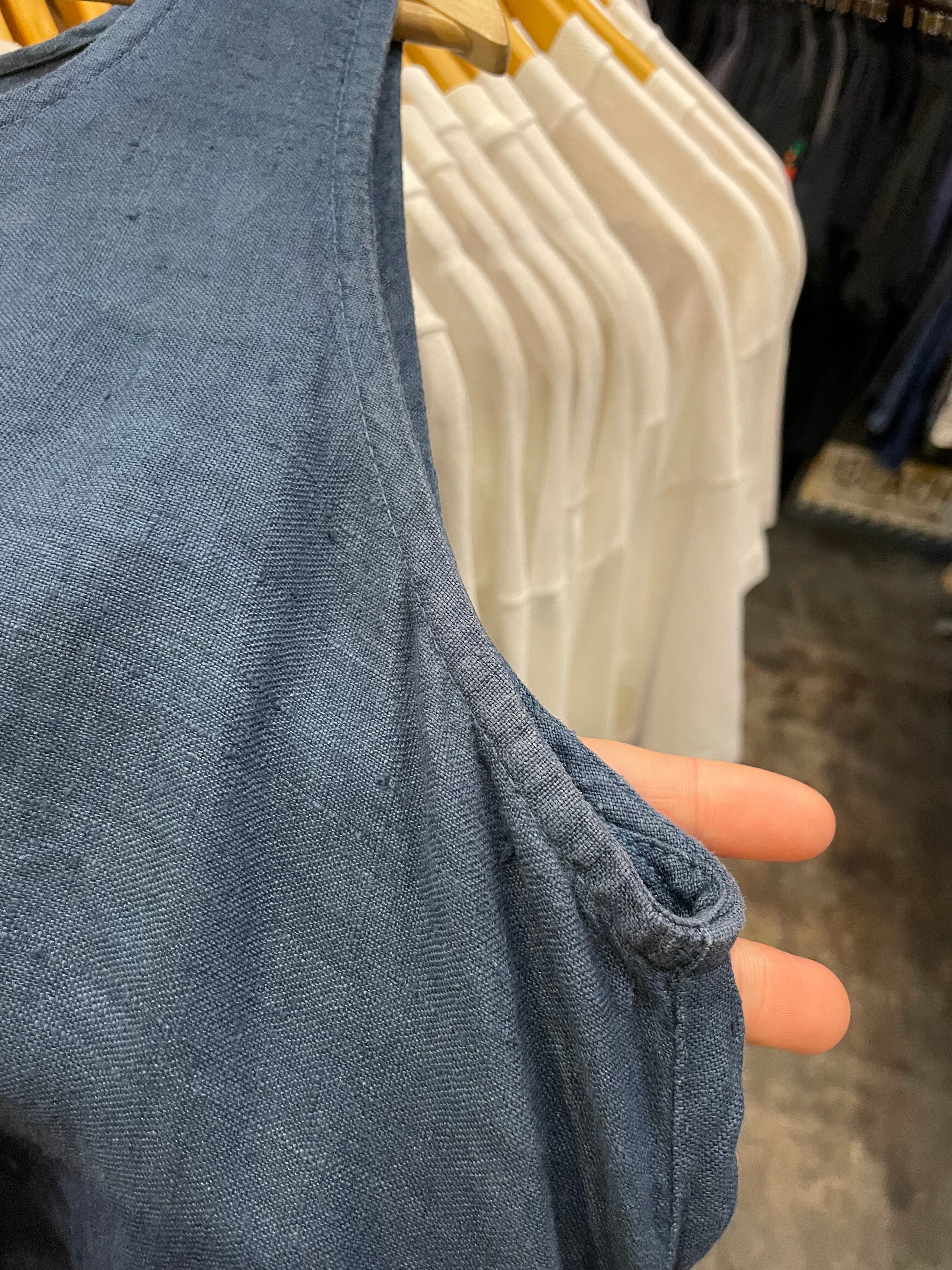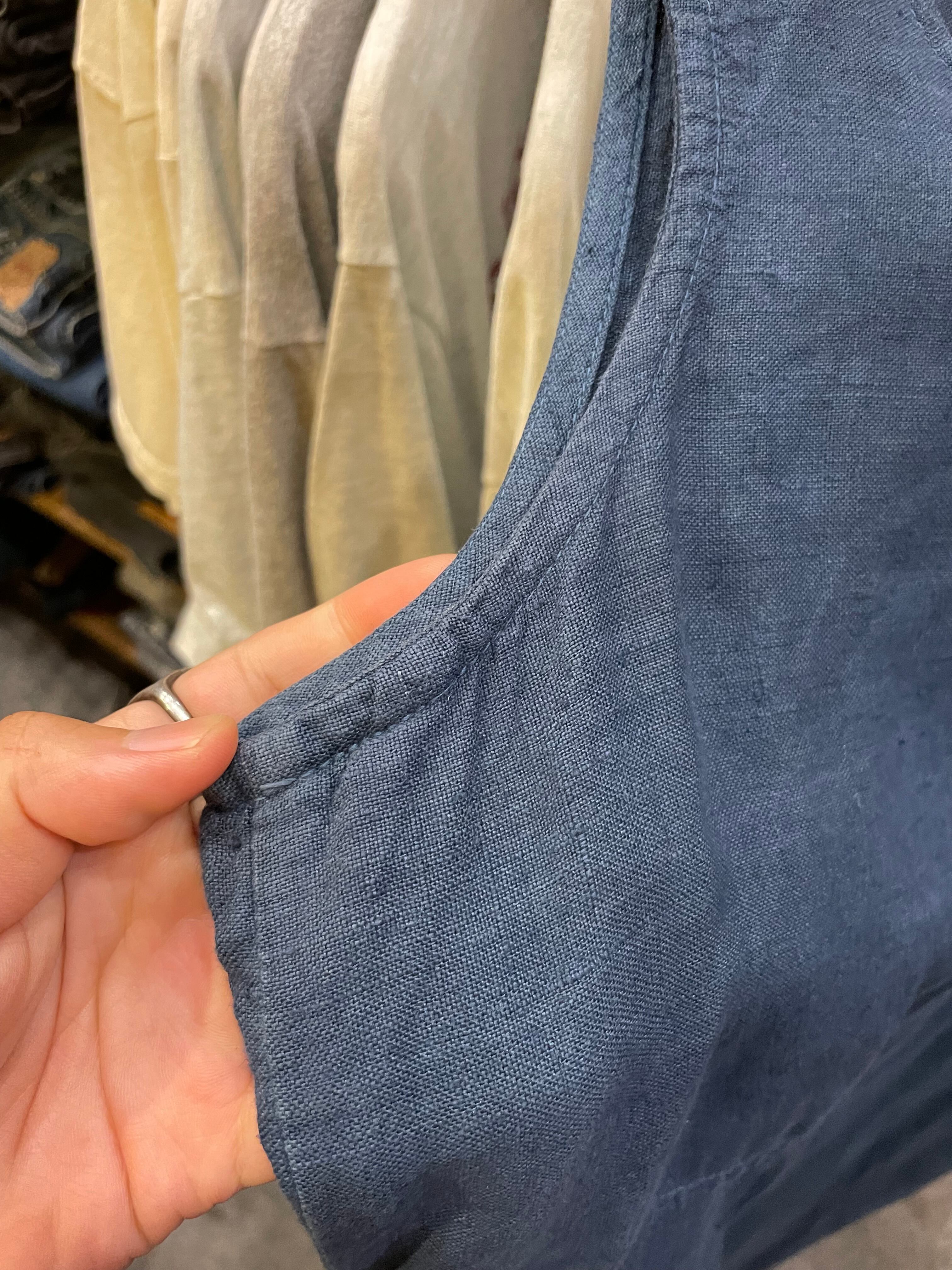 襟ぐりや脇の変色、部分的な色褪せ、生地のネップ等リネン特有の使用感のある商品ですので古着にご理解のある方のご購入をお願い致します。