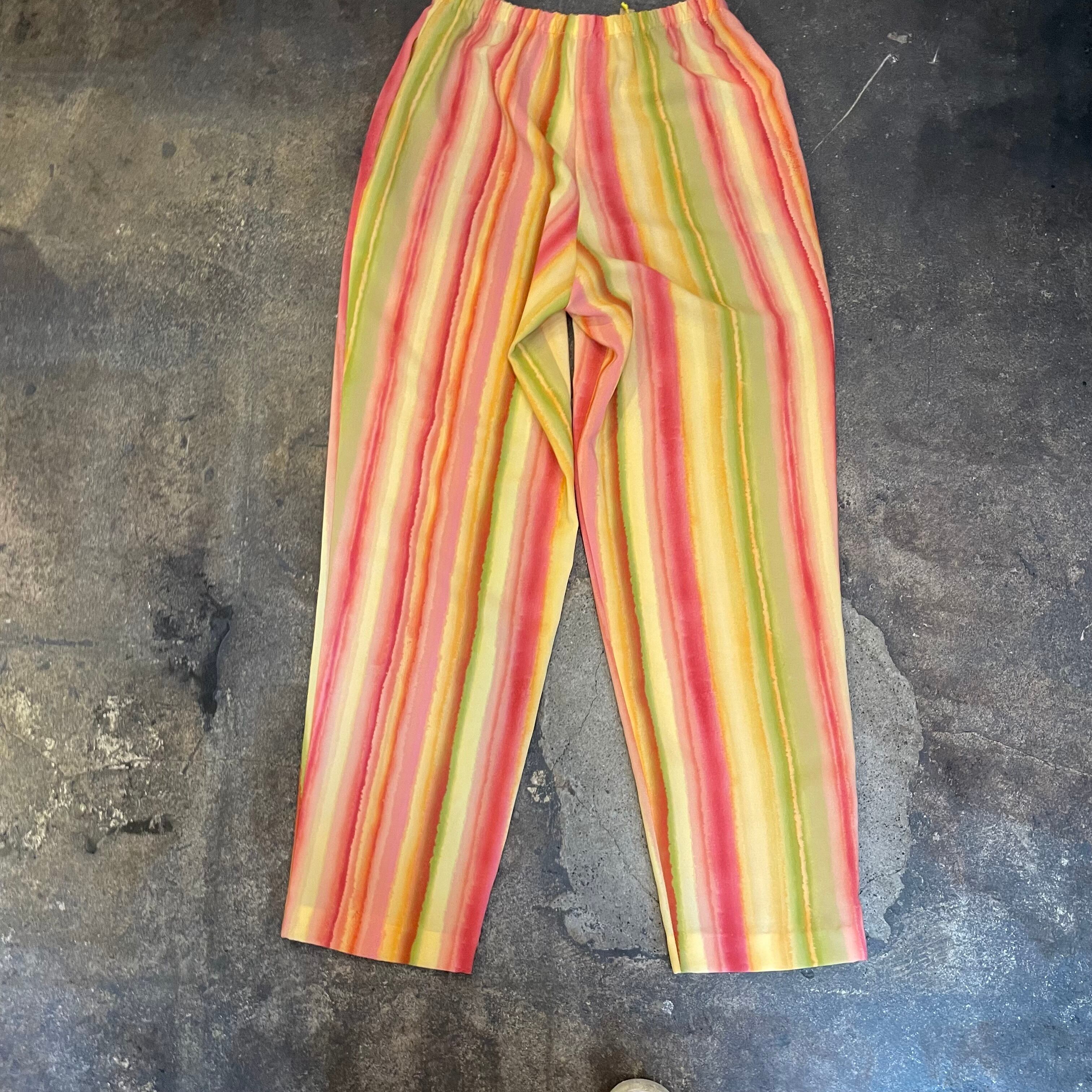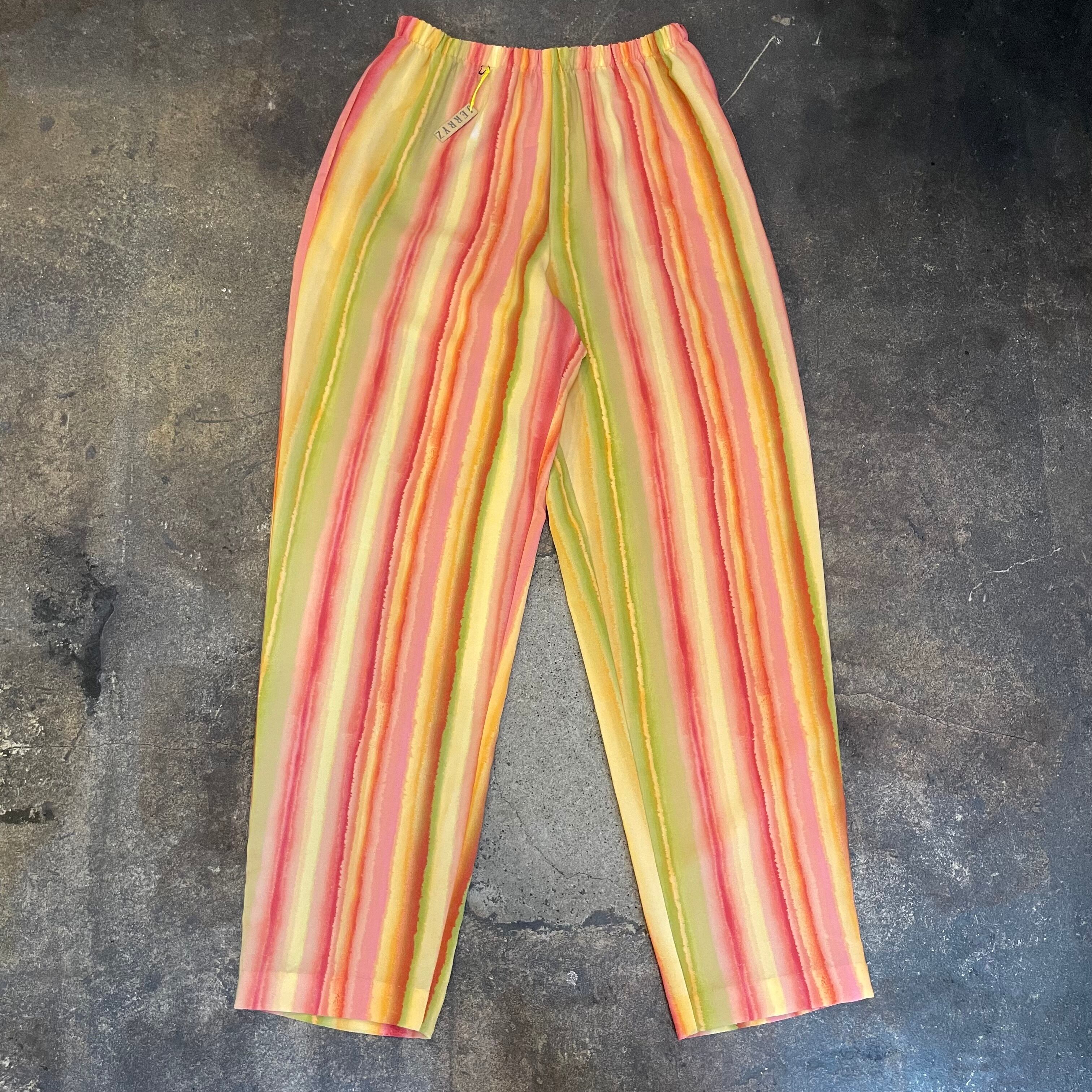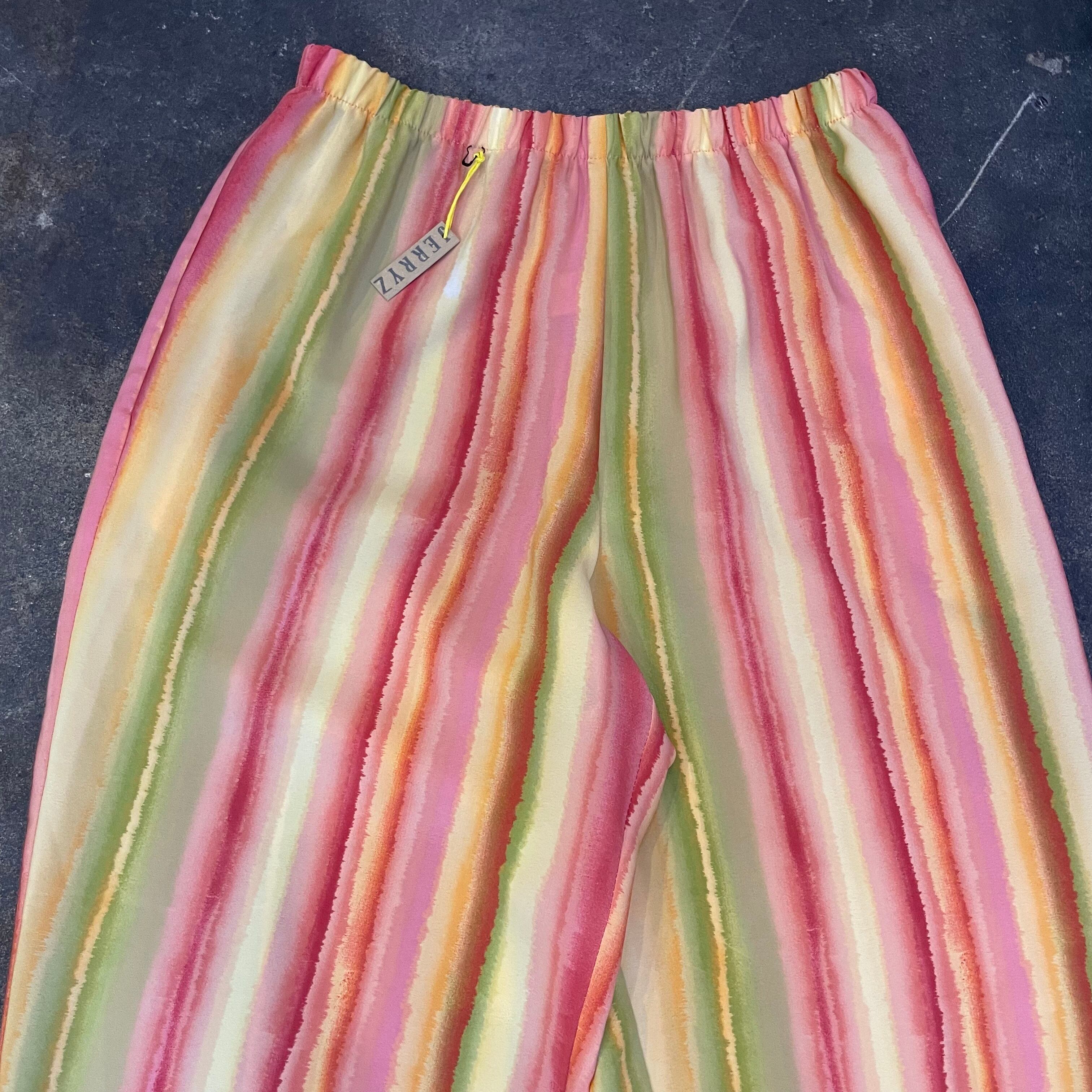 地層のようなきれいな石のようなストライプがとてもかわいいイージーパンツです。