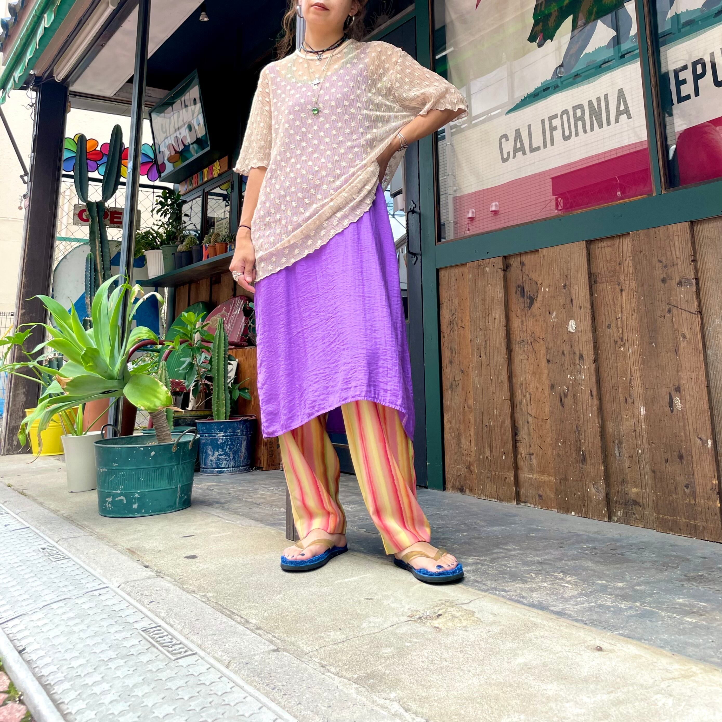 シースルーで色味も爽やかで見た目には涼しいと思います。一枚では透けますので上にショートパンツを重ねたり、ワンピースの裾から見せたり、ペチコートを中に履いてしまえばTシャツやタンクトップとゆるいラフな合わせもかわいいと思います!