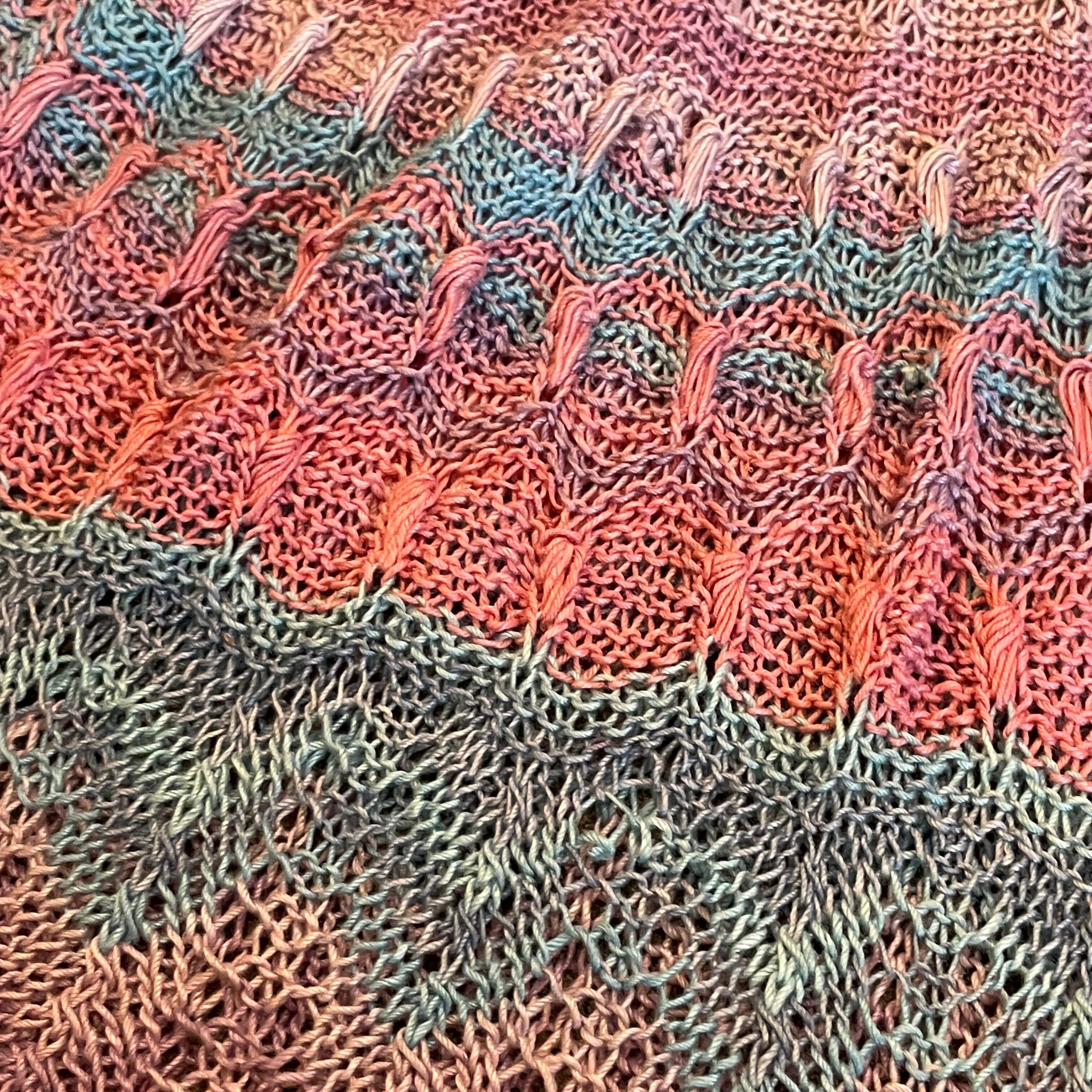 放射状に広がるような編み方で模様の部分も美しいですね。