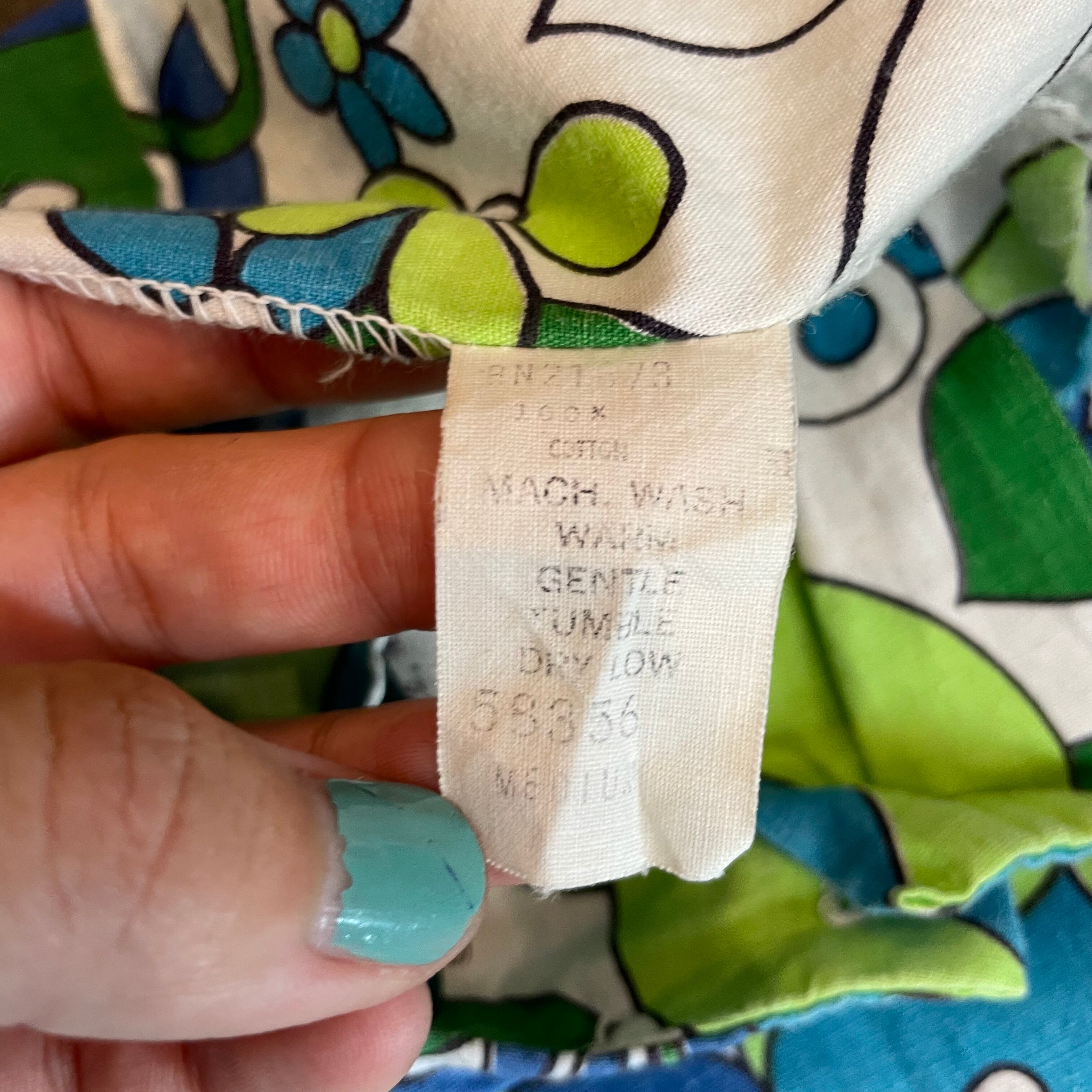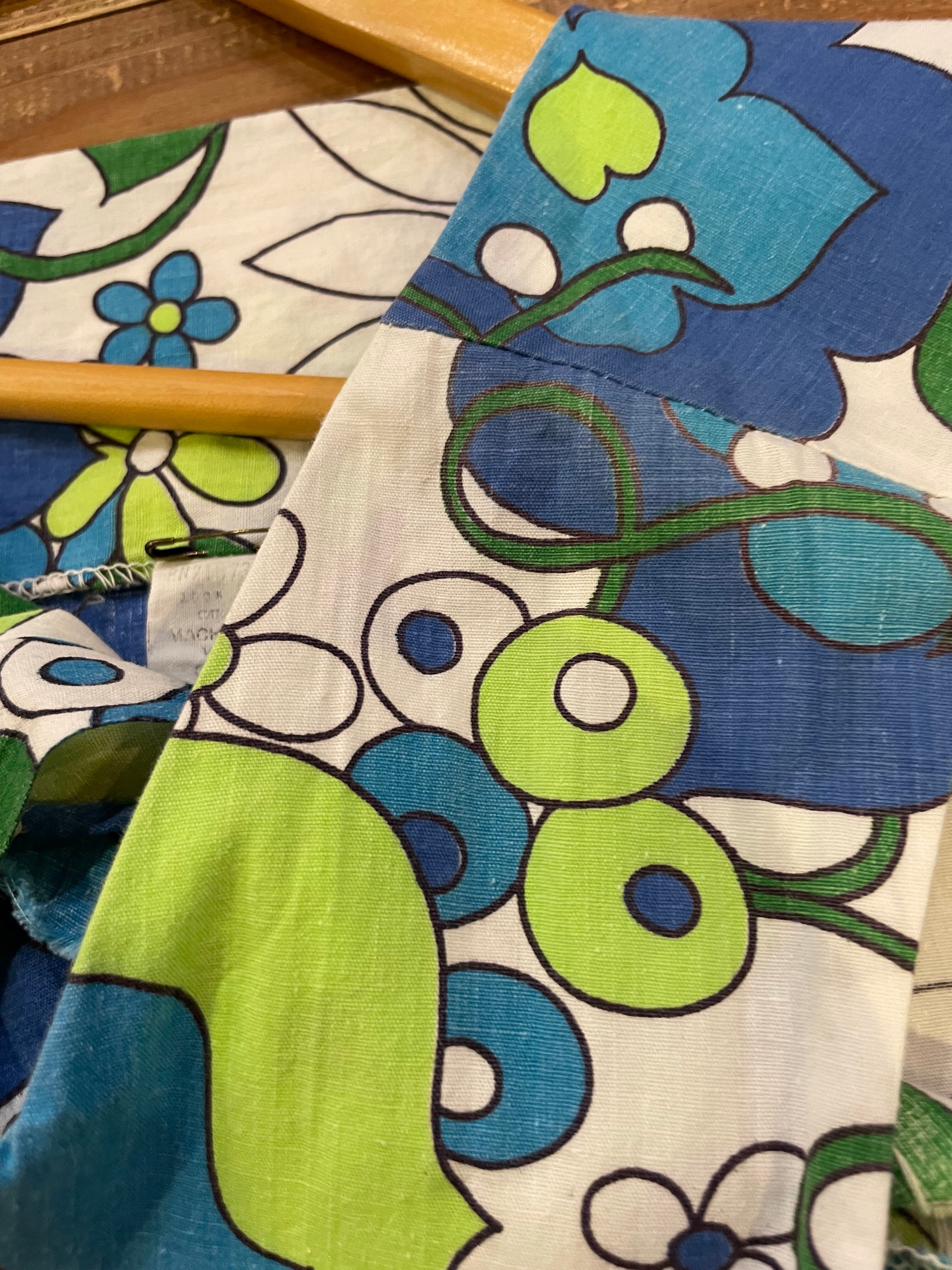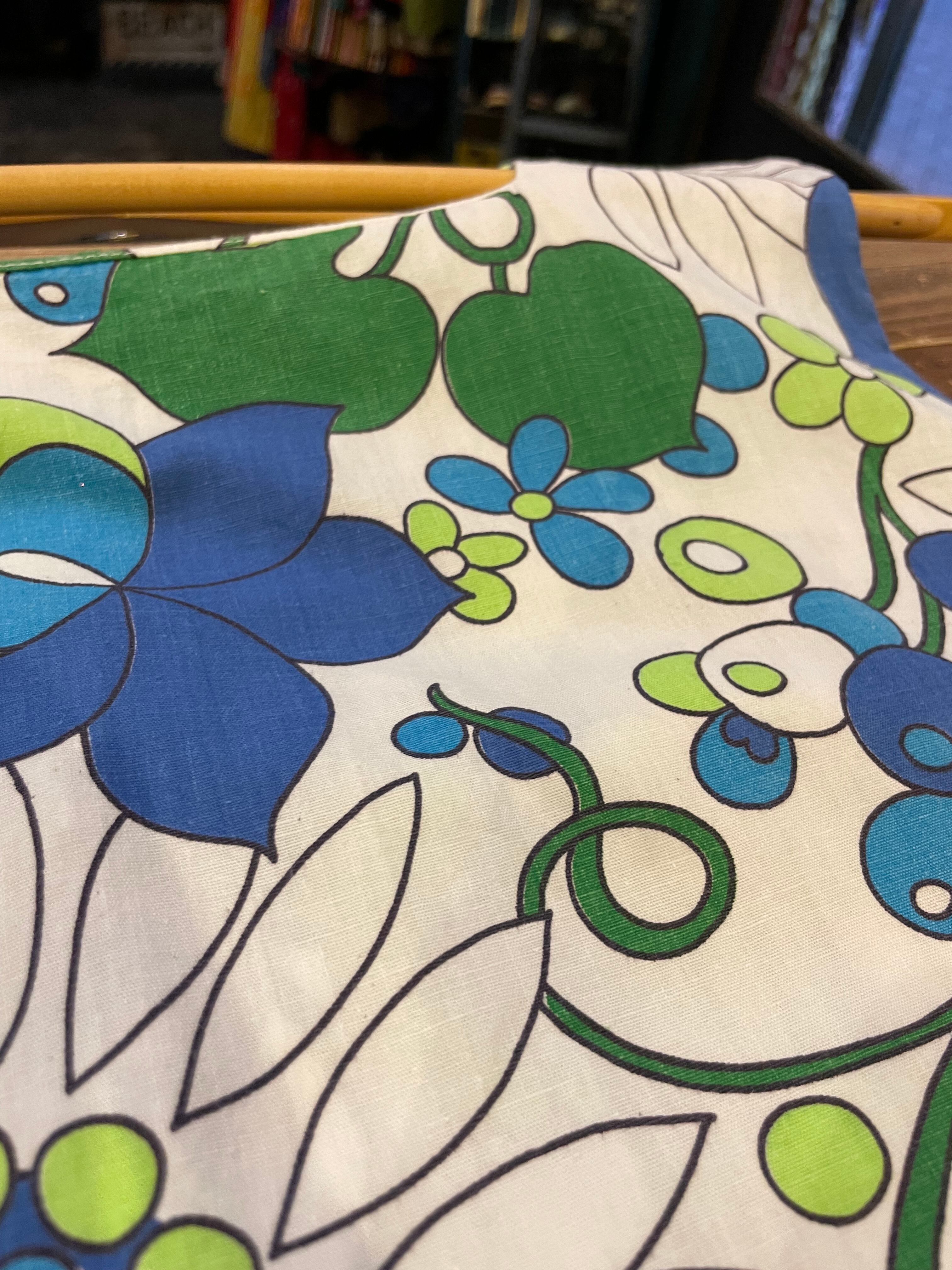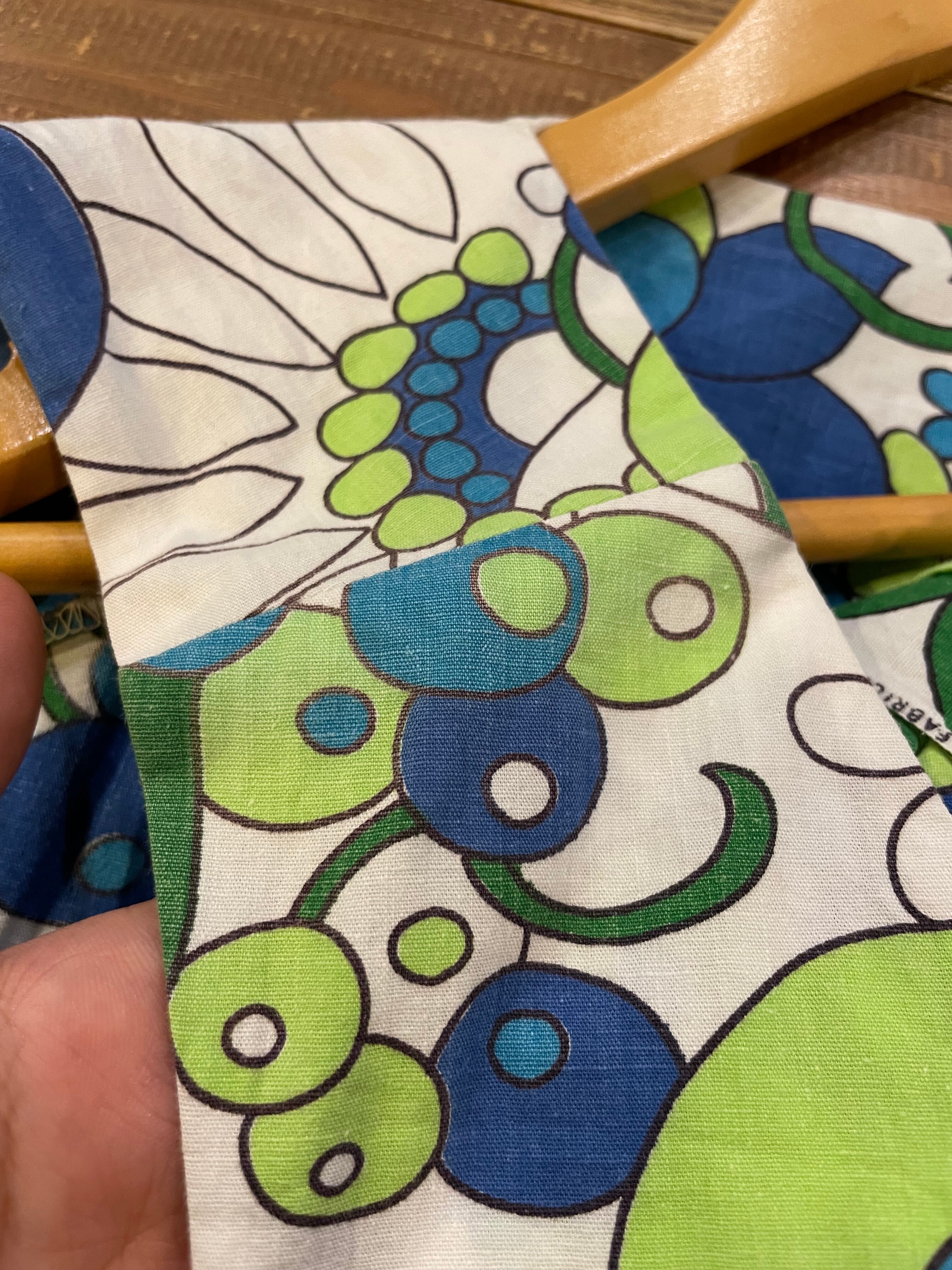白ベースにレトロな青い花柄がかわいい60〜70年代頃のワンピースです。