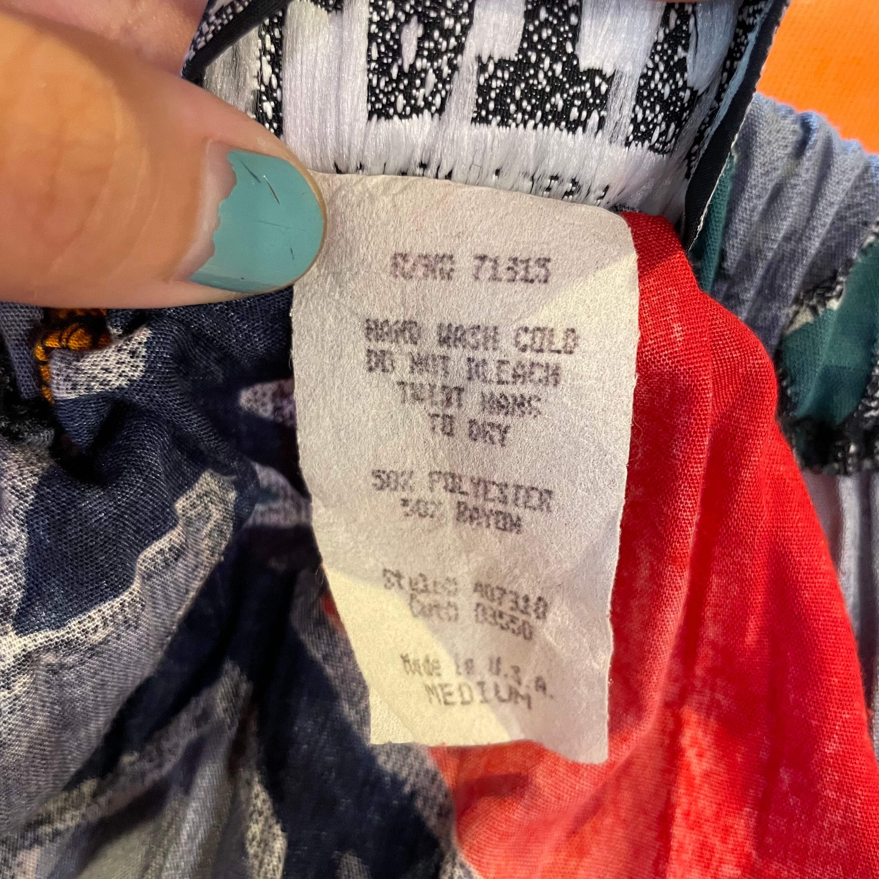 色味が濃いめで不思議な幾何学模様がかわいいロングスカートです。