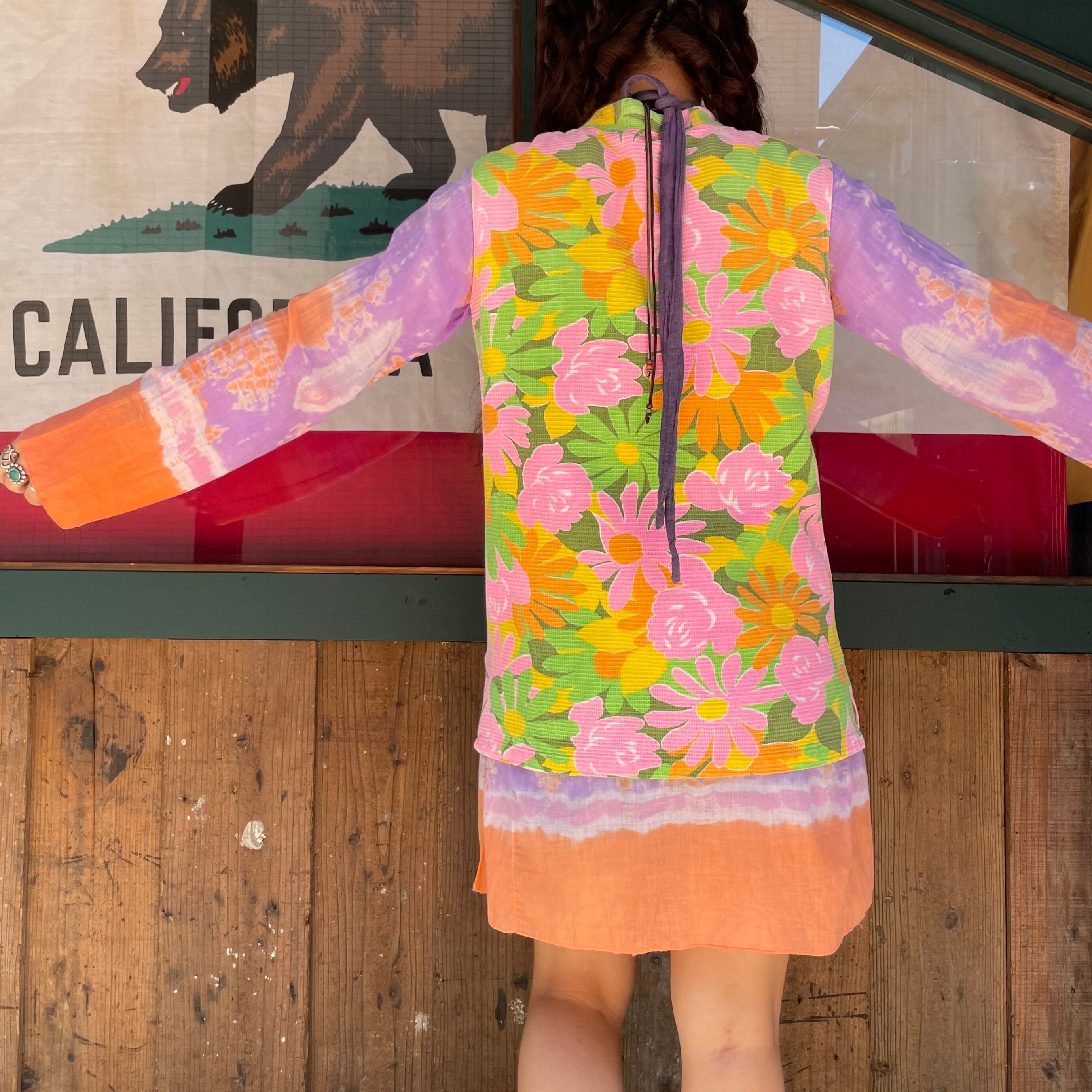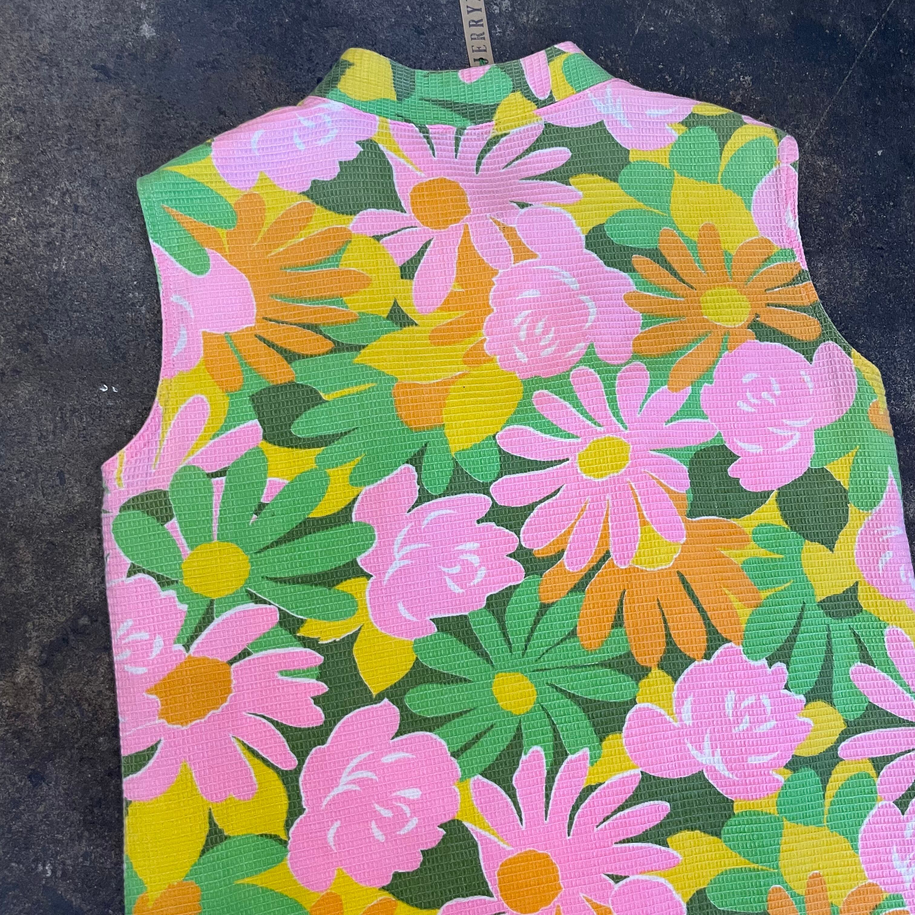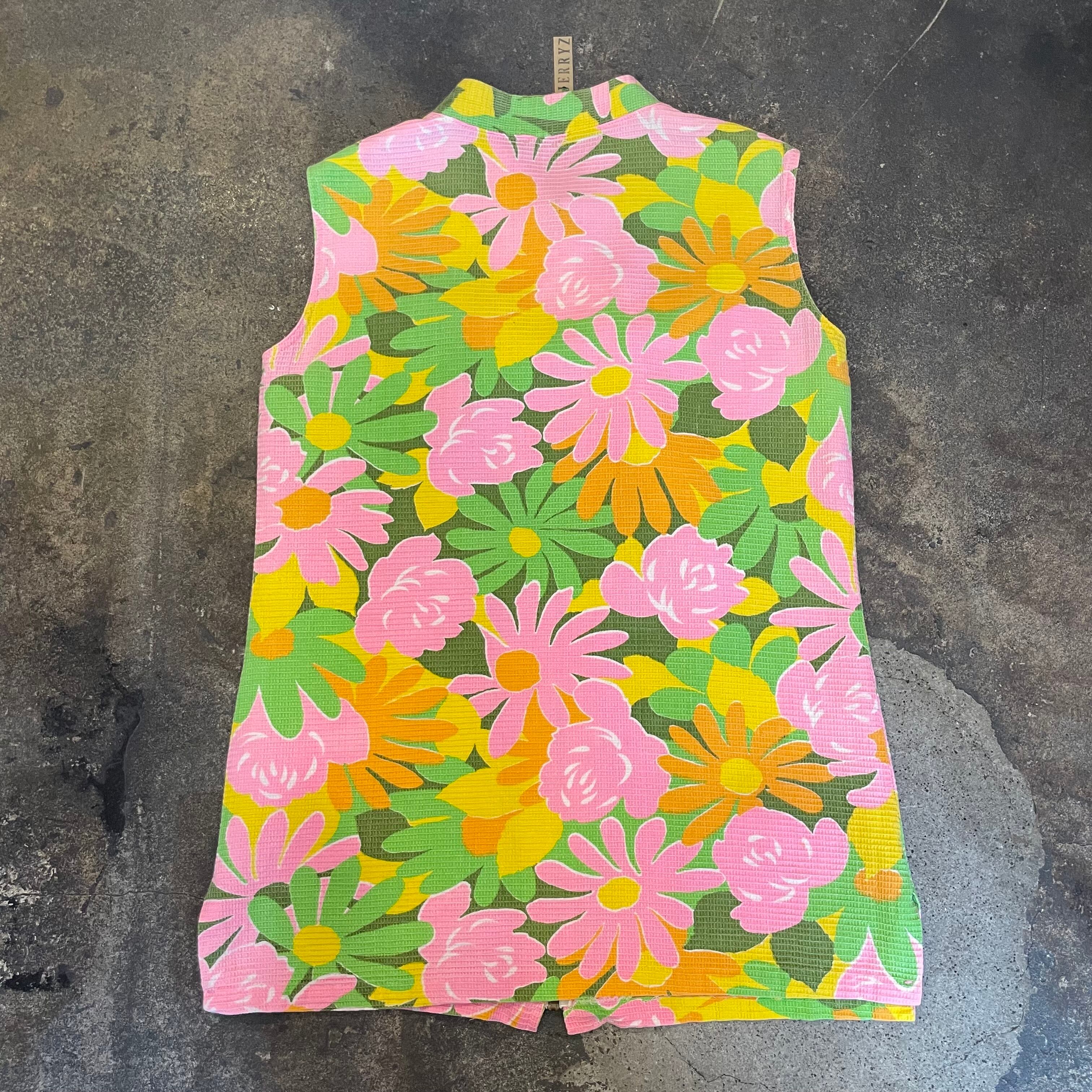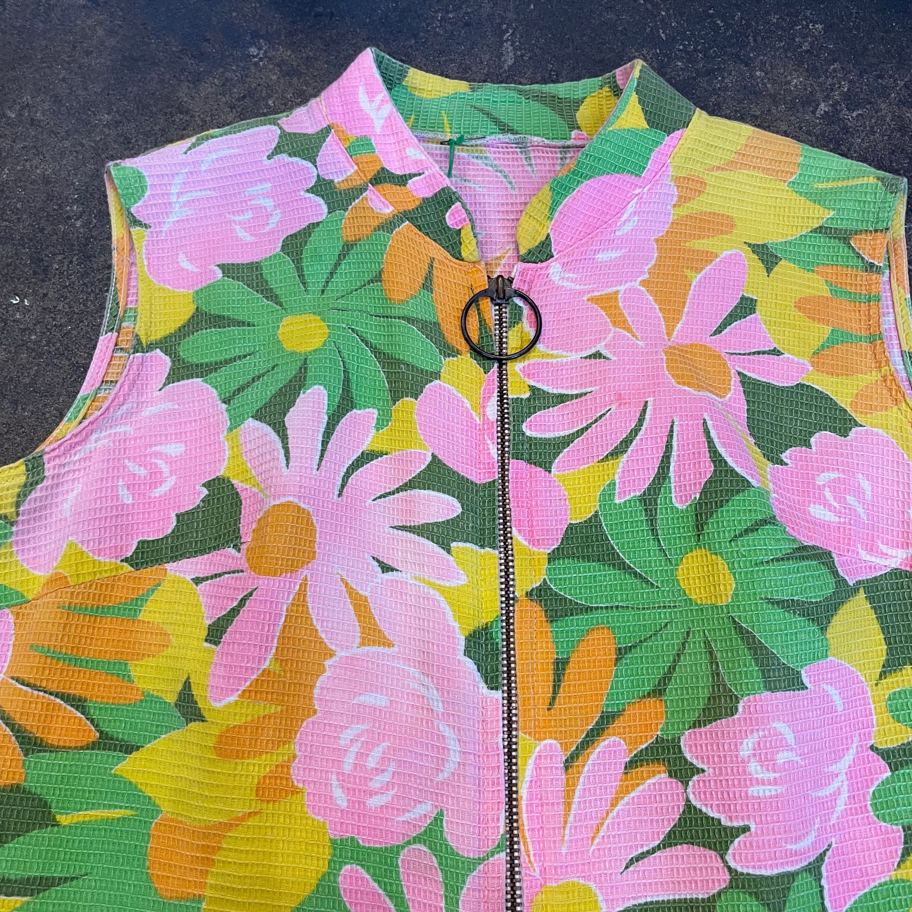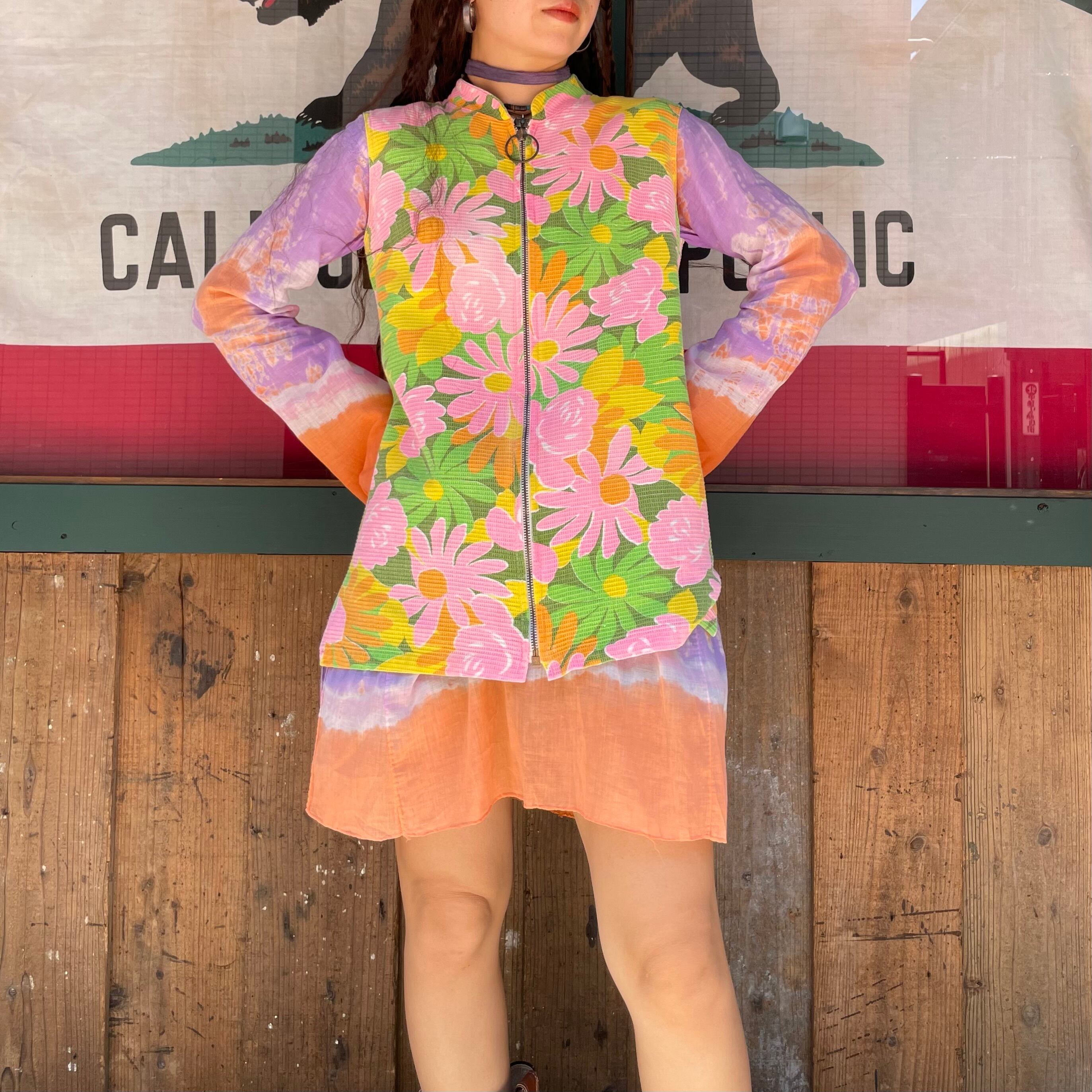 ハッピーな花柄がかわいい、おそらく70年代頃のベストです。