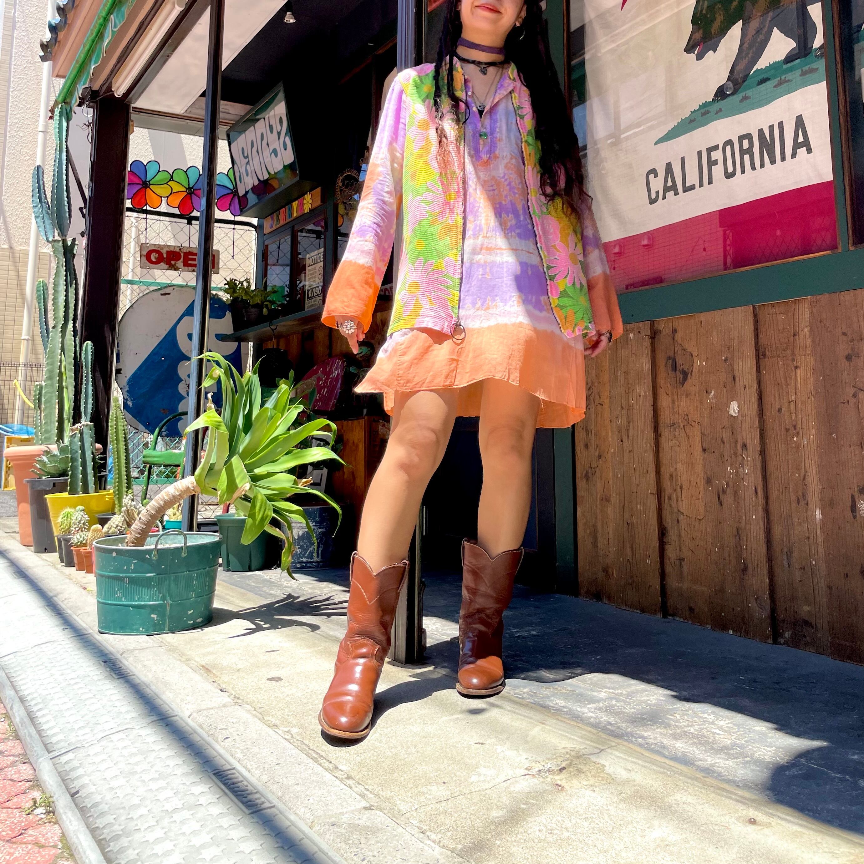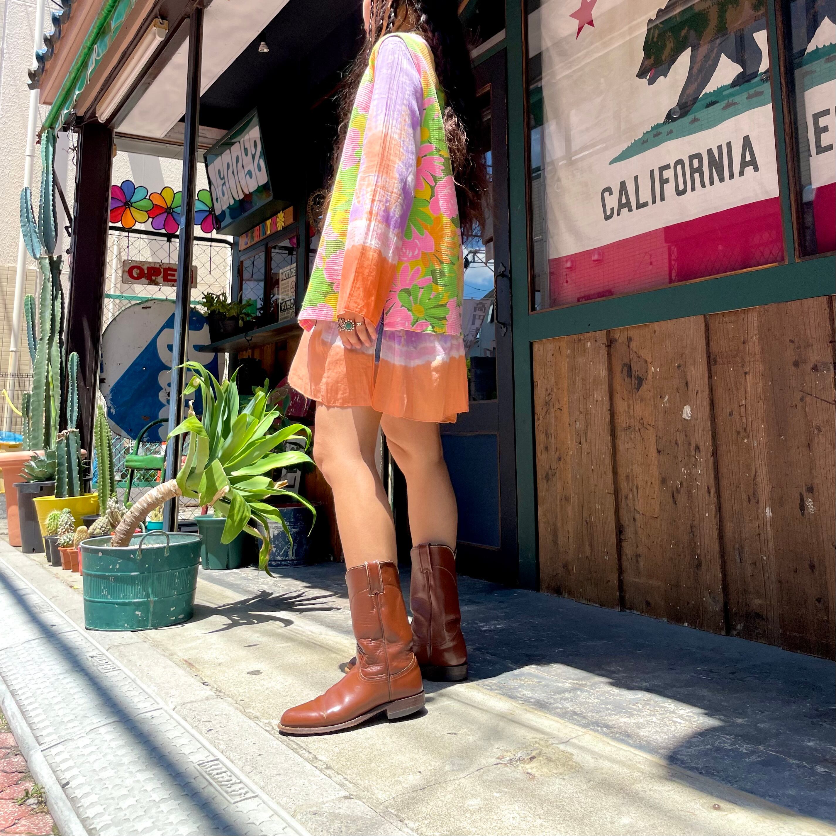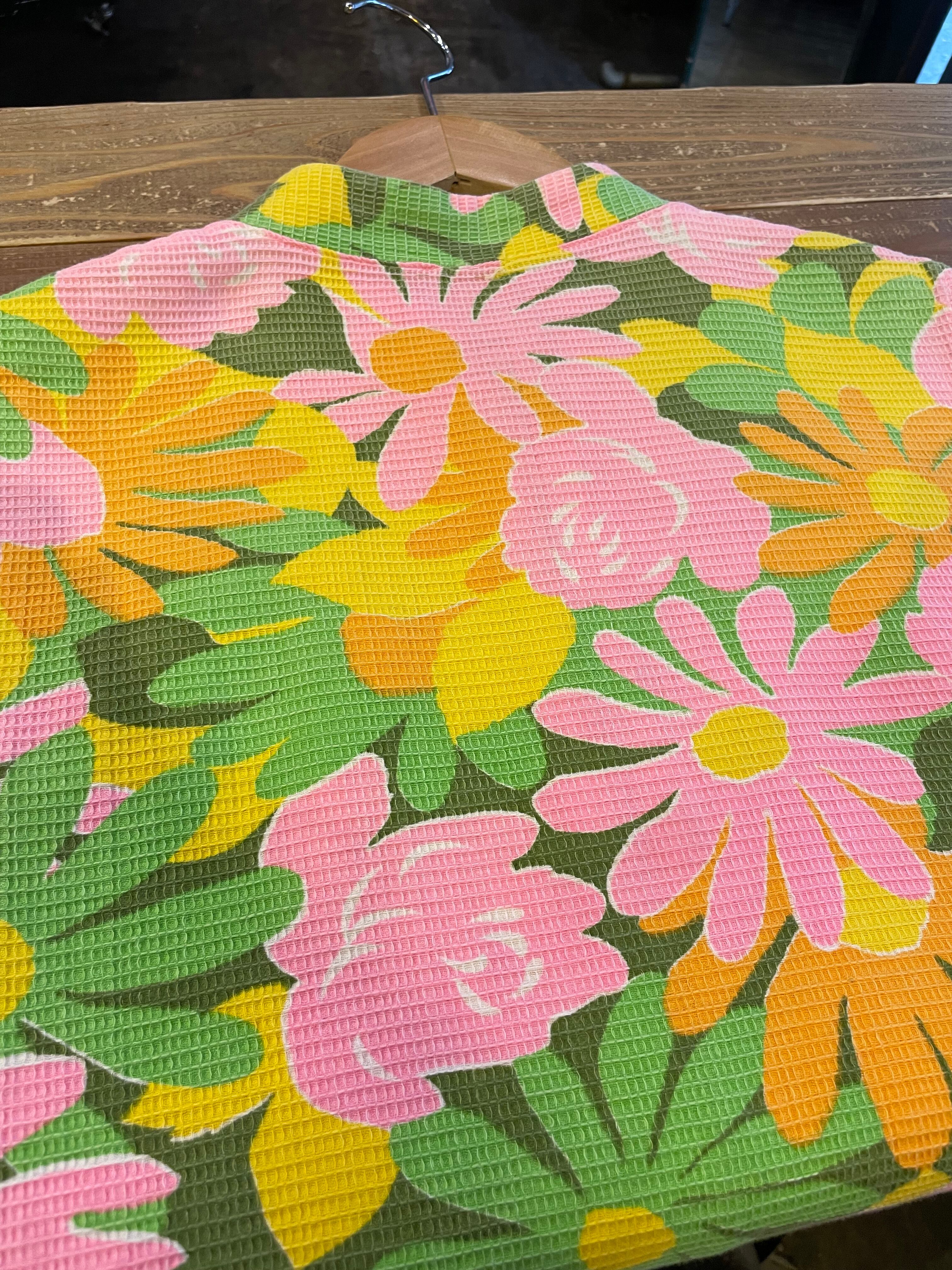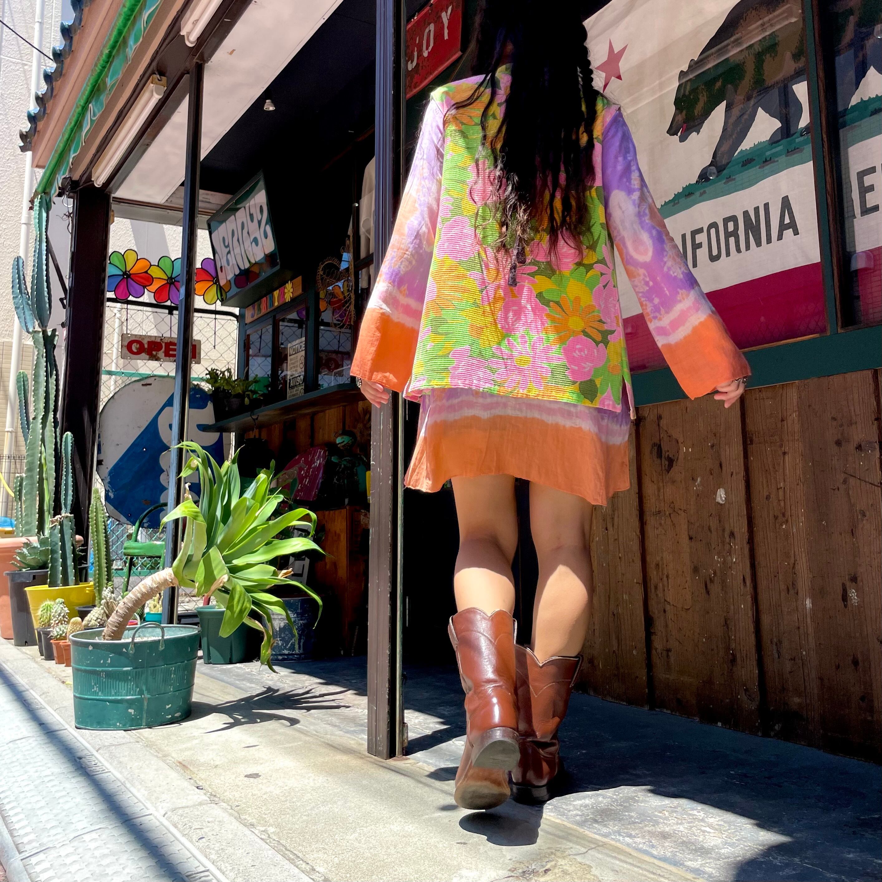 ハッピーな花柄がかわいい、おそらく70年代頃のベストです。