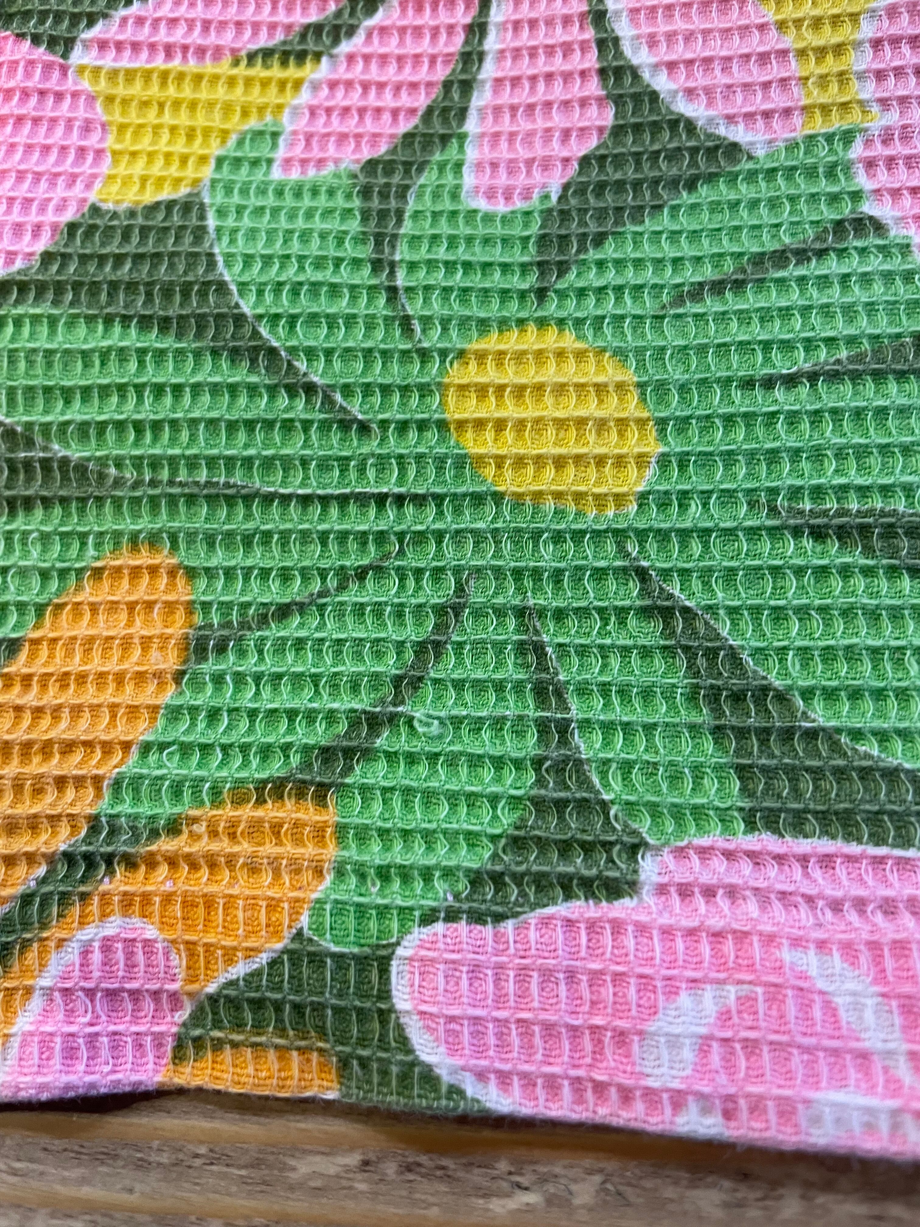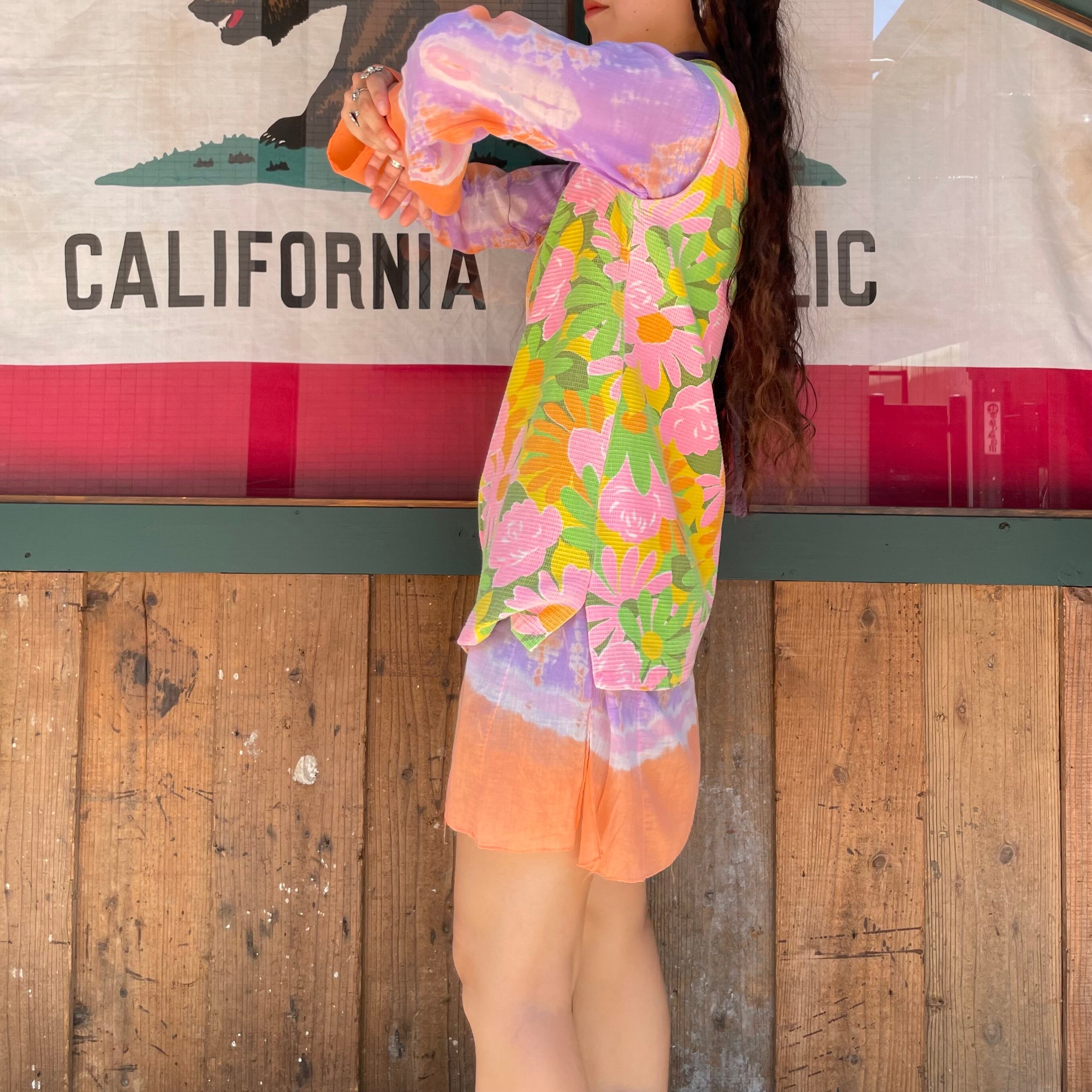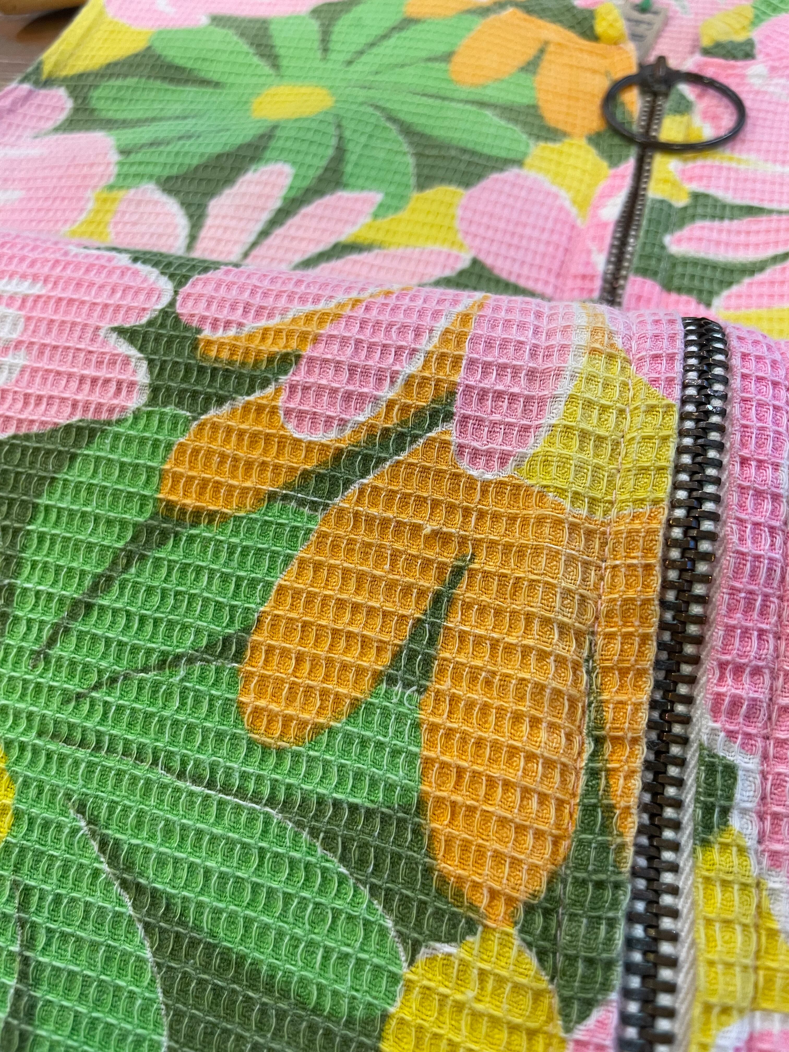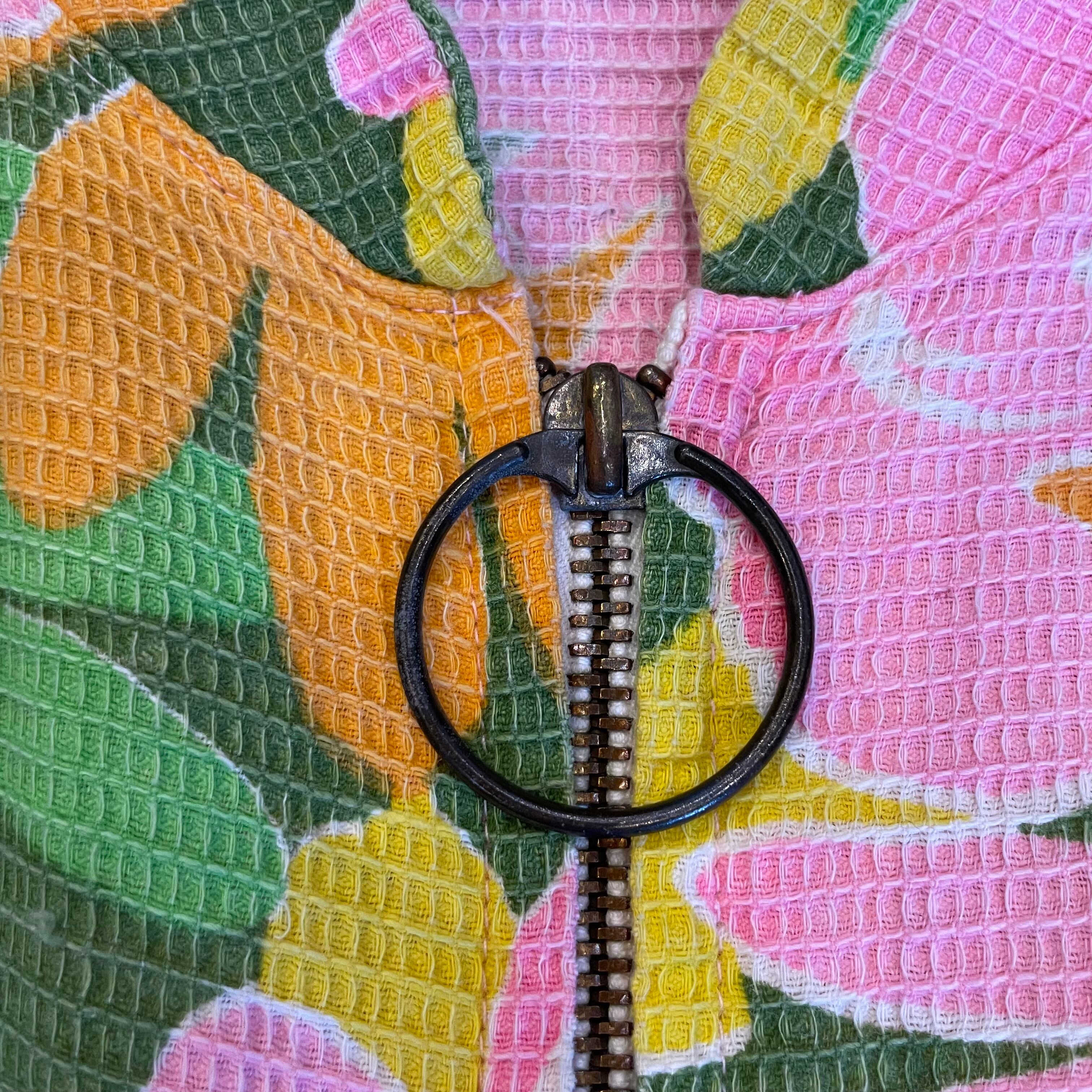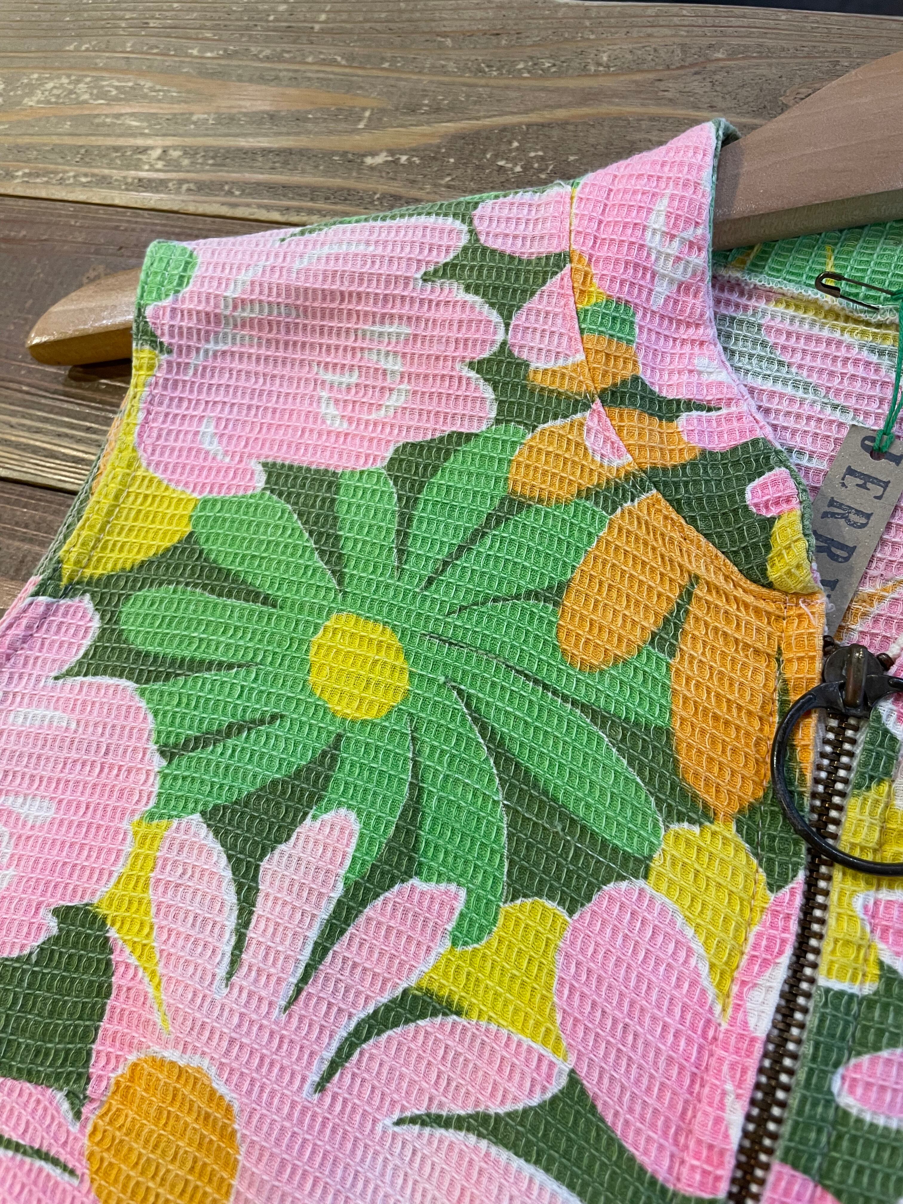 ハッピーな花柄がかわいい、おそらく70年代頃のベストです。