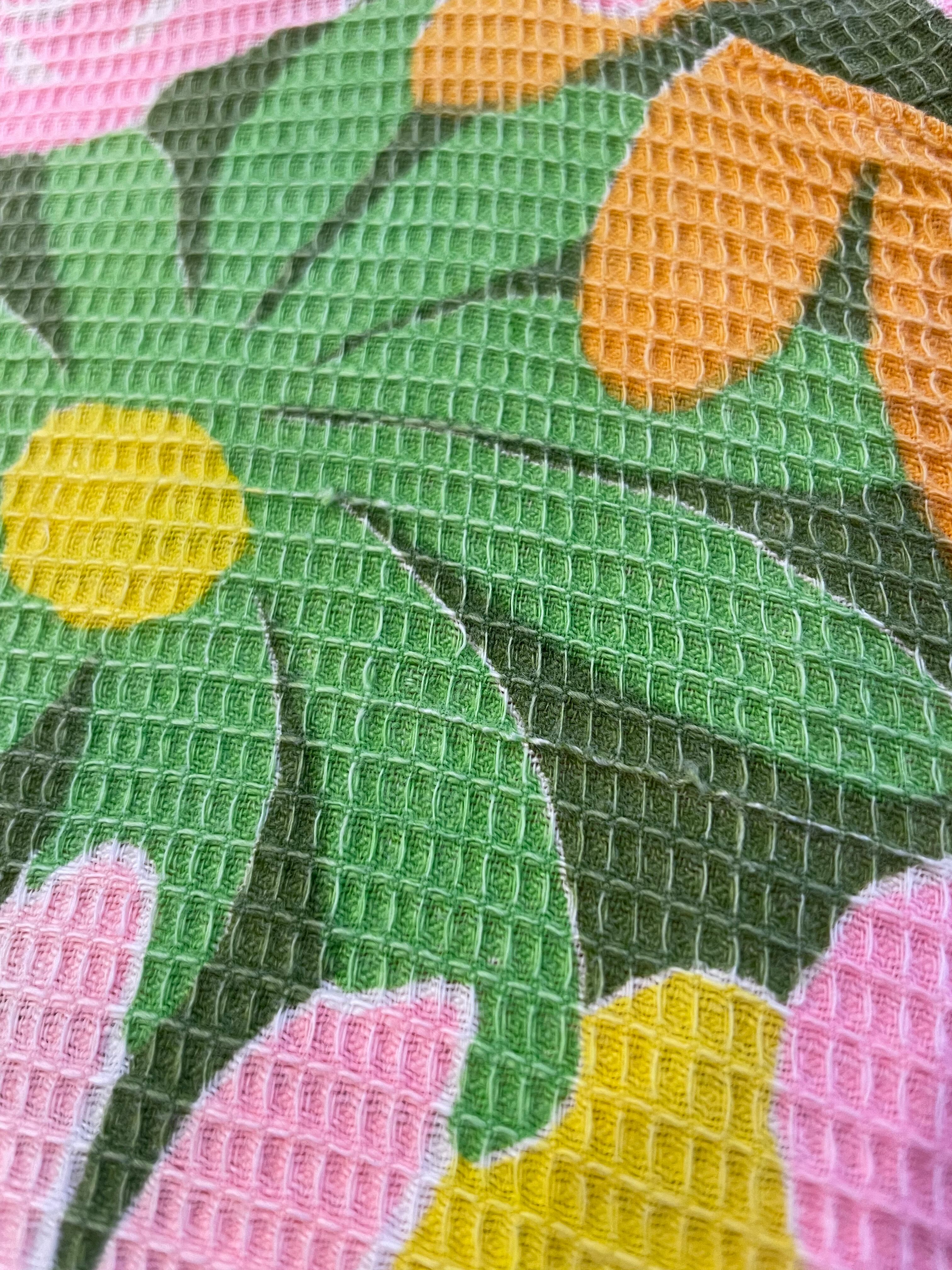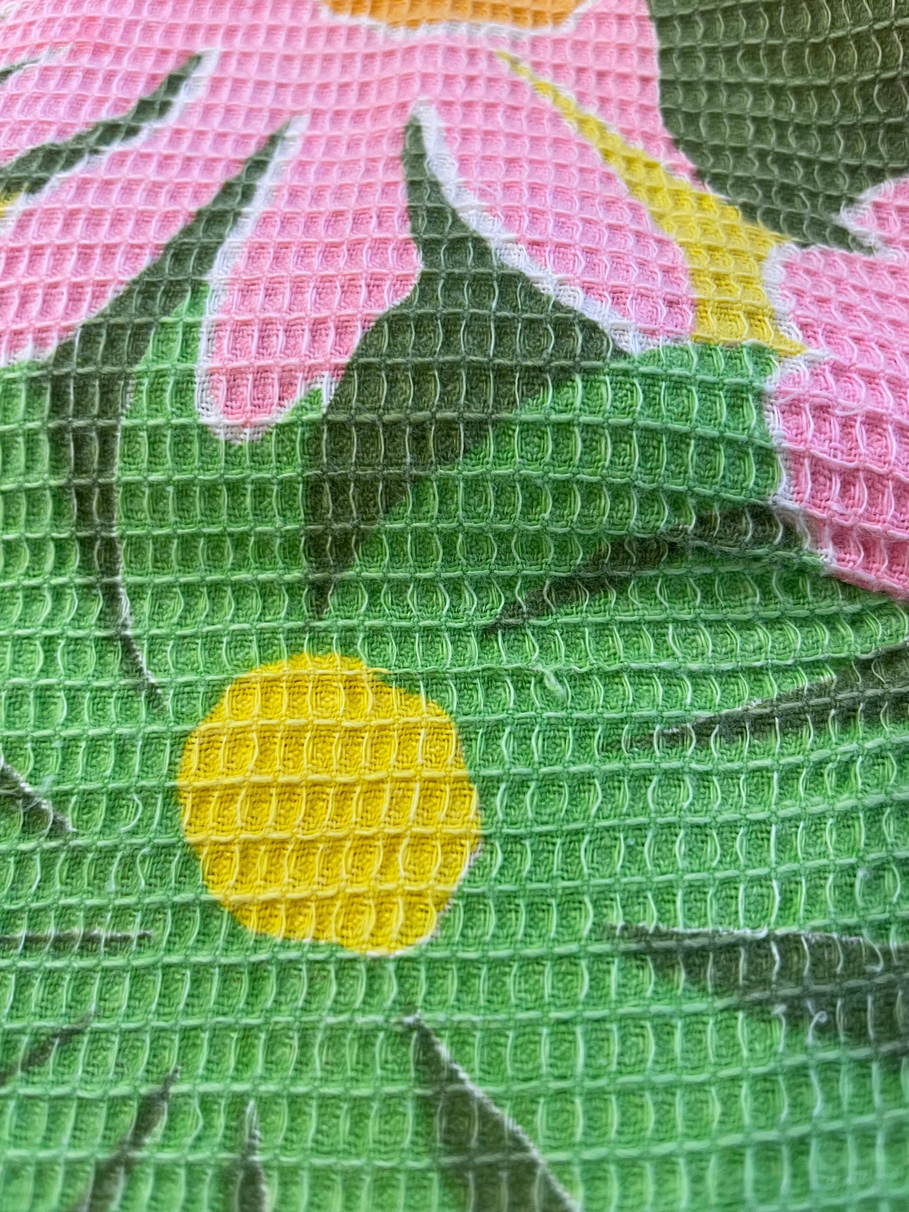 ワッフル素材のような凹凸のある生地感でポコポコしてる感じが雰囲気ありますね。