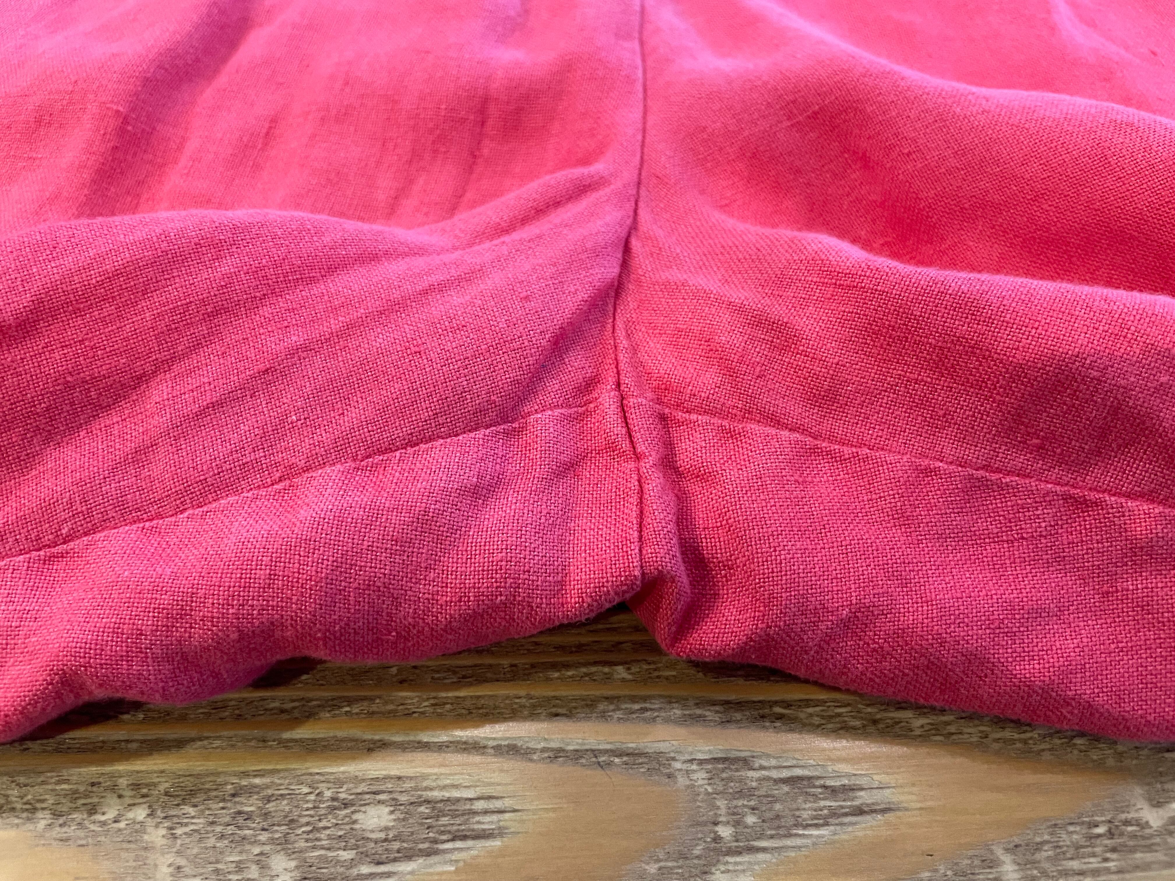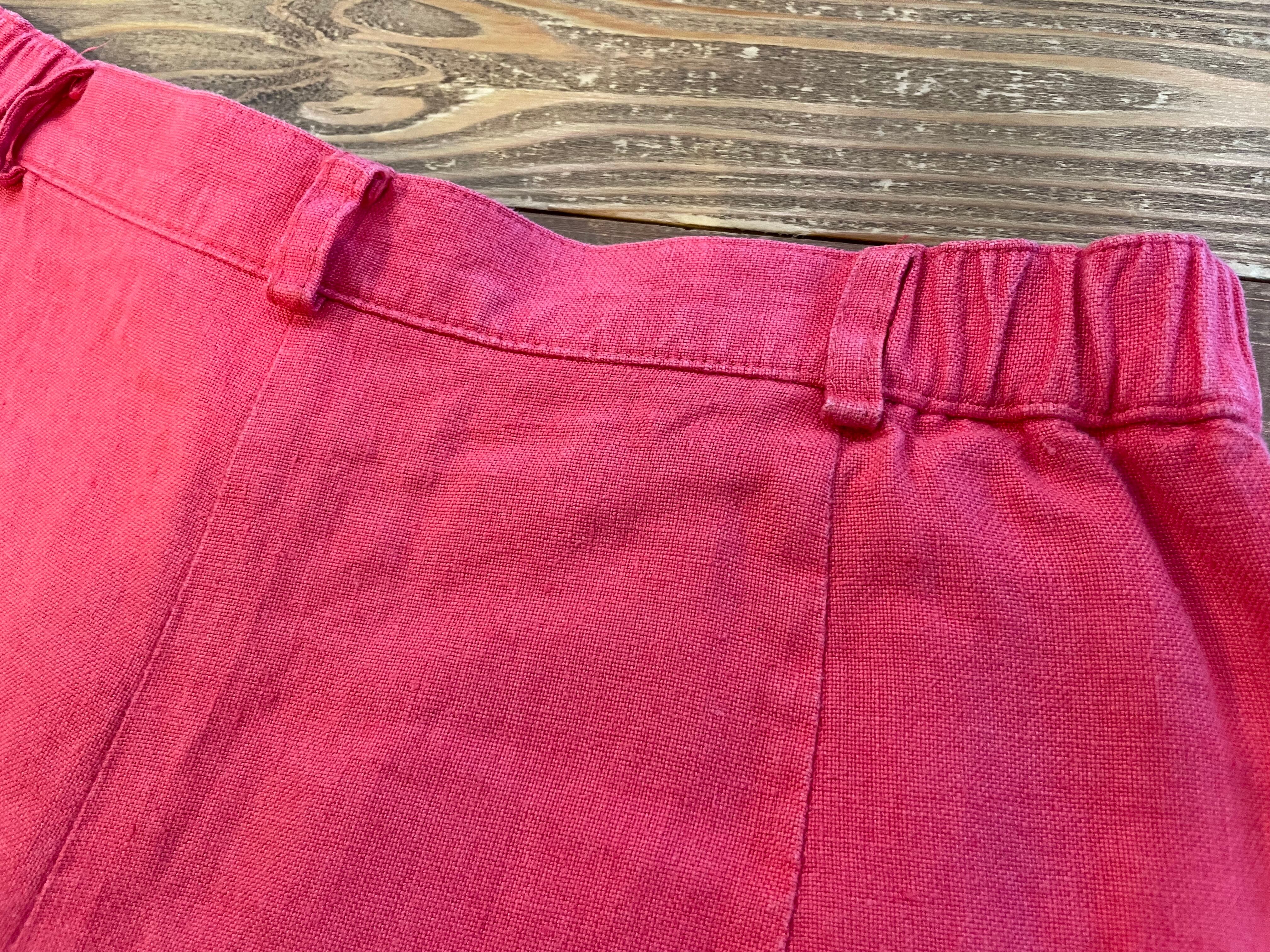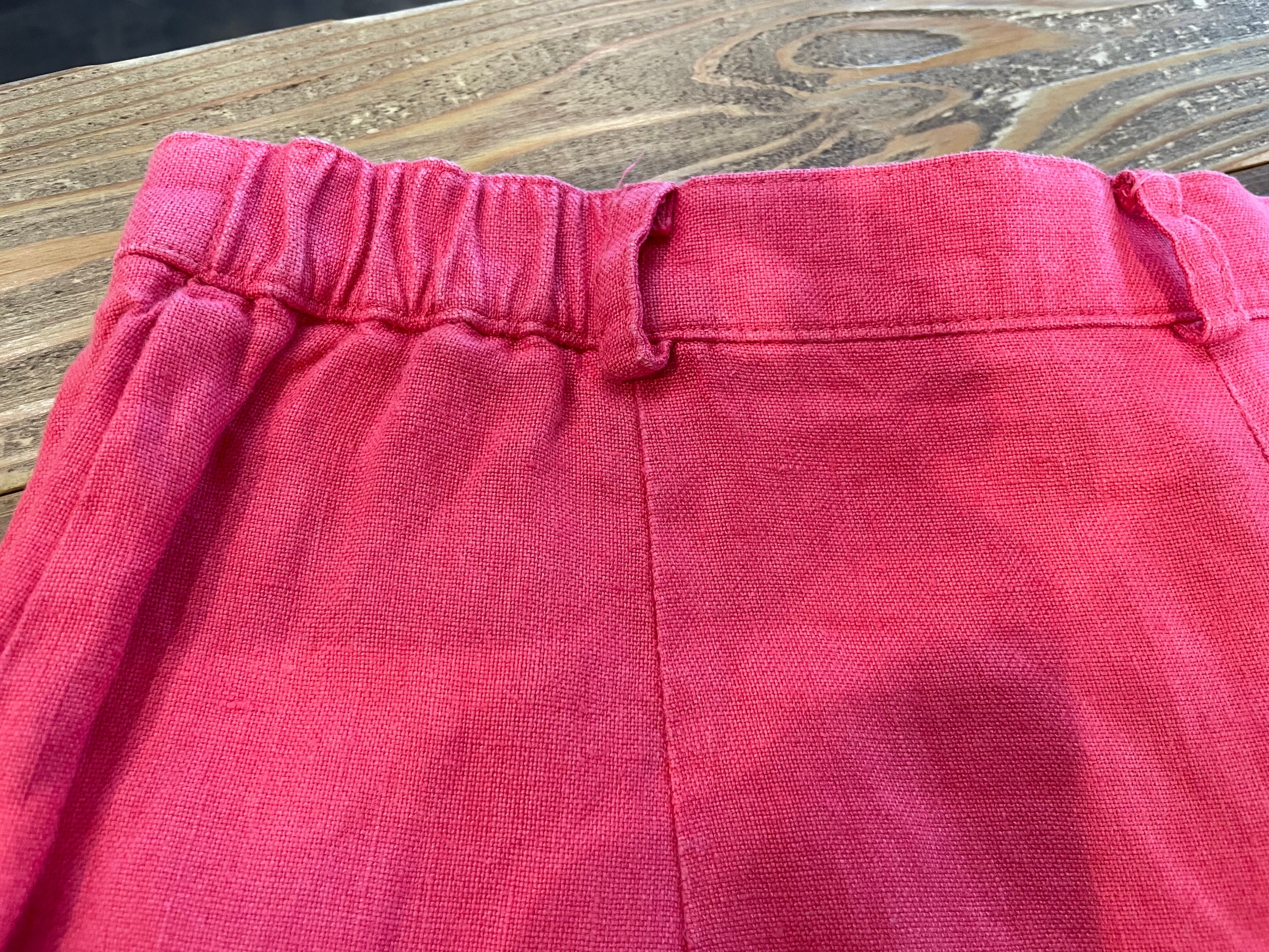 こちらも絶妙なピンクが魅力のショートパンツです。リネンですのでパサっと肌触りが気持ち良く、風通しが良いので涼しく着ていただけると思います。