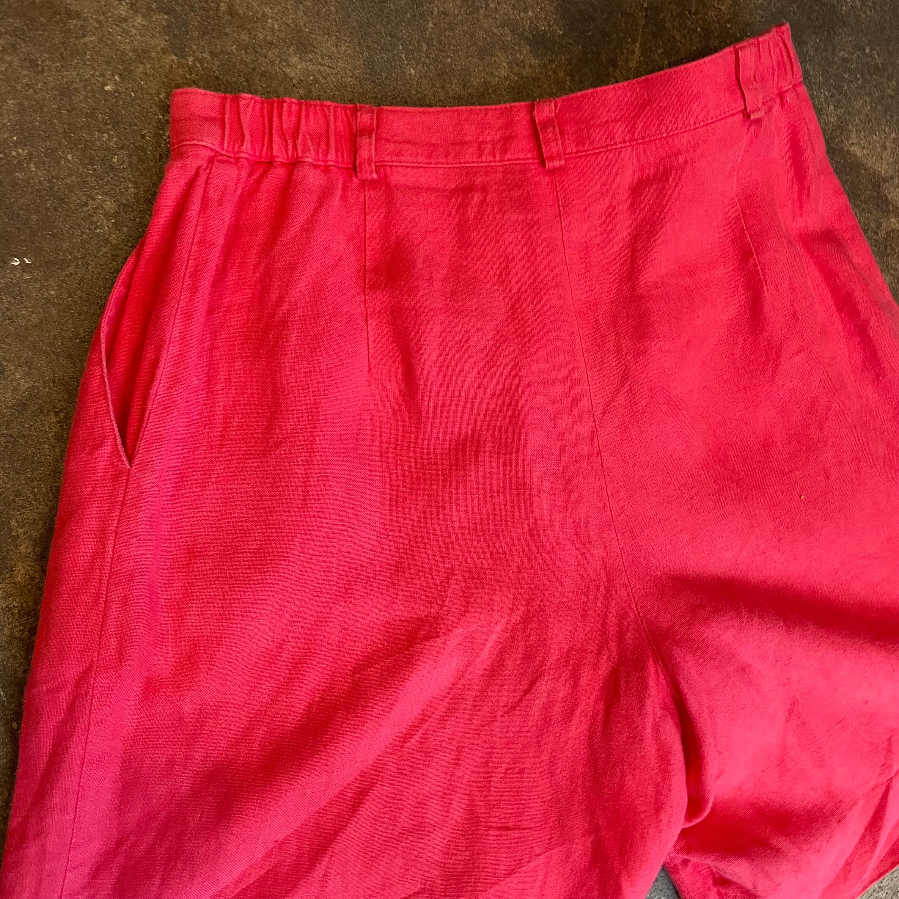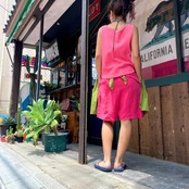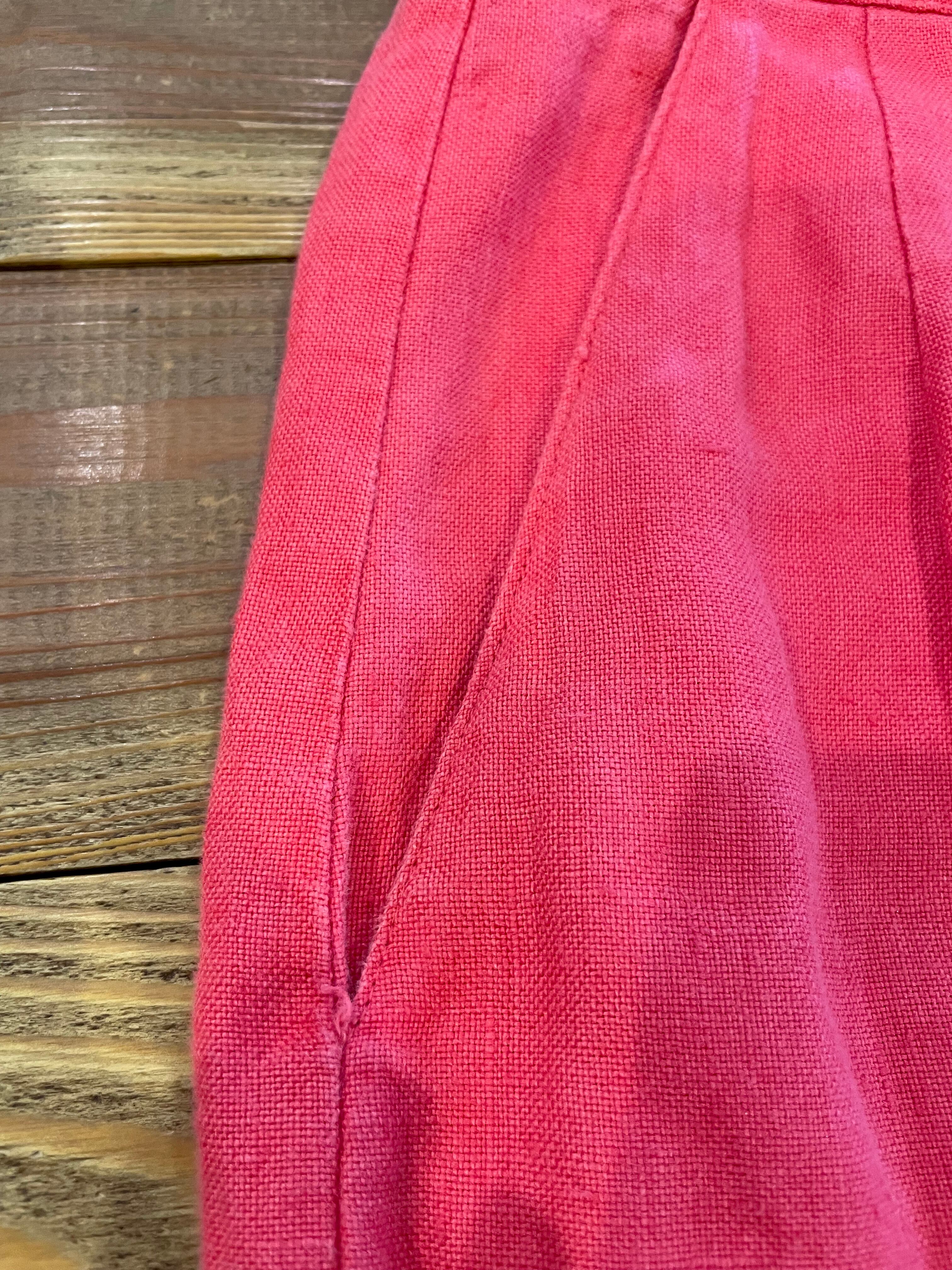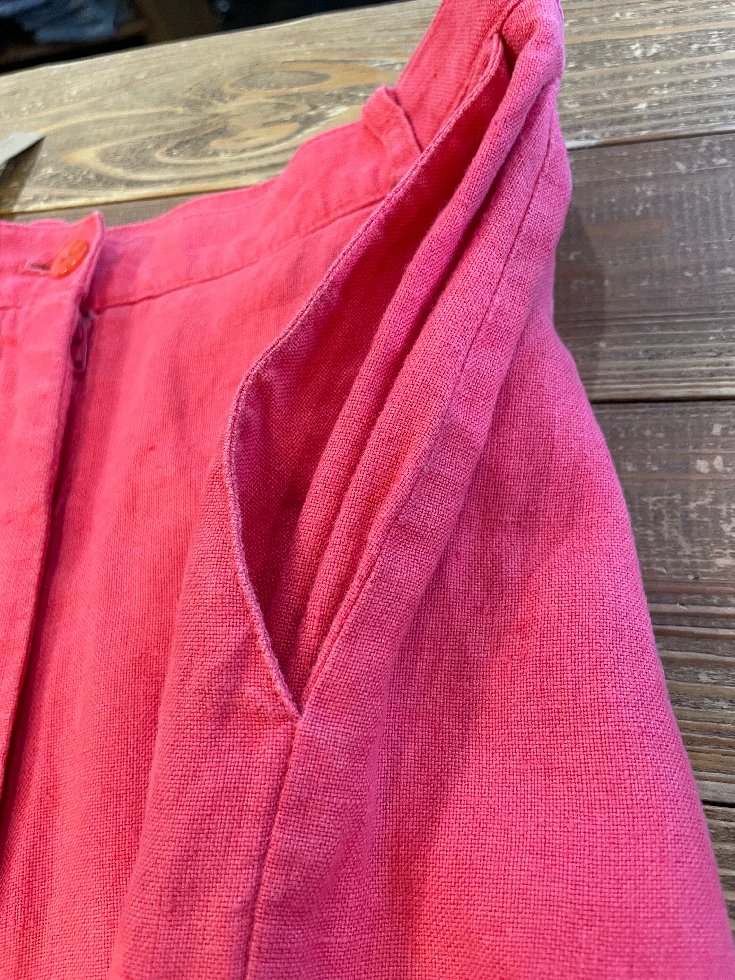 こちらも絶妙なピンクが魅力のショートパンツです。リネンですのでパサっと肌触りが気持ち良く、風通しが良いので涼しく着ていただけると思います。