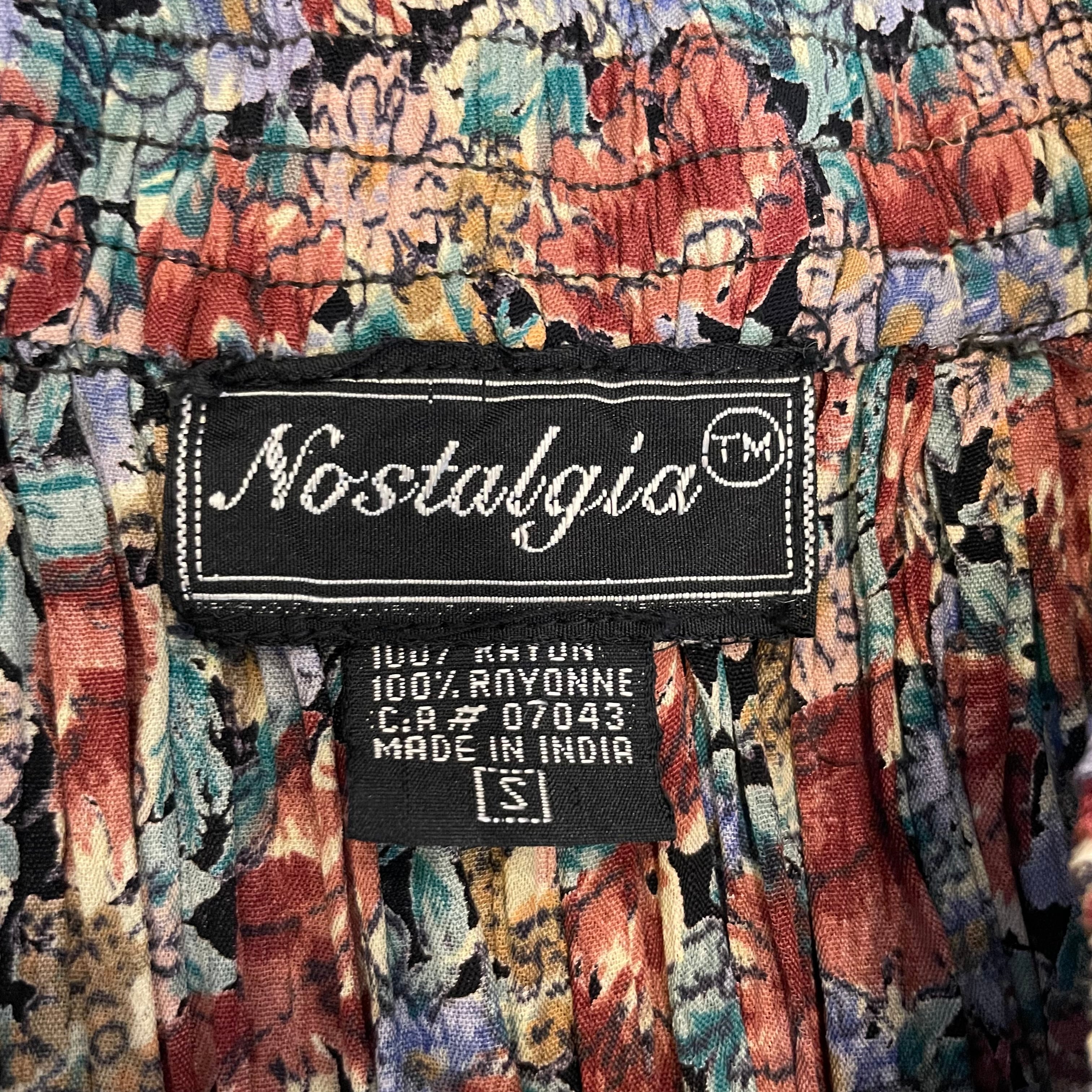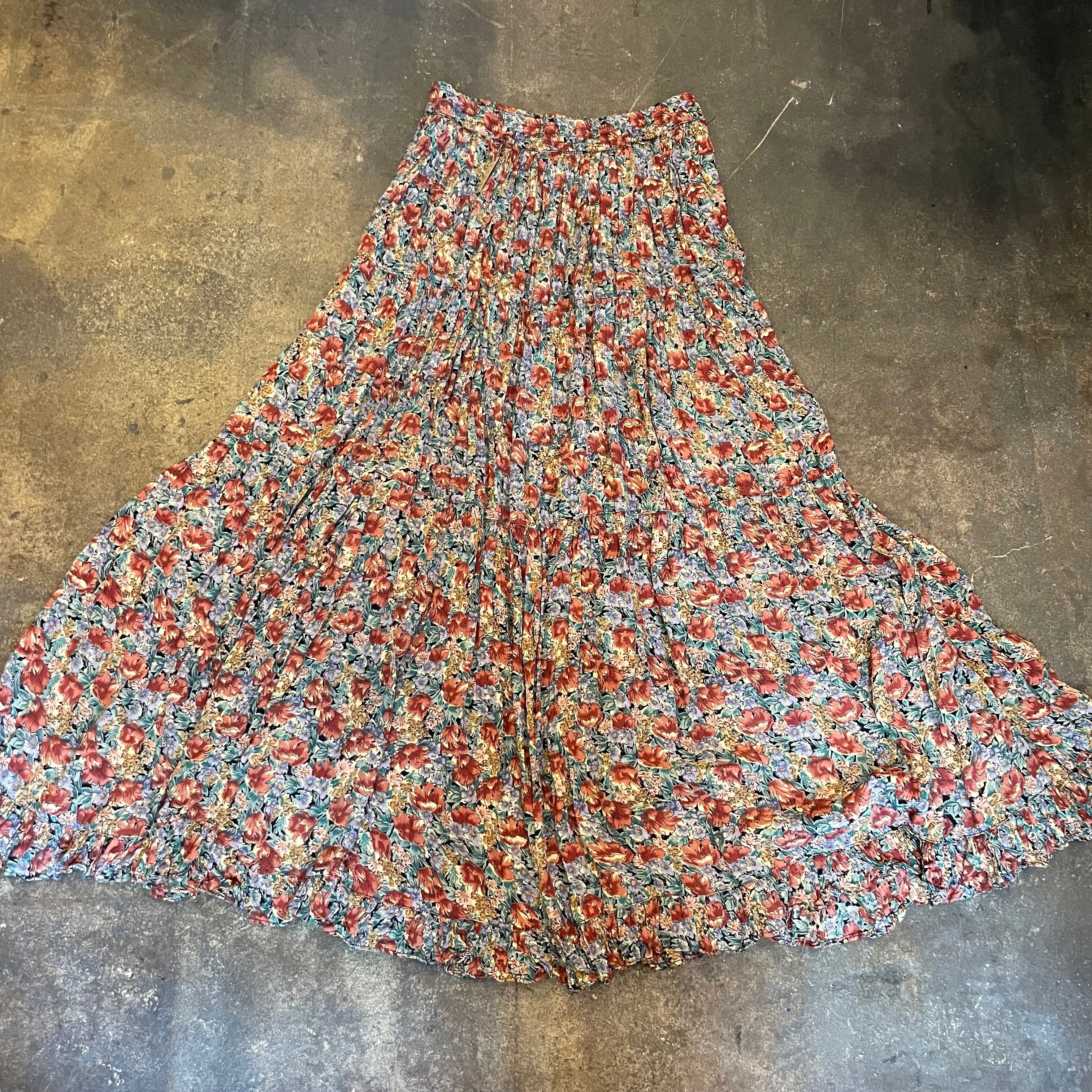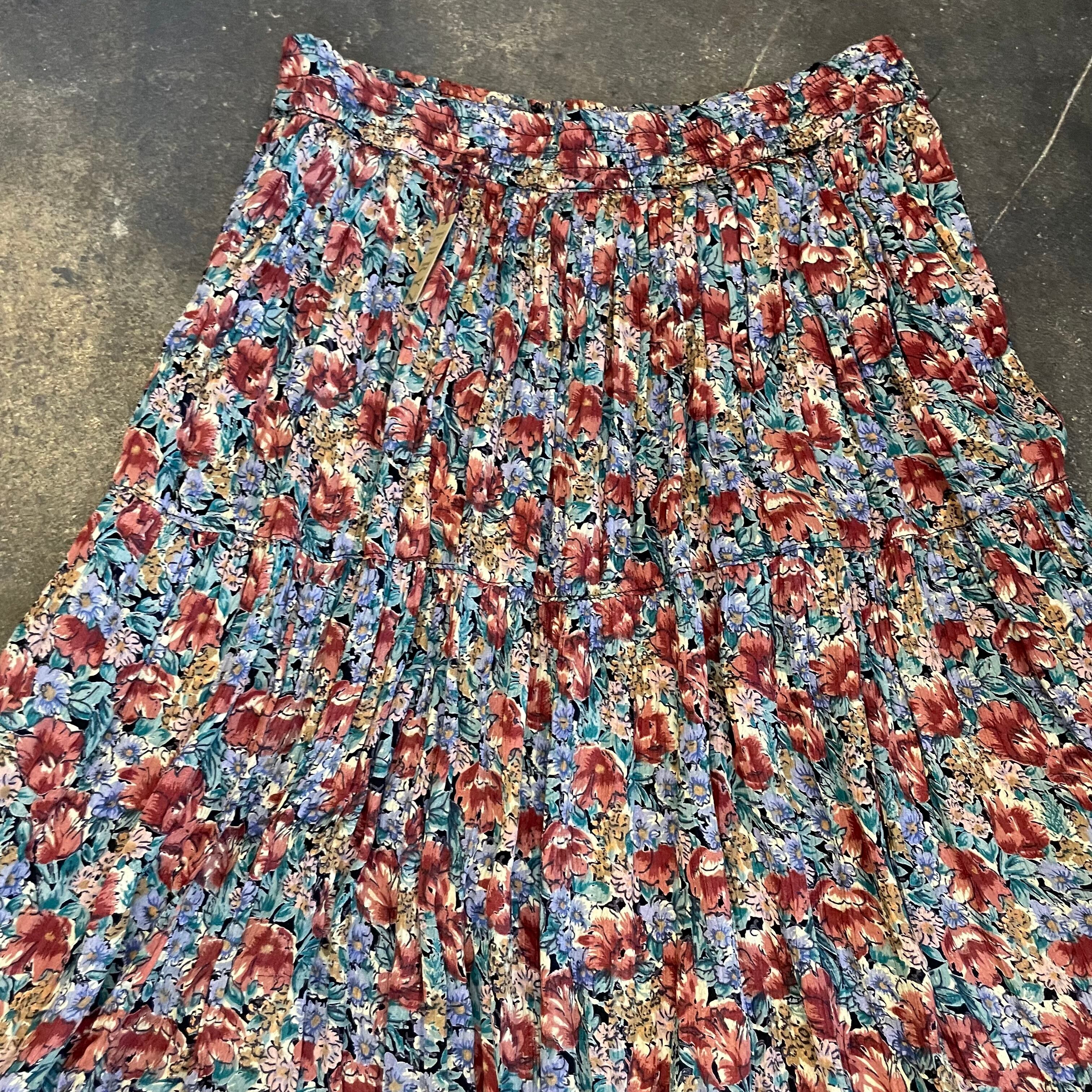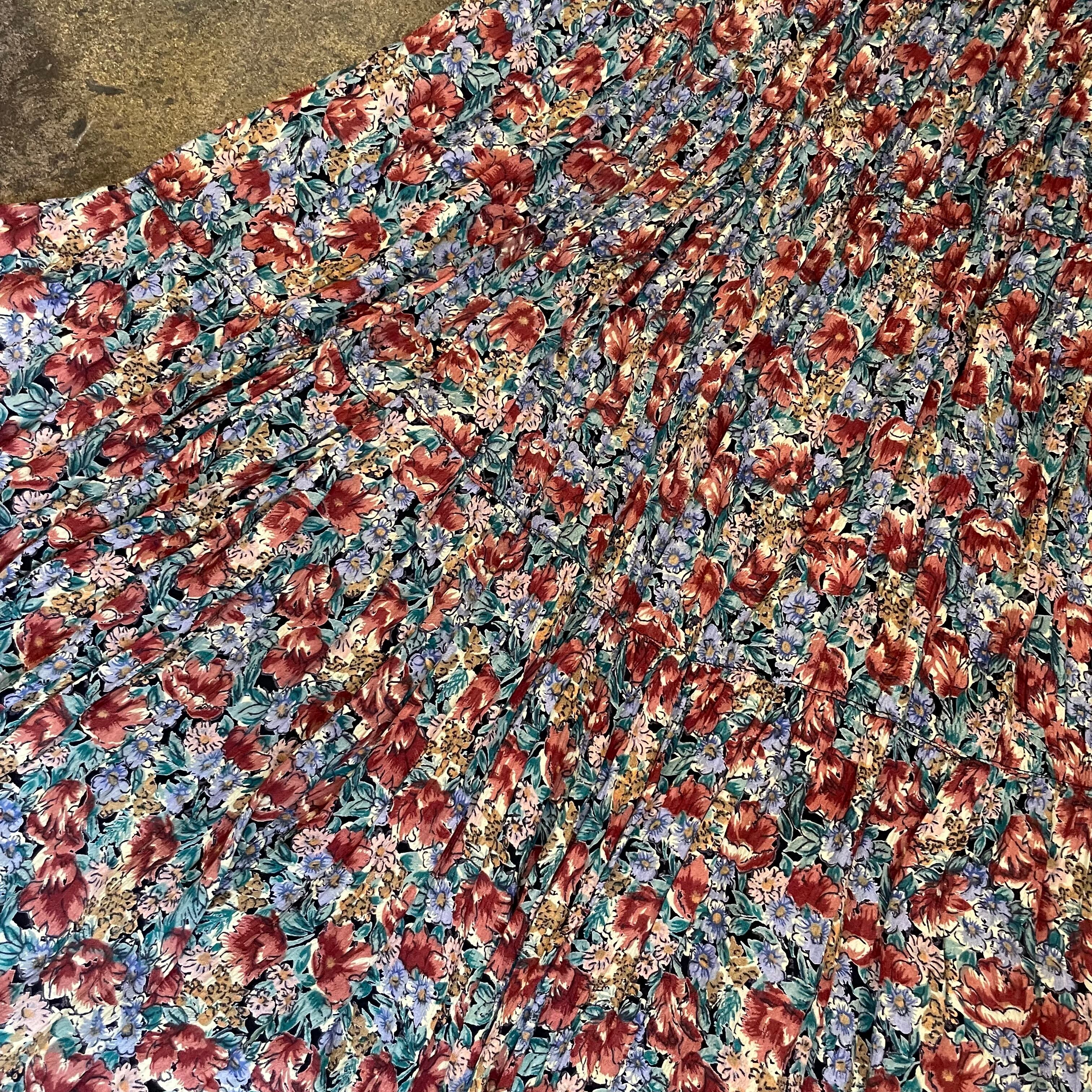 全体的に渋めなカラーで雰囲気のある花柄がかわいいロングスカートです。