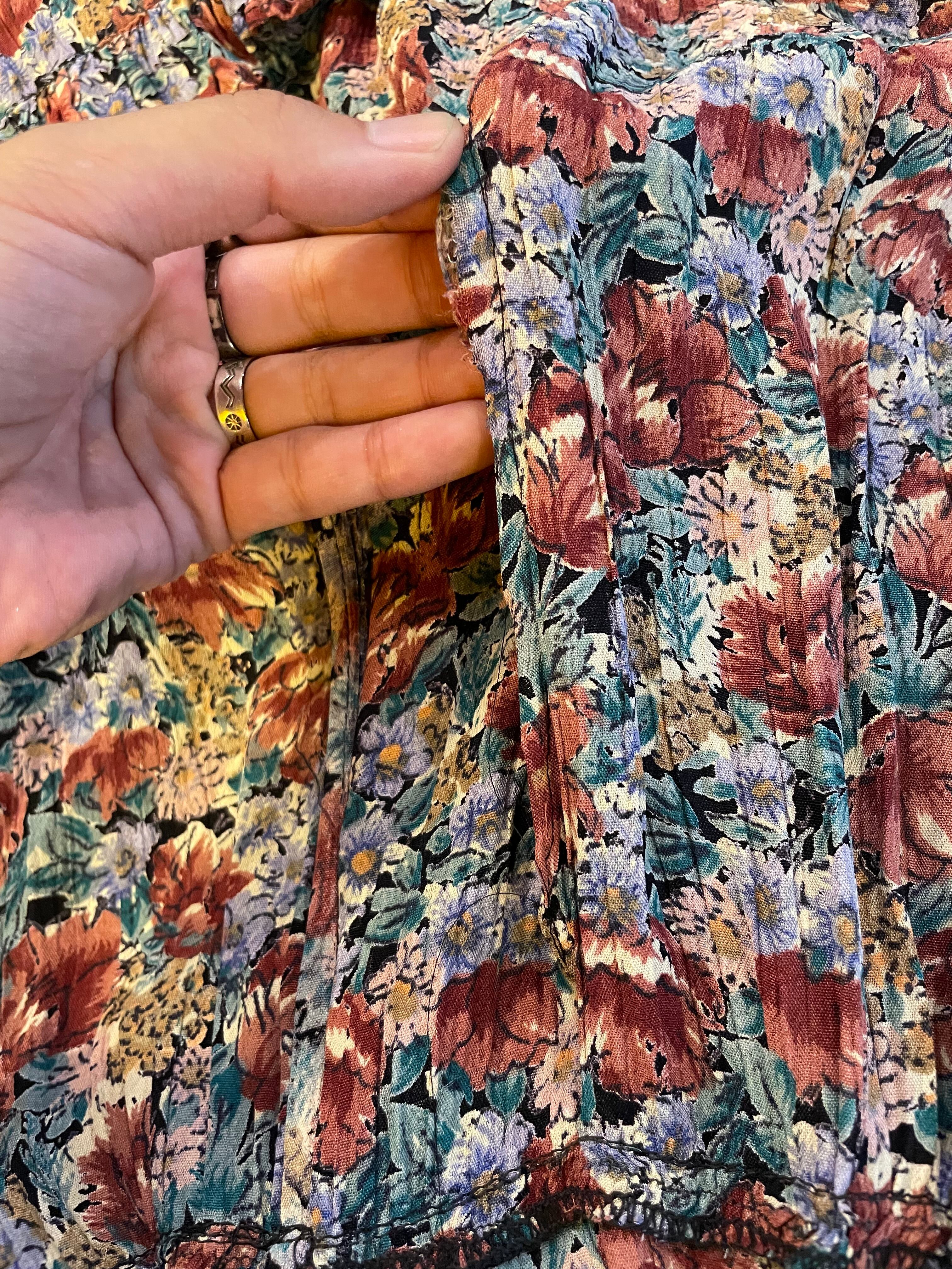 3段のティアードになっており、裾は5センチほどのフリルになっていてボリューム感とレーヨンのしなやかさが素敵です。