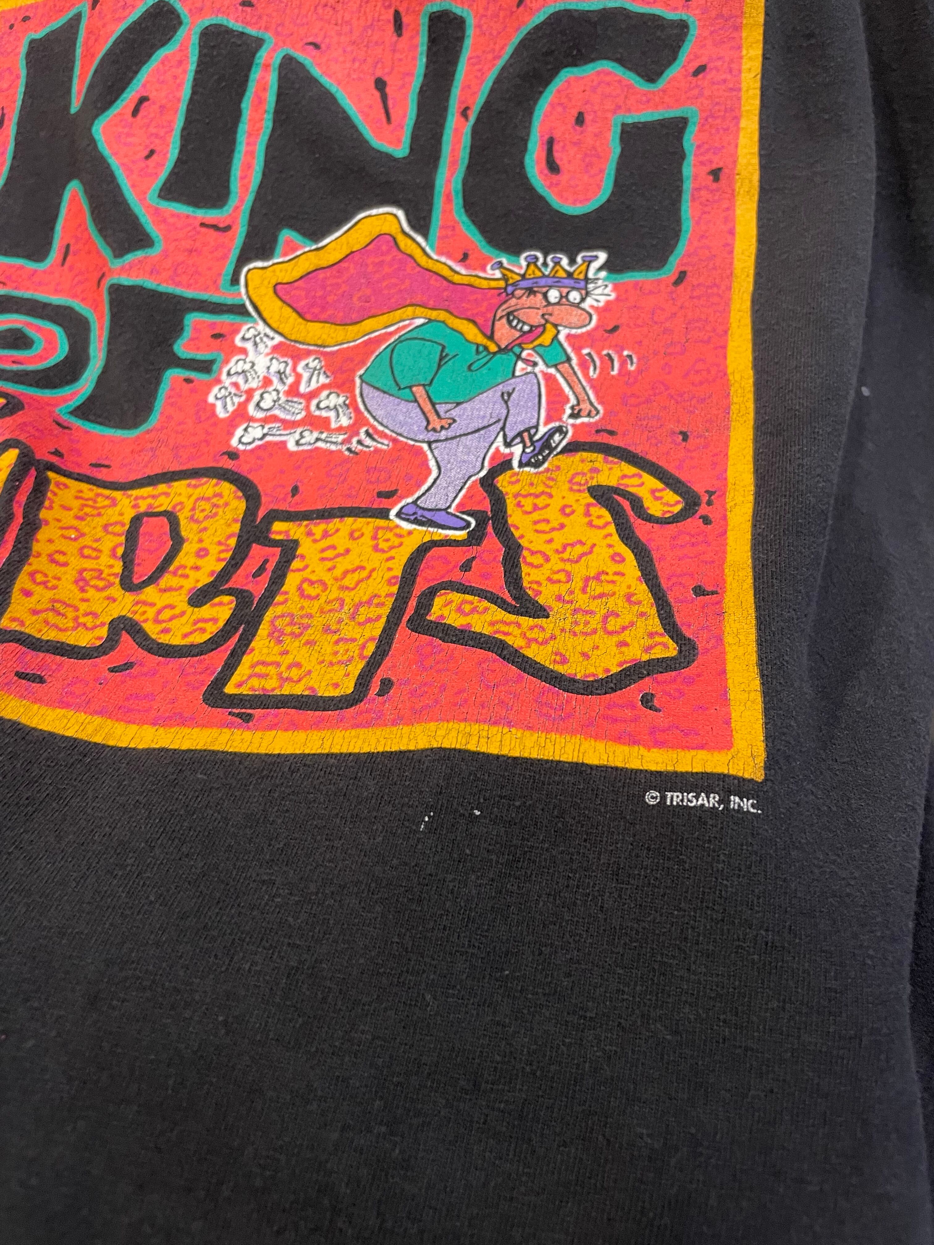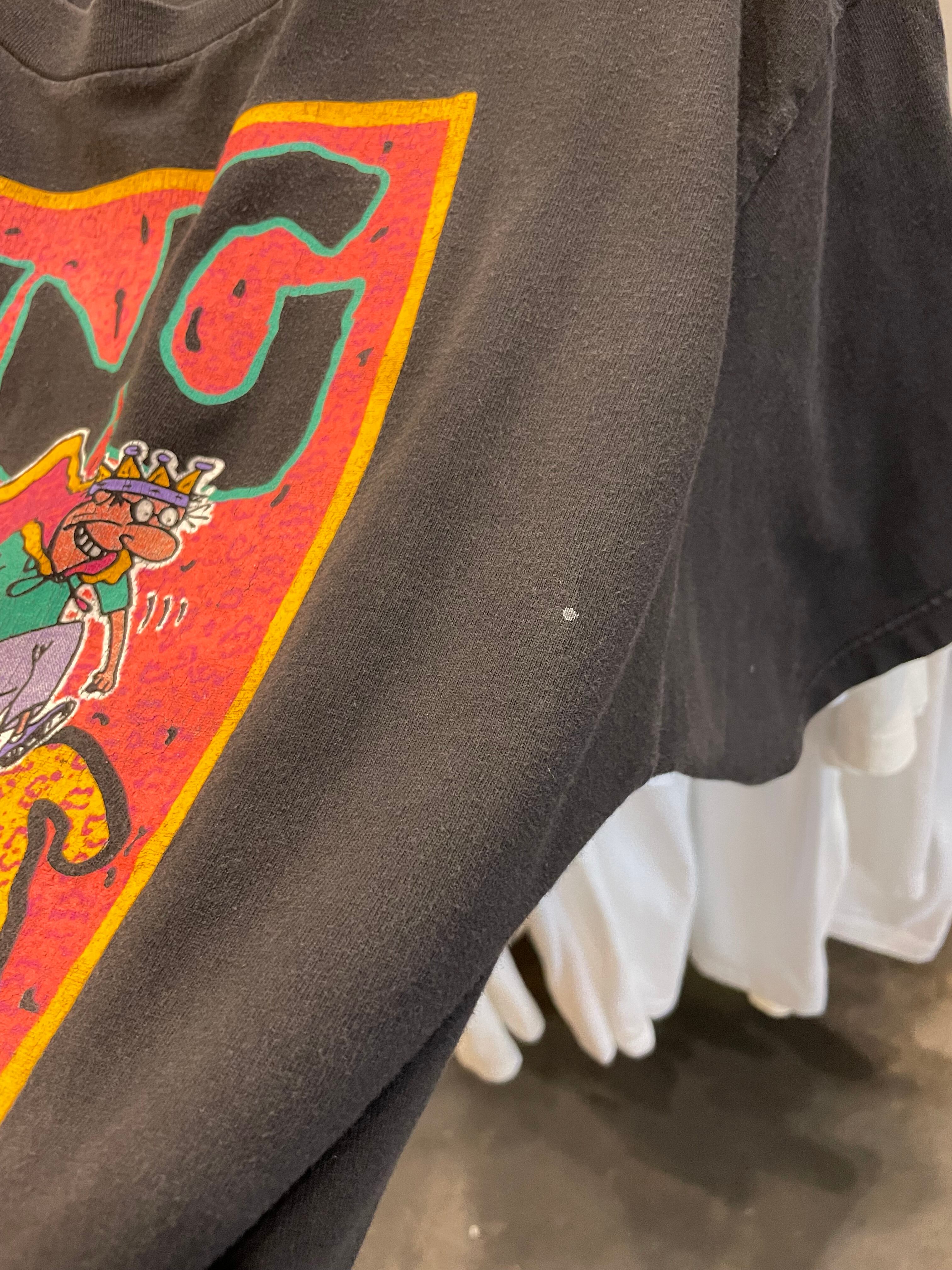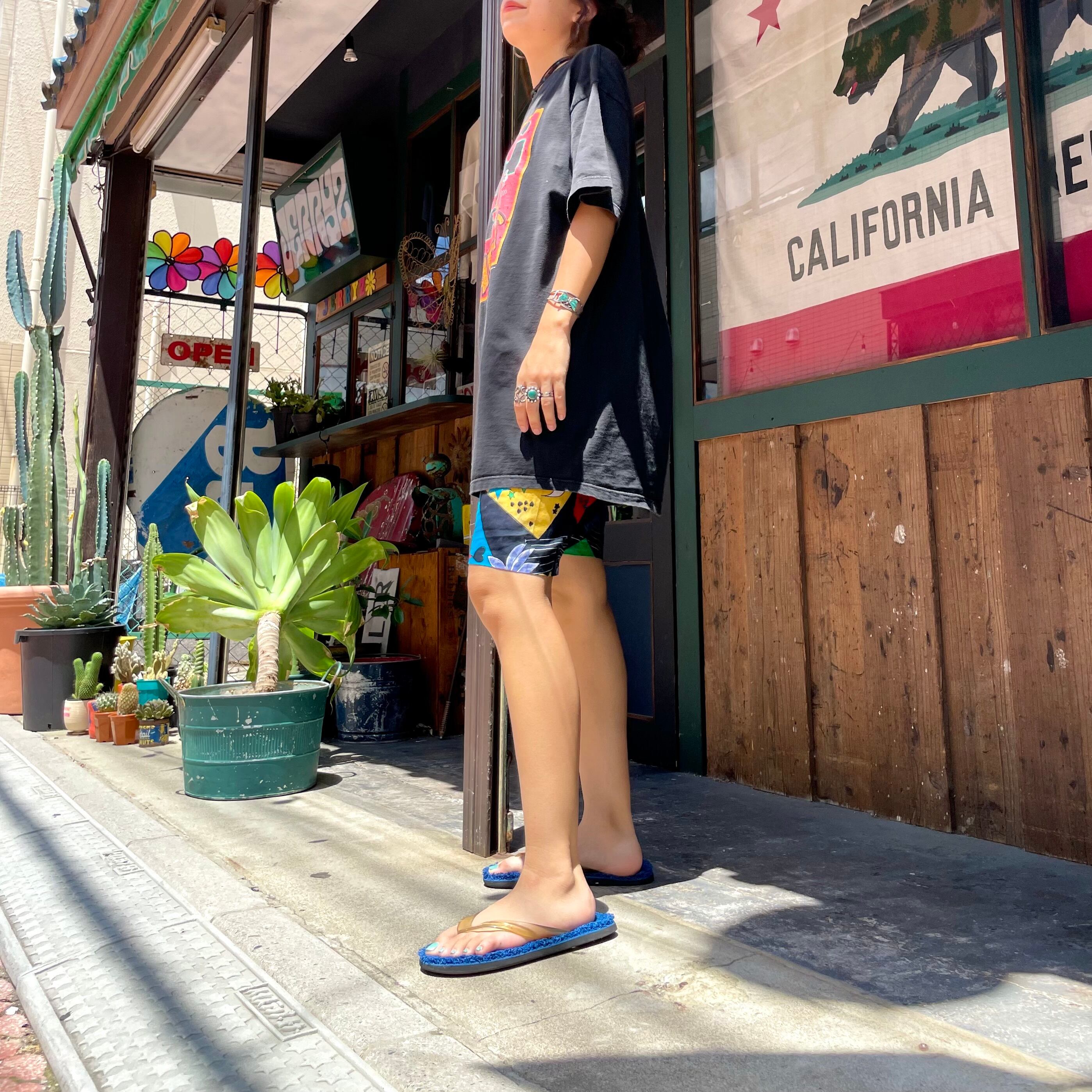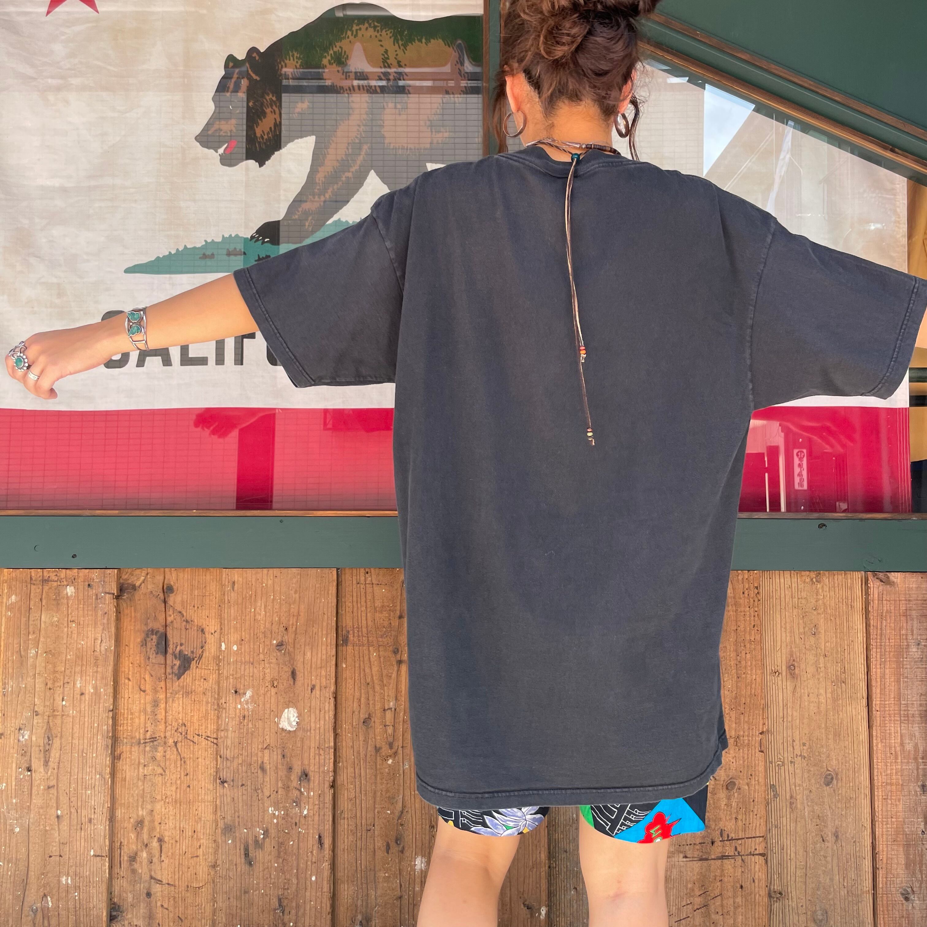 黒ボディにポップなデザインとカラーのプリントが映えてかわいいTシャツです。