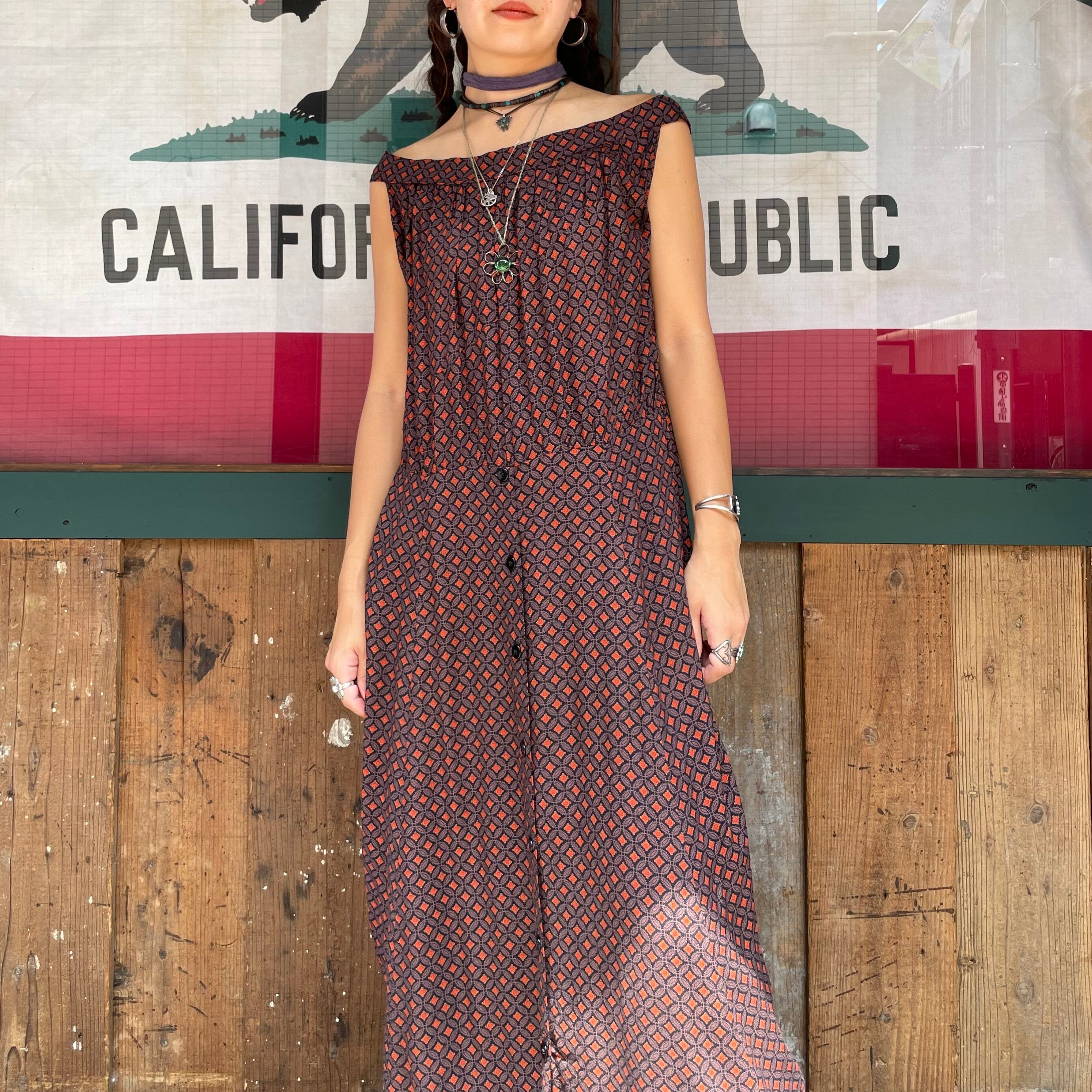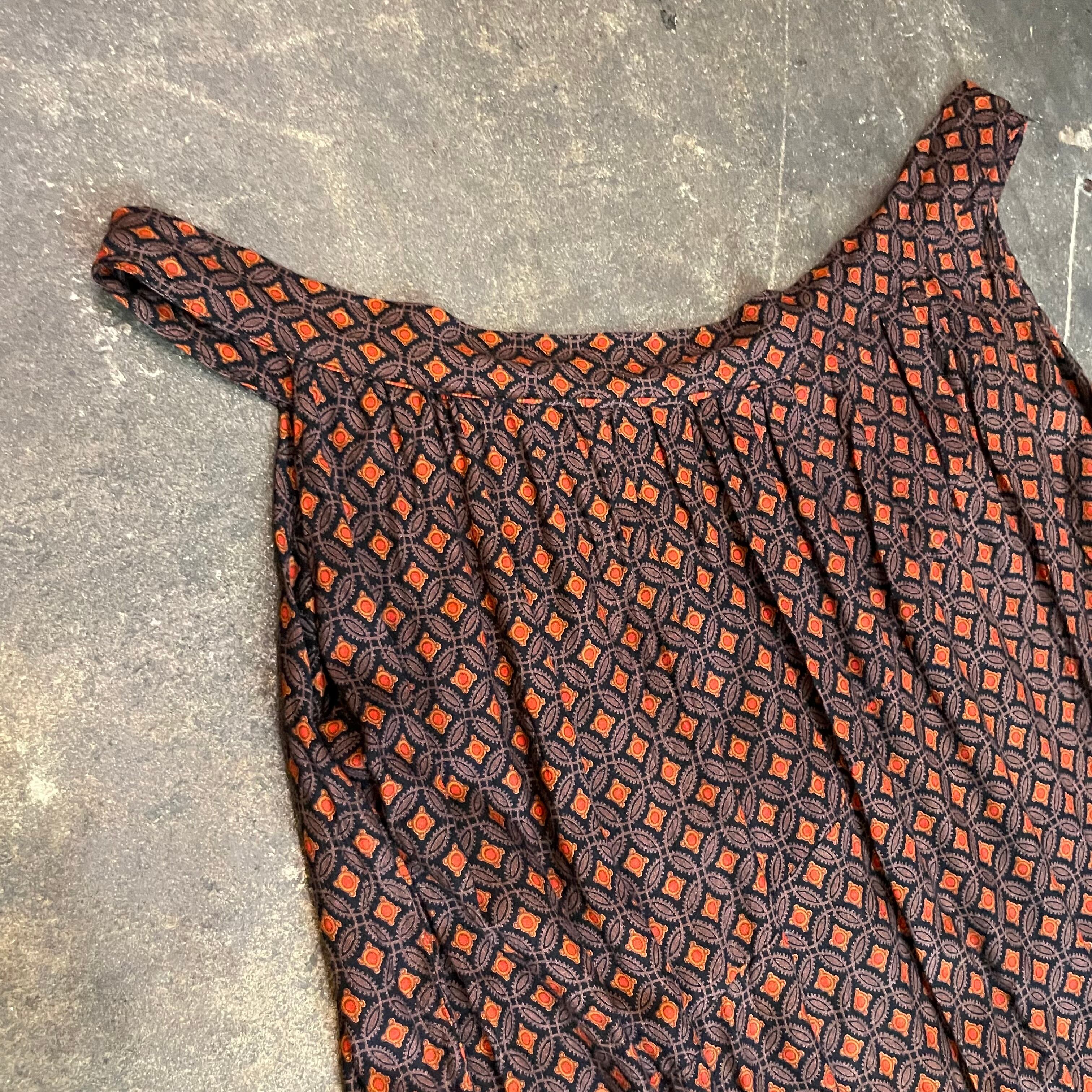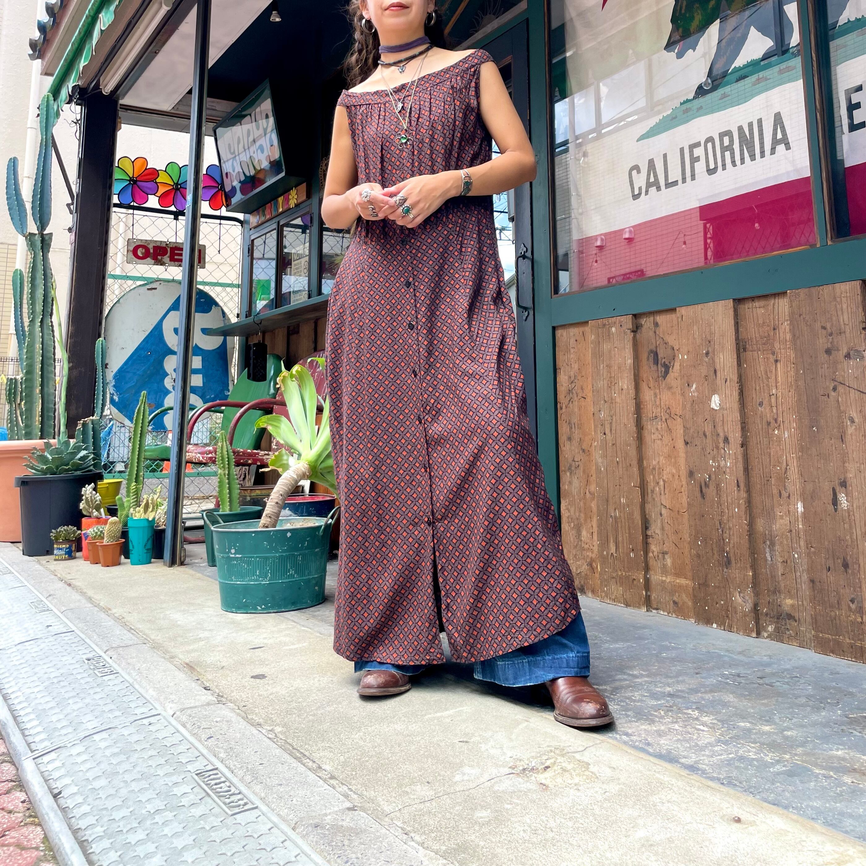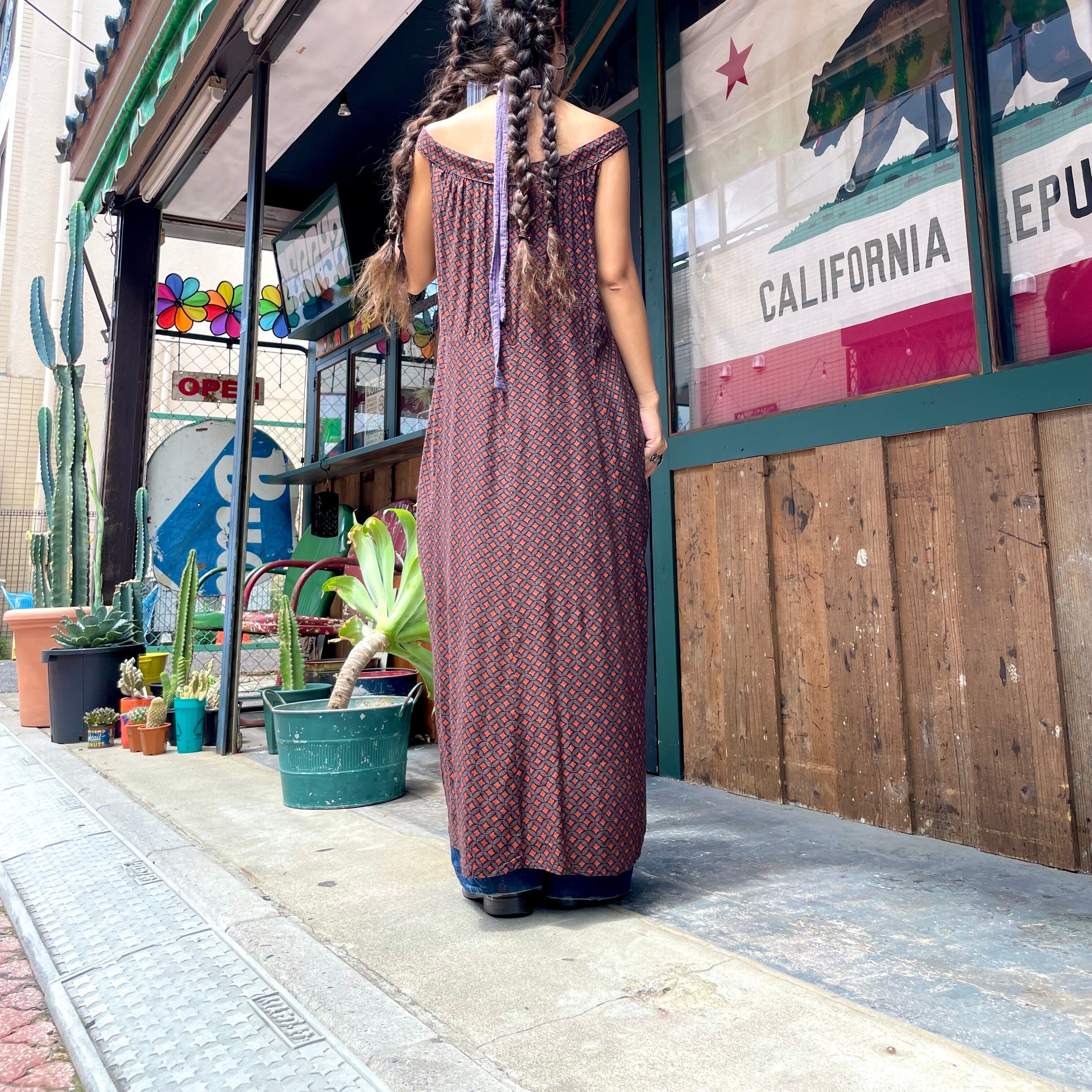 タイルのような、絨毯のような柄が素敵な70〜80年代頃のワンピースです。